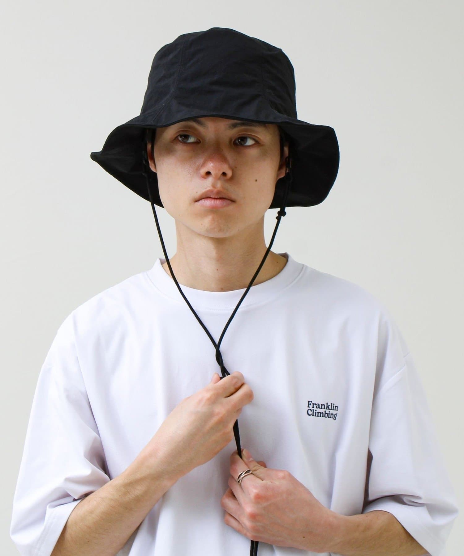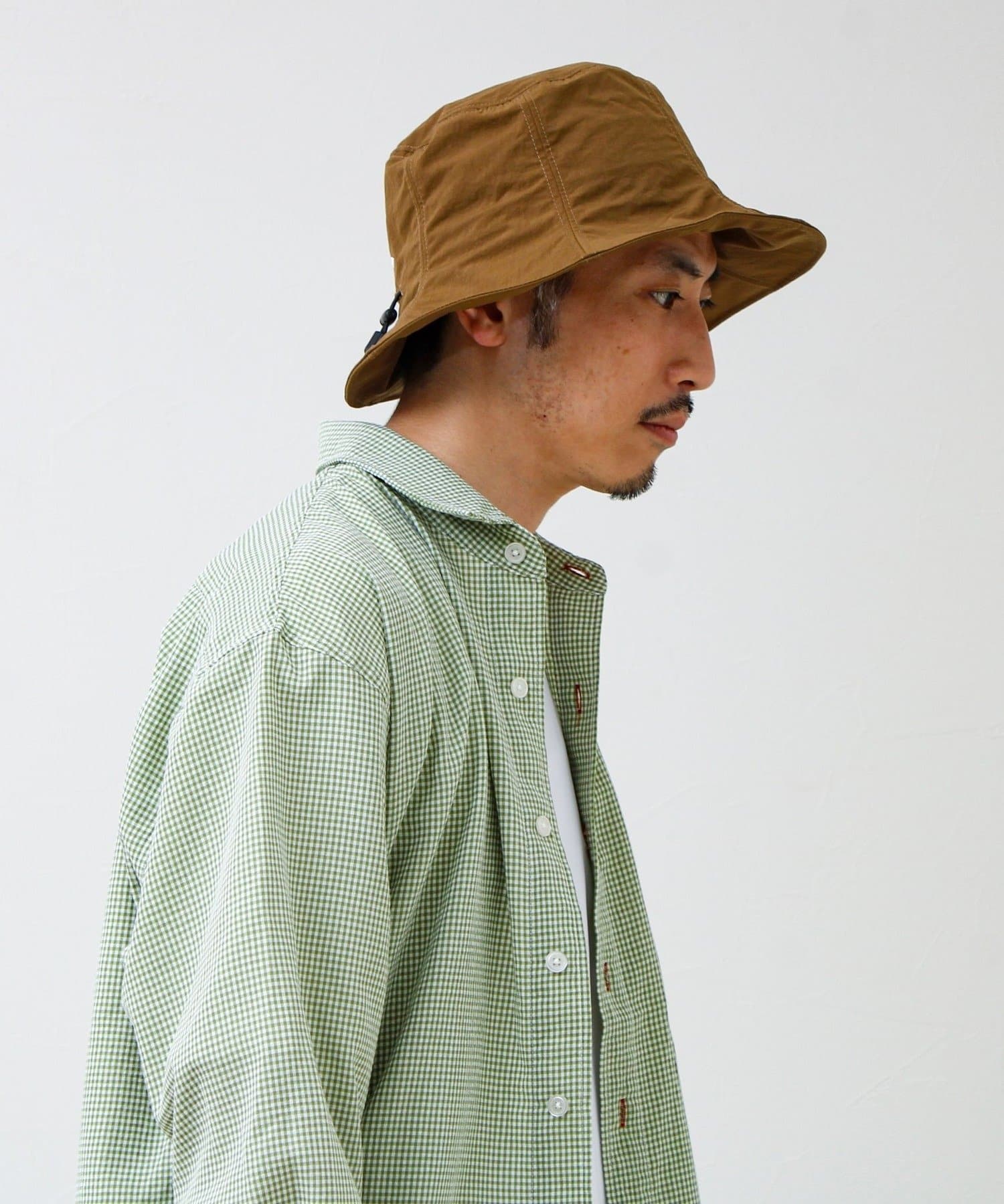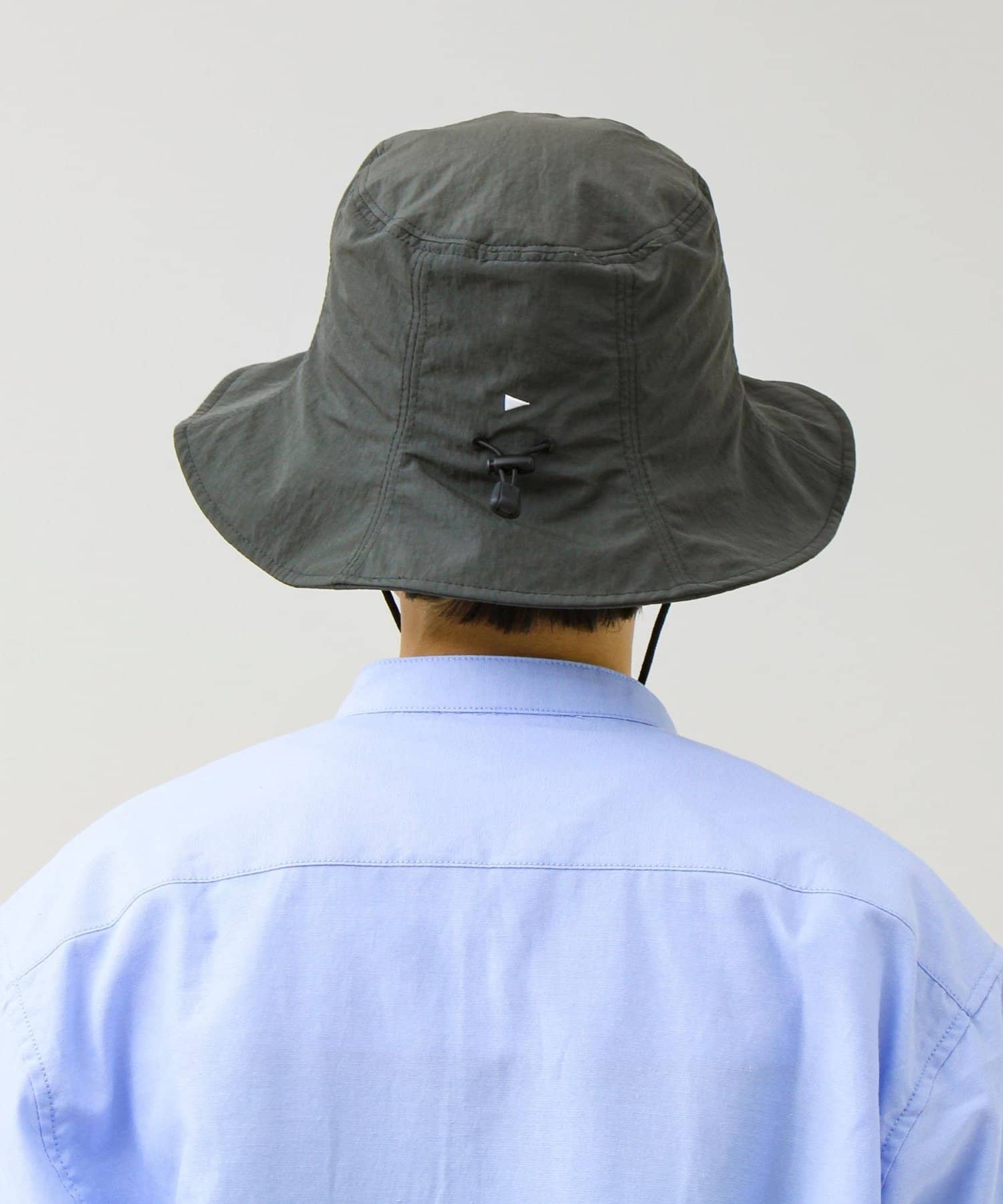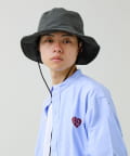 撥水加工を施したリサイクルナイロン素材を使用した、パッカブル仕様のハット。