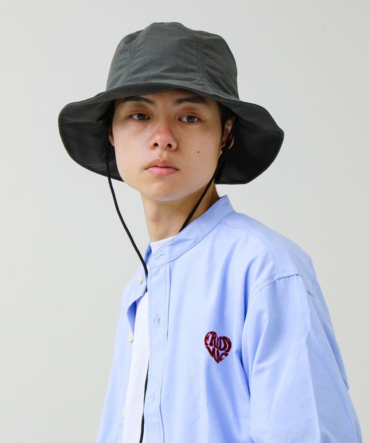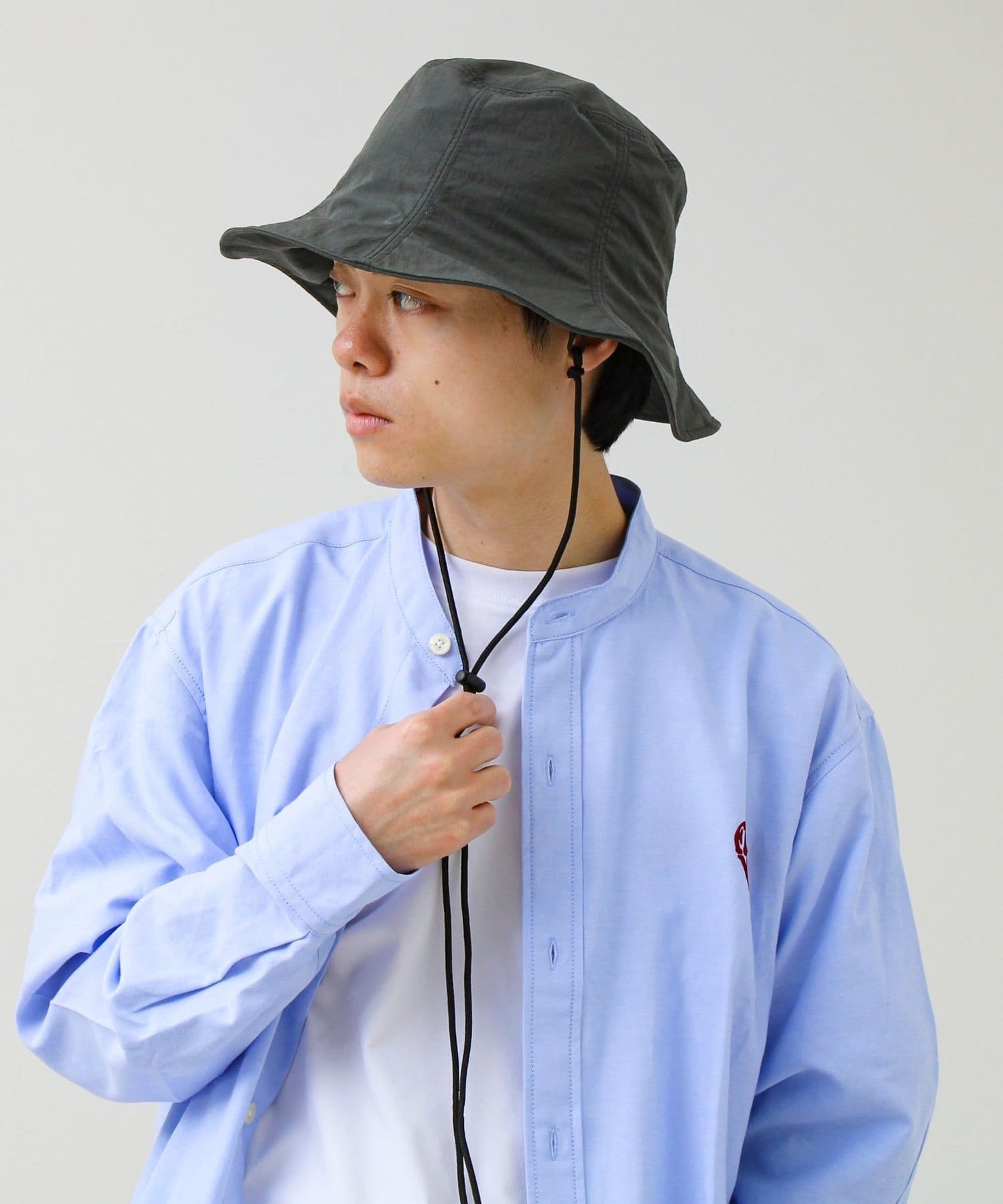 付属のミニサコッシュには着脱可能なショルダーコードが付属しており、ハットのアゴ紐としても使用できる2WAY仕様です。