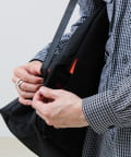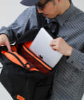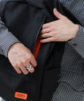 シンプルなリュックのシルエットに、実用性を追求した11のポケットを配置したモデル。