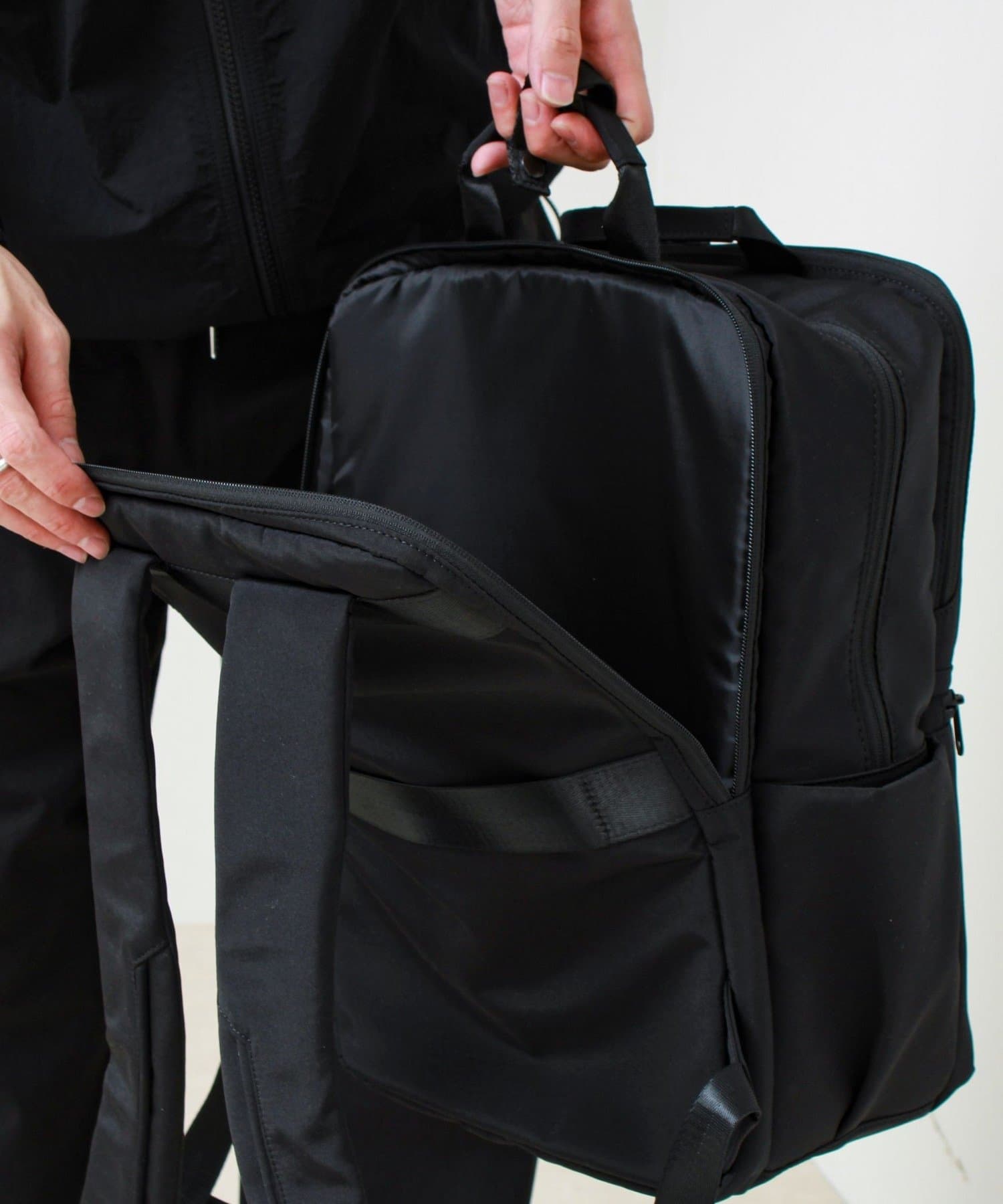 スクエアフォルムのすっきりとしたシルエットで、カジュアルからビジネスシーンまで幅広く活躍するバックパックです。