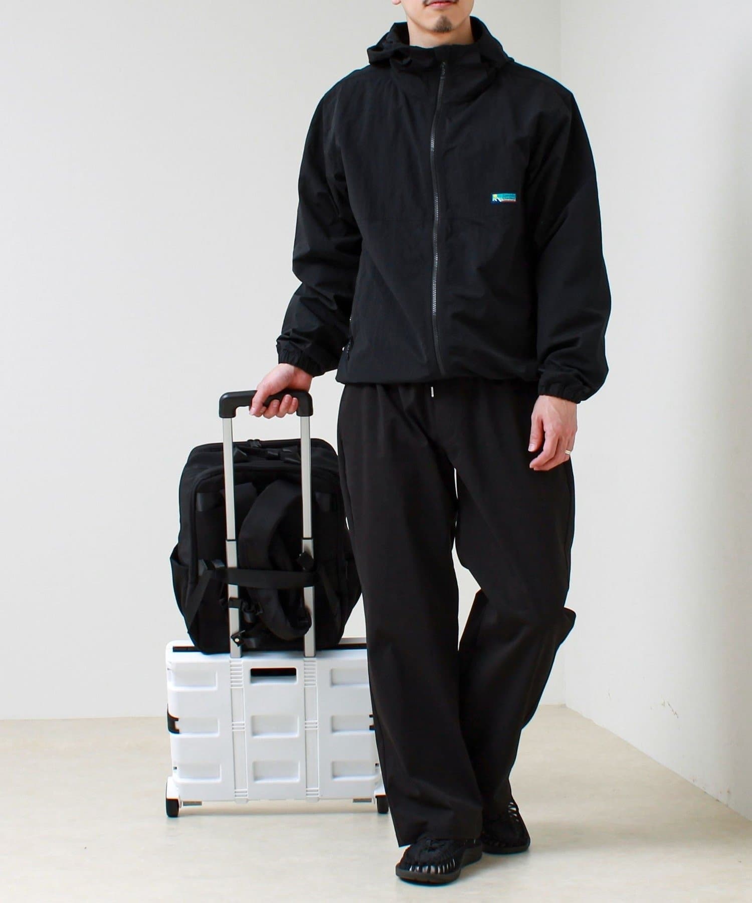 ナイロンジャケットやスニーカーと合わせればアウトドアや旅行シーンにも活躍。