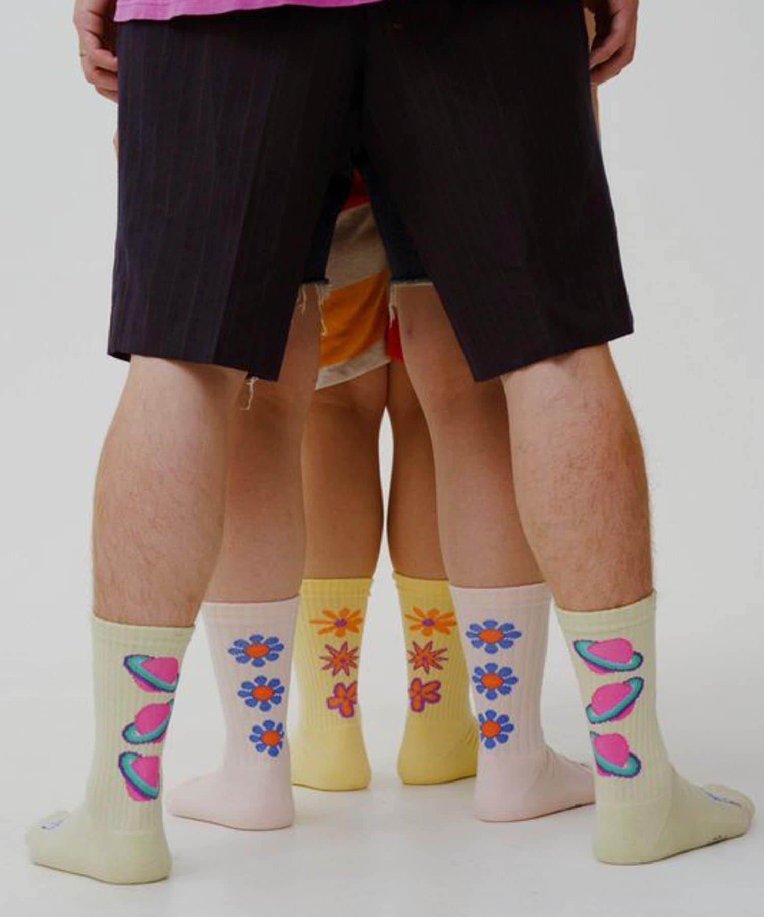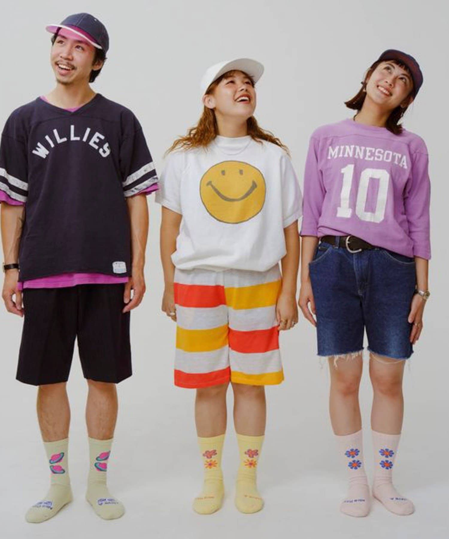 ショーツやハーフパンツと合わせてソックスを主役にしたストリートスタイルに。