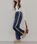 ・繊細なフリルレースがガーリーなジャージパンツ。