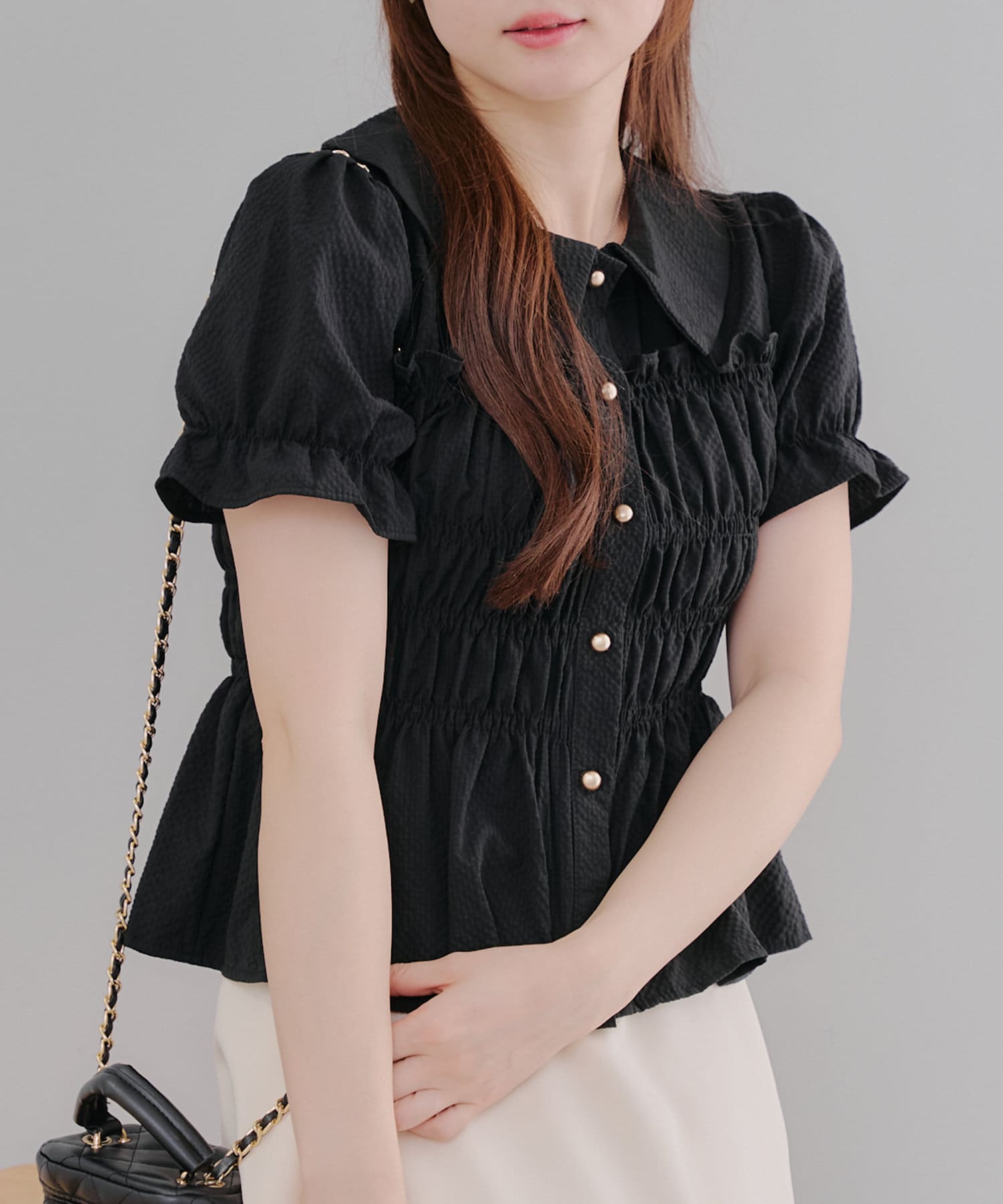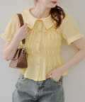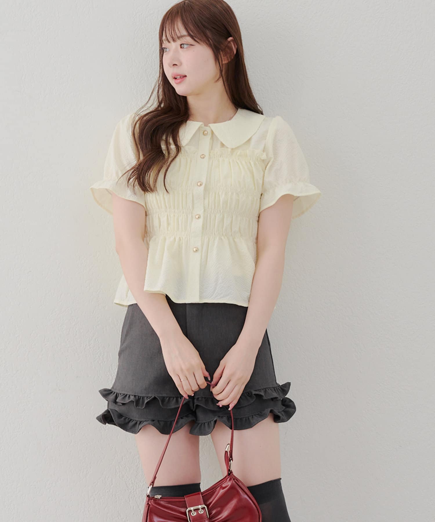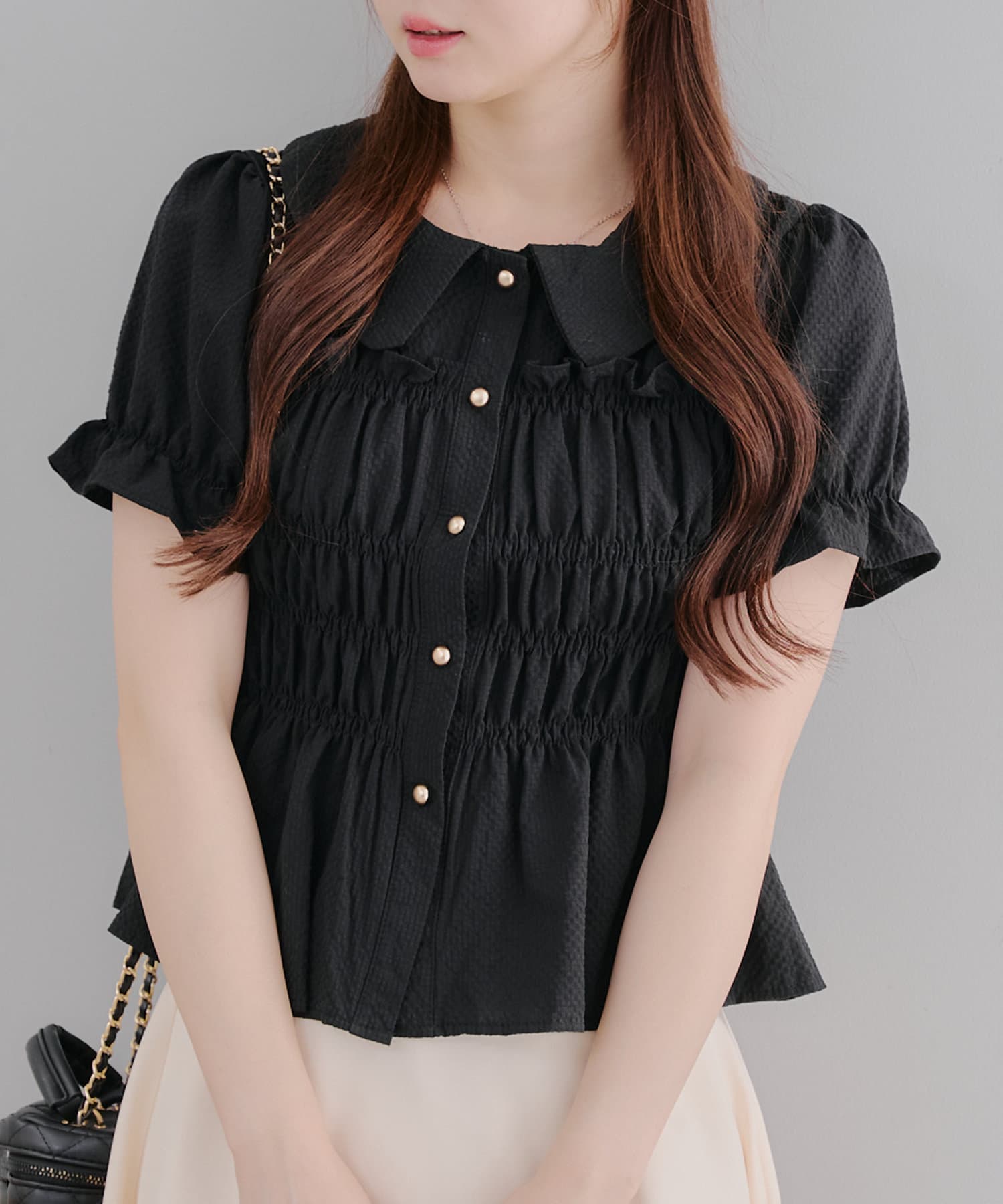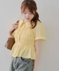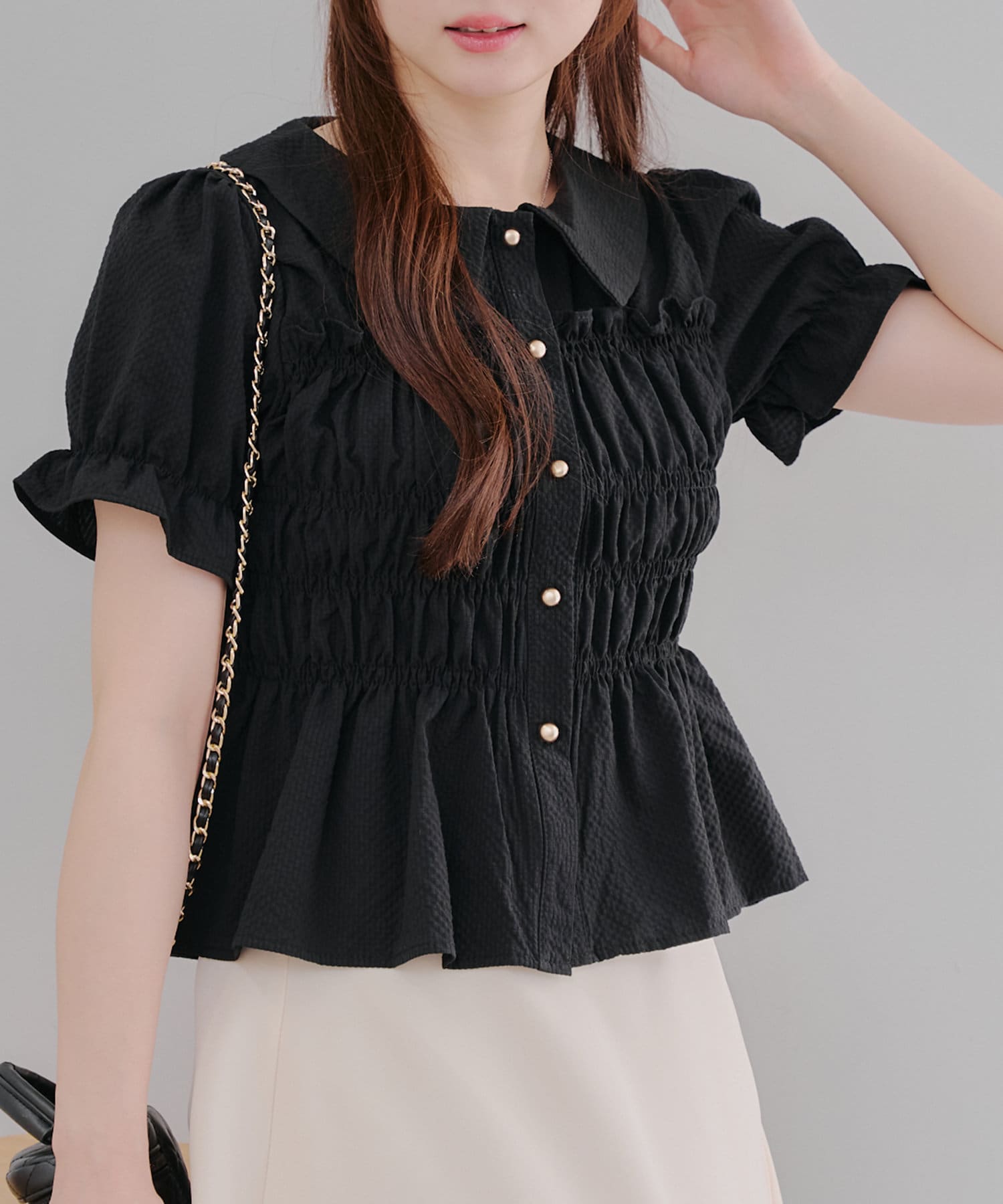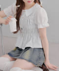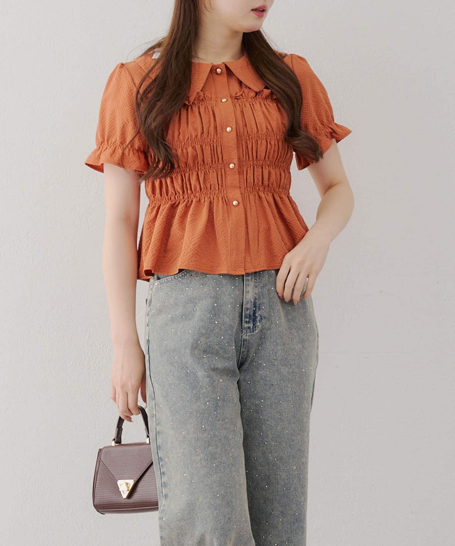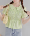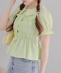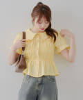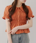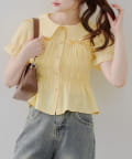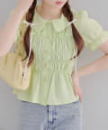 トレンド韓国ガーリーコーデに♪シャーリング衿付ブラウス