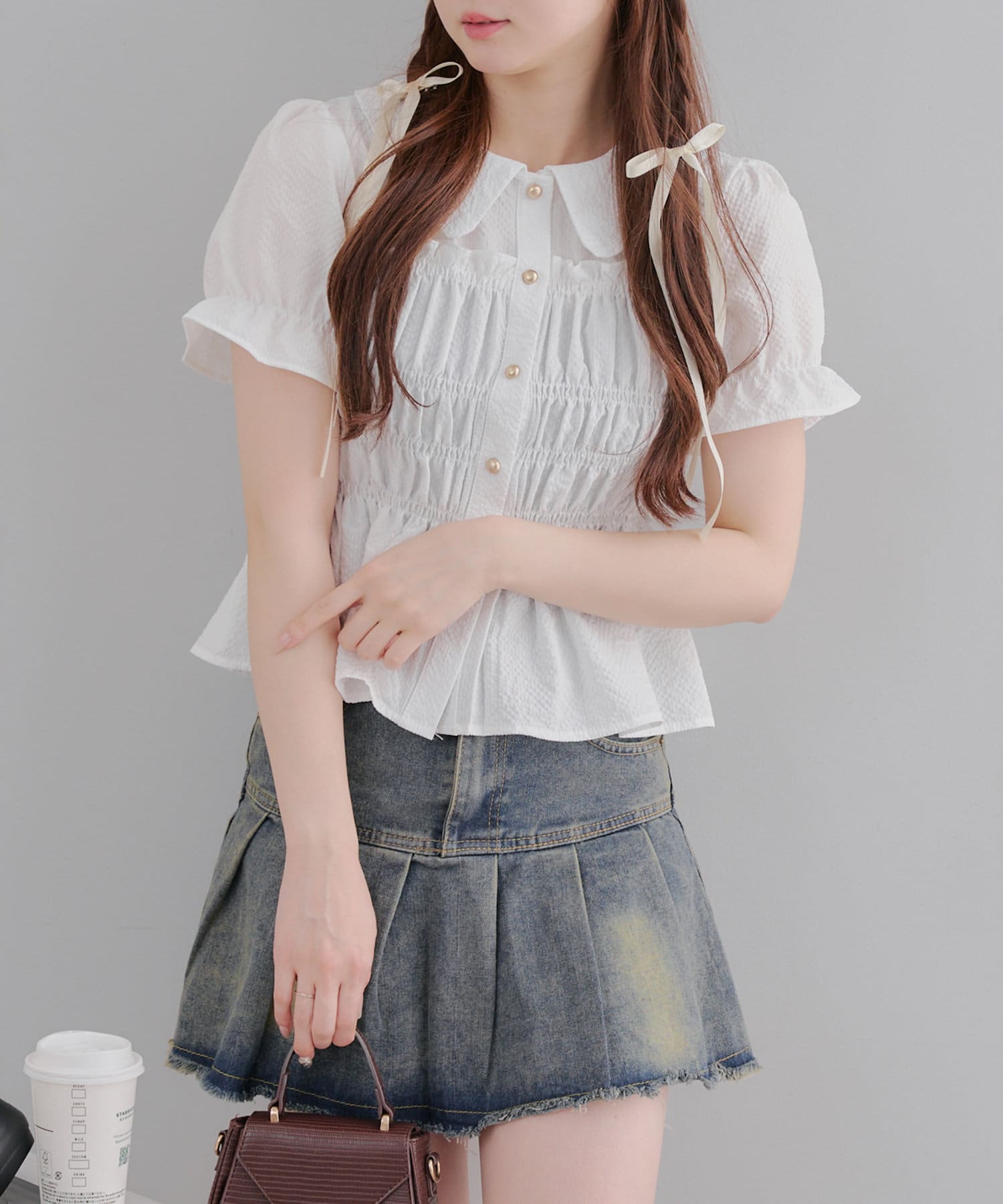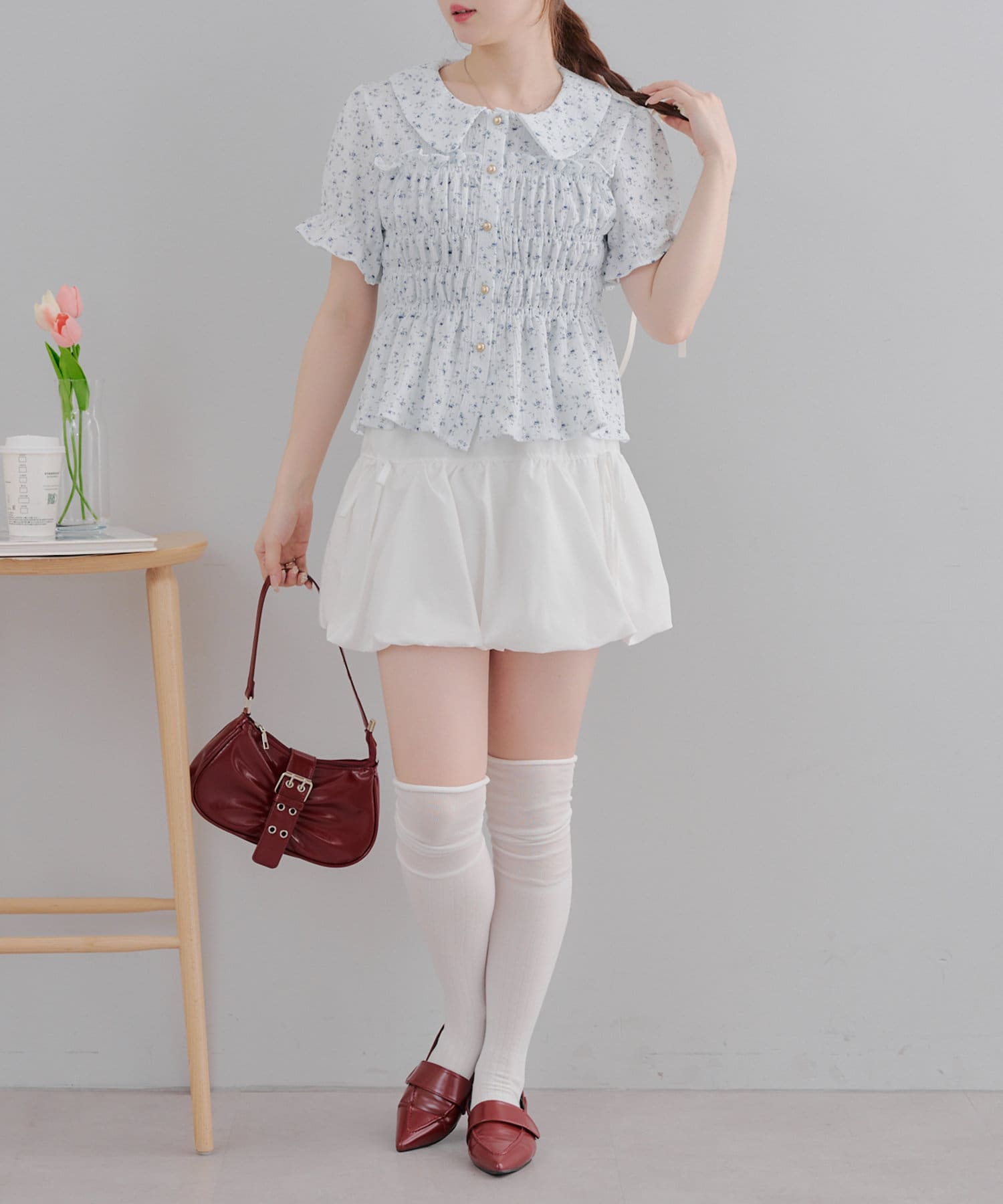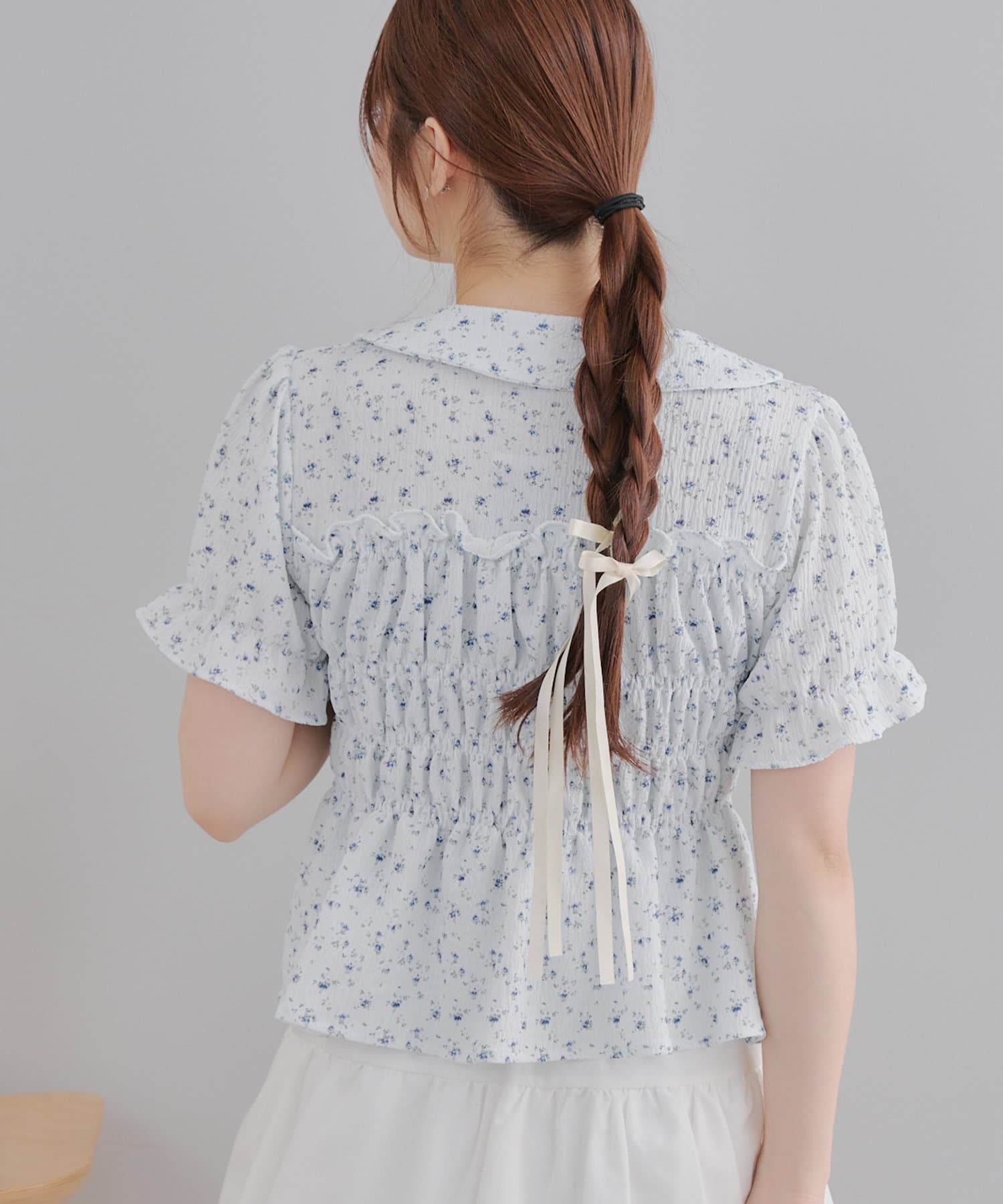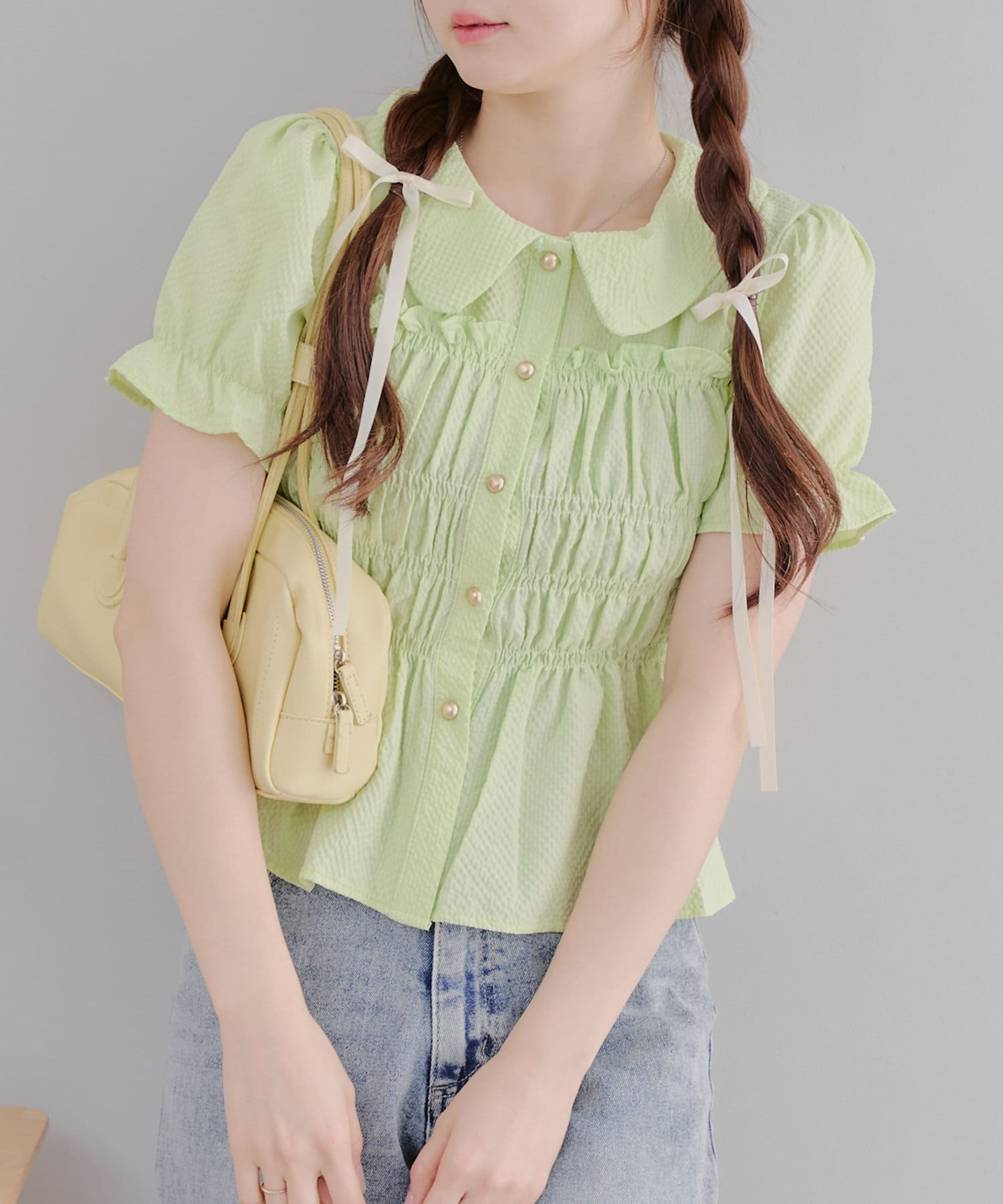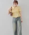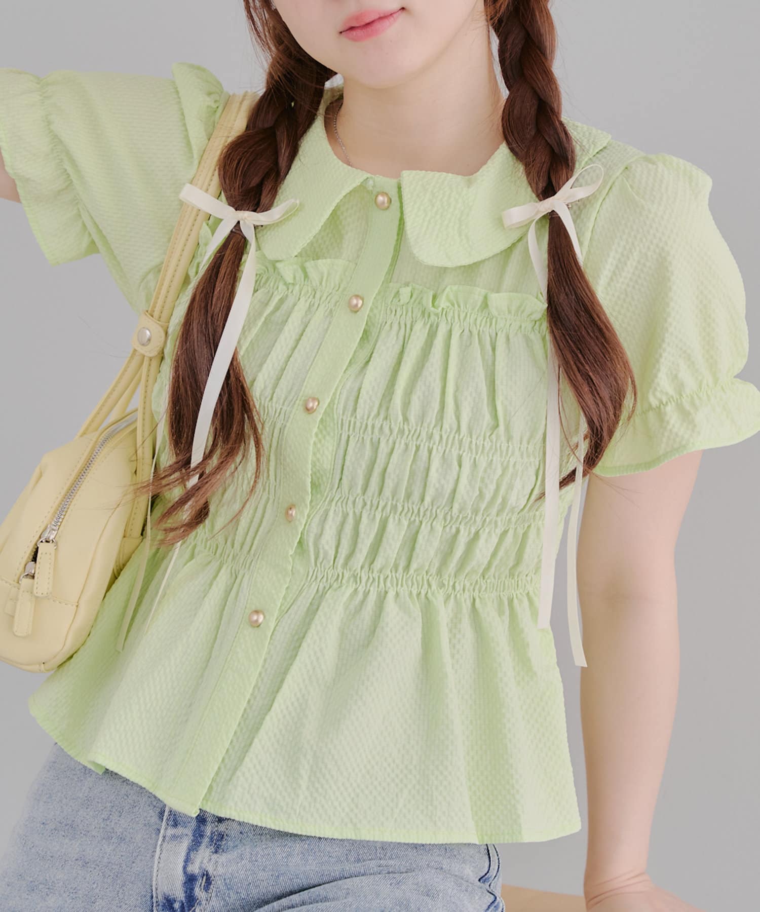 トレンド韓国ガーリーコーデに♪シャーリング衿付ブラウス