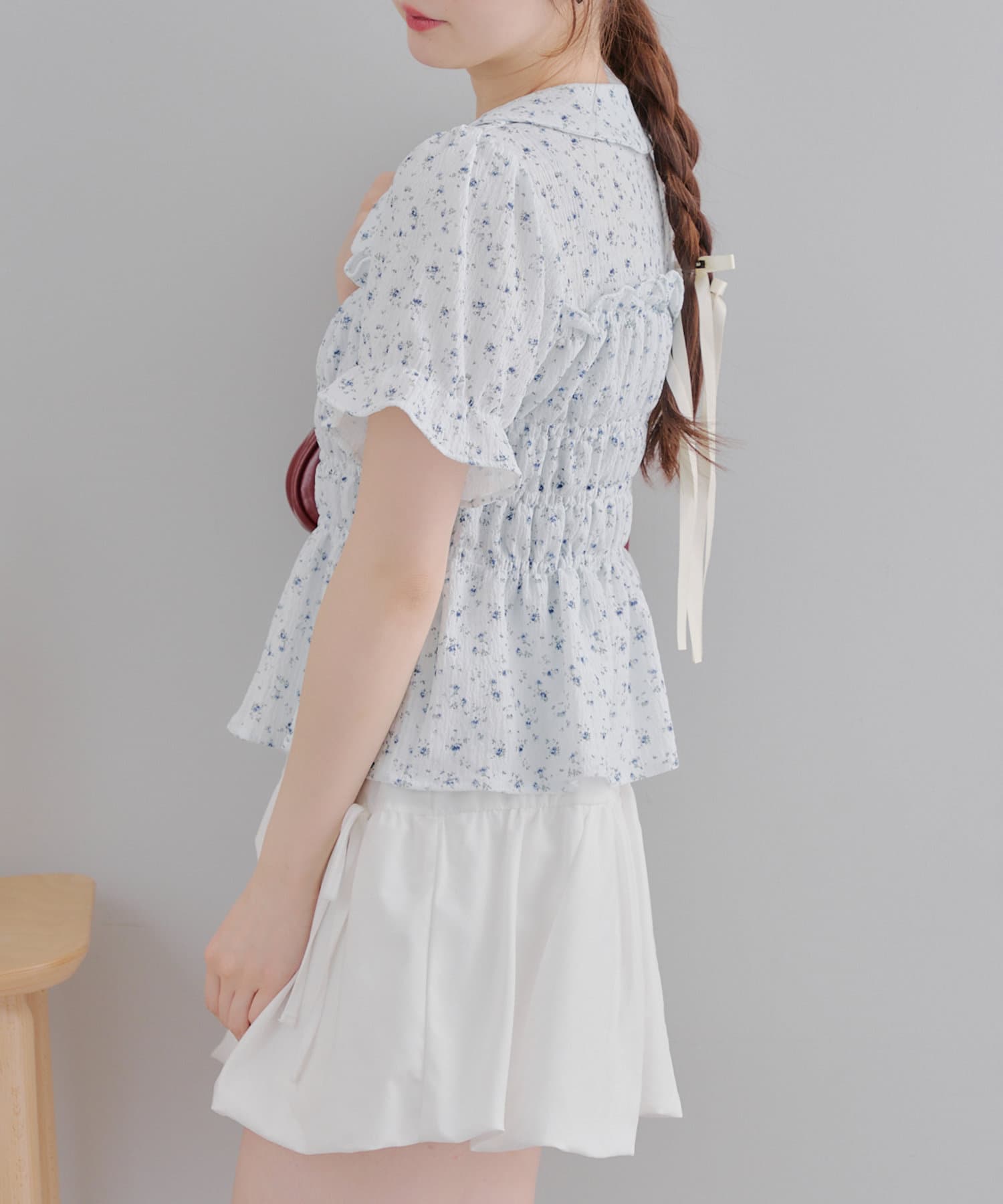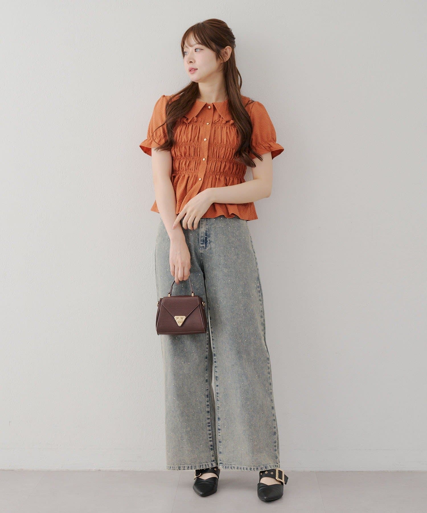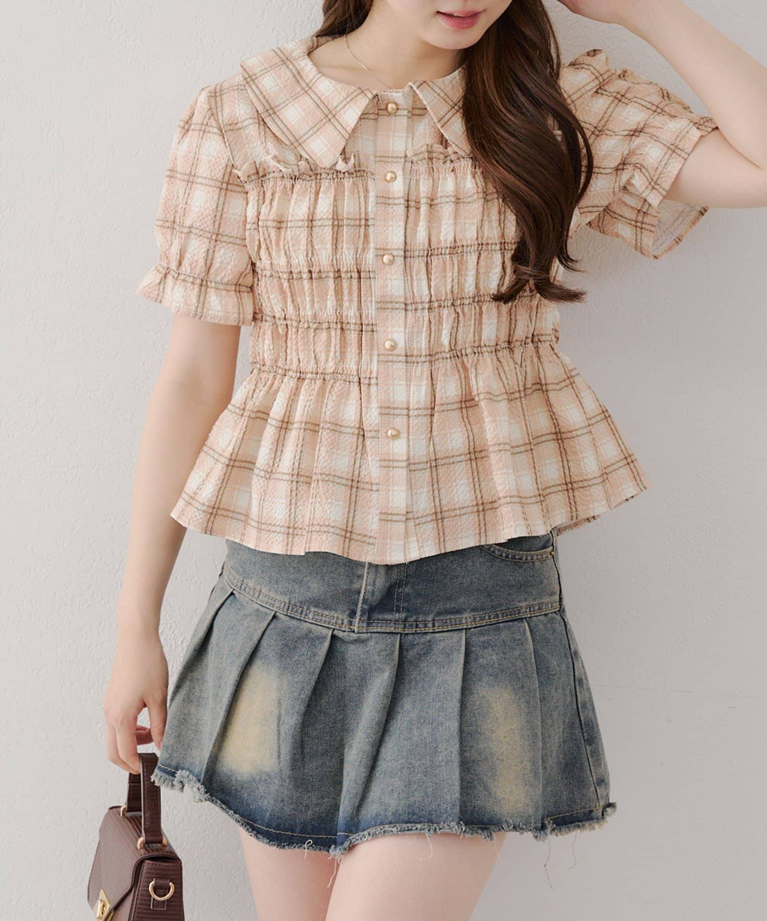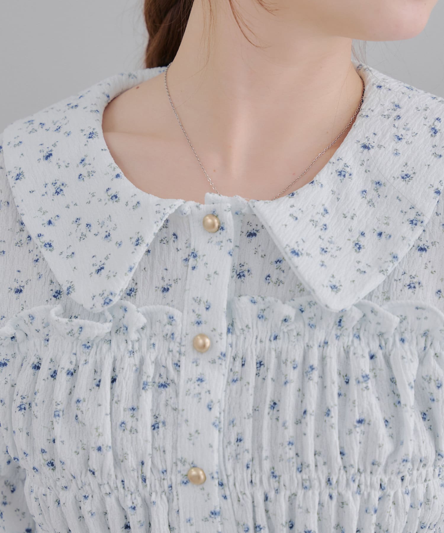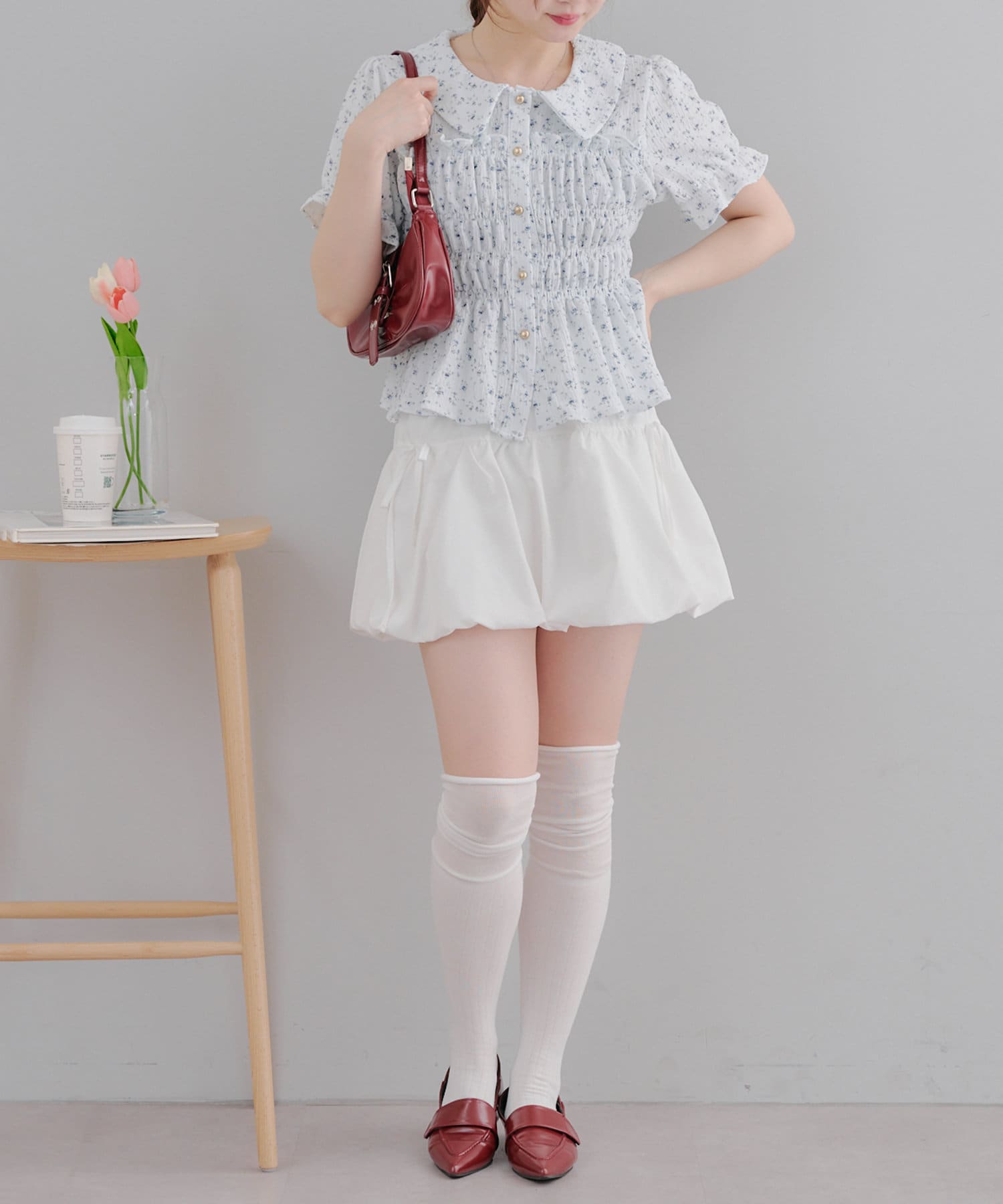 トレンド韓国ガーリーコーデに♪シャーリング衿付ブラウス
