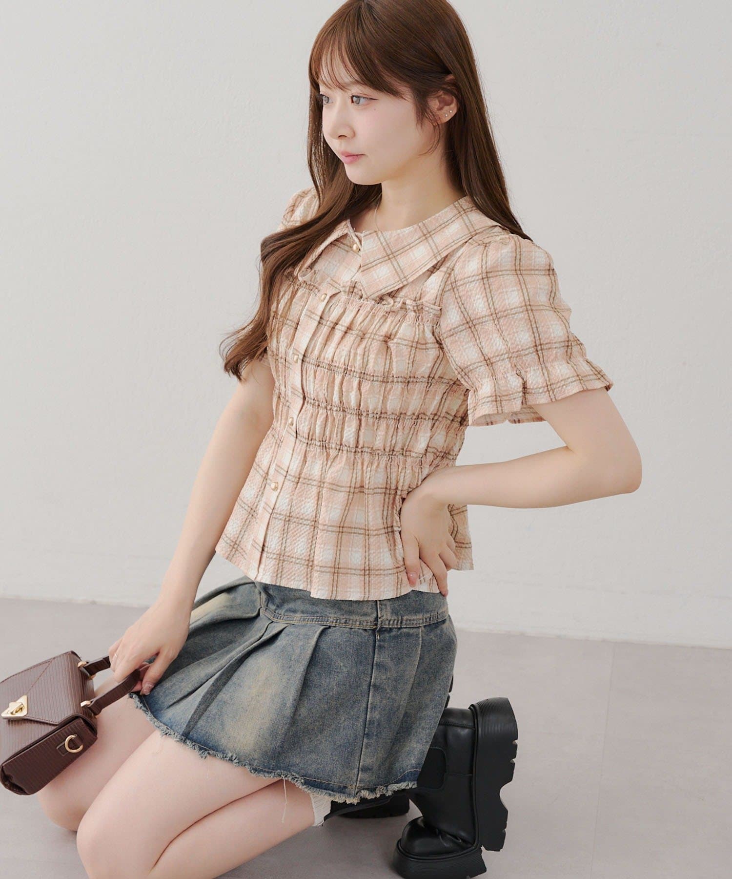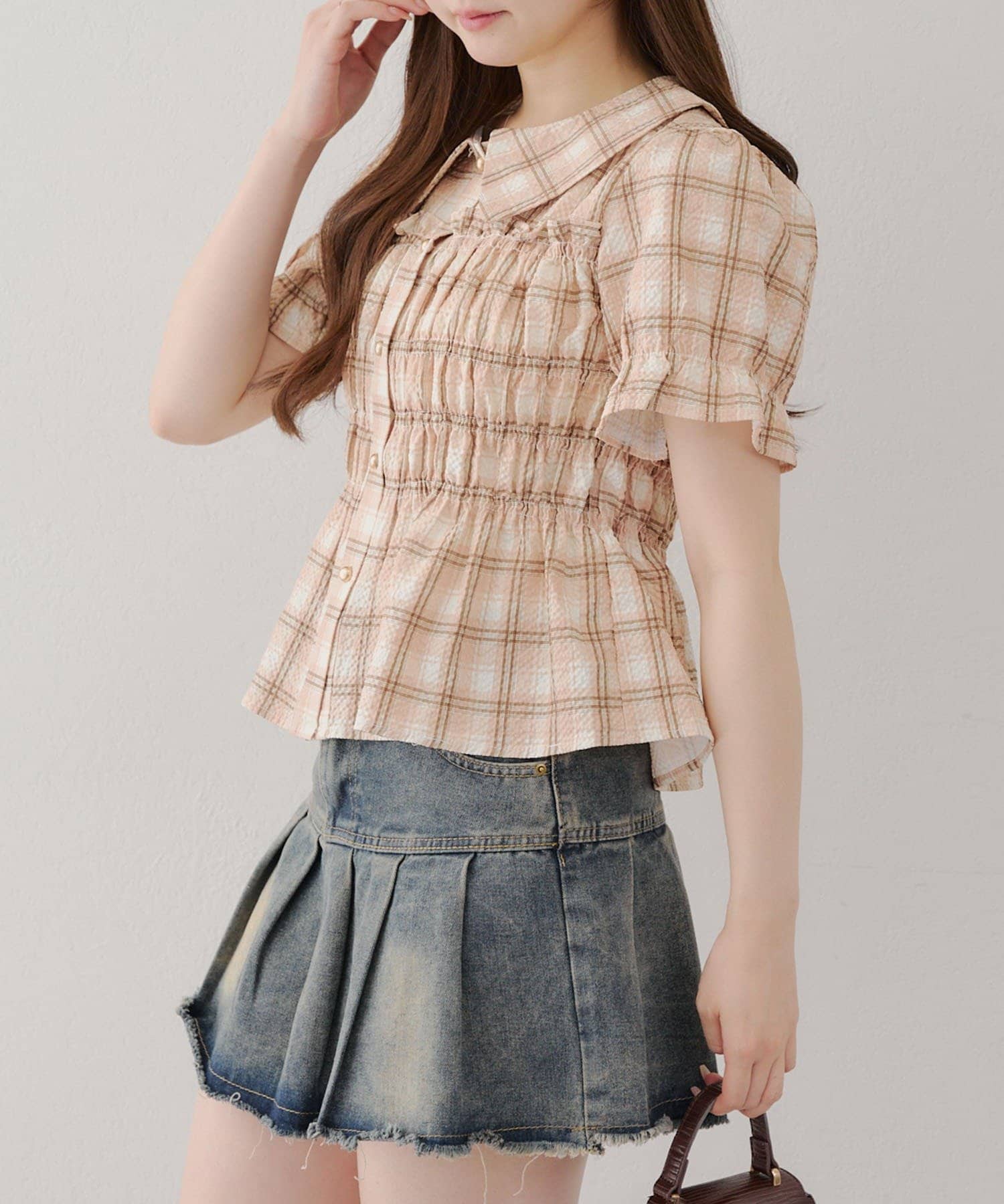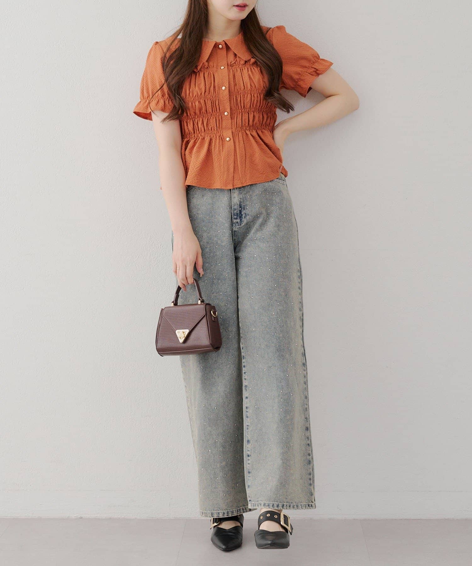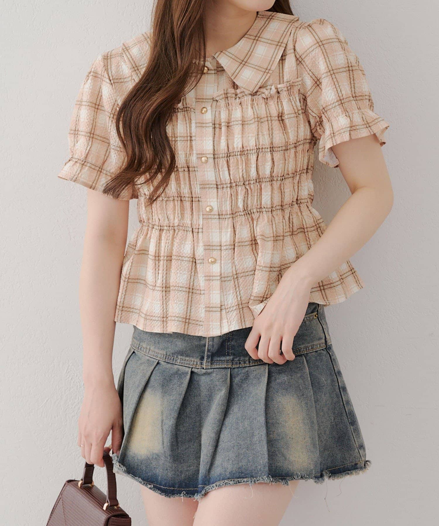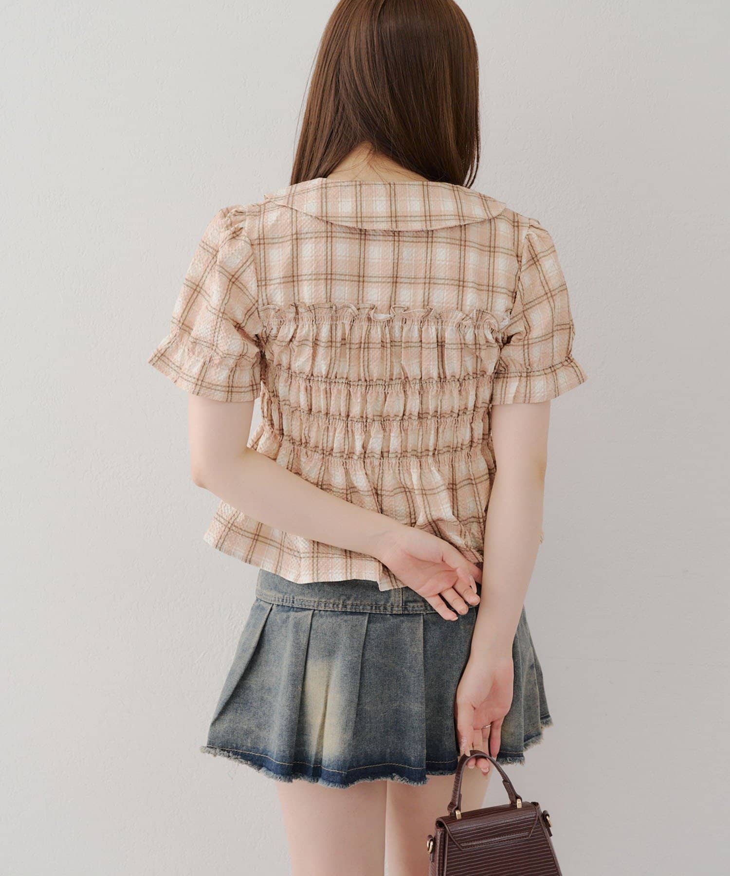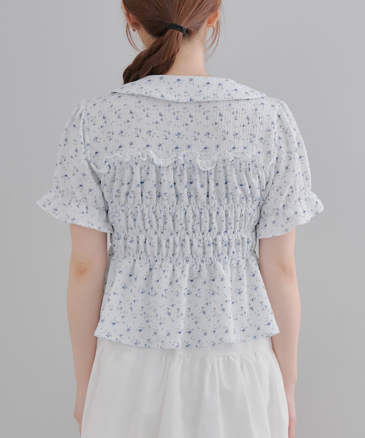 トレンド韓国ガーリーコーデに♪シャーリング衿付ブラウス