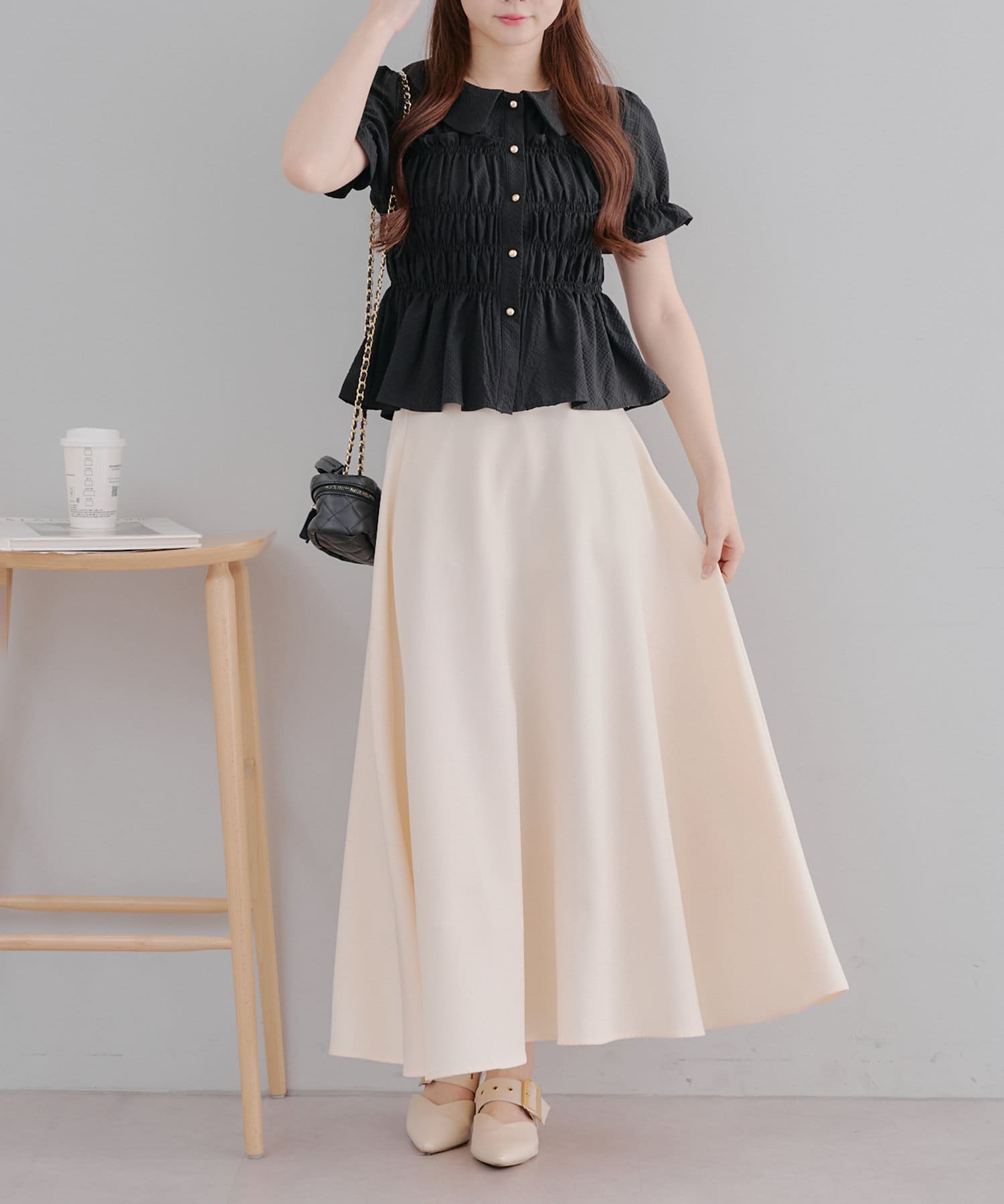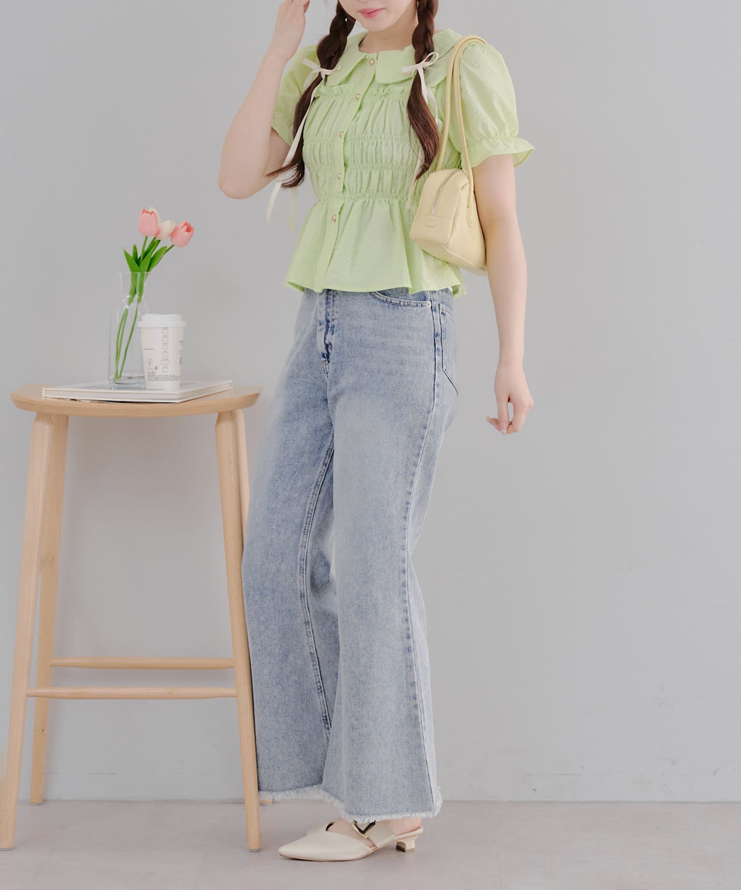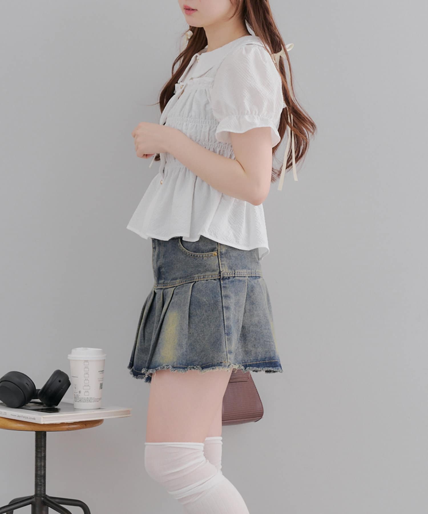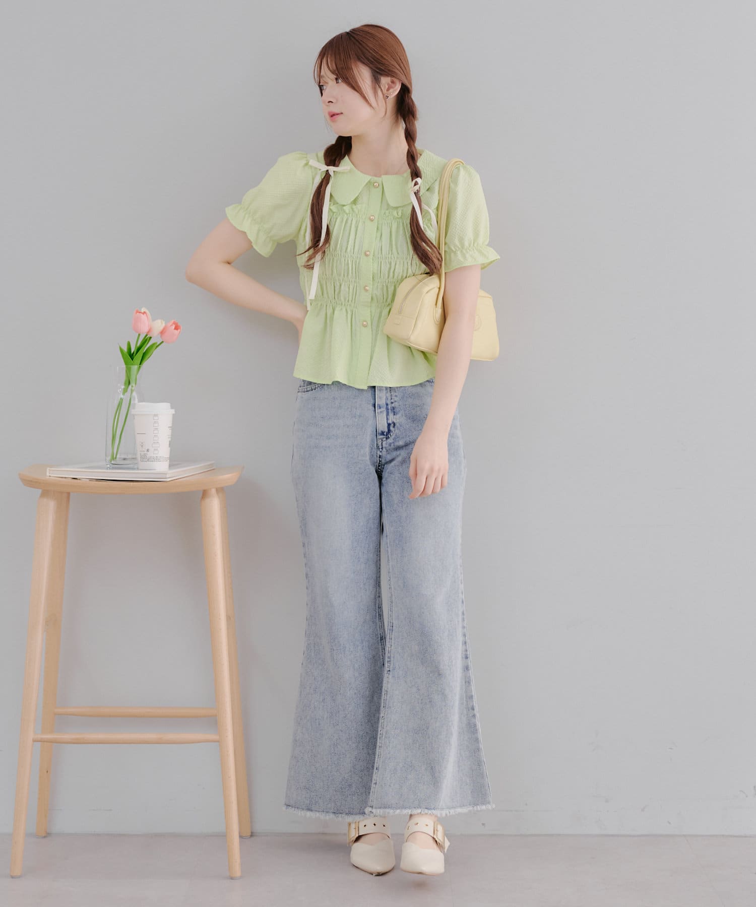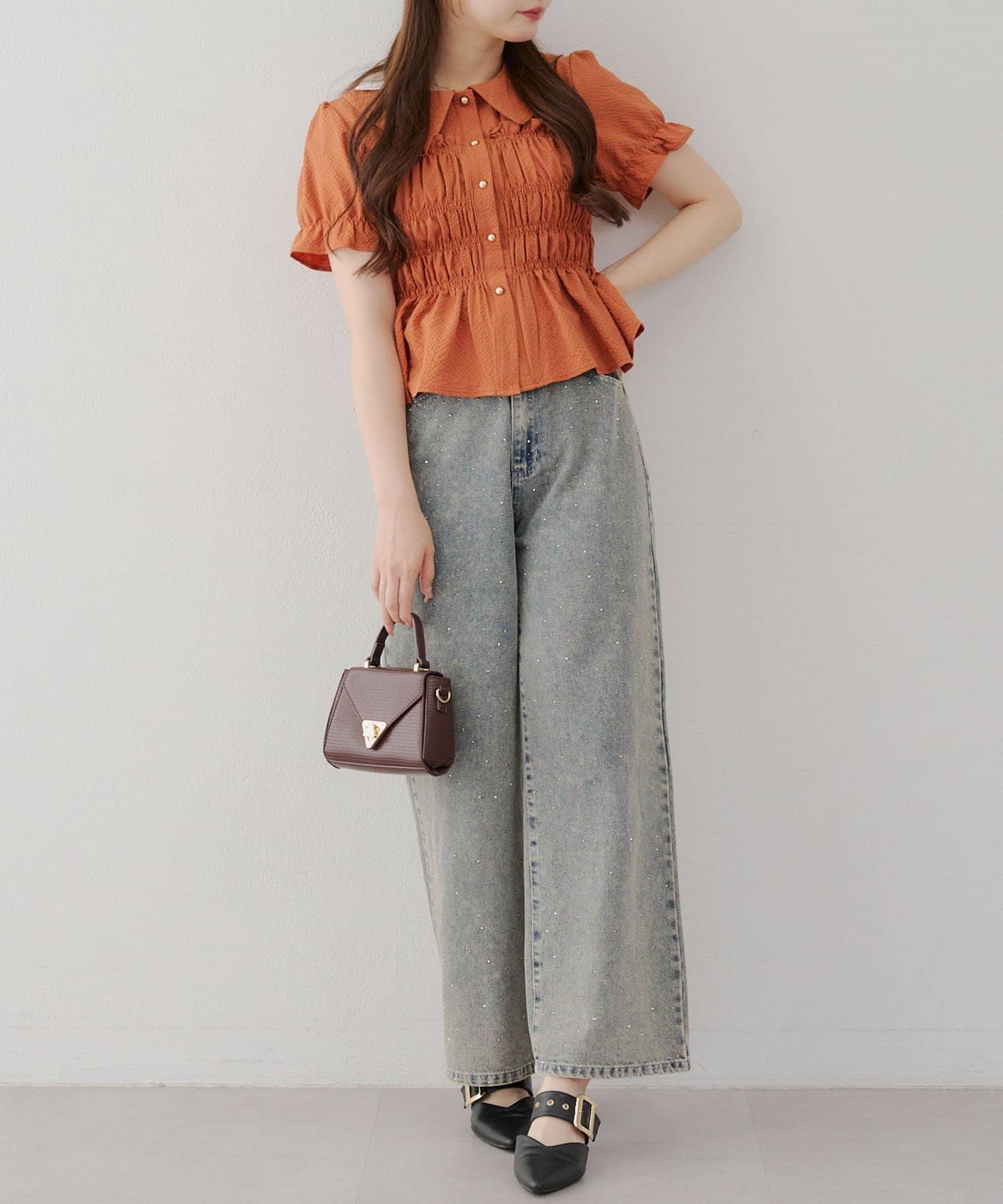 トレンド韓国ガーリーコーデに♪シャーリング衿付ブラウス