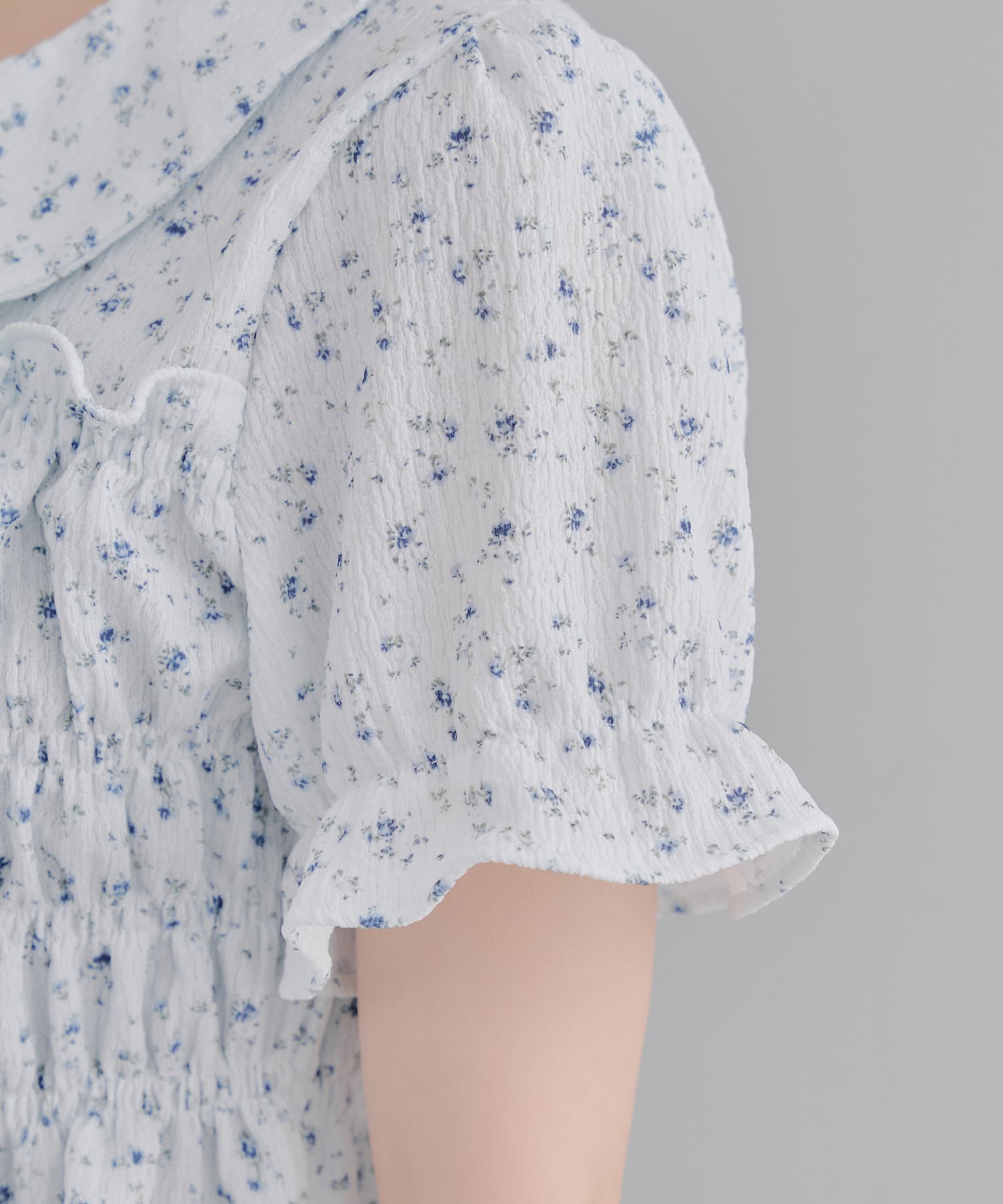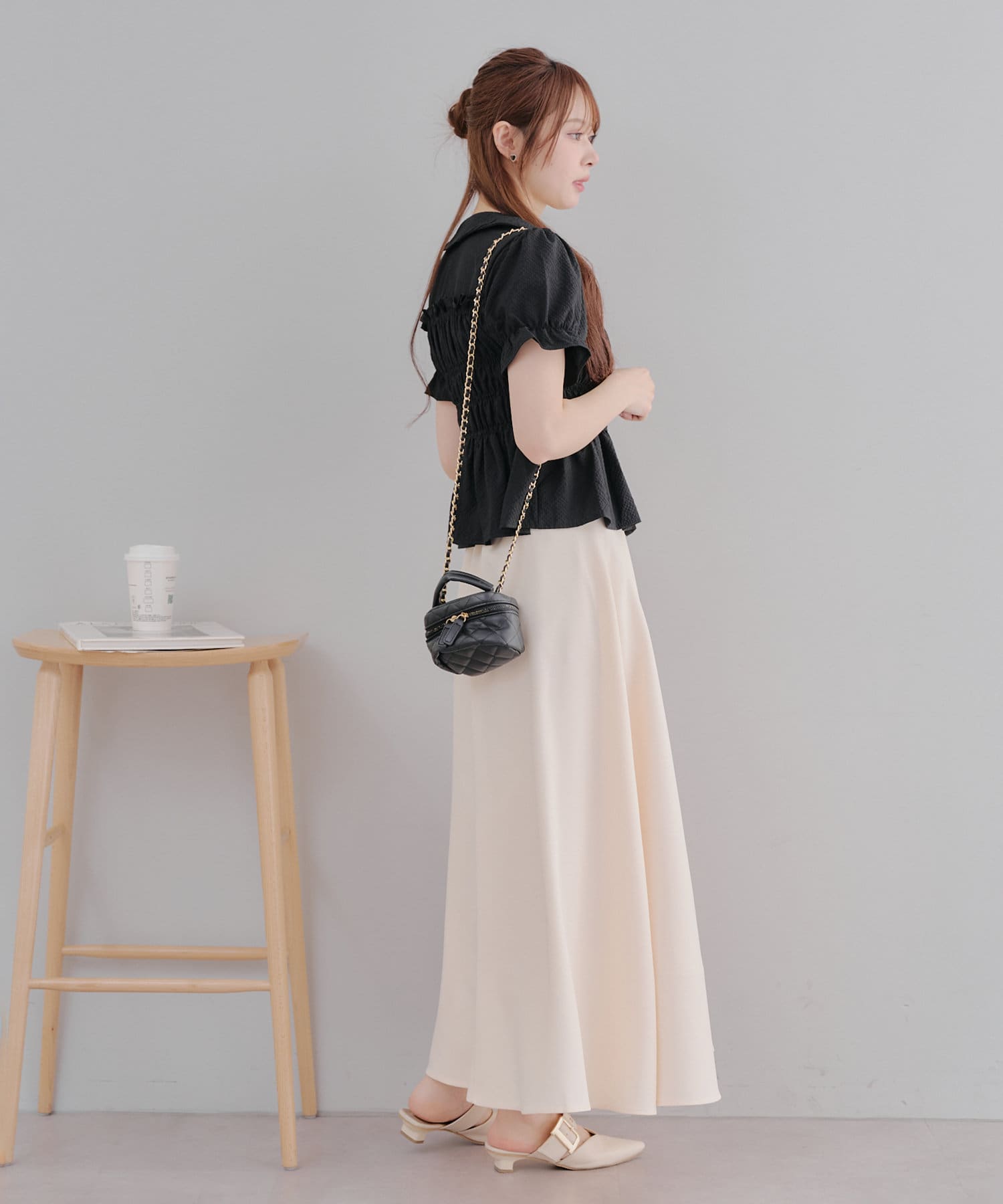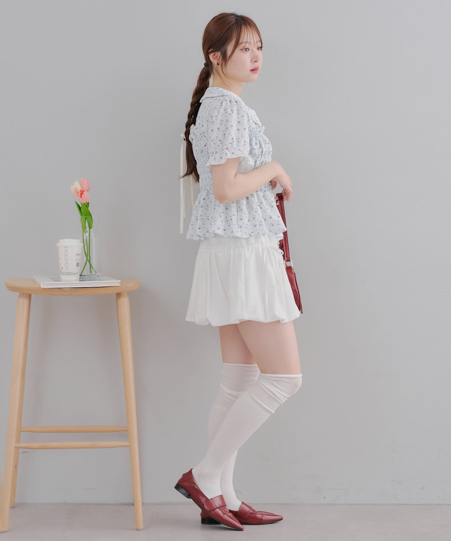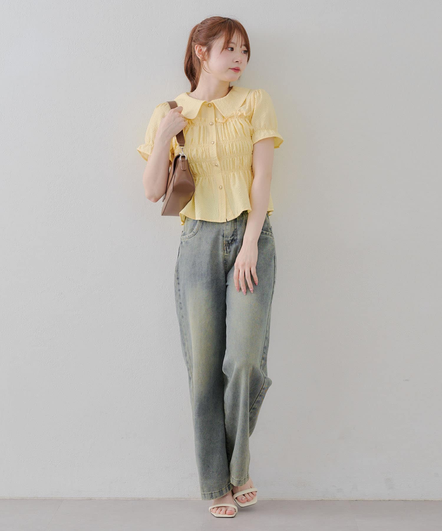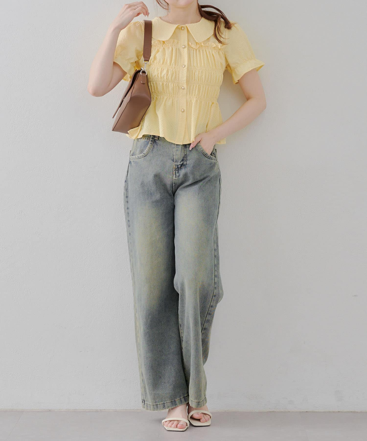 トレンド韓国ガーリーコーデに♪シャーリング衿付ブラウス