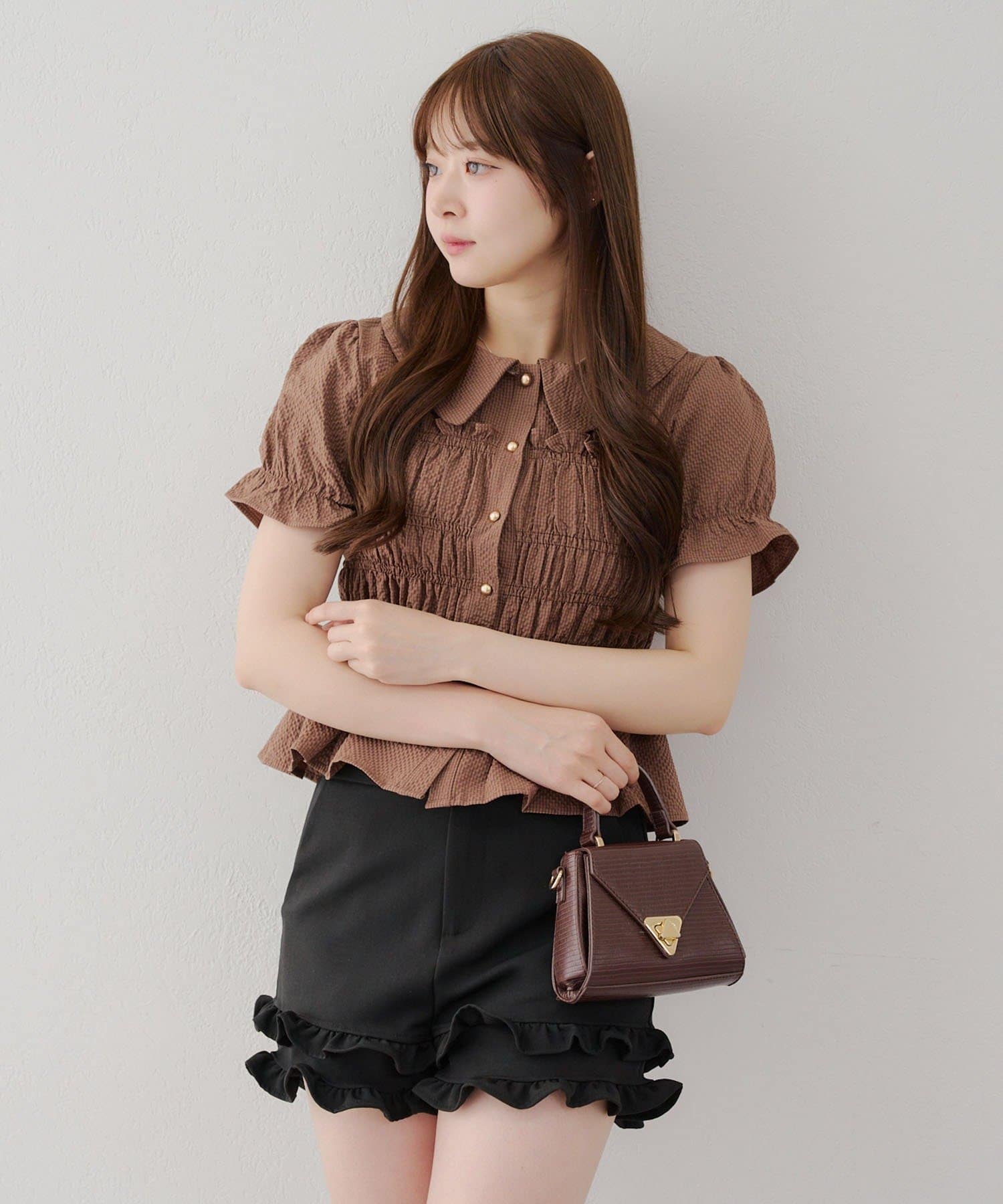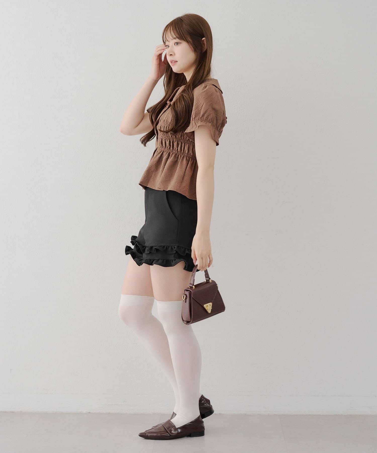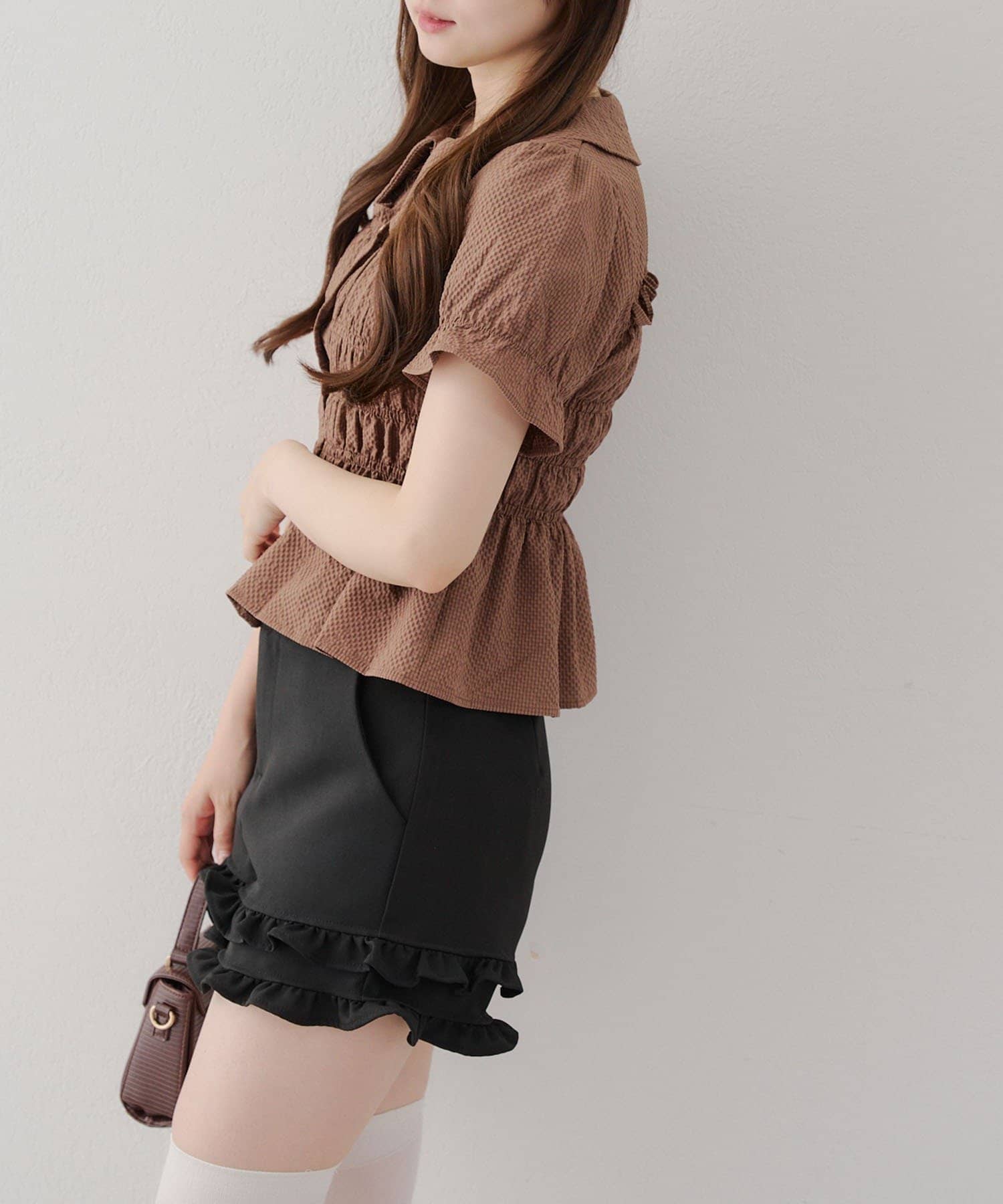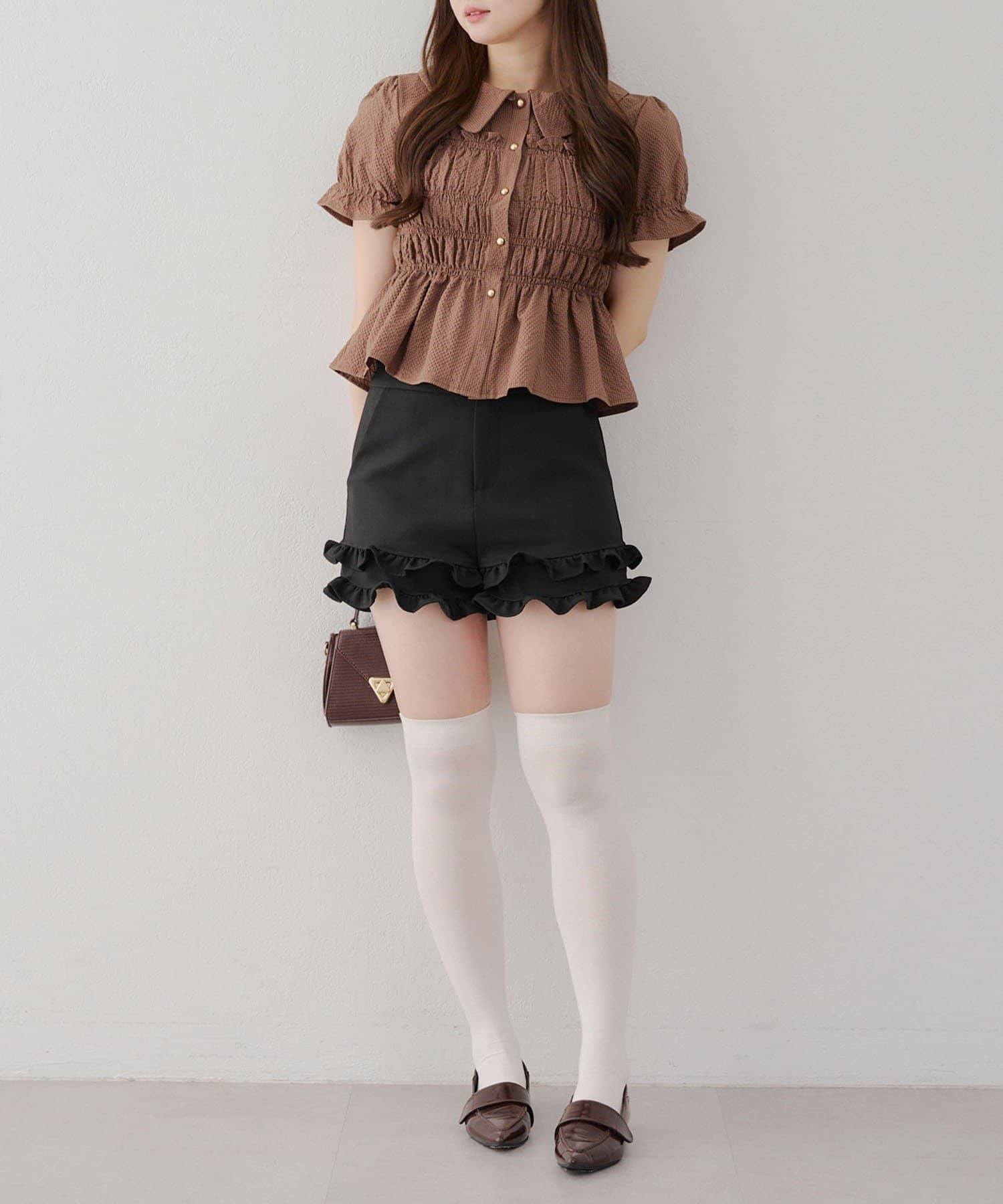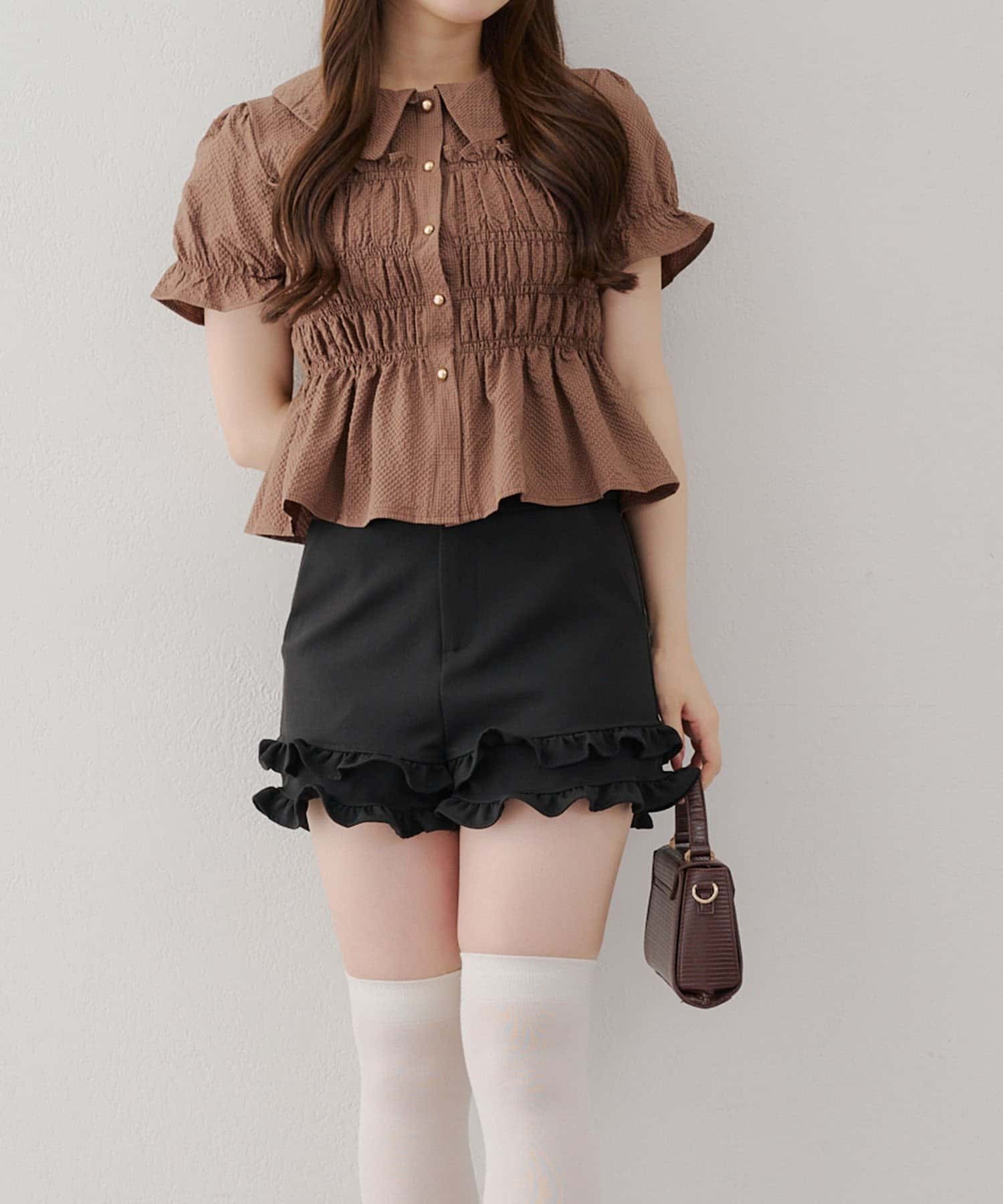・韓国ガーリーになれるシャーリングブラウス