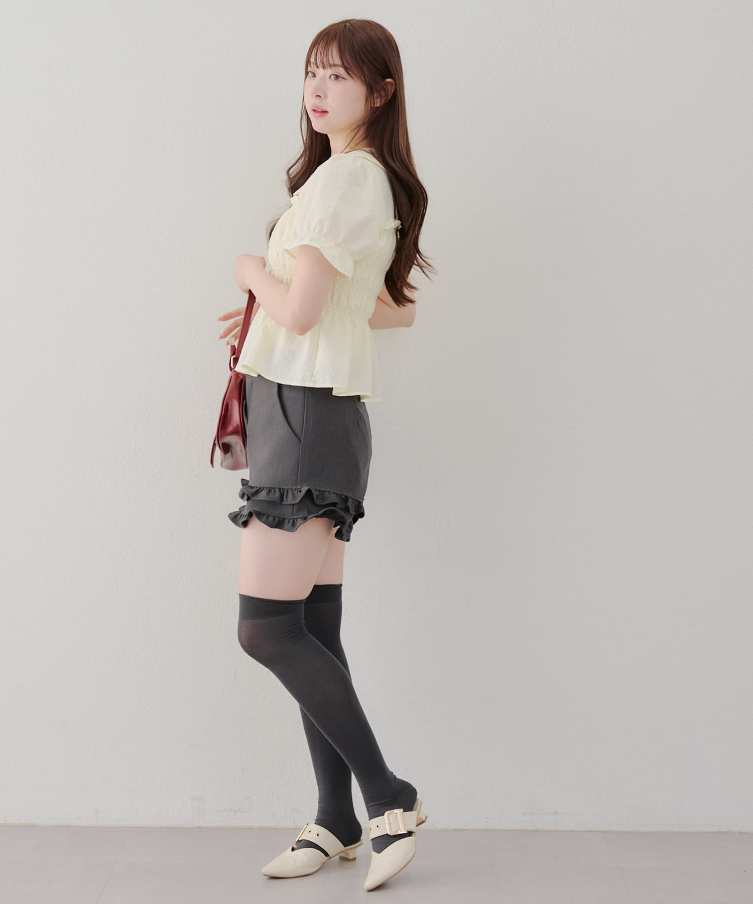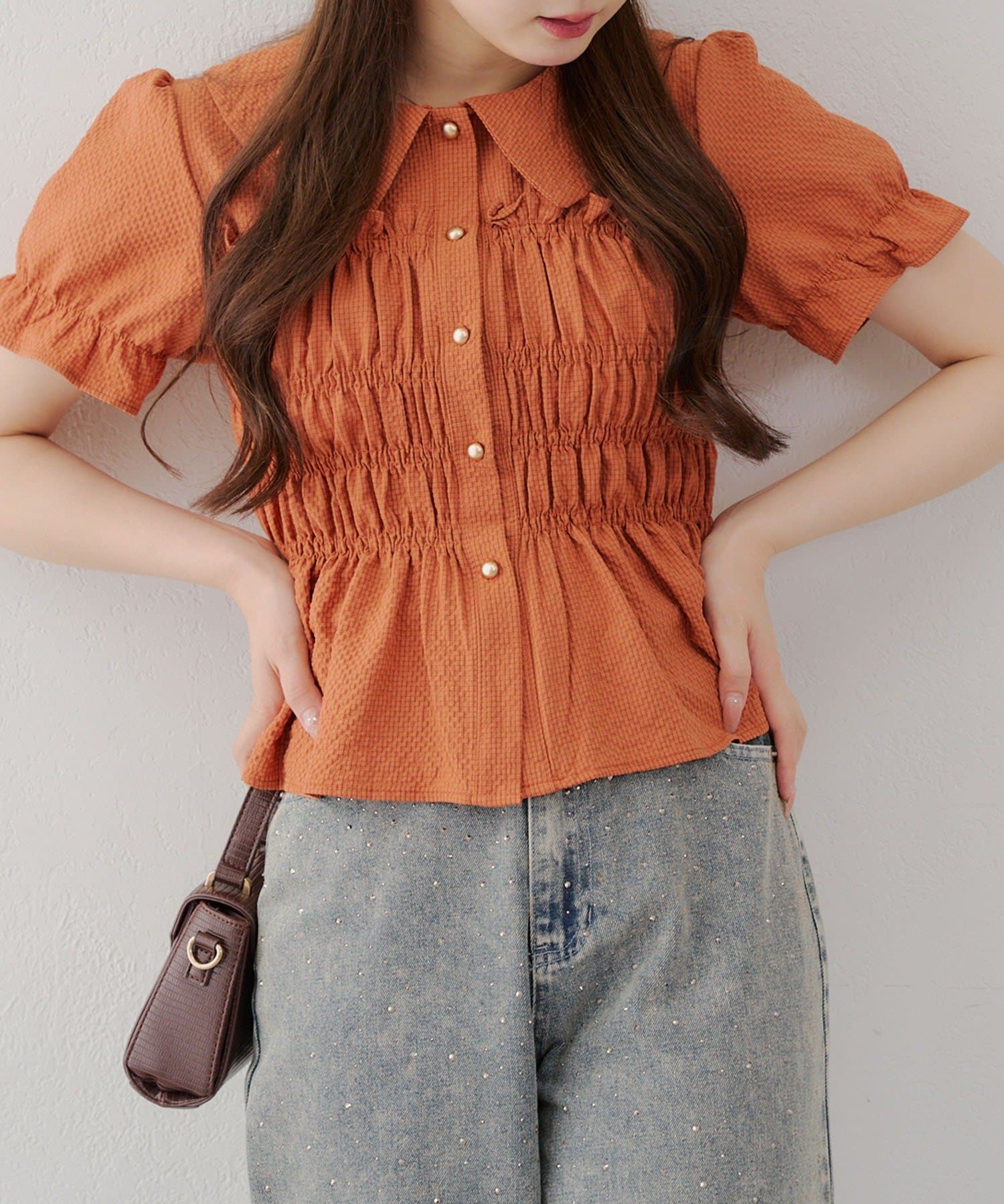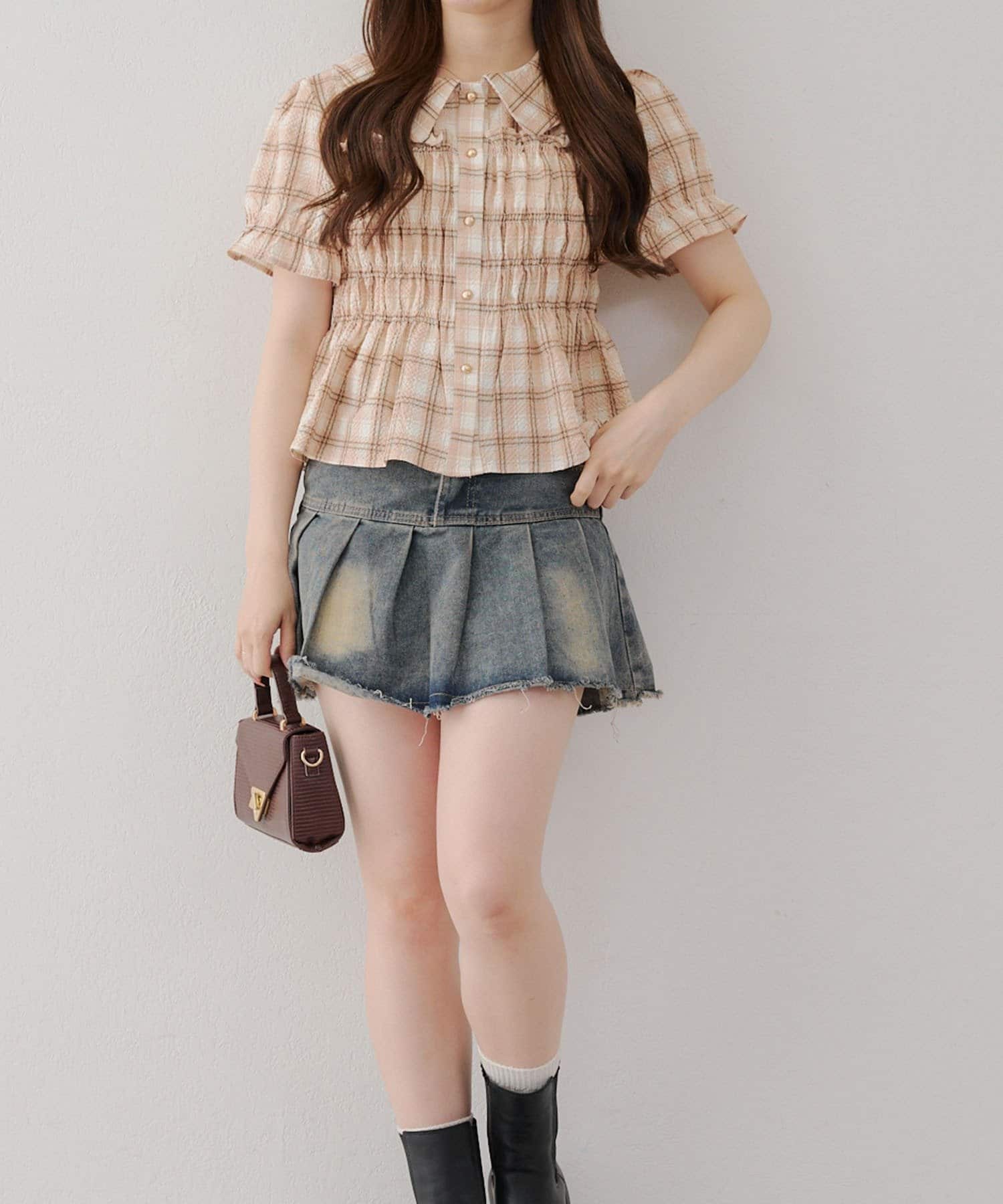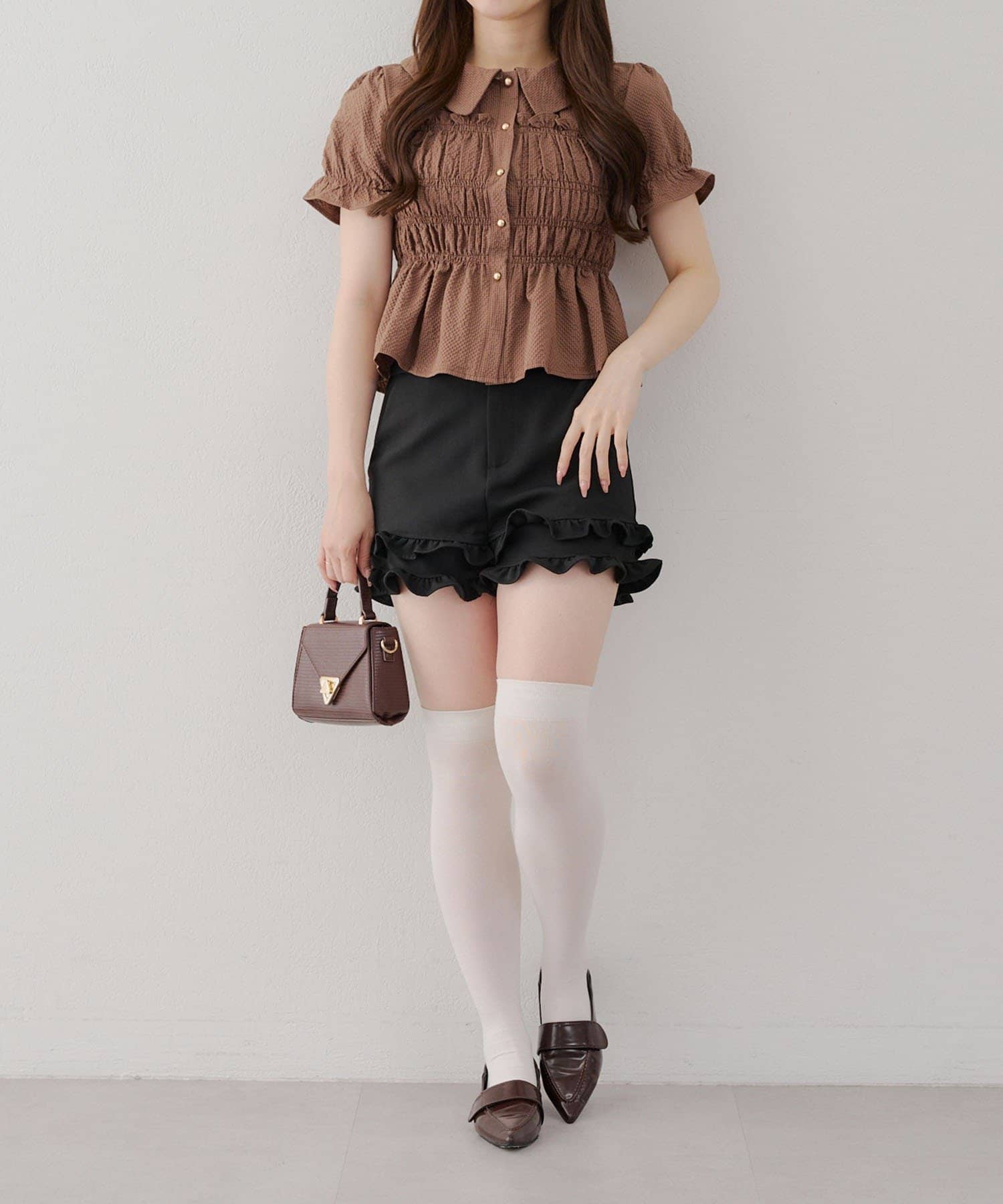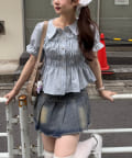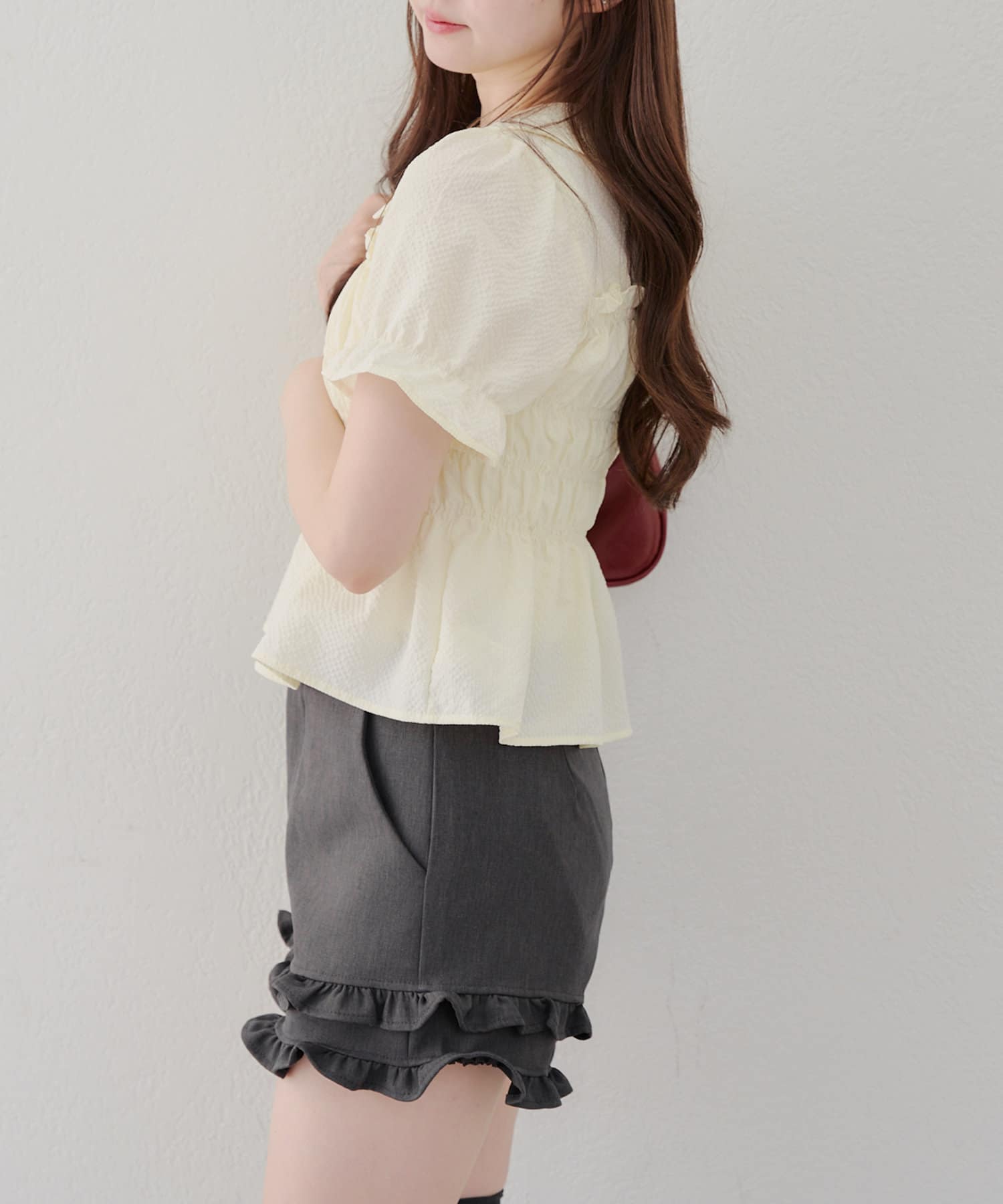 ・韓国ガーリーになれるシャーリングブラウス
