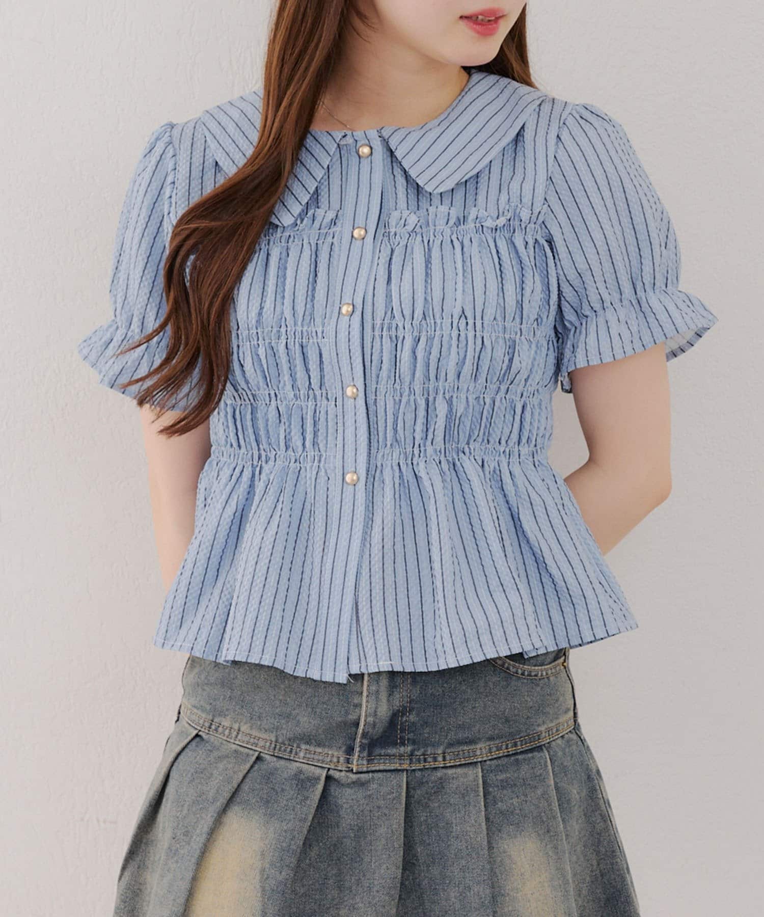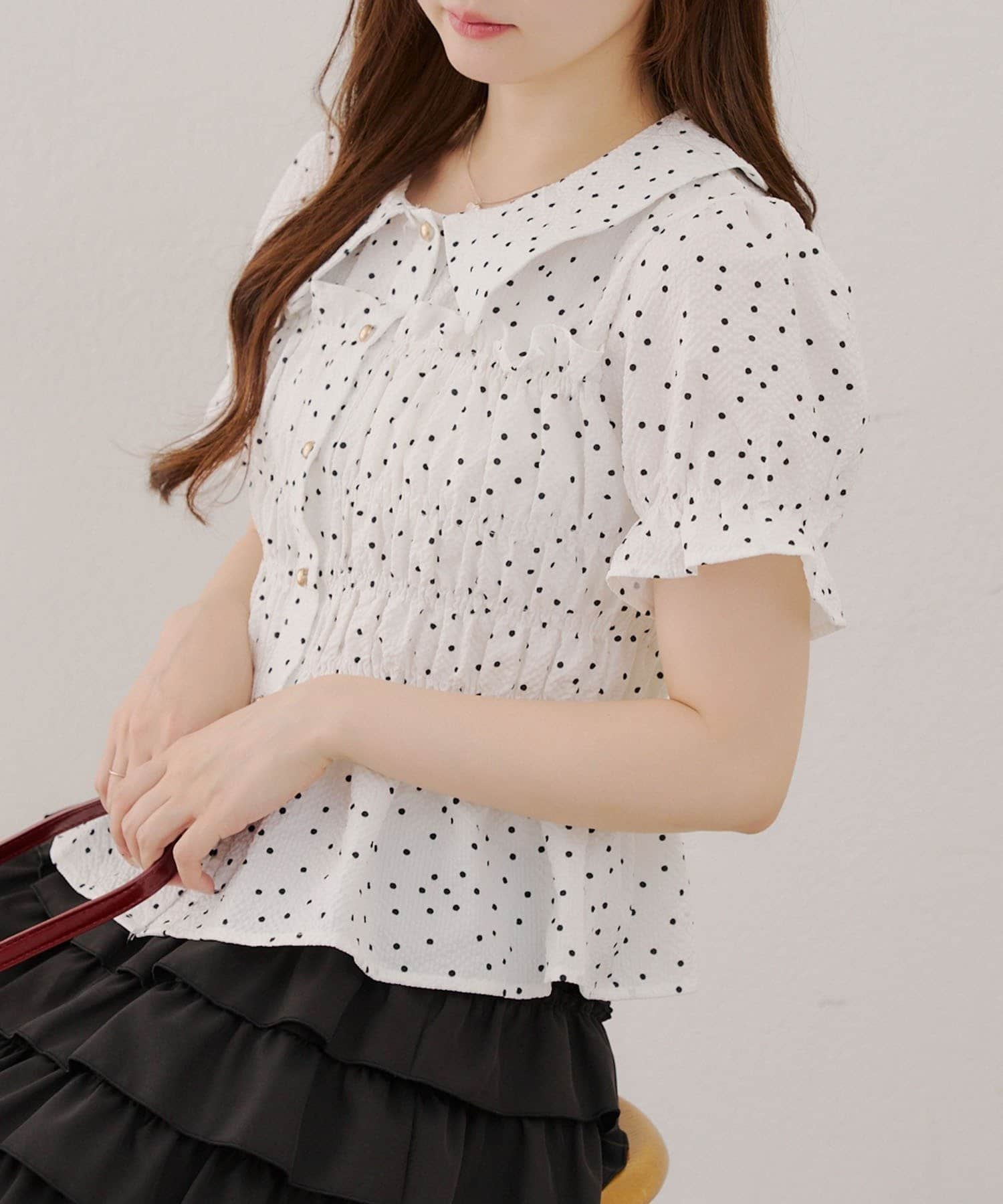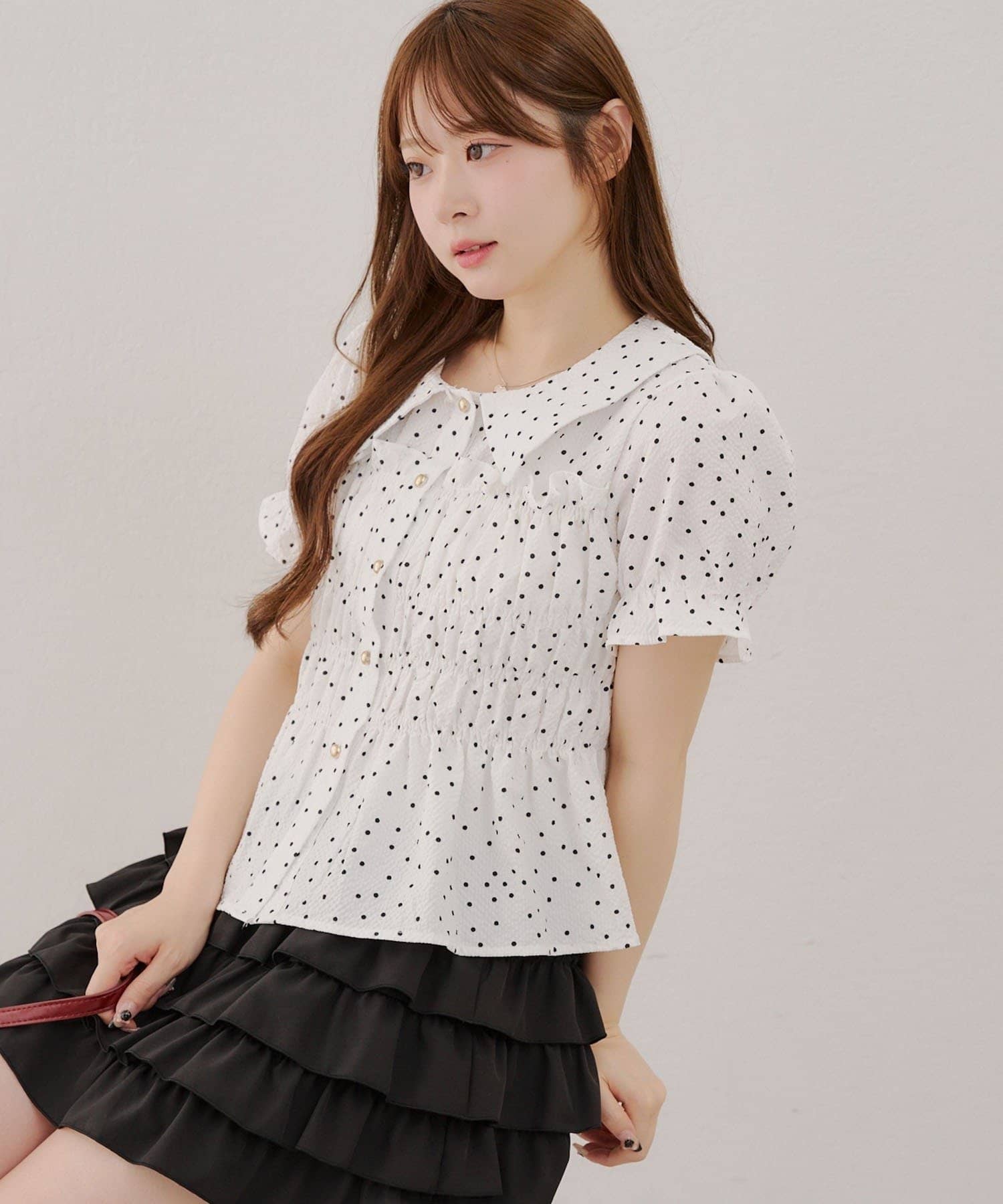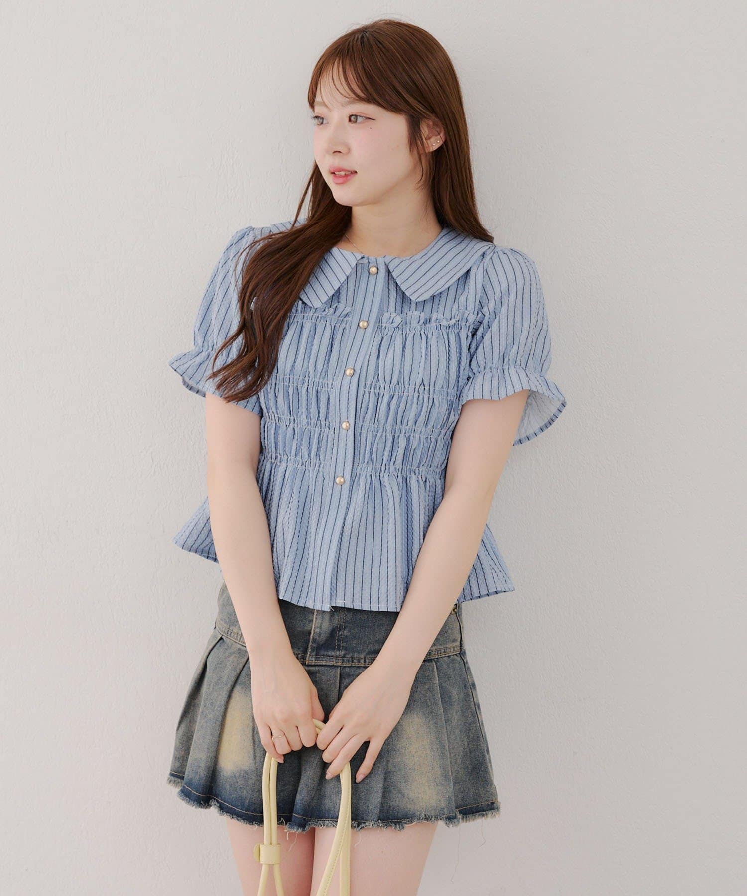 トレンド韓国ガーリーコーデに♪シャーリング衿付ブラウス