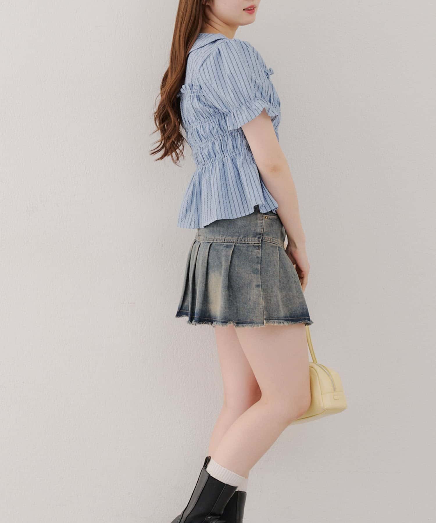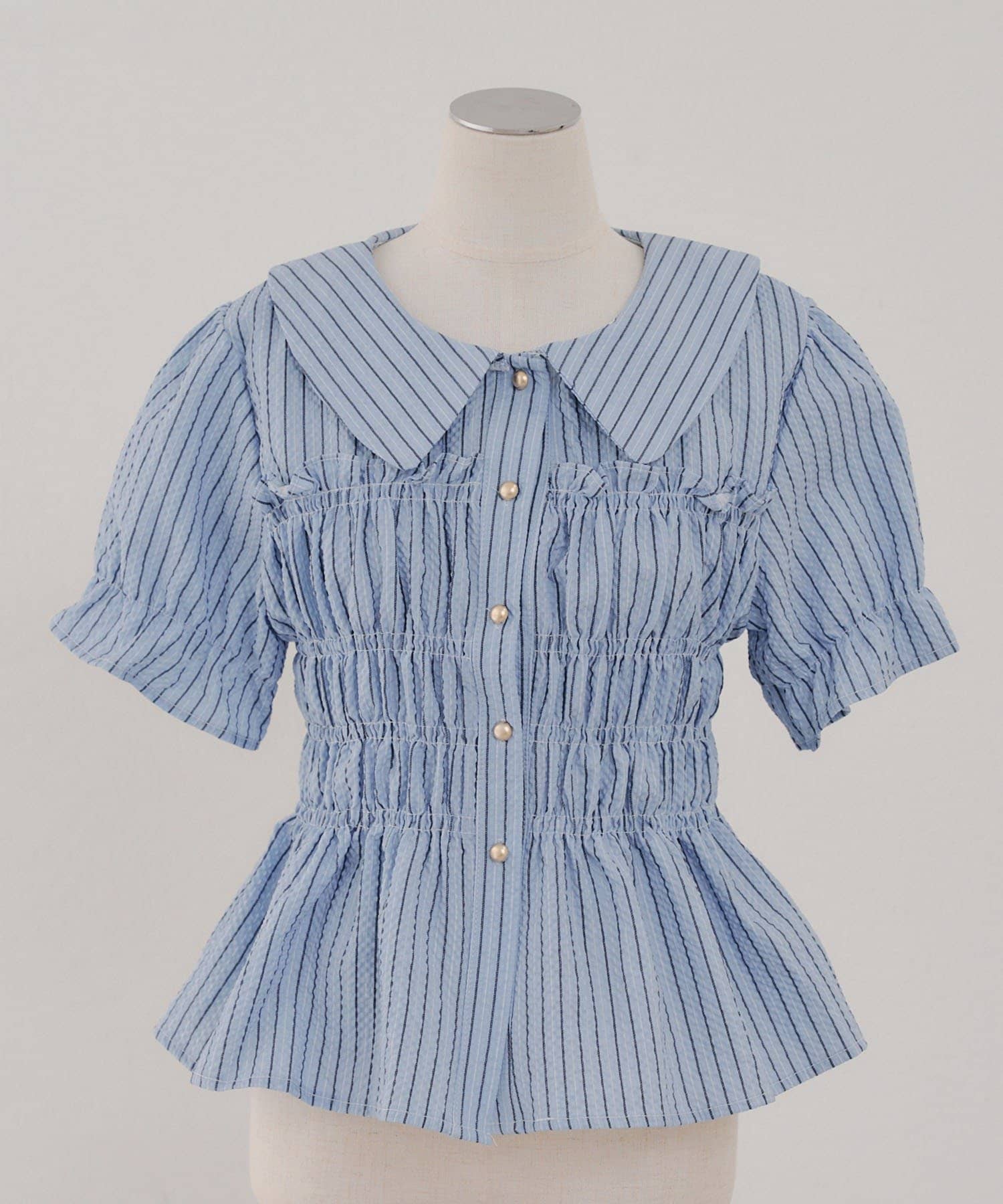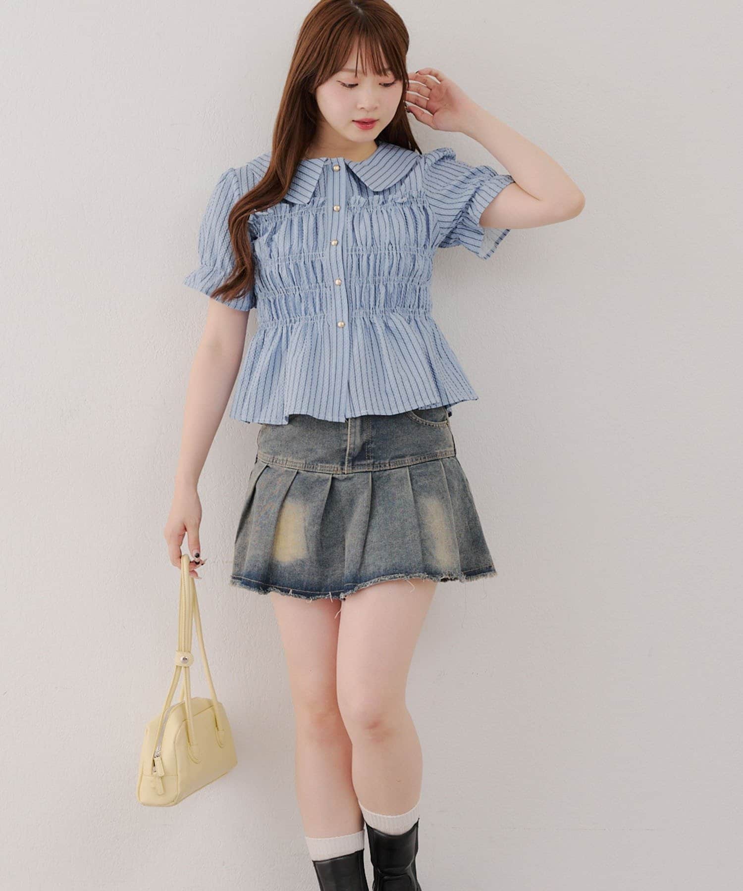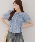 トレンド韓国ガーリーコーデに♪シャーリング衿付ブラウス