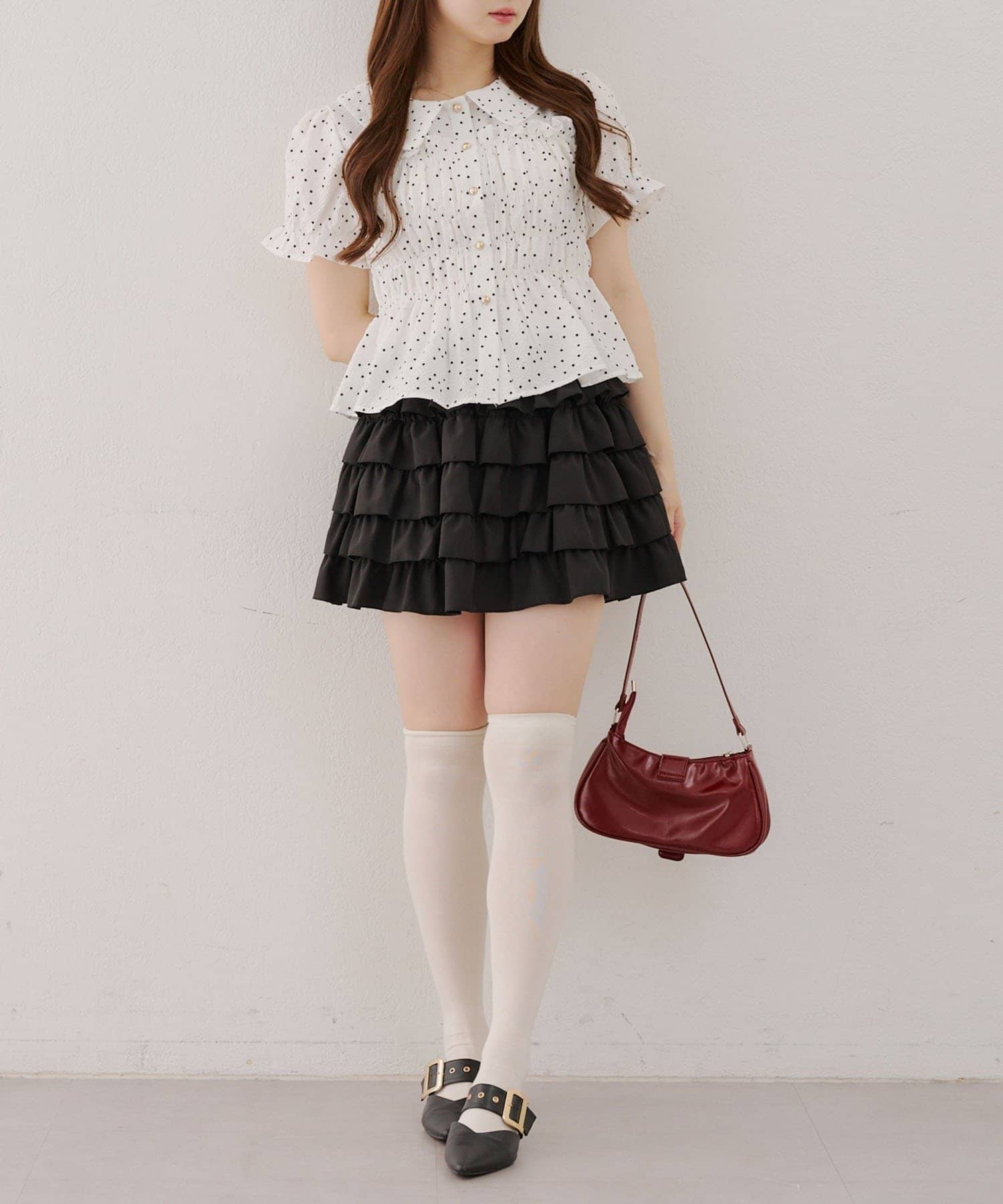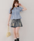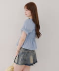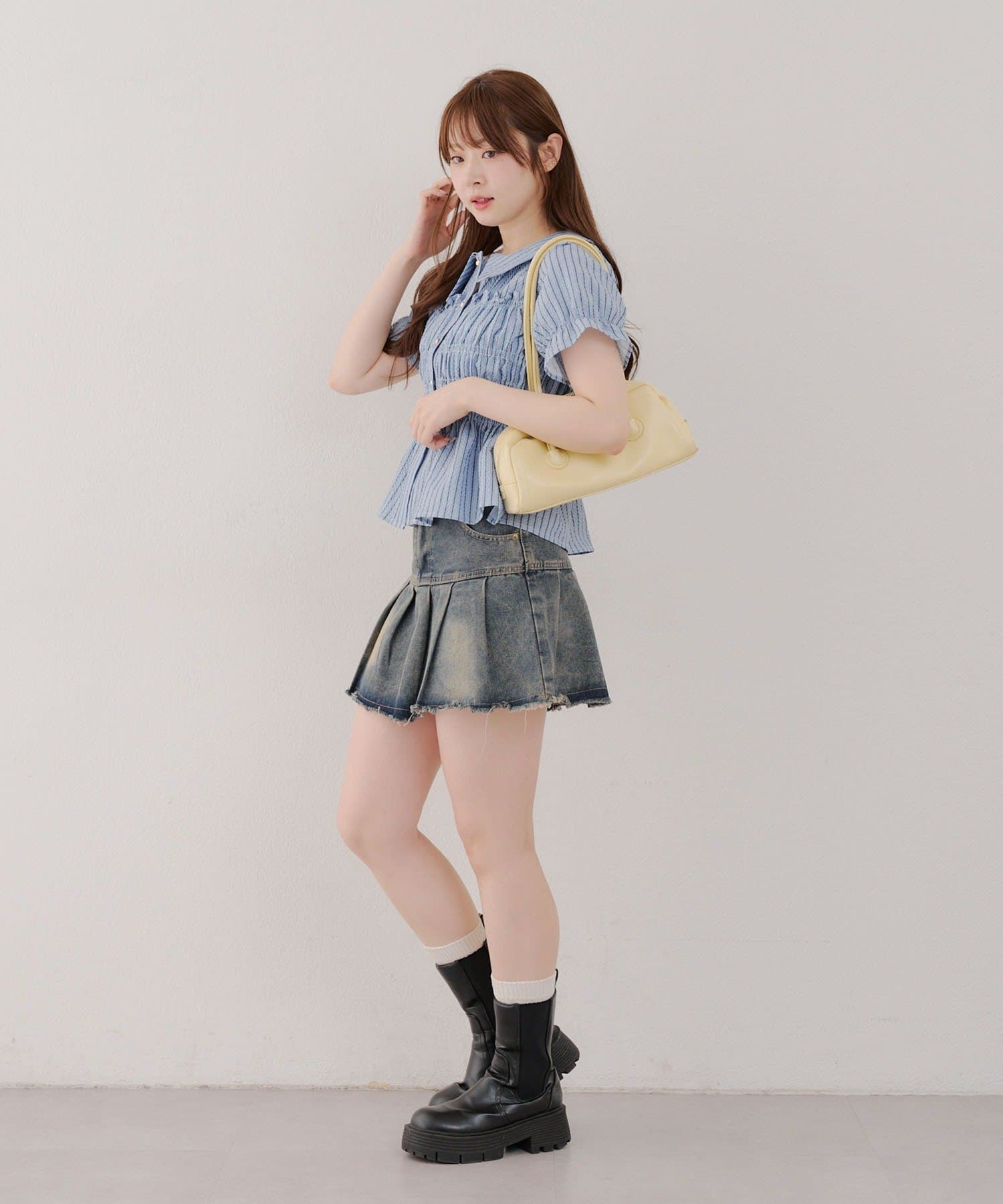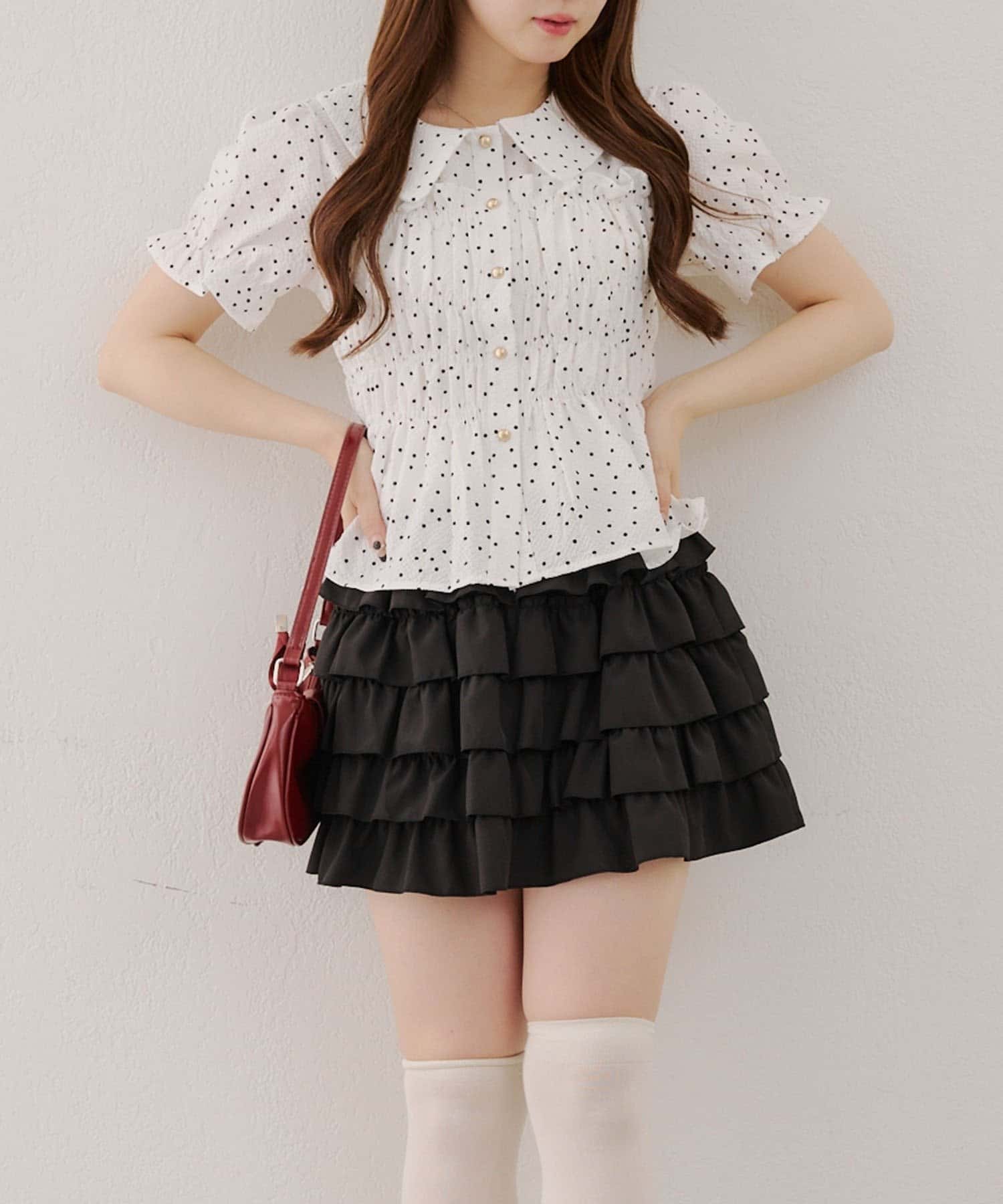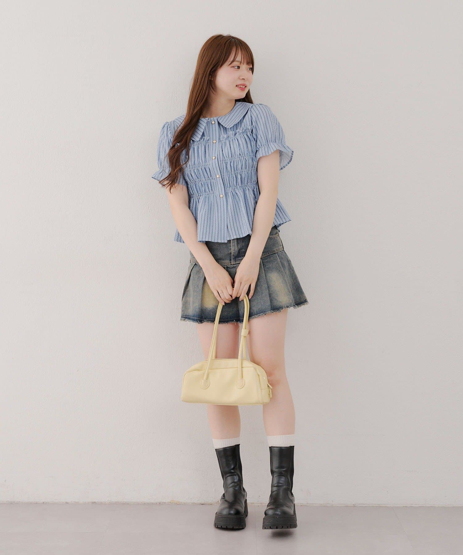 トレンド韓国ガーリーコーデに♪シャーリング衿付ブラウス