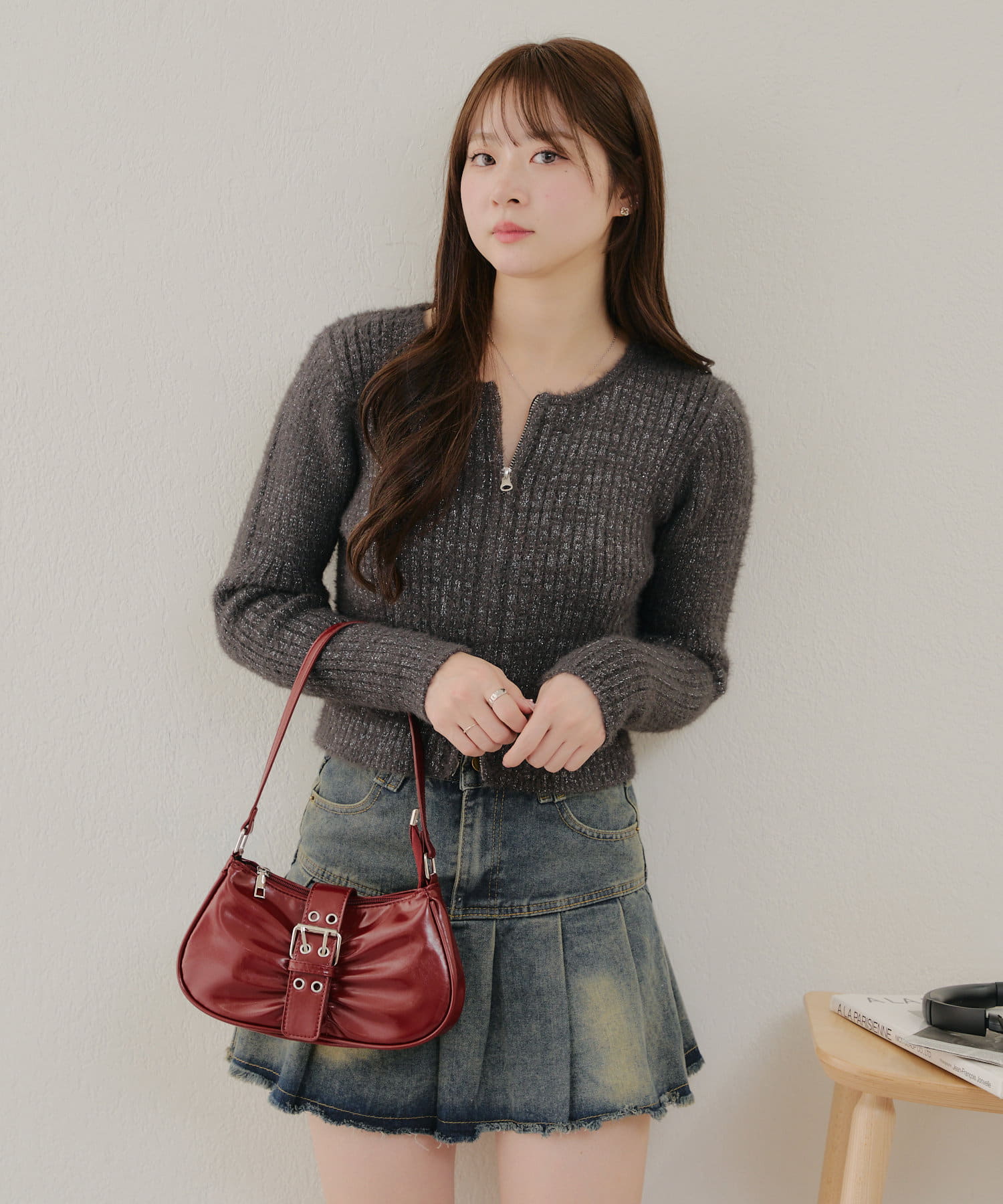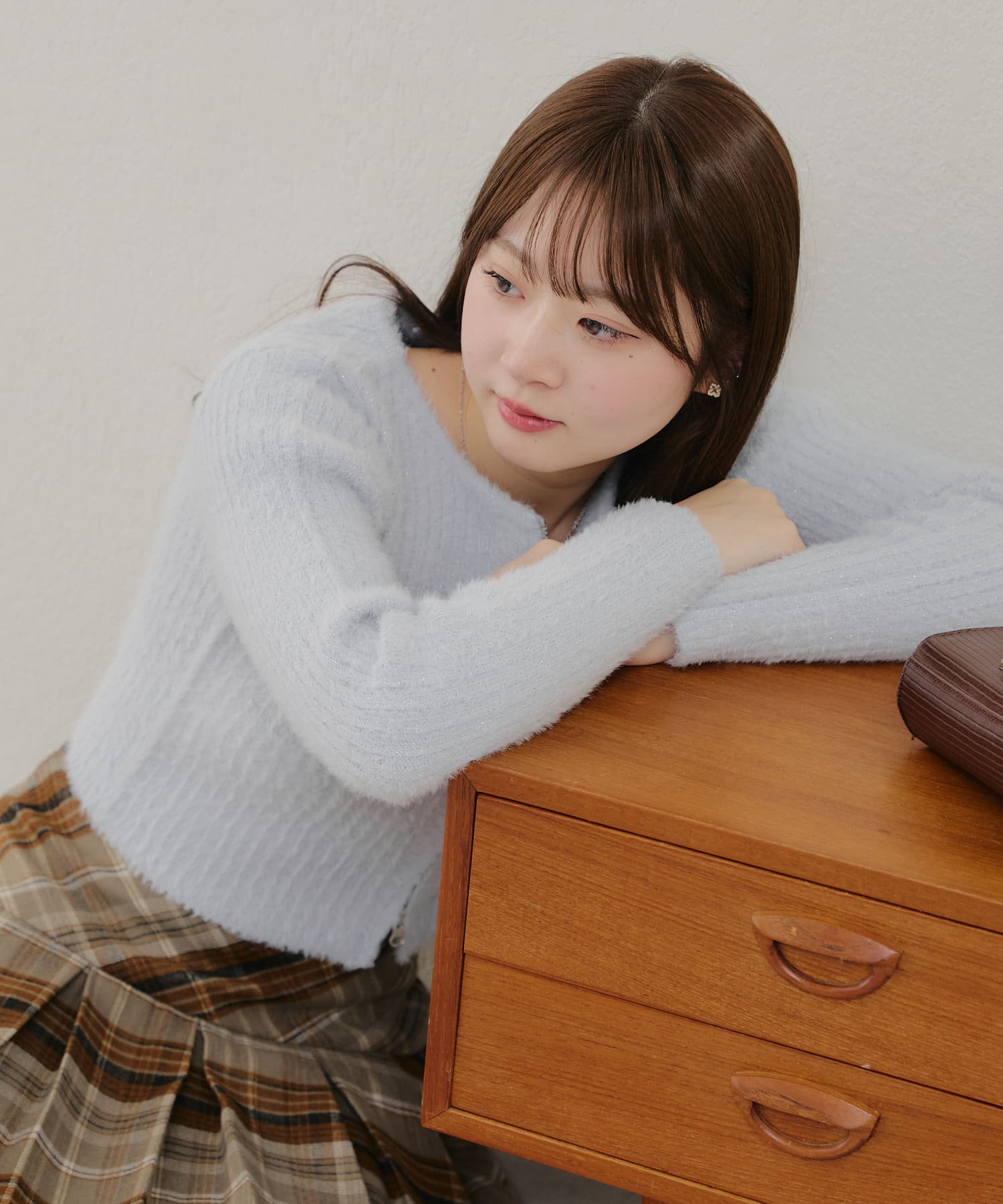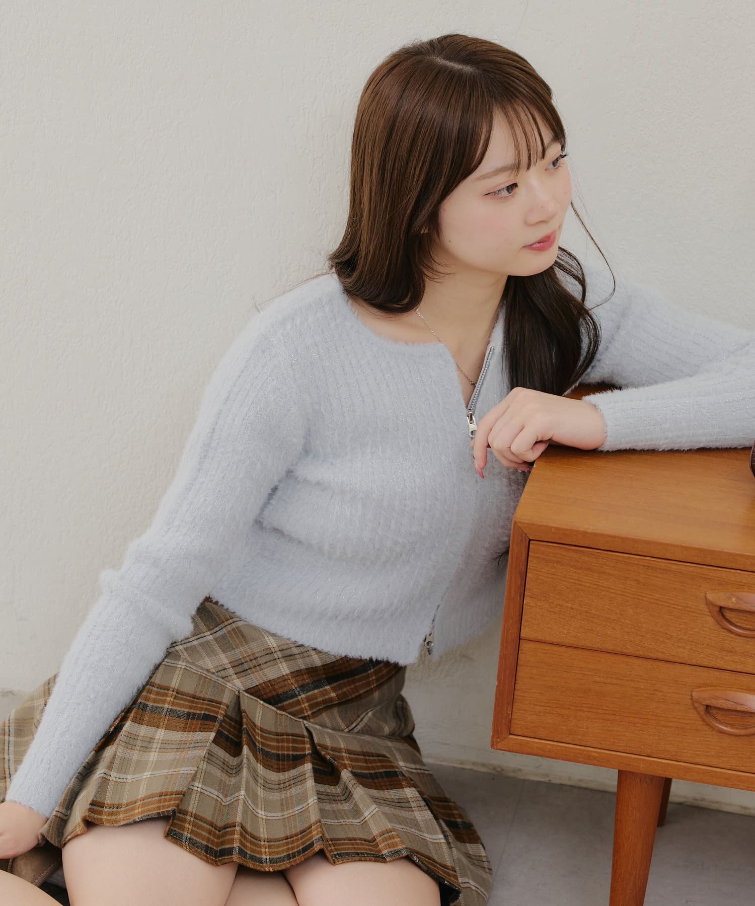 【春の新作】【OUTLET限定】ラメフェザーWZIPトップス
