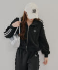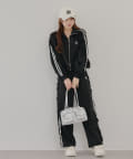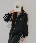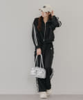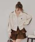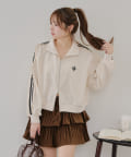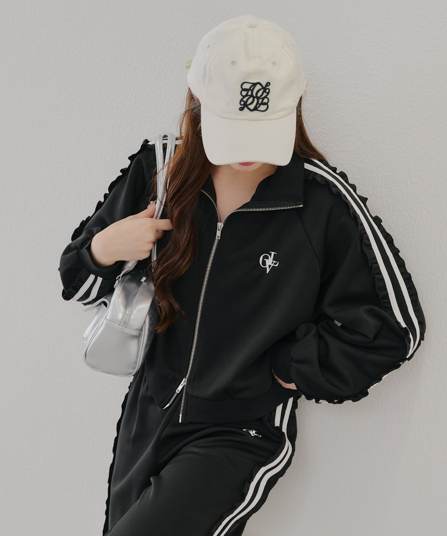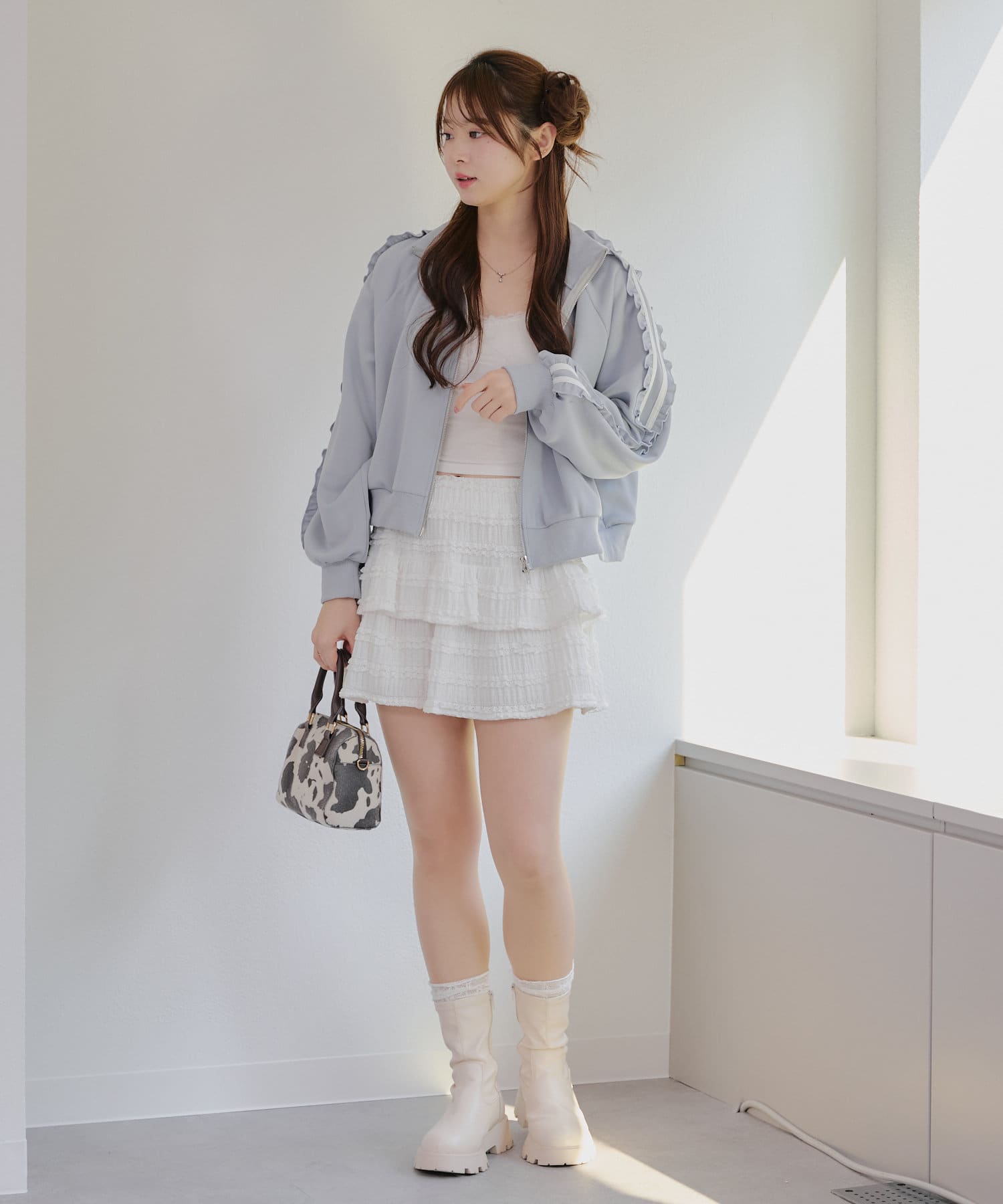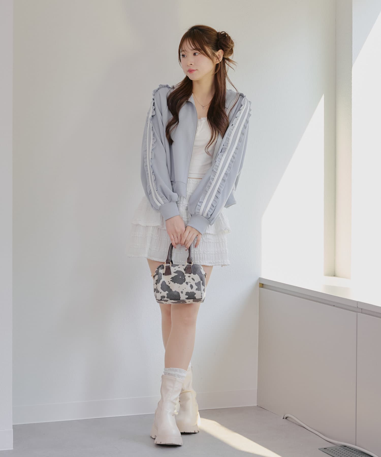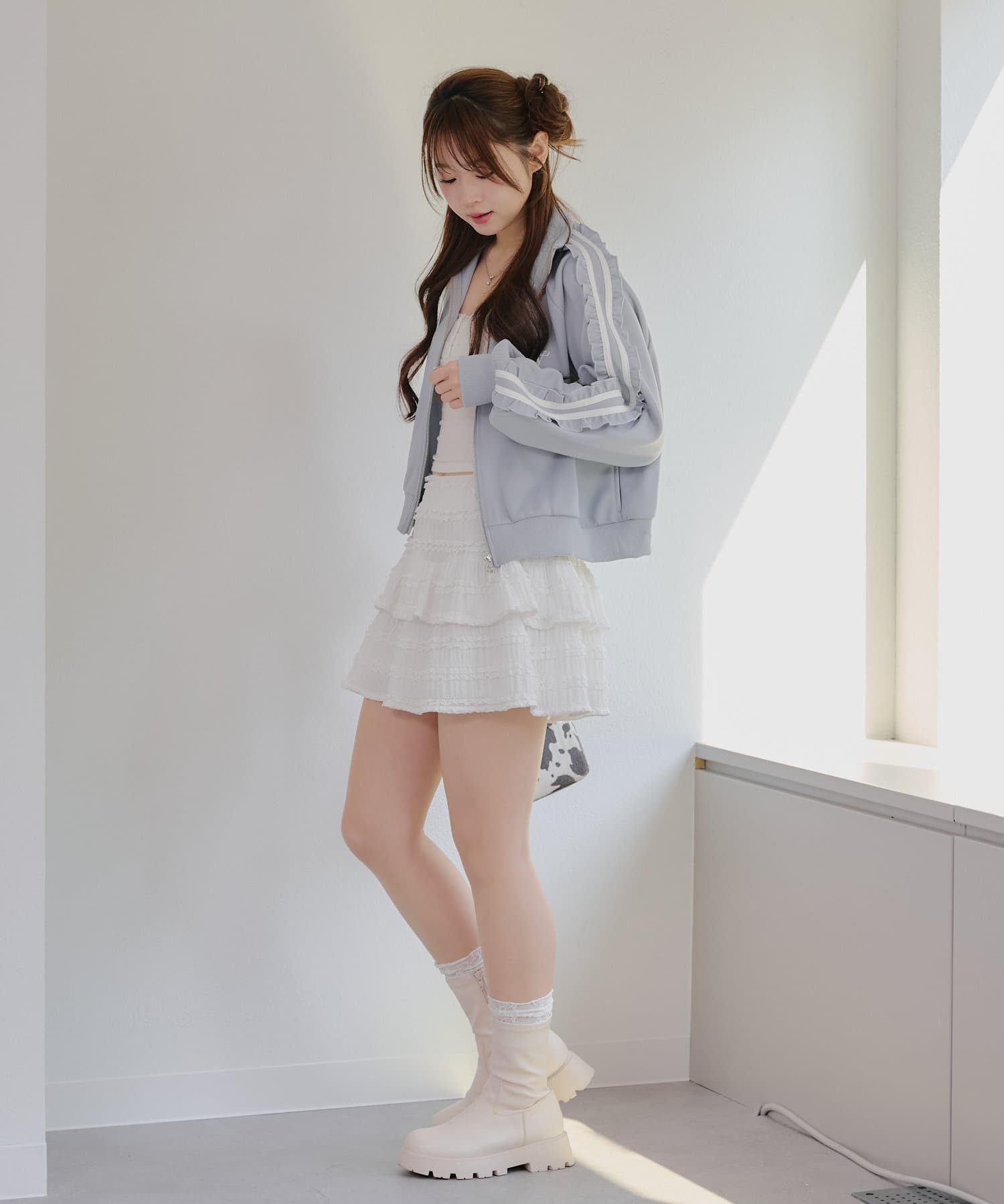お袖のラインとフリルがカジュアルでガーリーなジャージトップス。