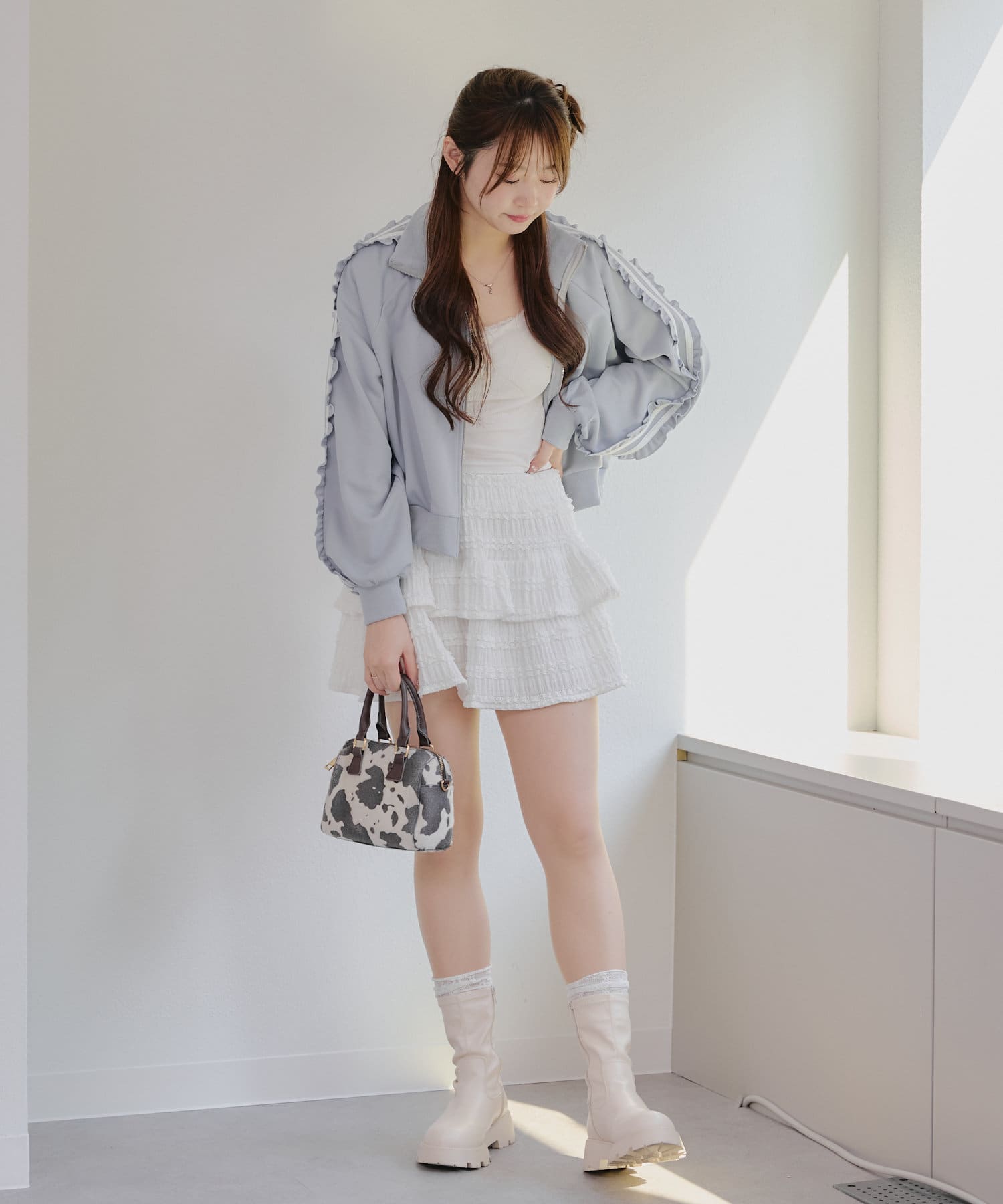 ミニのフリルスカートと合わせてガーリーなコーデもおすすめ♪