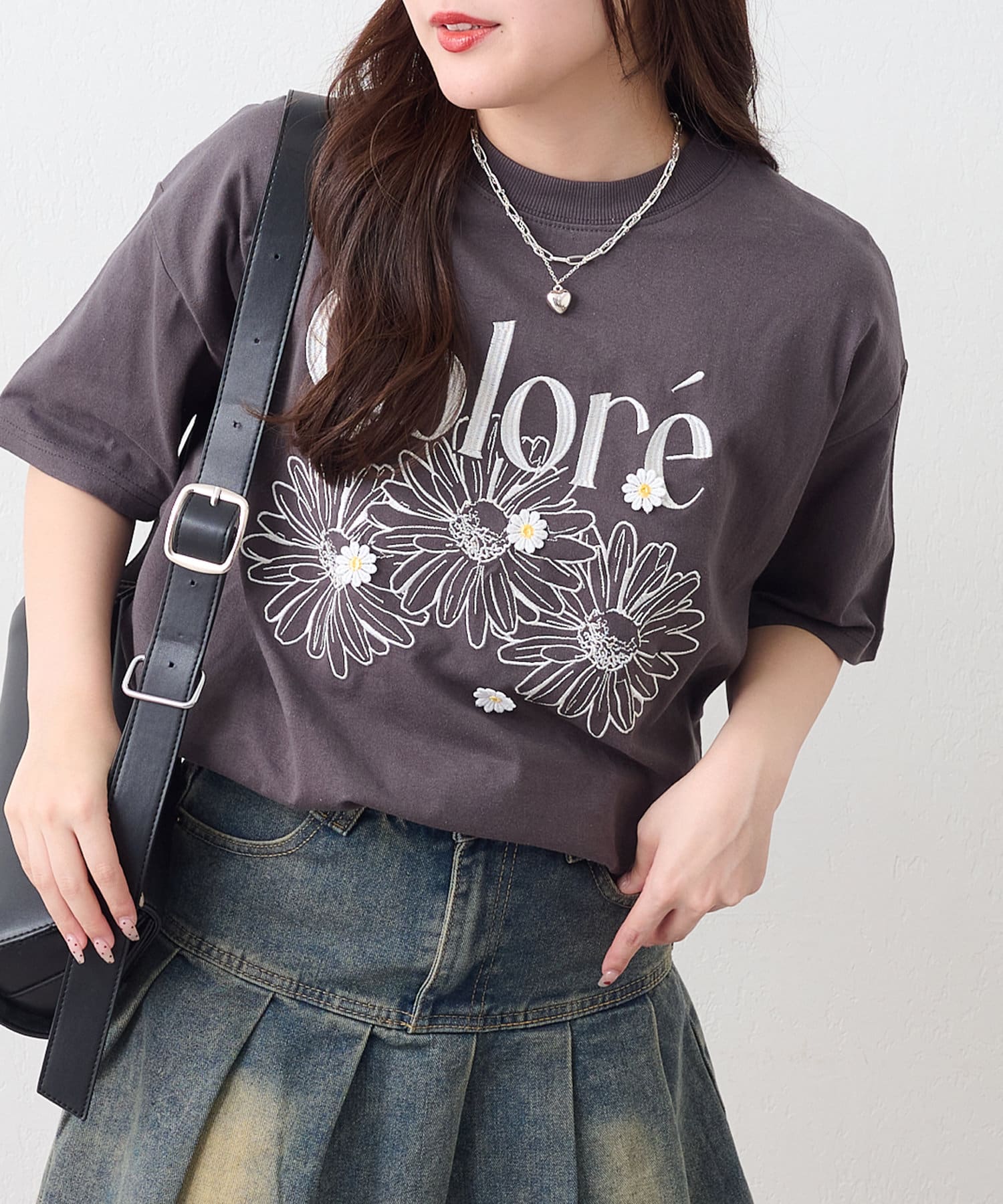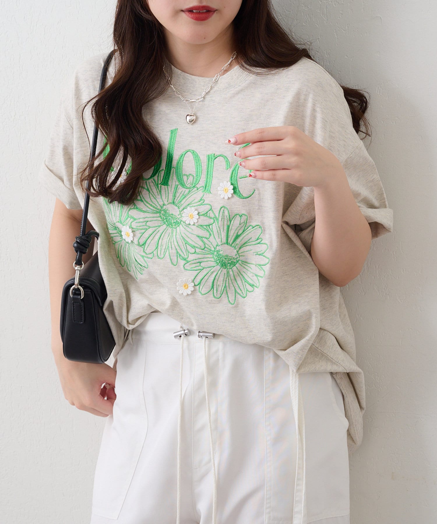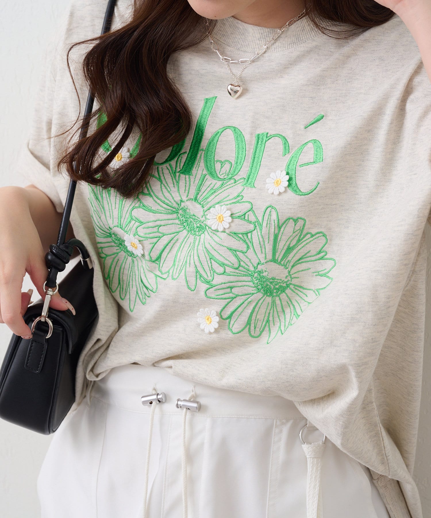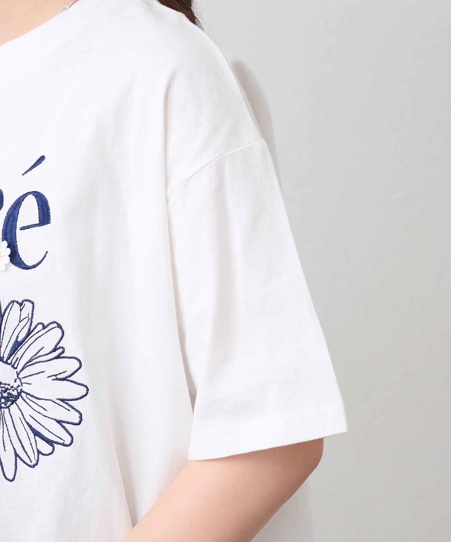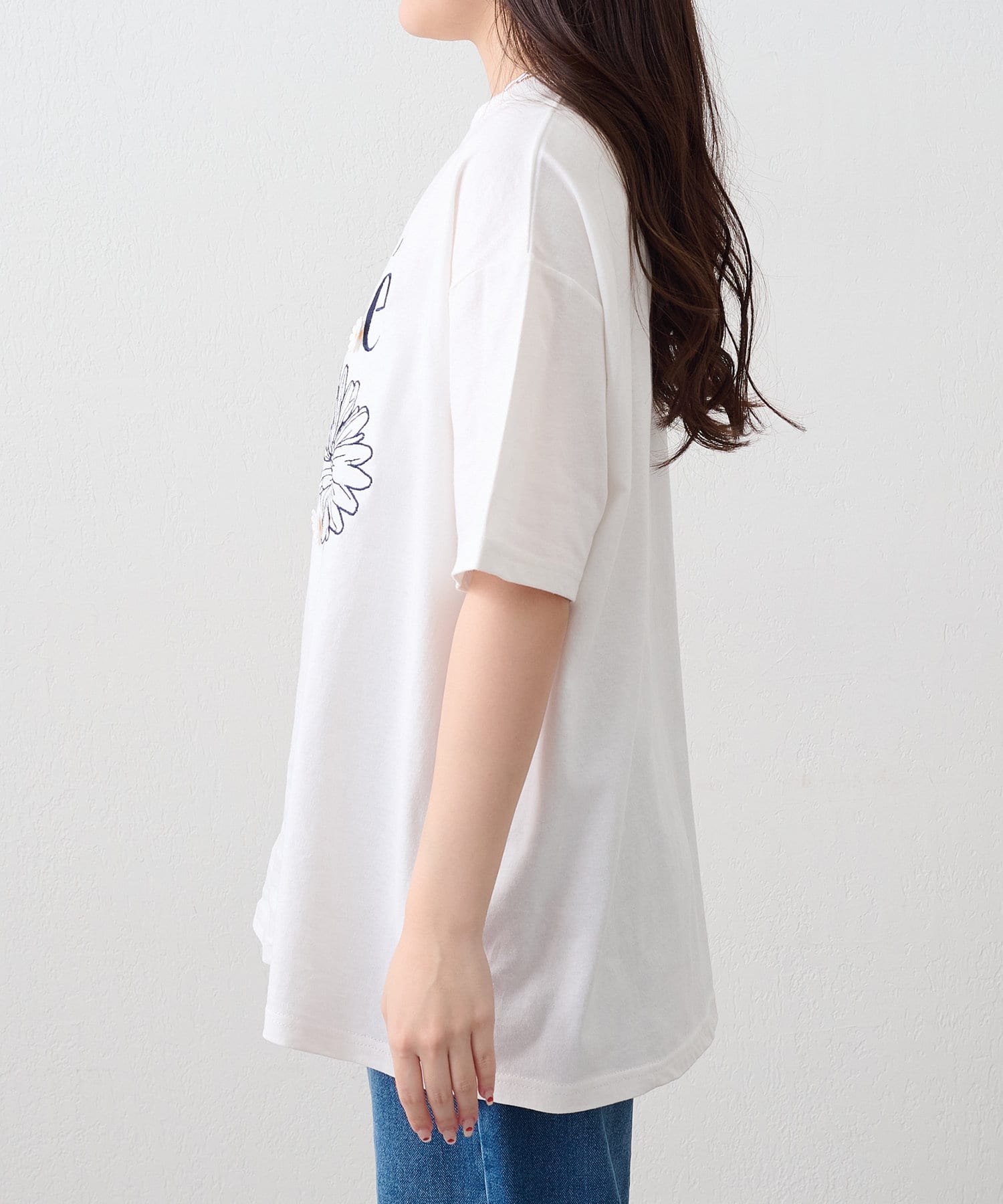 ・お花刺しゅうとマーガレットモチーフが可愛いBIGサイズTシャツ
