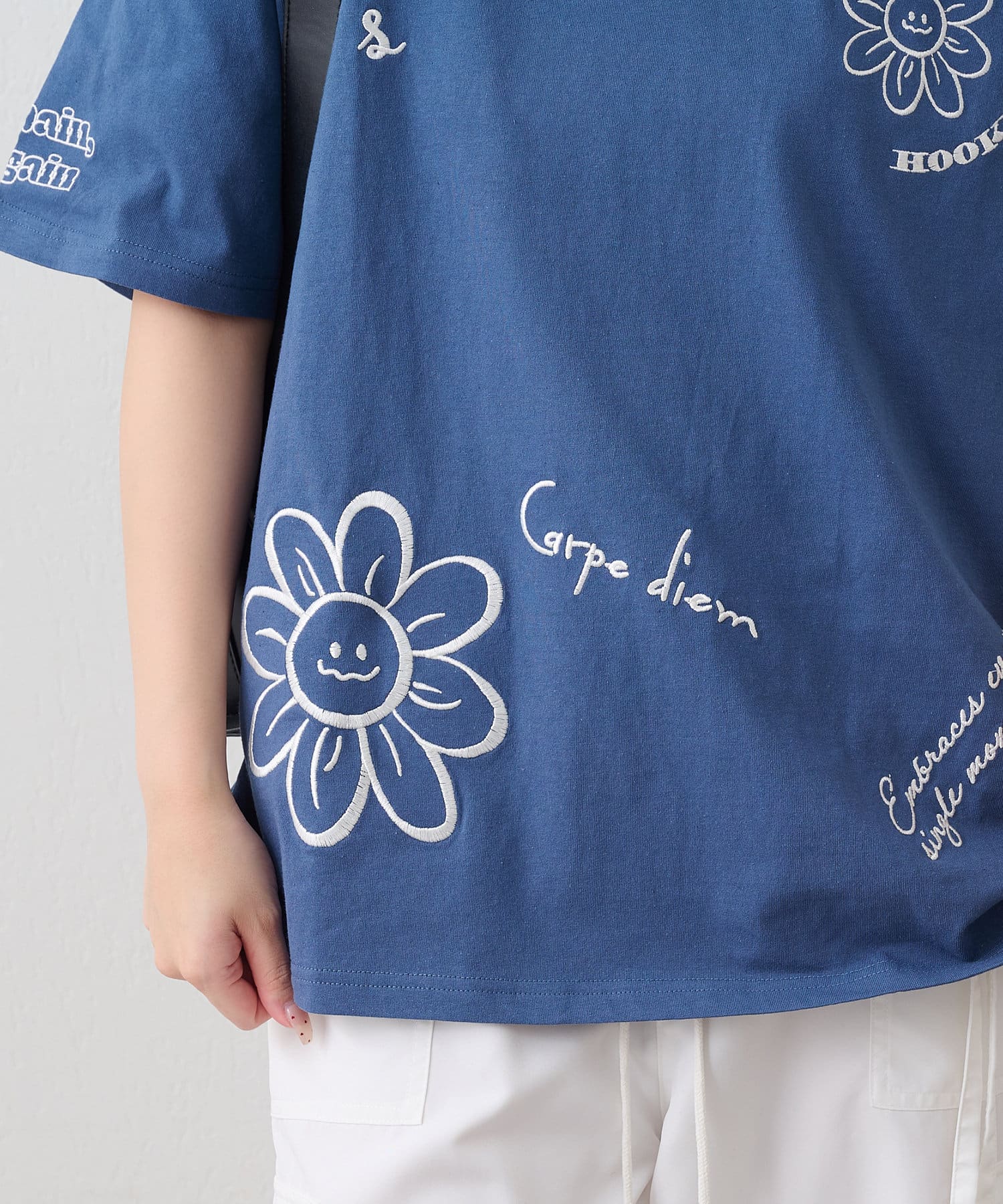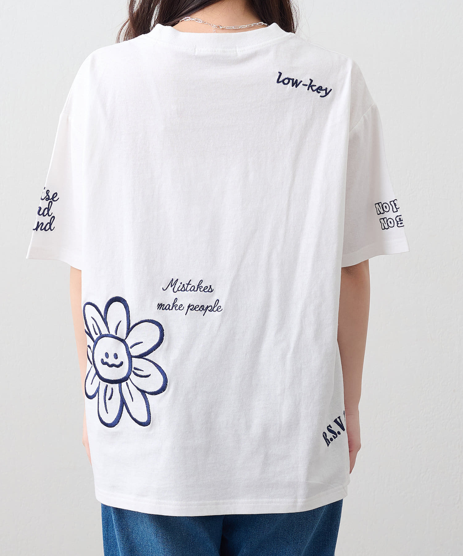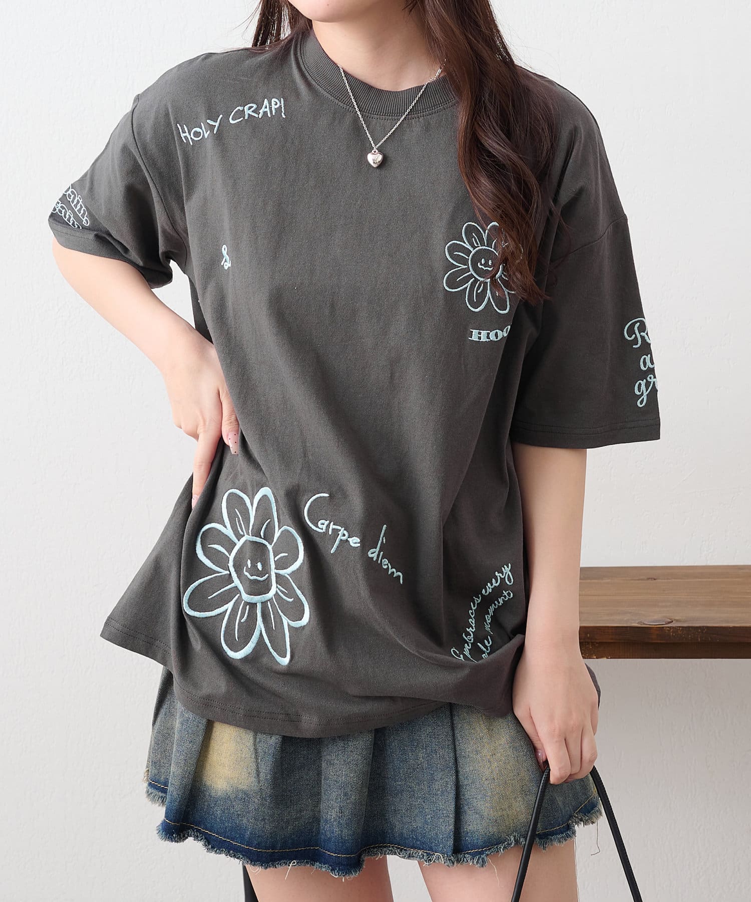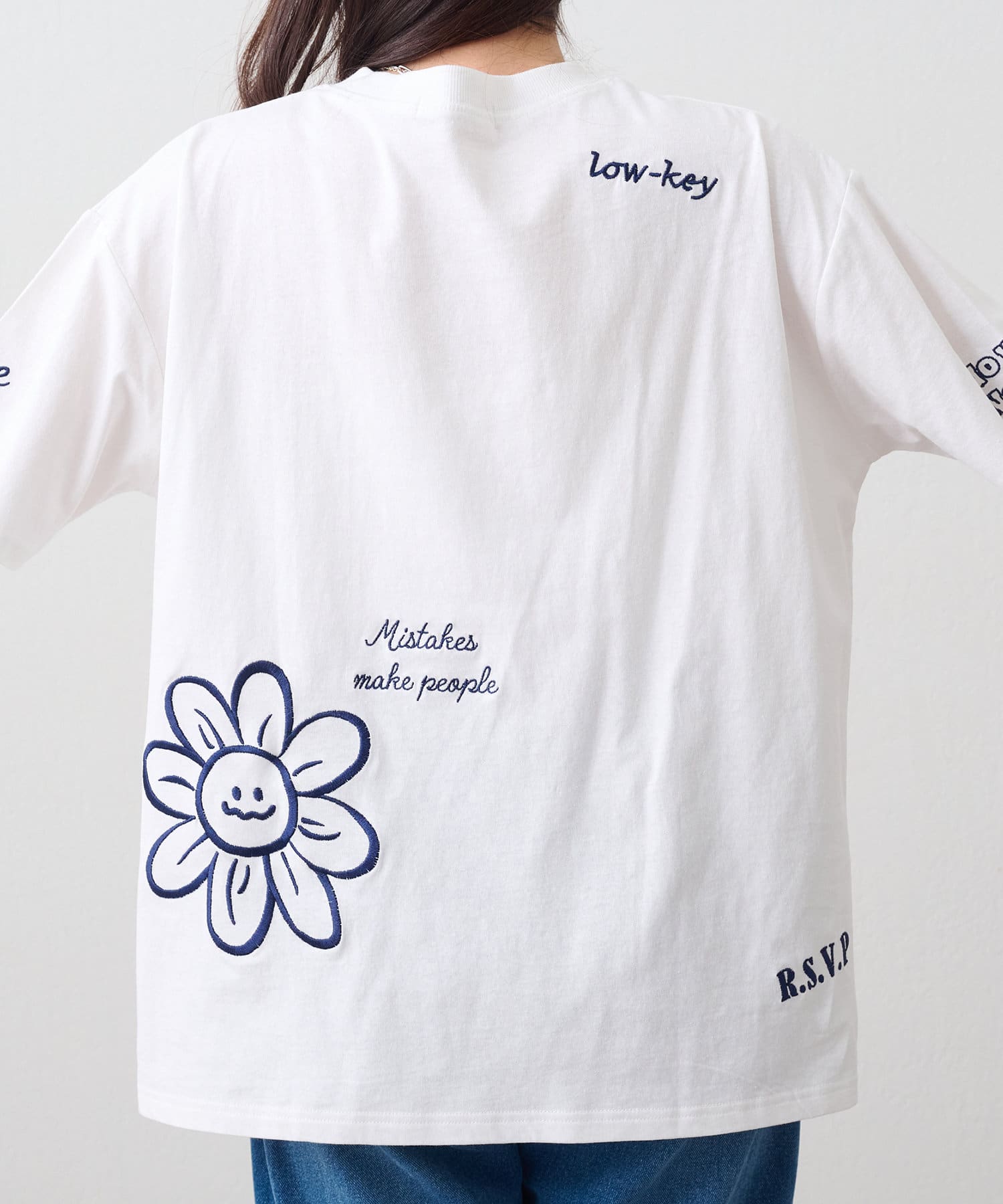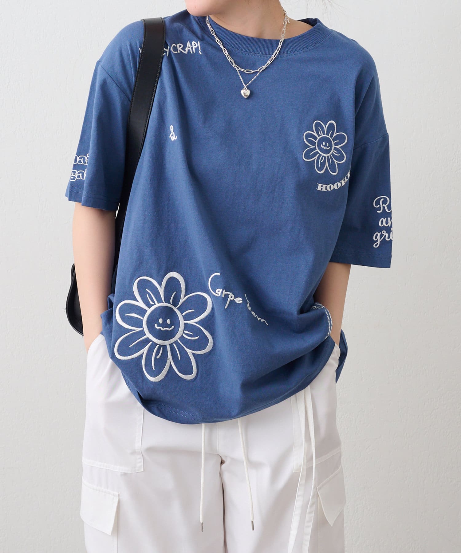 ・お花刺しゅうとマーガレットモチーフが可愛いBIGサイズTシャツ
