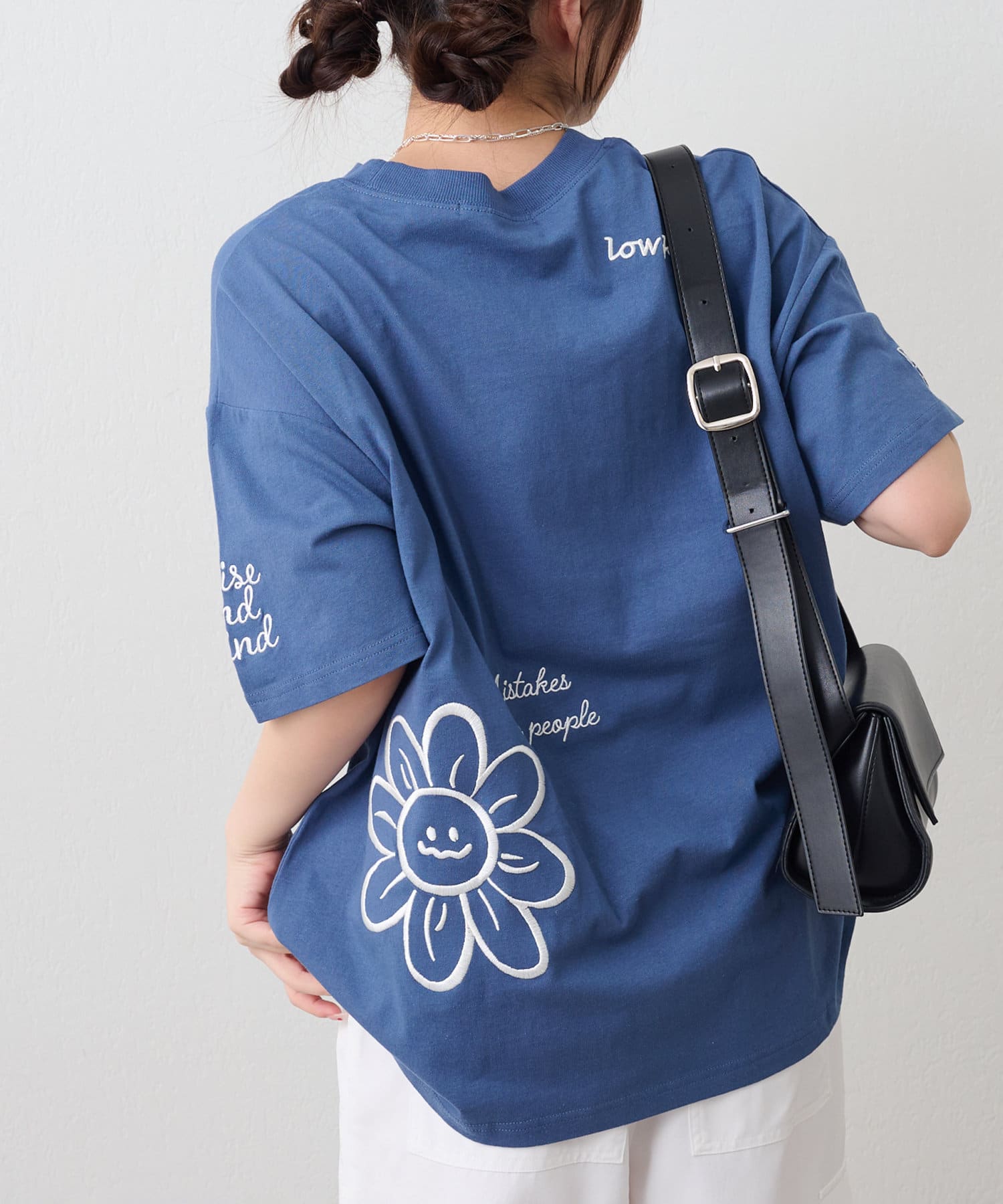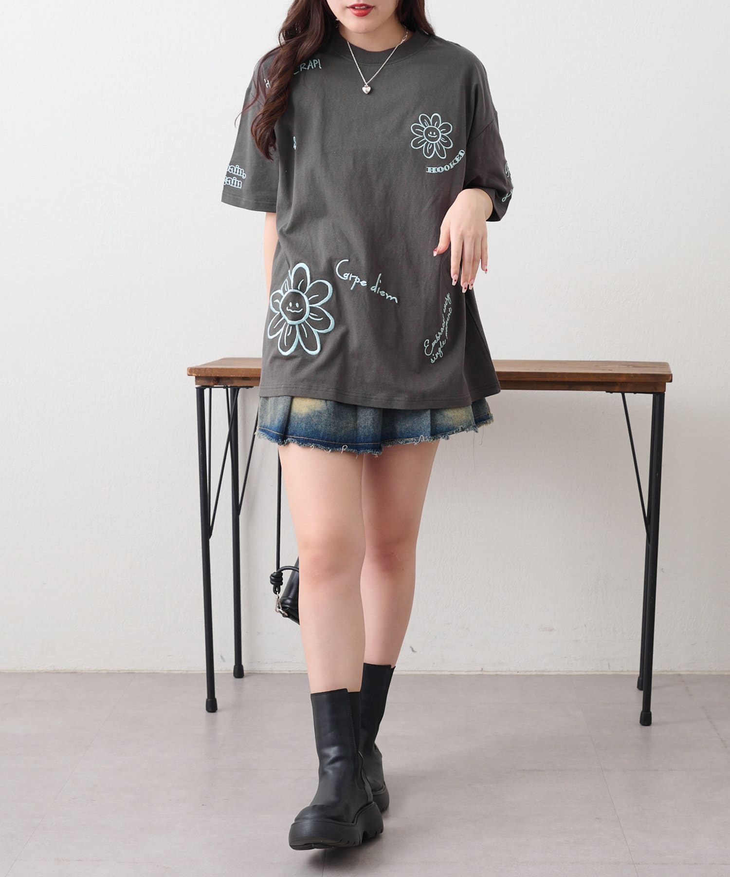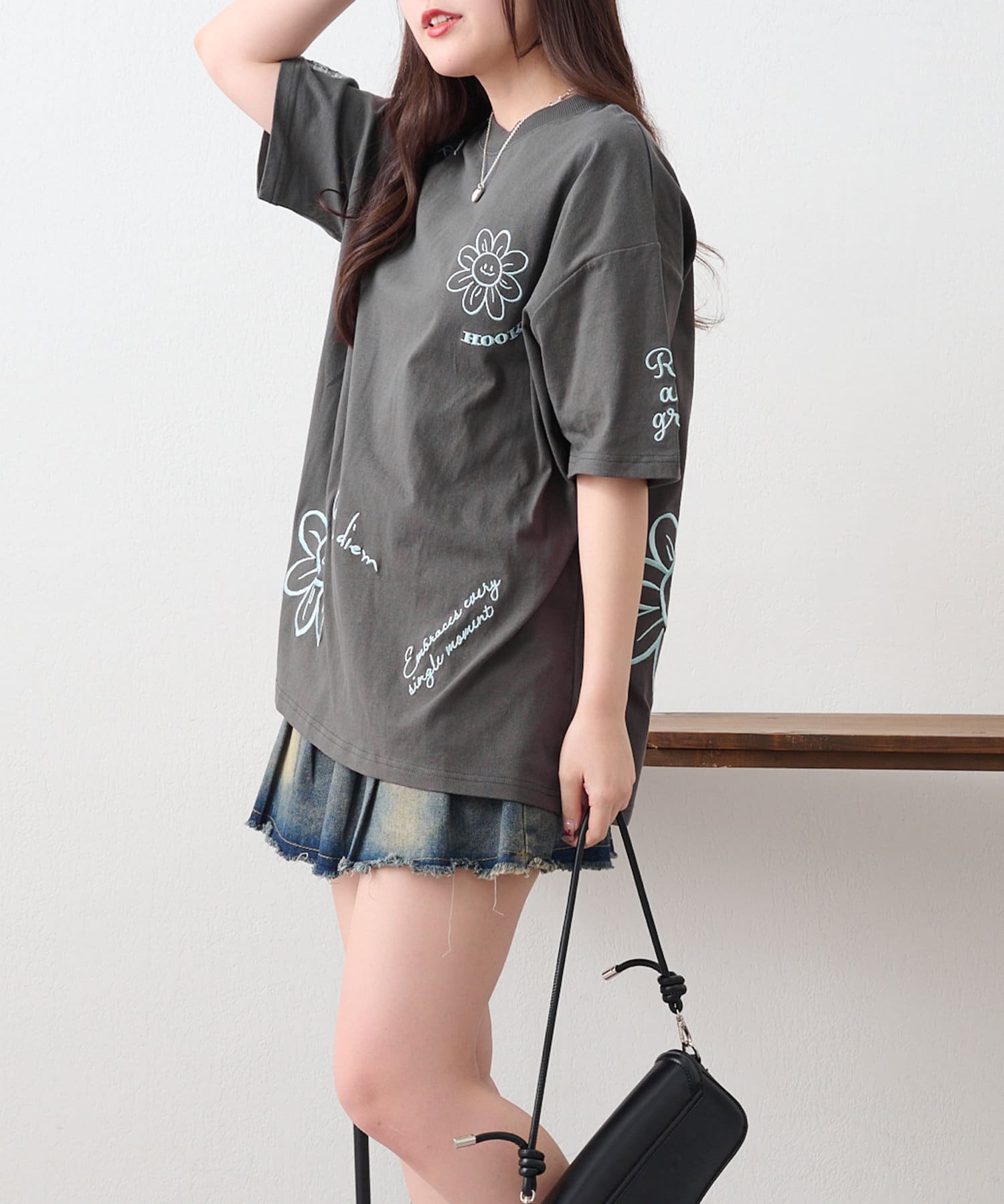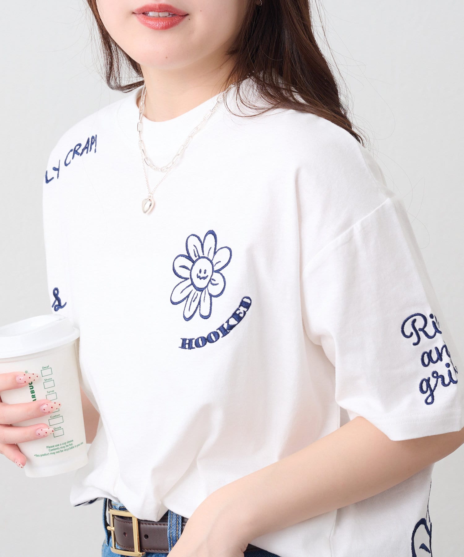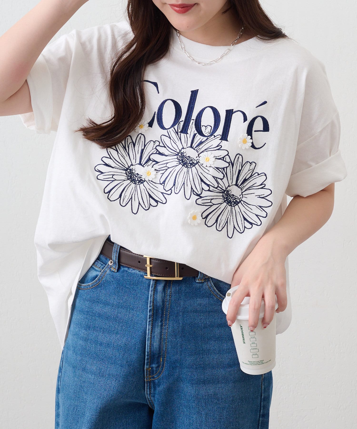 ・お花刺しゅうとマーガレットモチーフが可愛いBIGサイズTシャツ