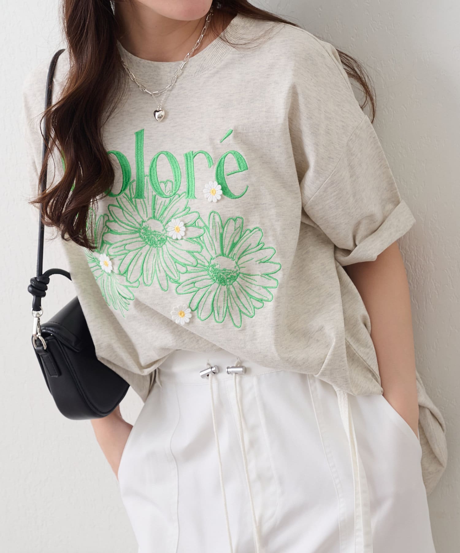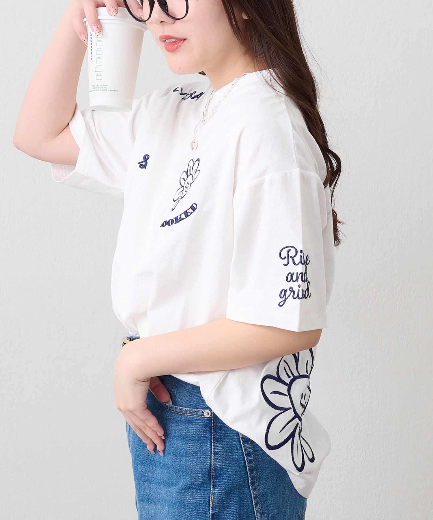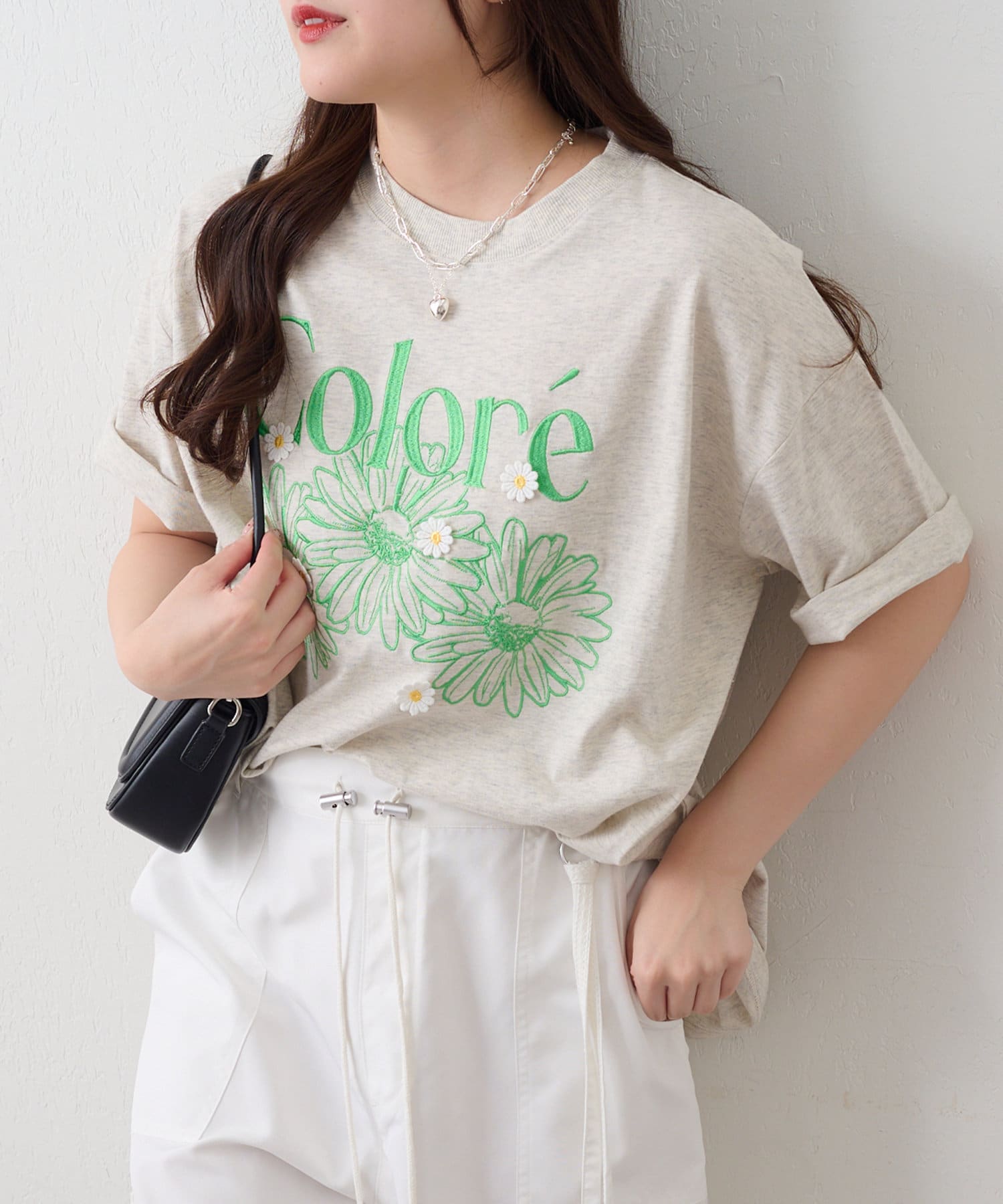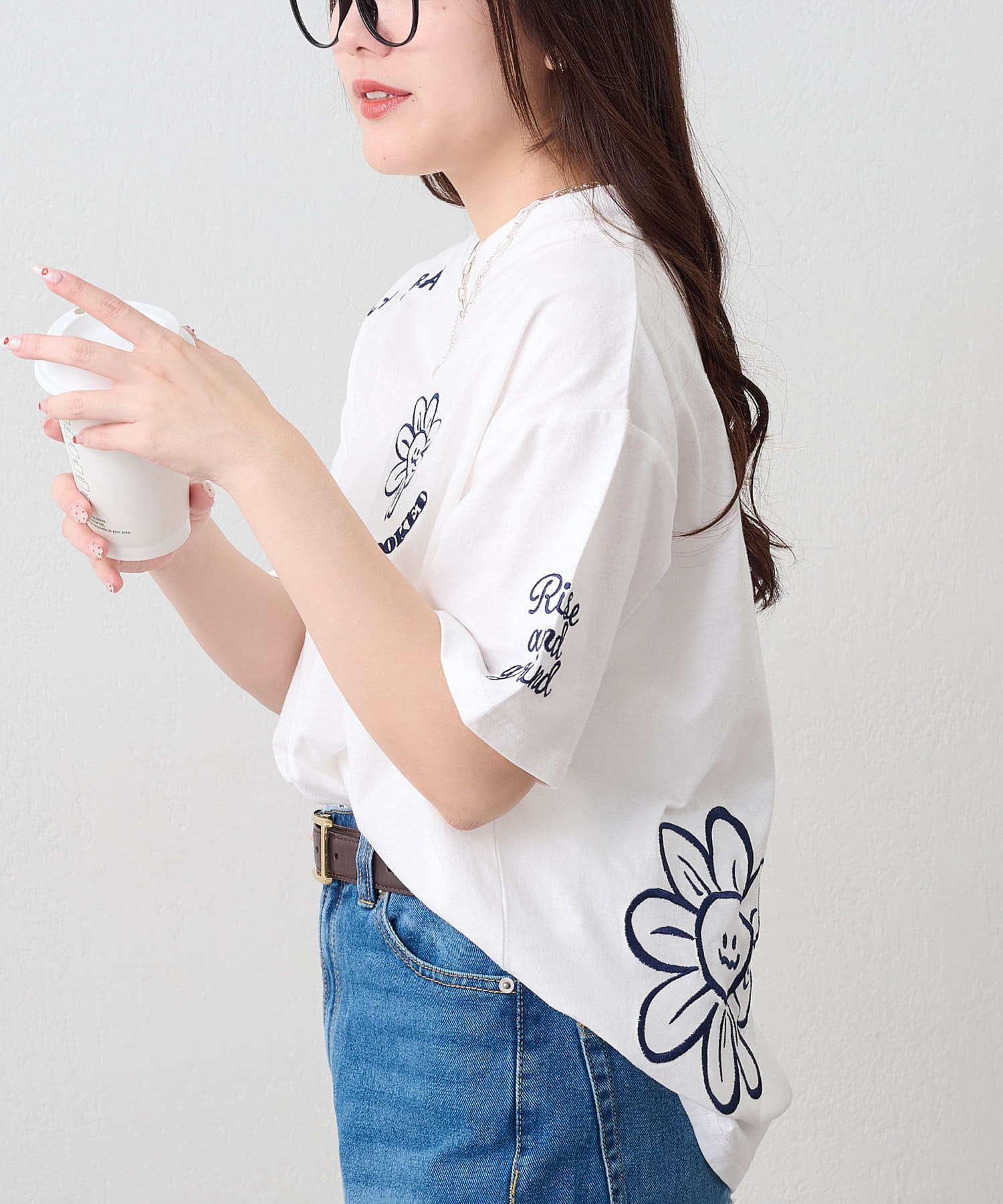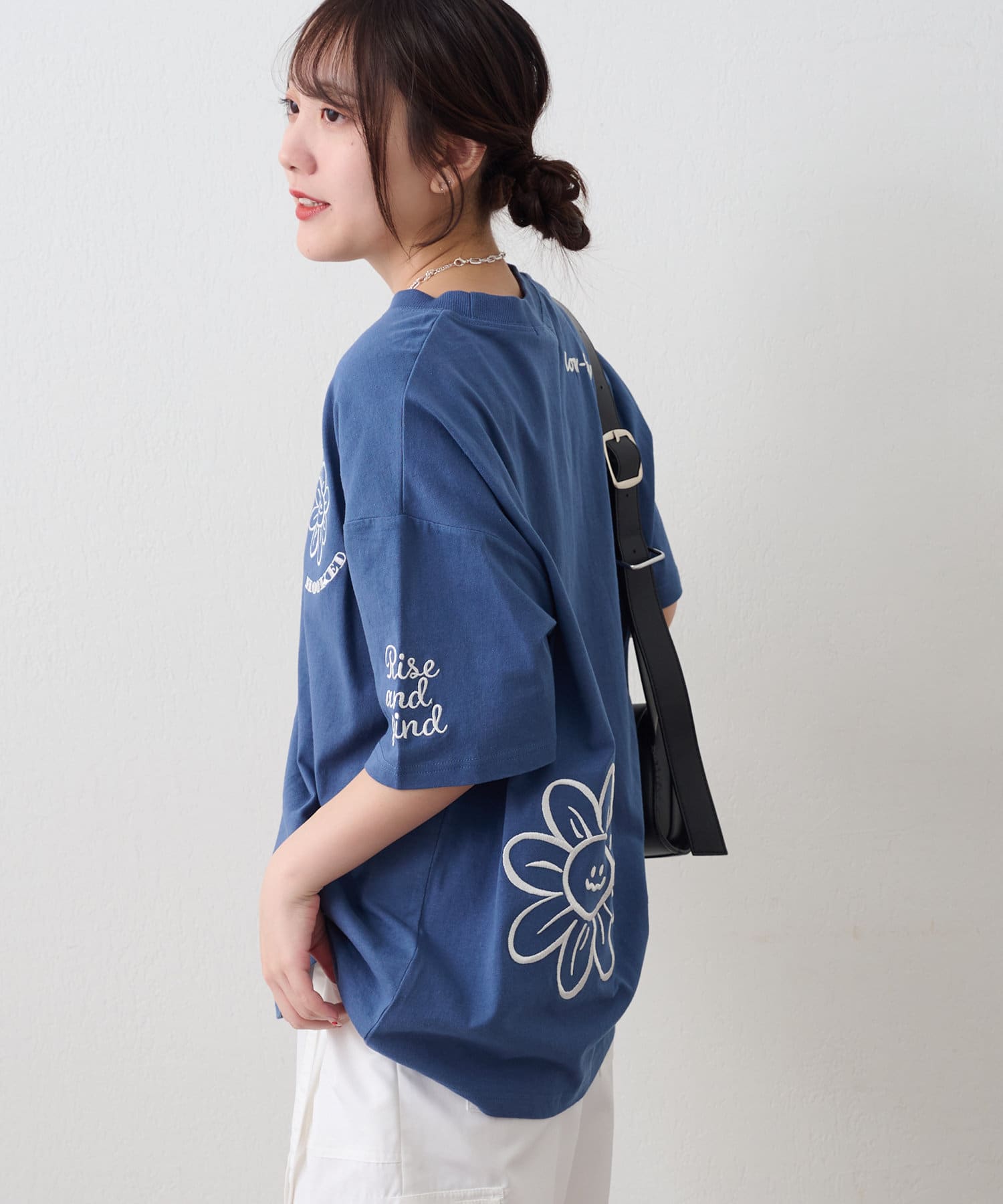 ・お花刺しゅうとマーガレットモチーフが可愛いBIGサイズTシャツ