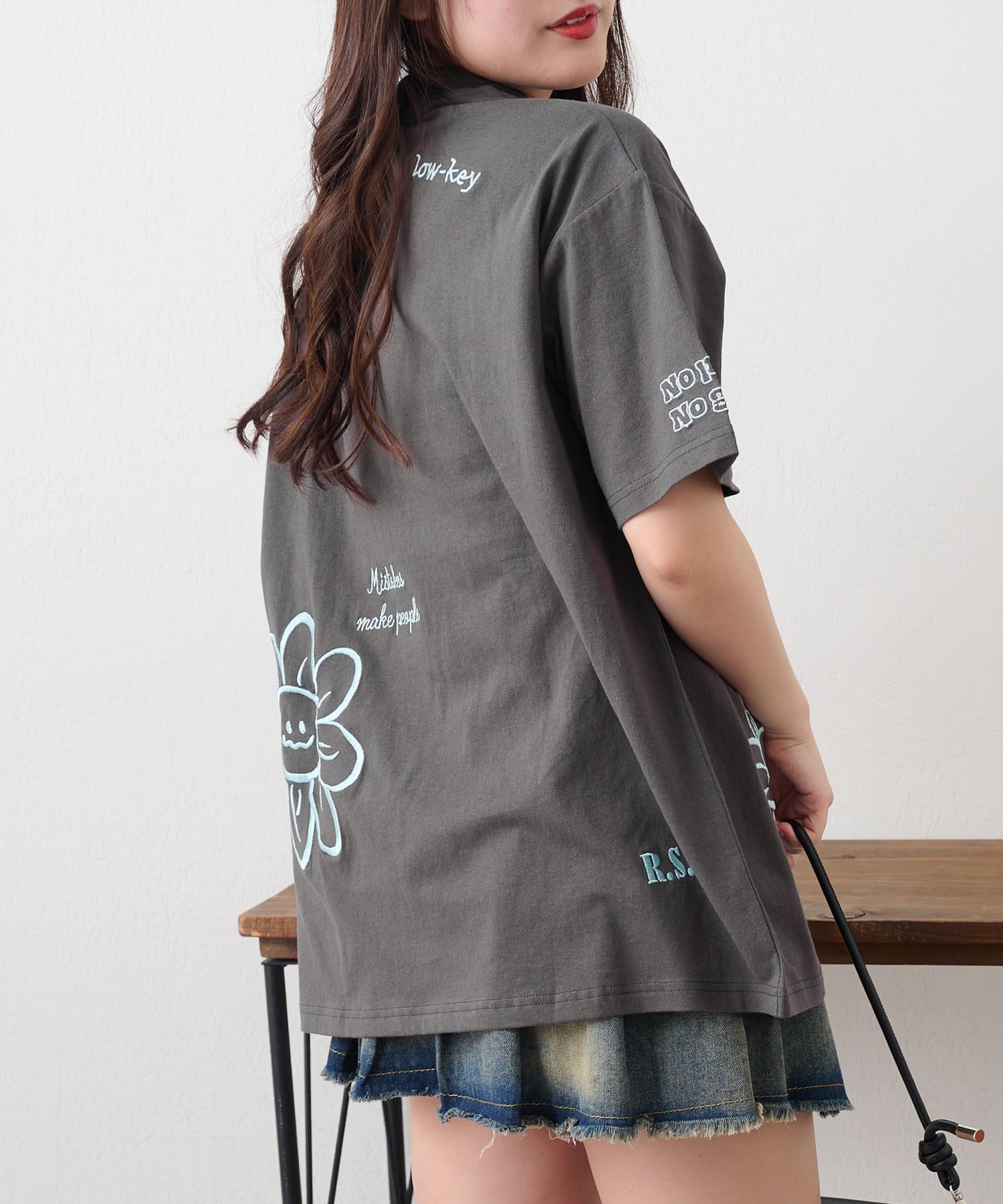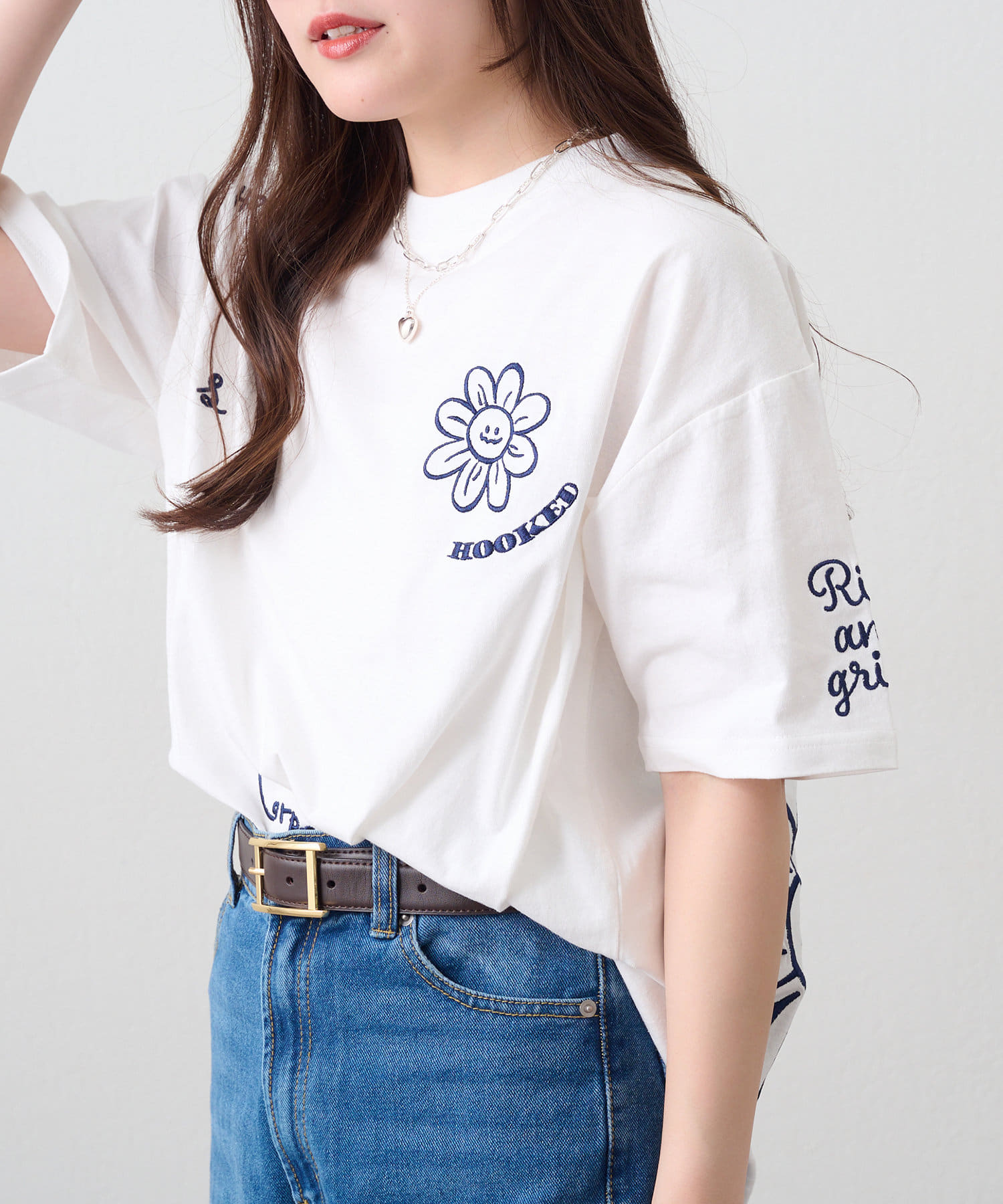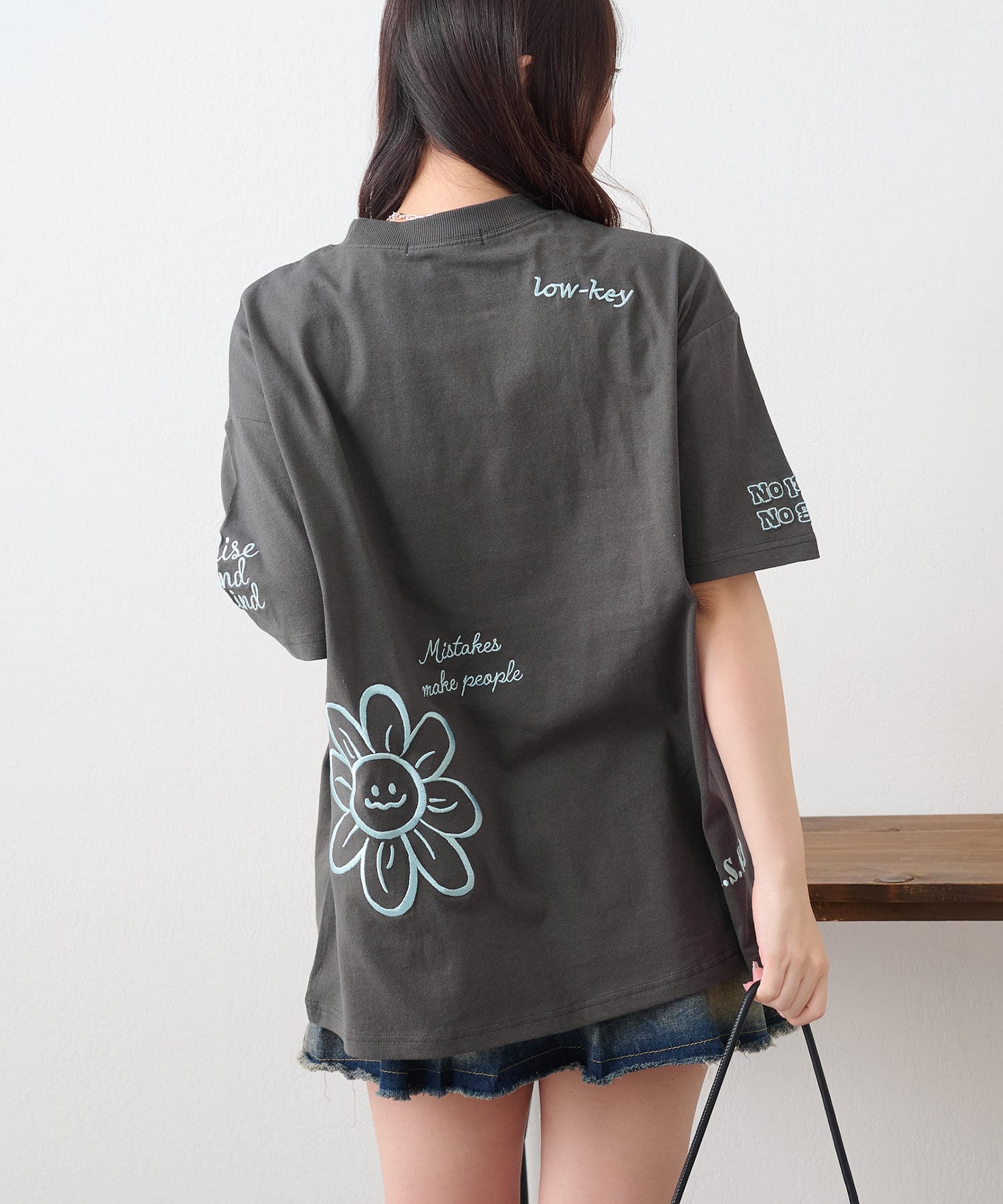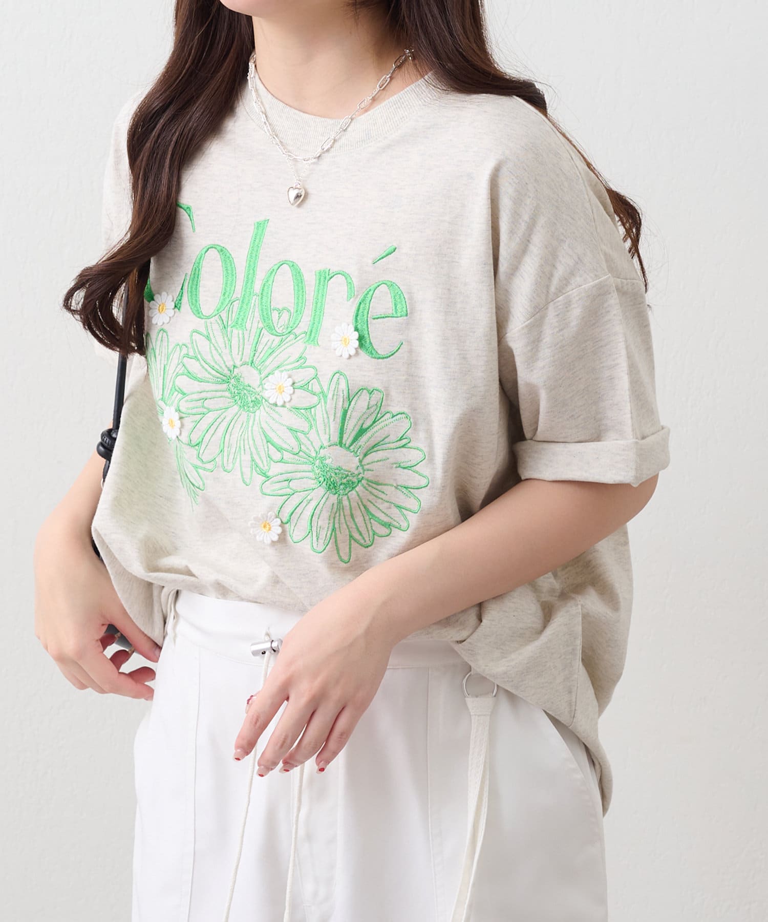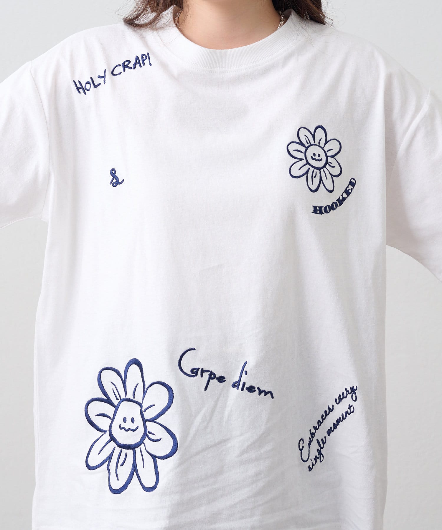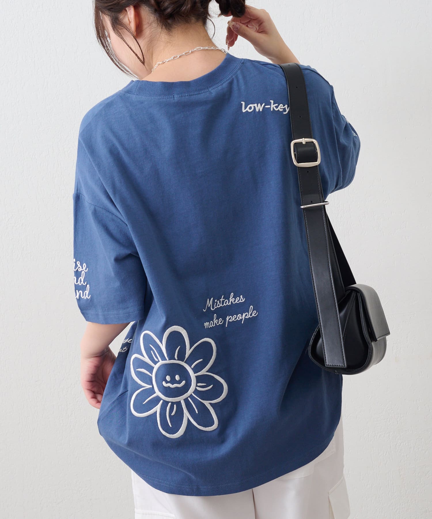 ・お花刺しゅうとマーガレットモチーフが可愛いBIGサイズTシャツ
