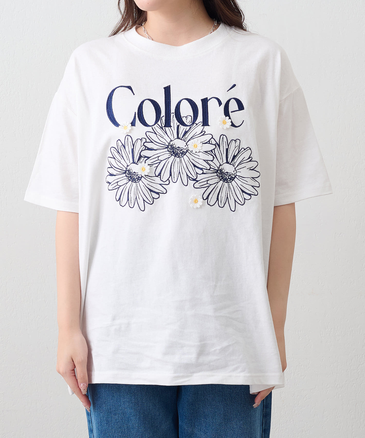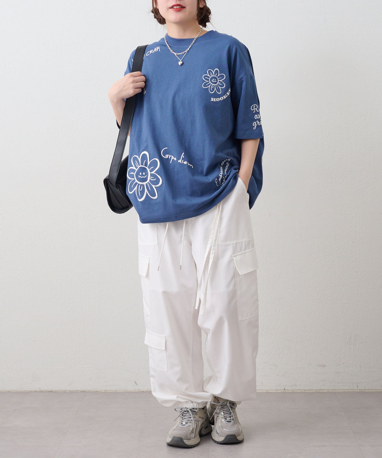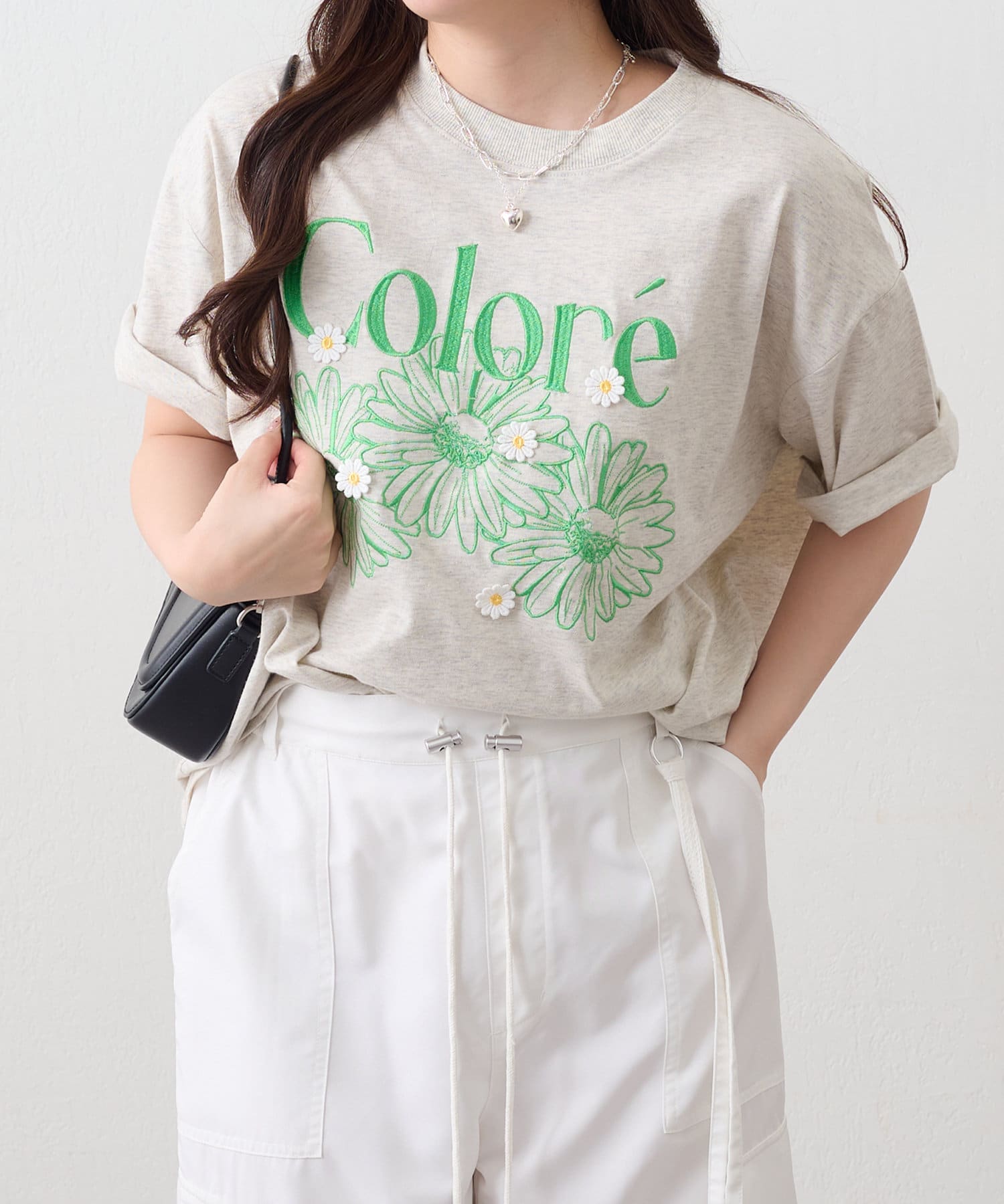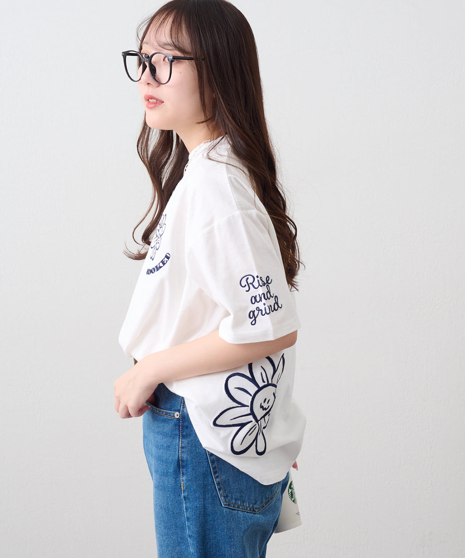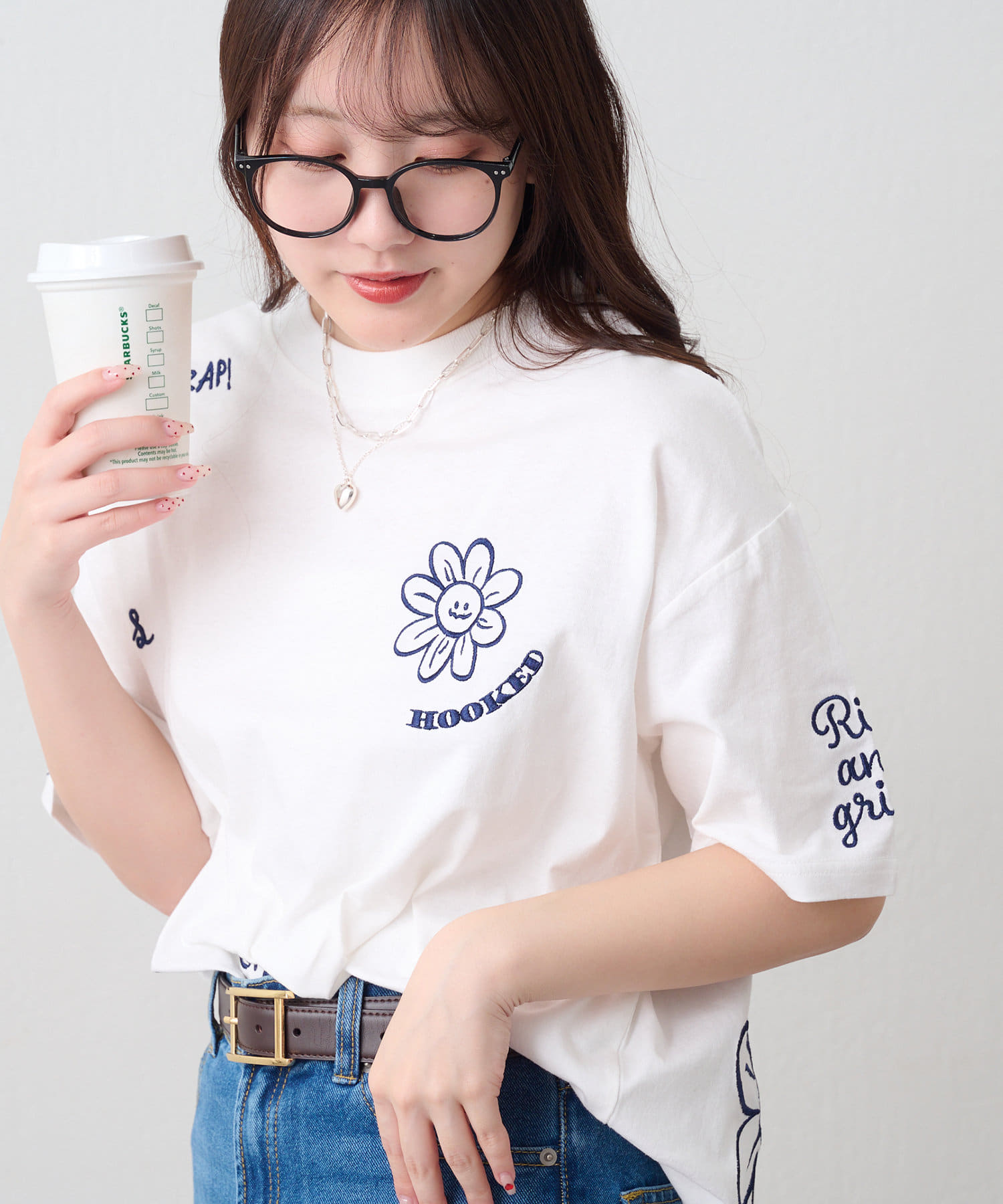 ・お花刺しゅうとマーガレットモチーフが可愛いBIGサイズTシャツ