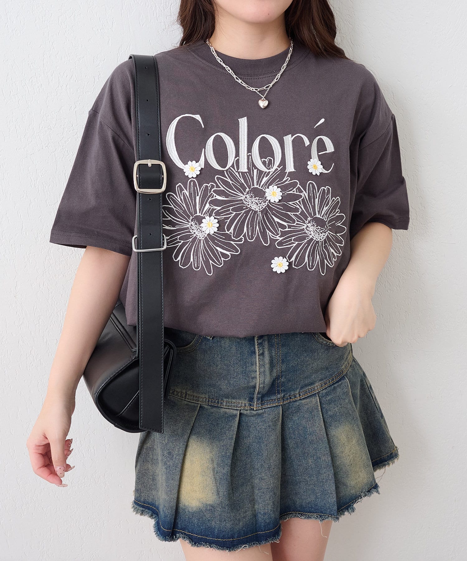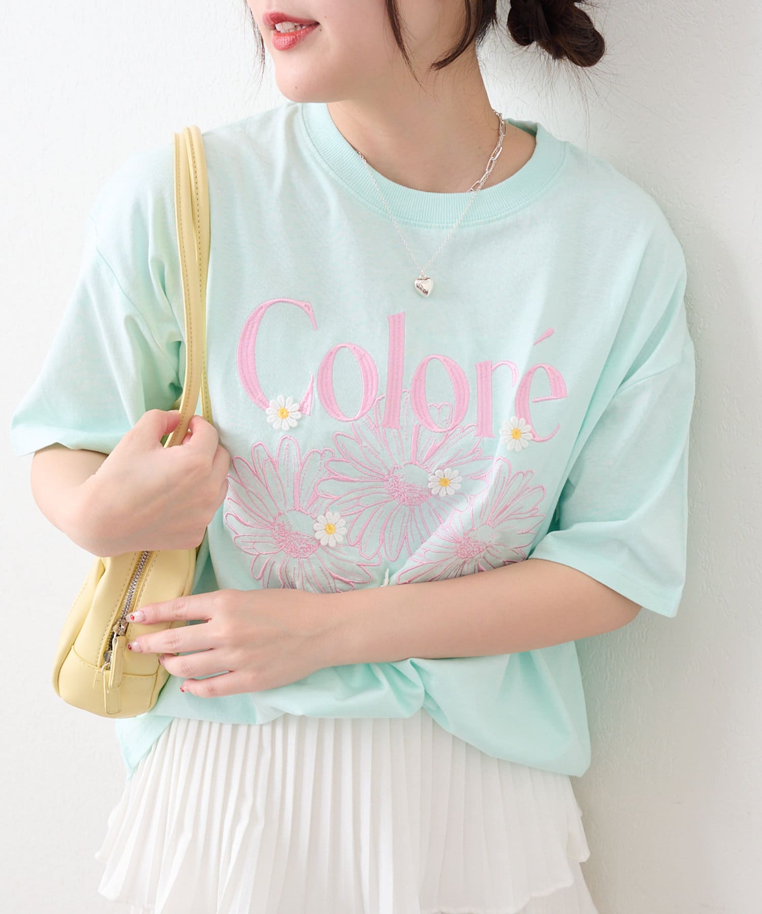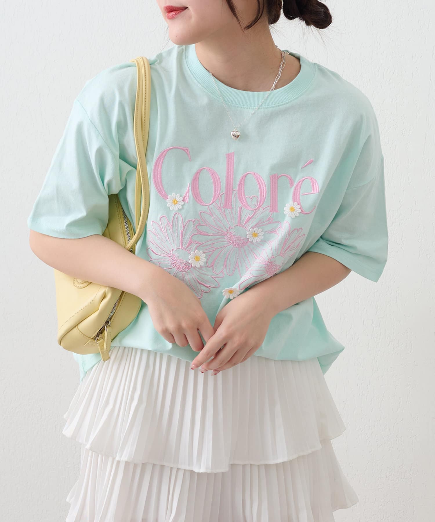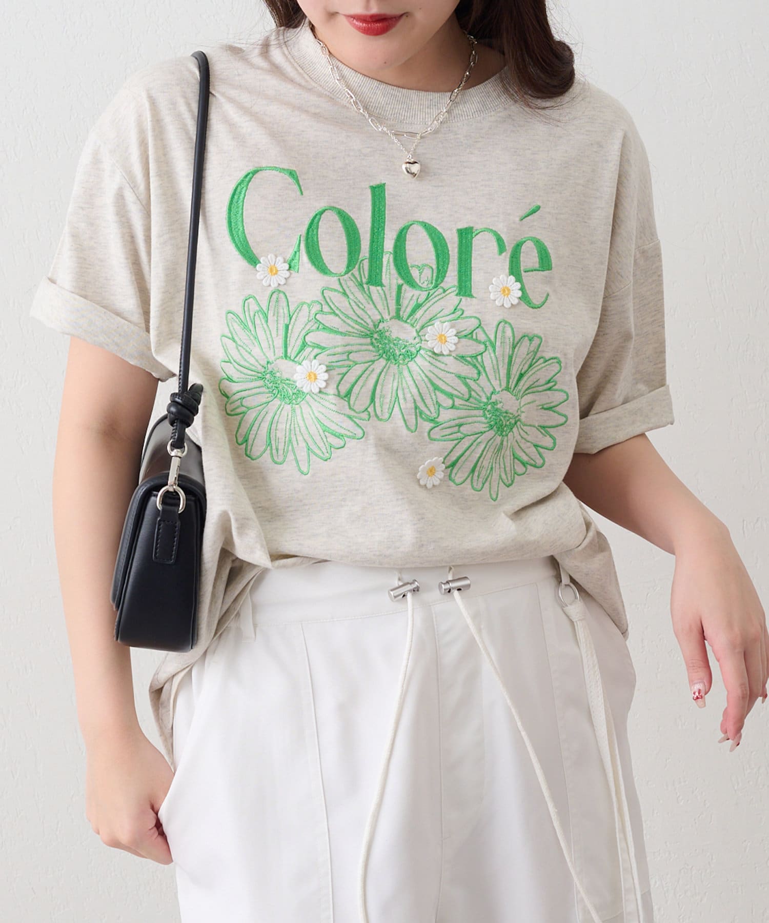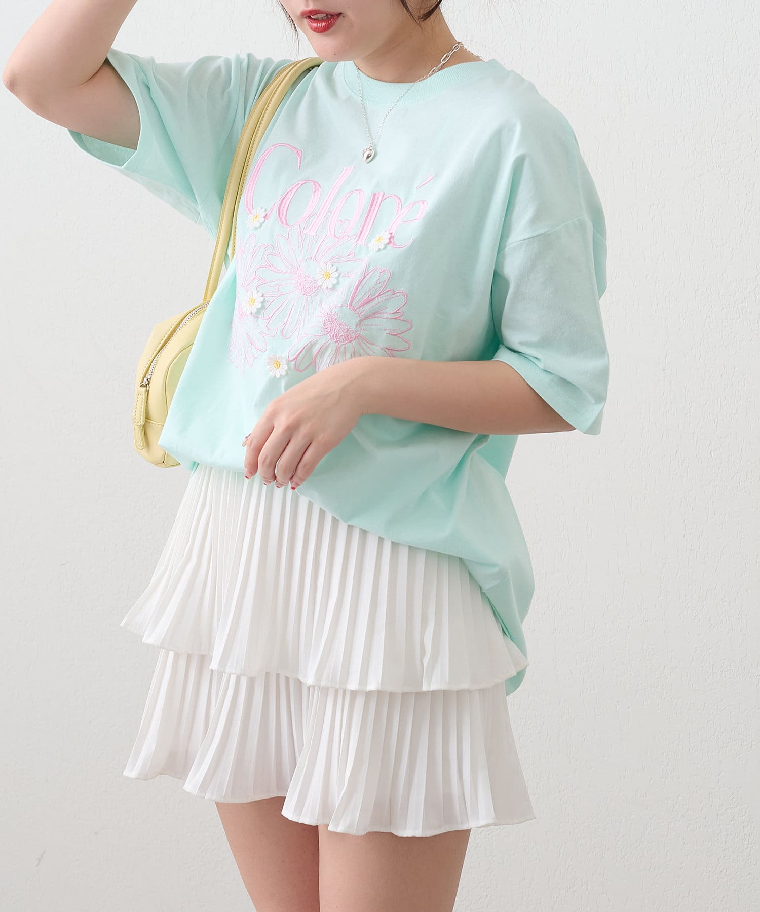 ・お花刺しゅうとマーガレットモチーフが可愛いBIGサイズTシャツ