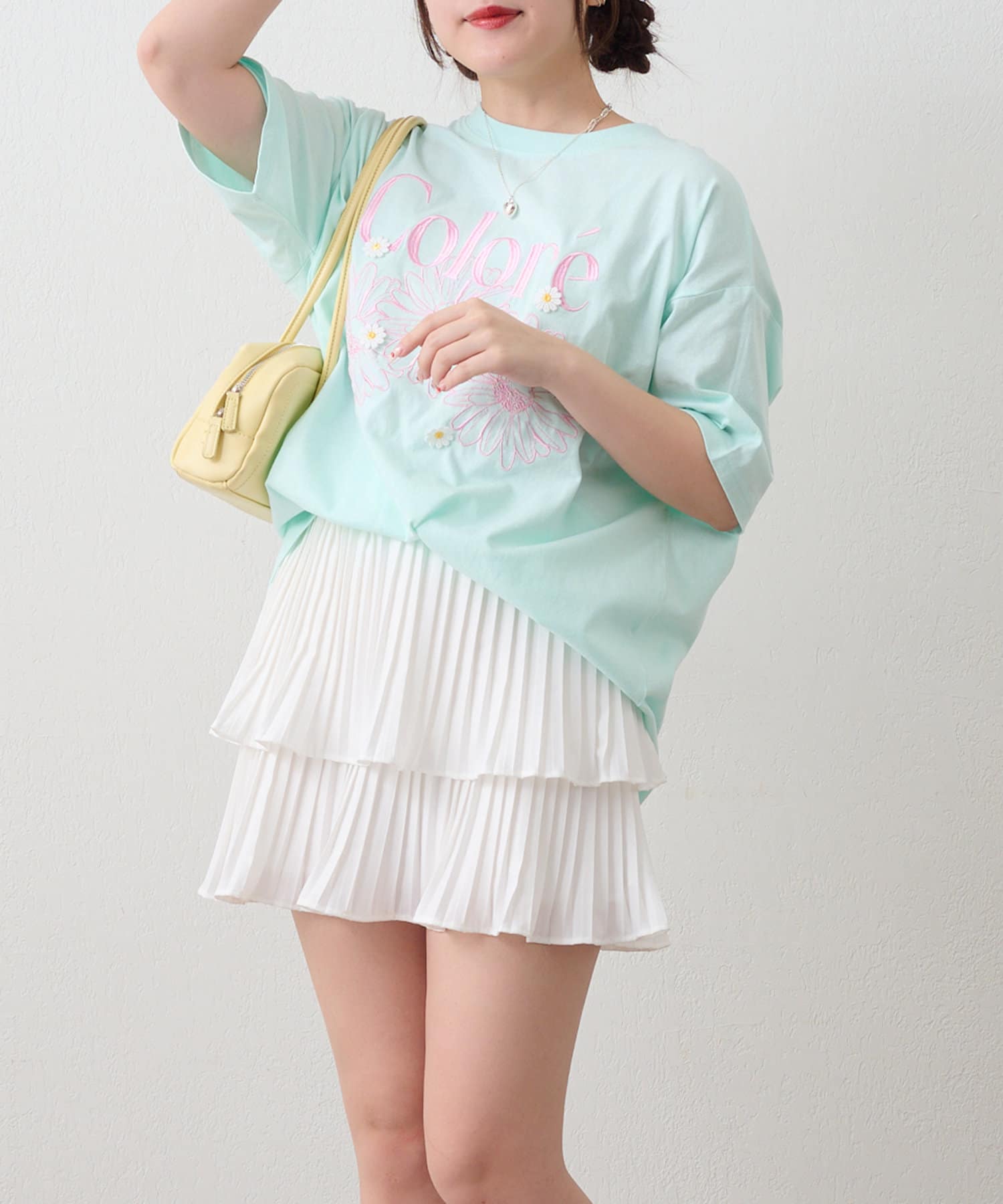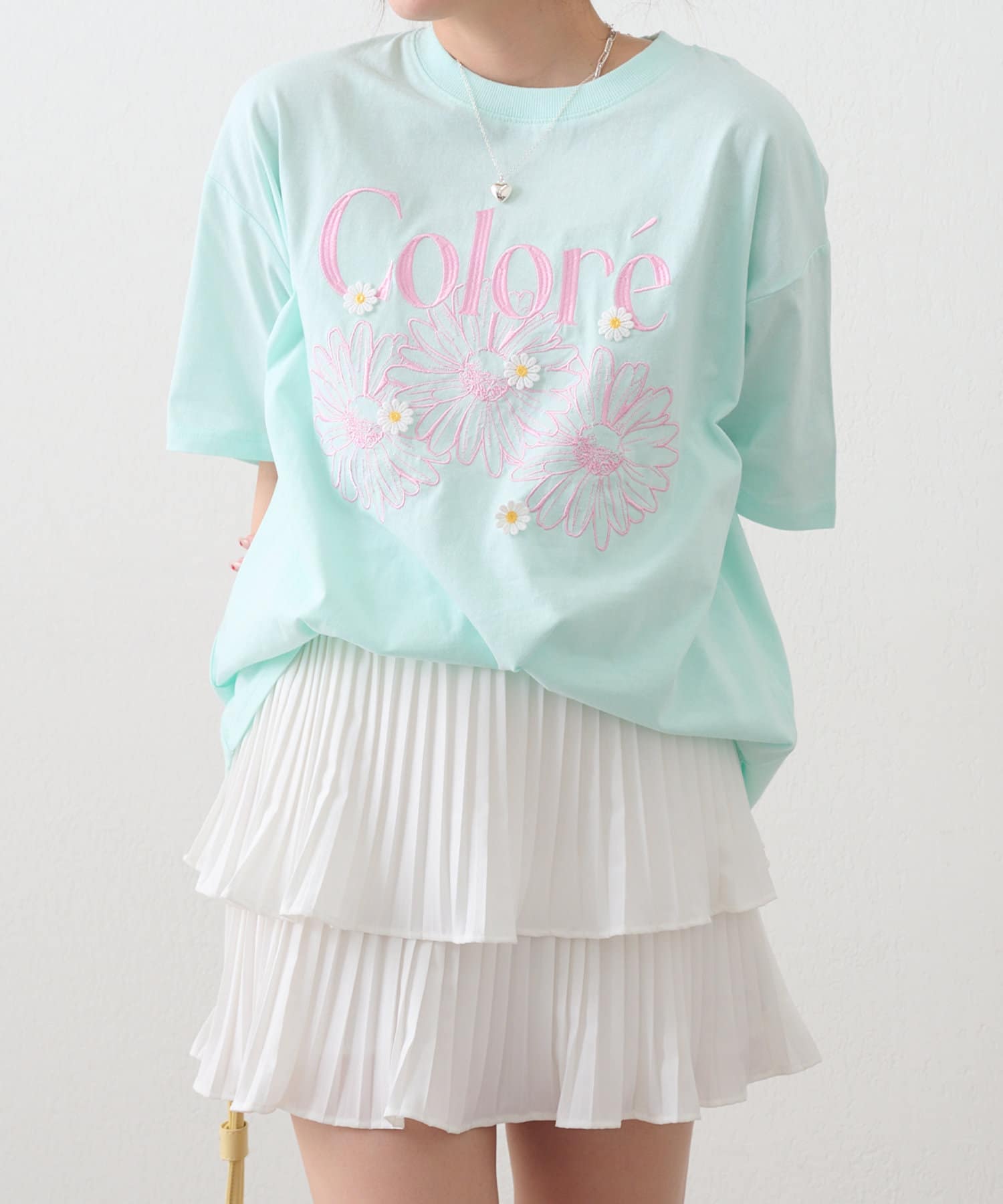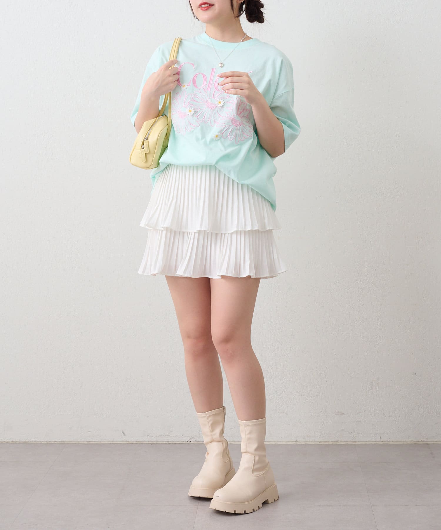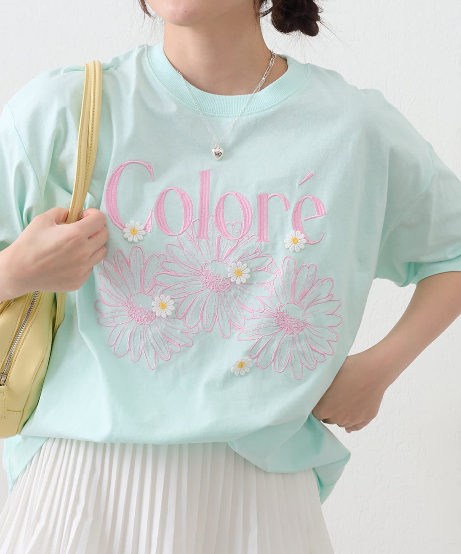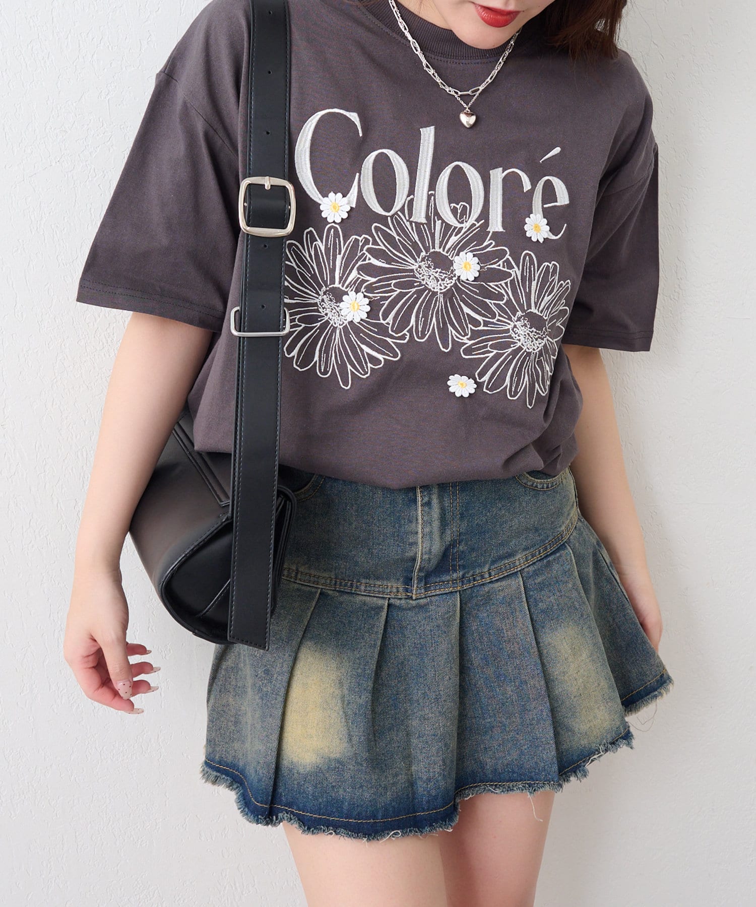 ・お花刺しゅうとマーガレットモチーフが可愛いBIGサイズTシャツ