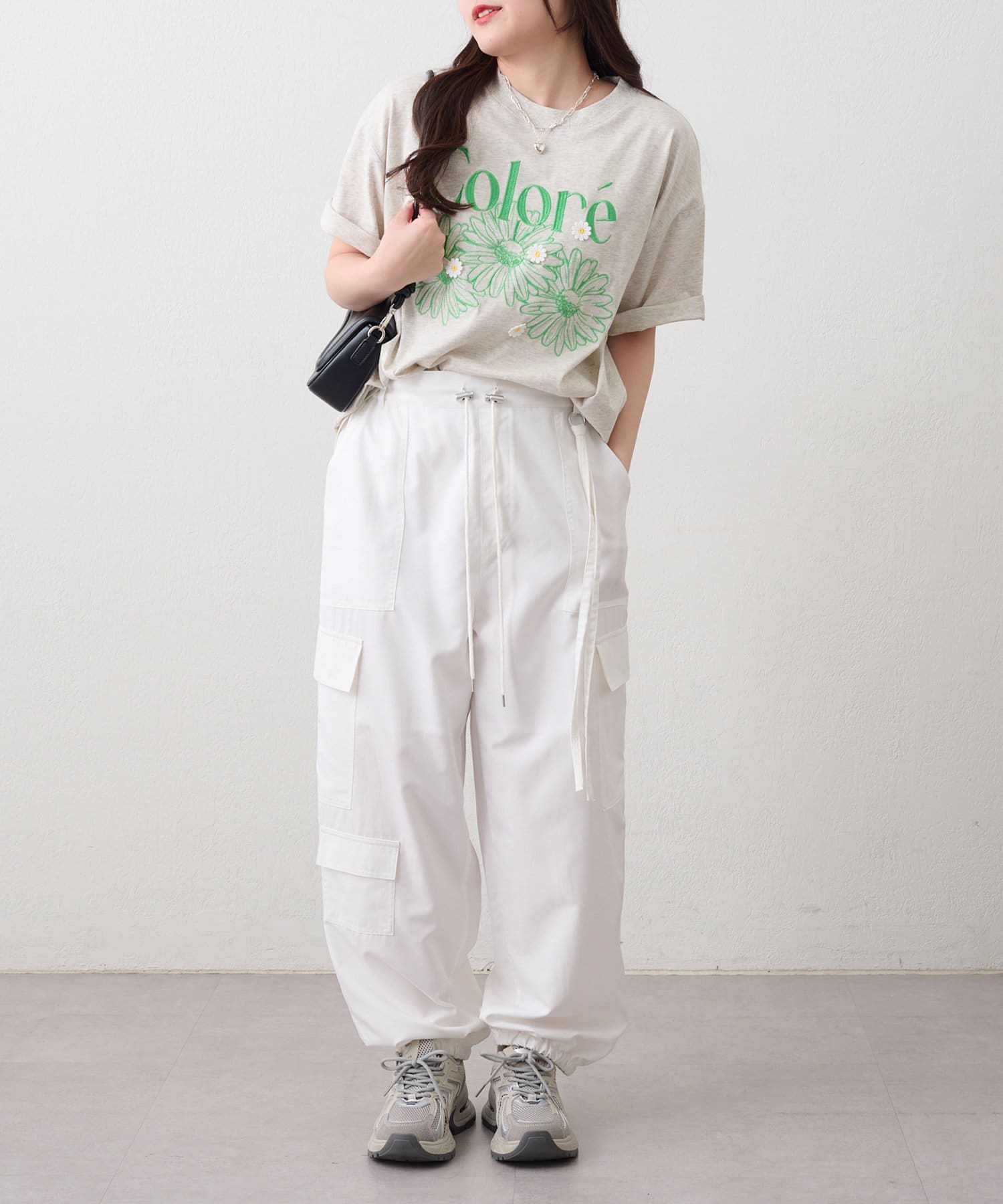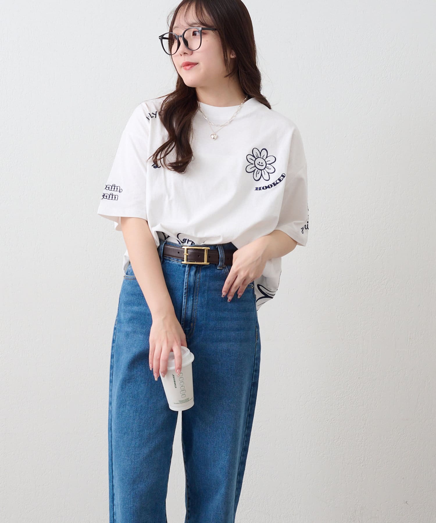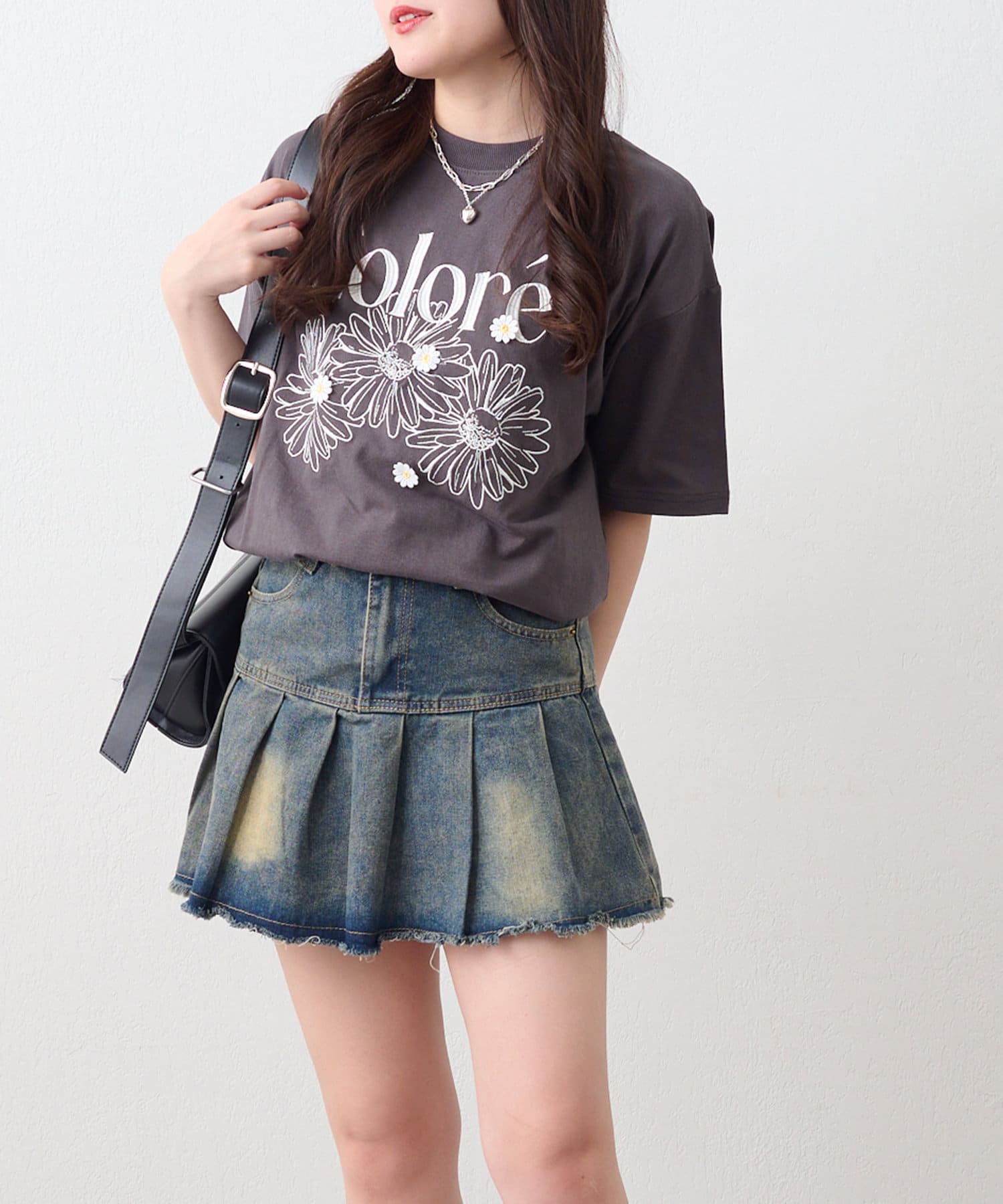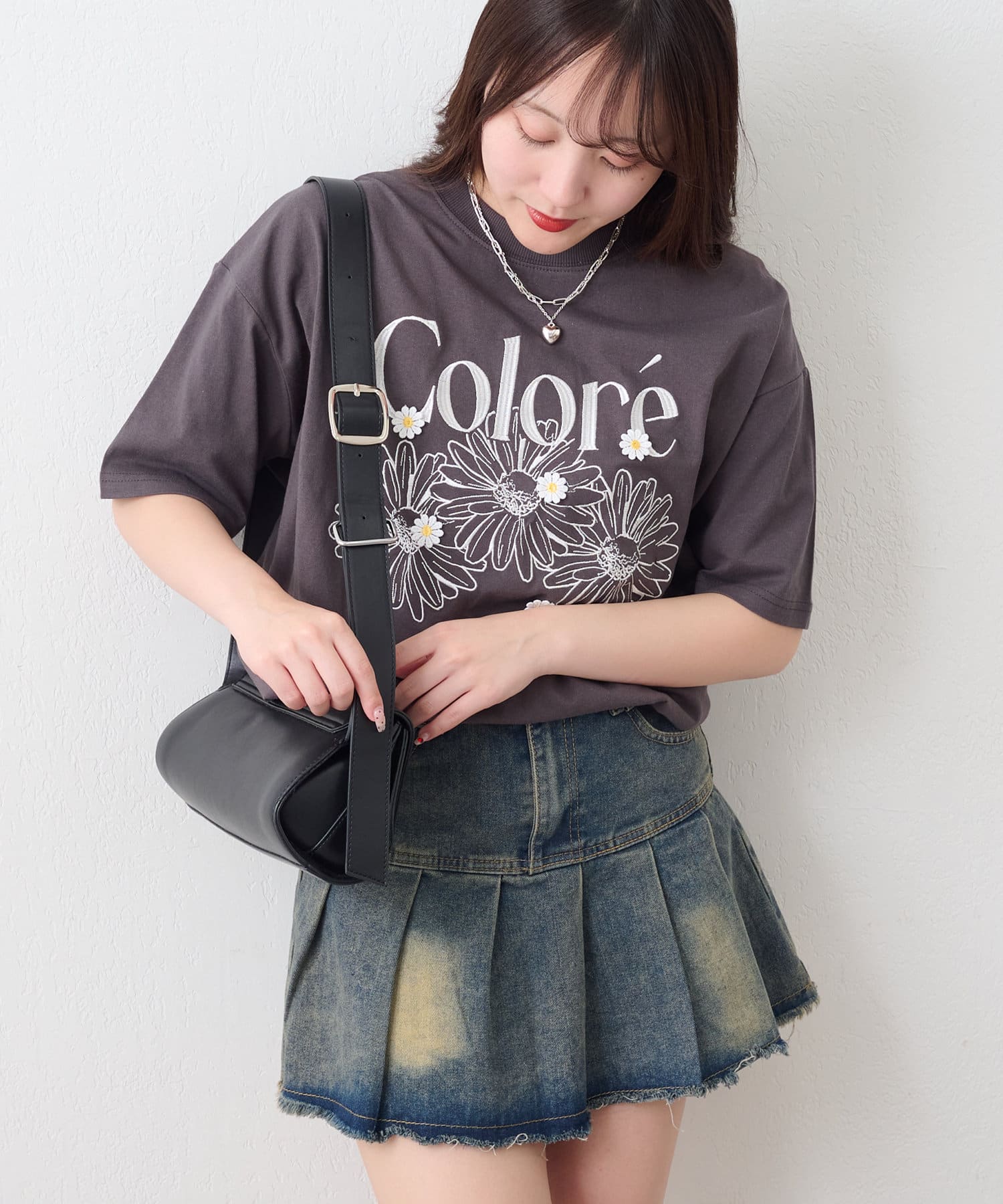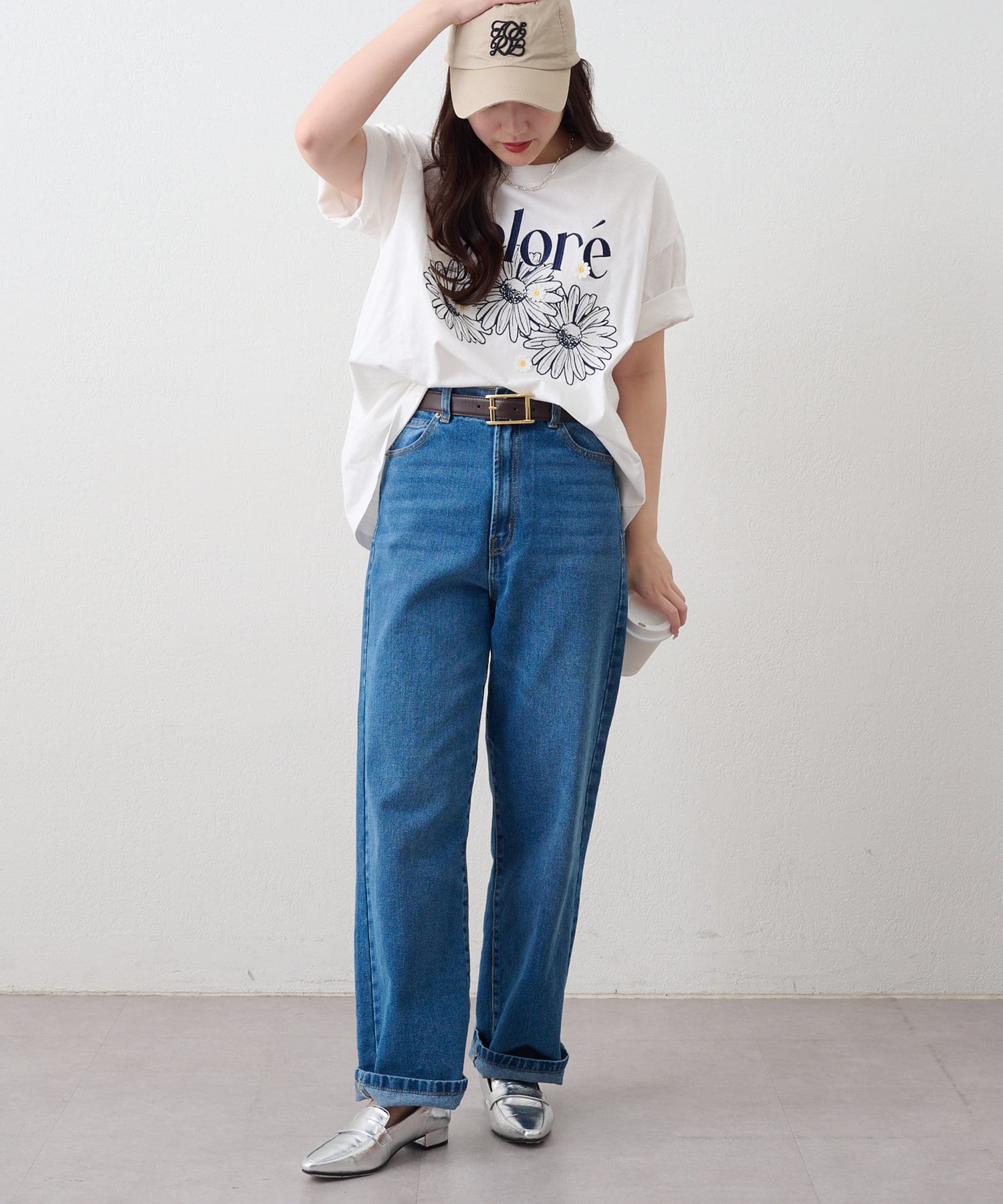 ・お花刺しゅうとマーガレットモチーフが可愛いBIGサイズTシャツ