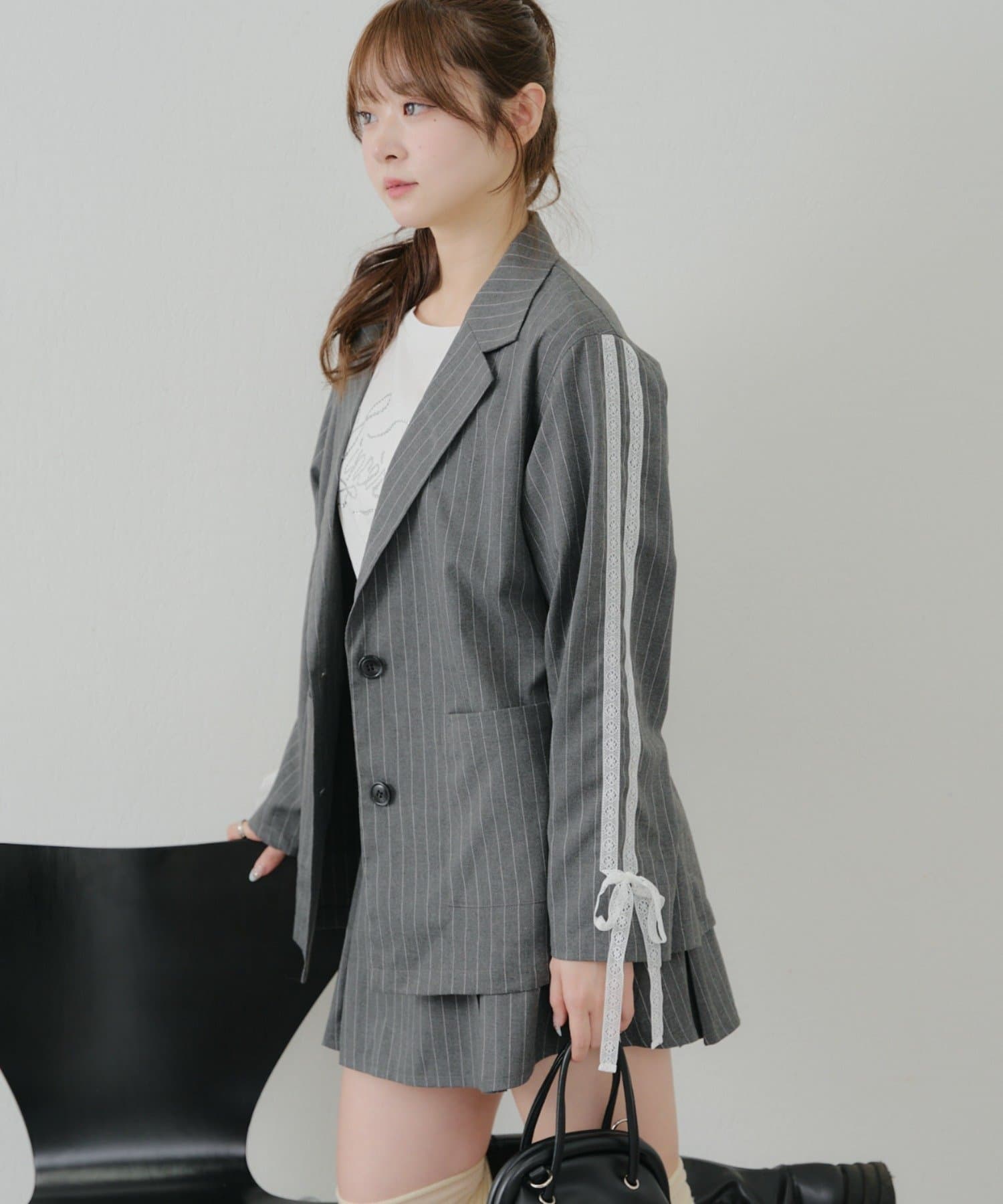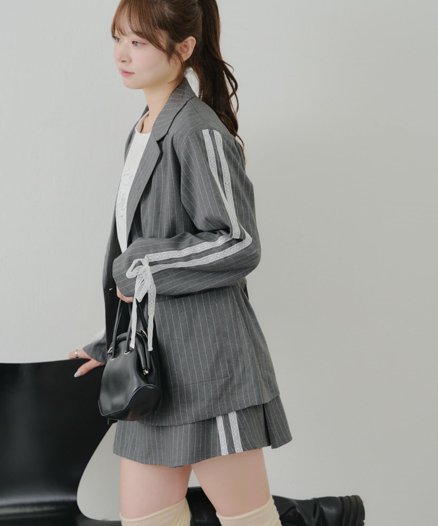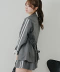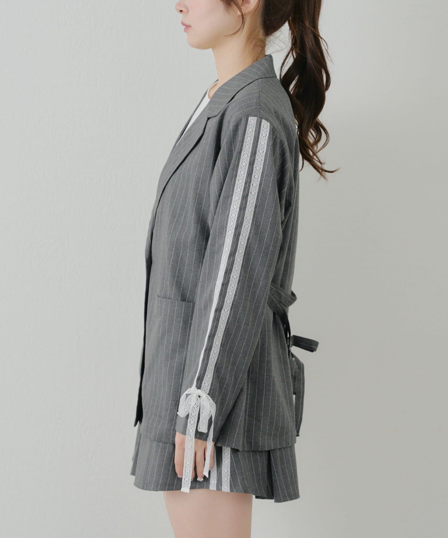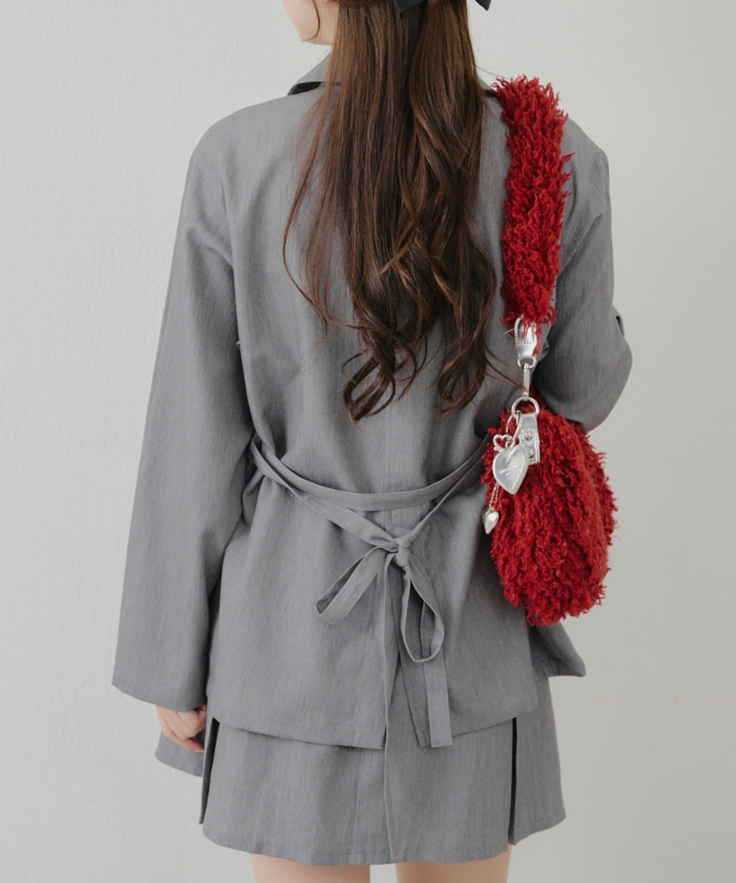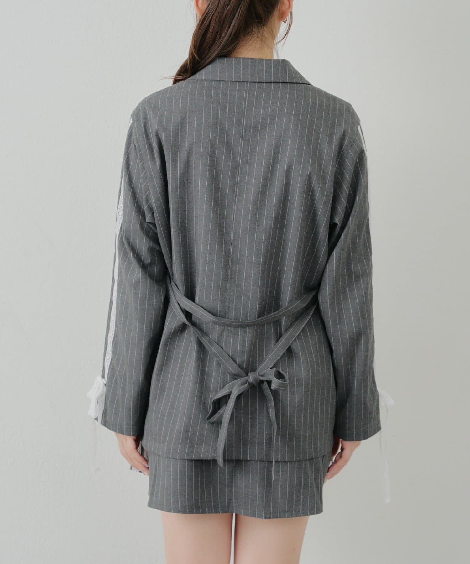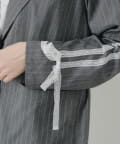 リボンを後ろで結び、ひと味違ったジャケットコーデができます