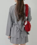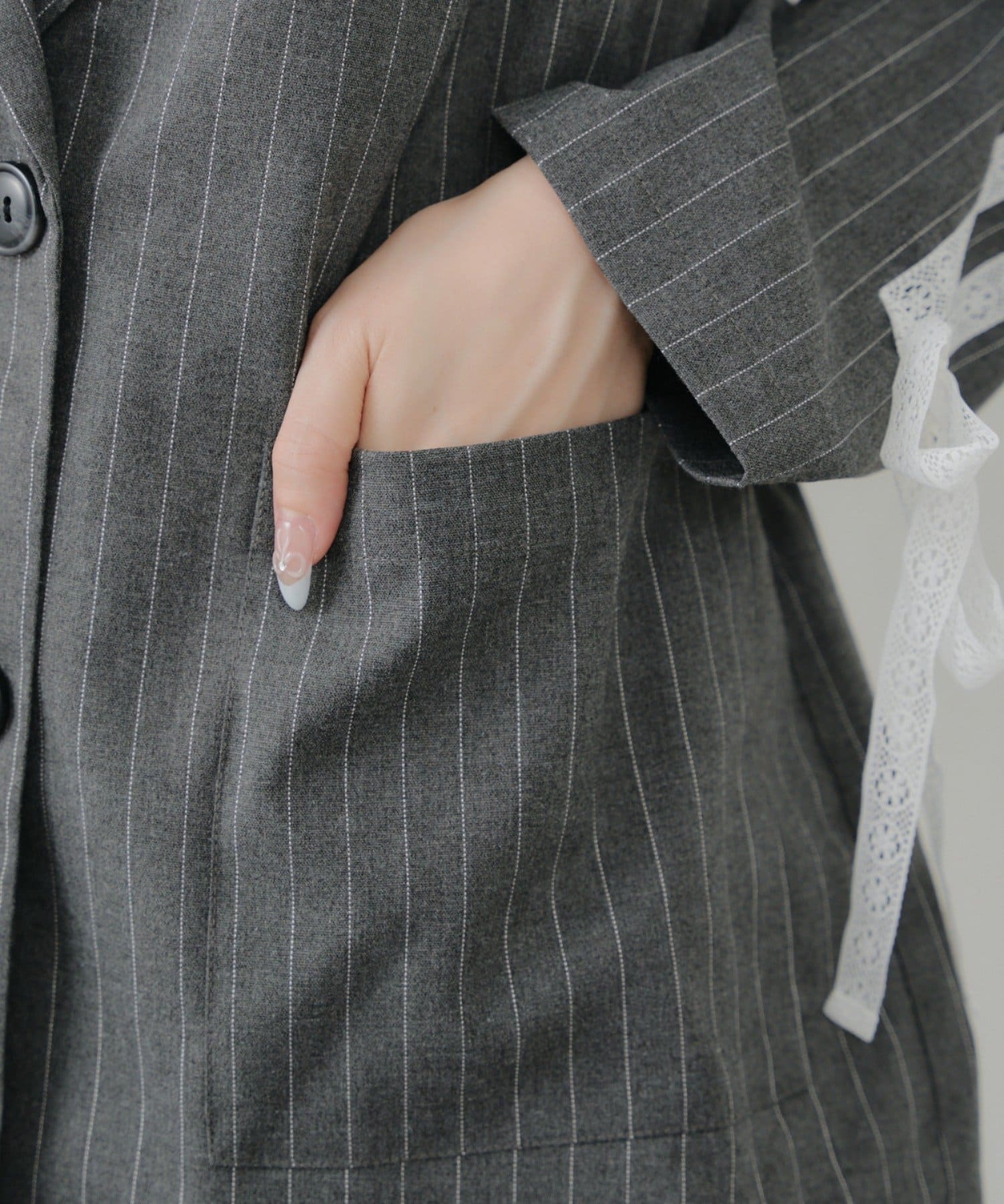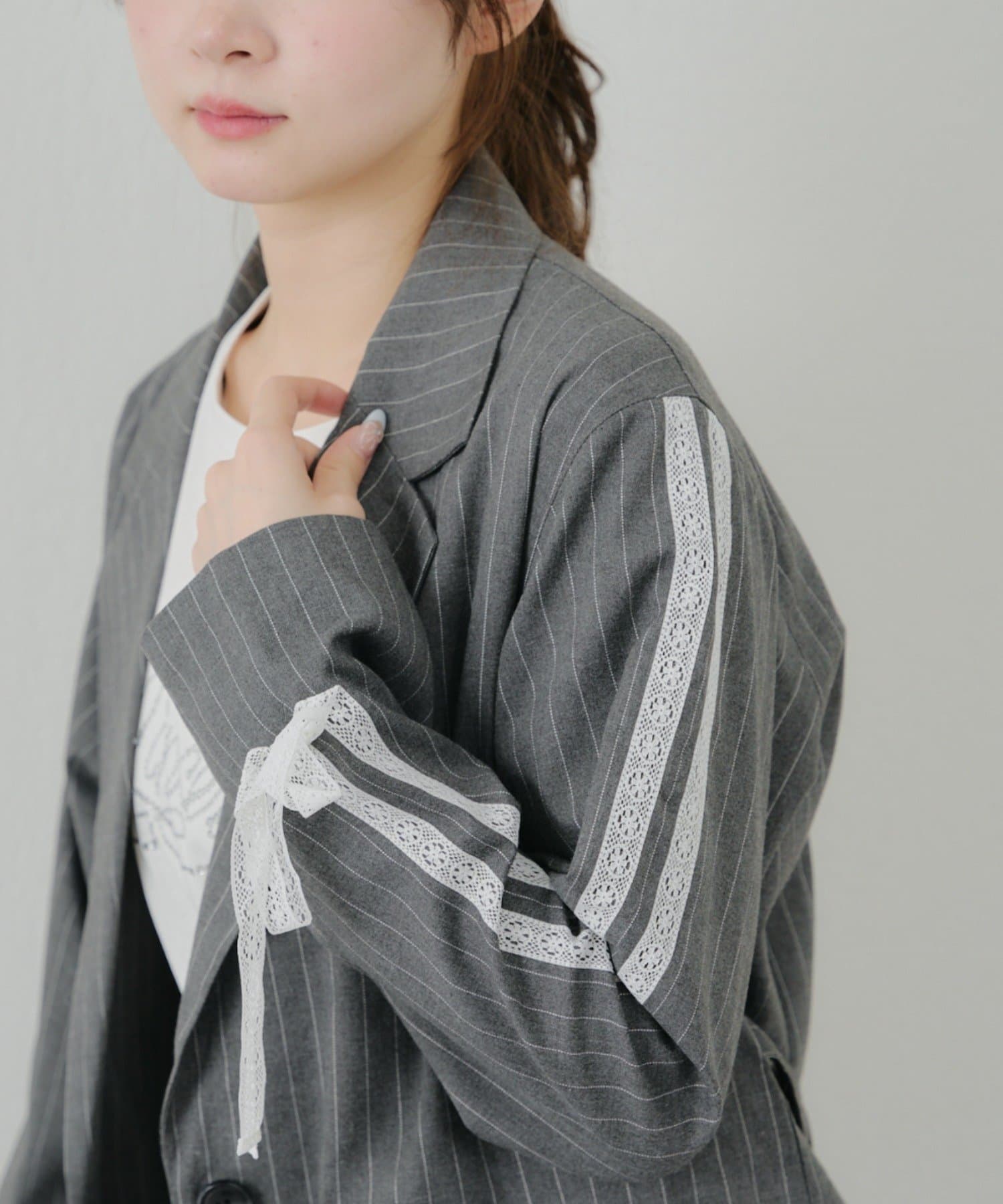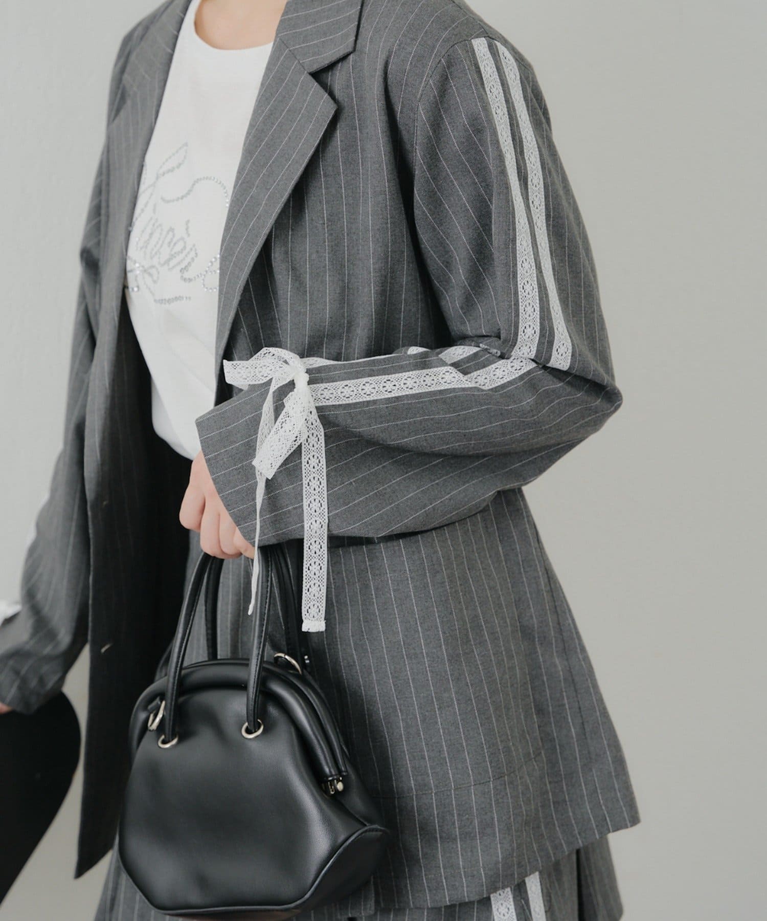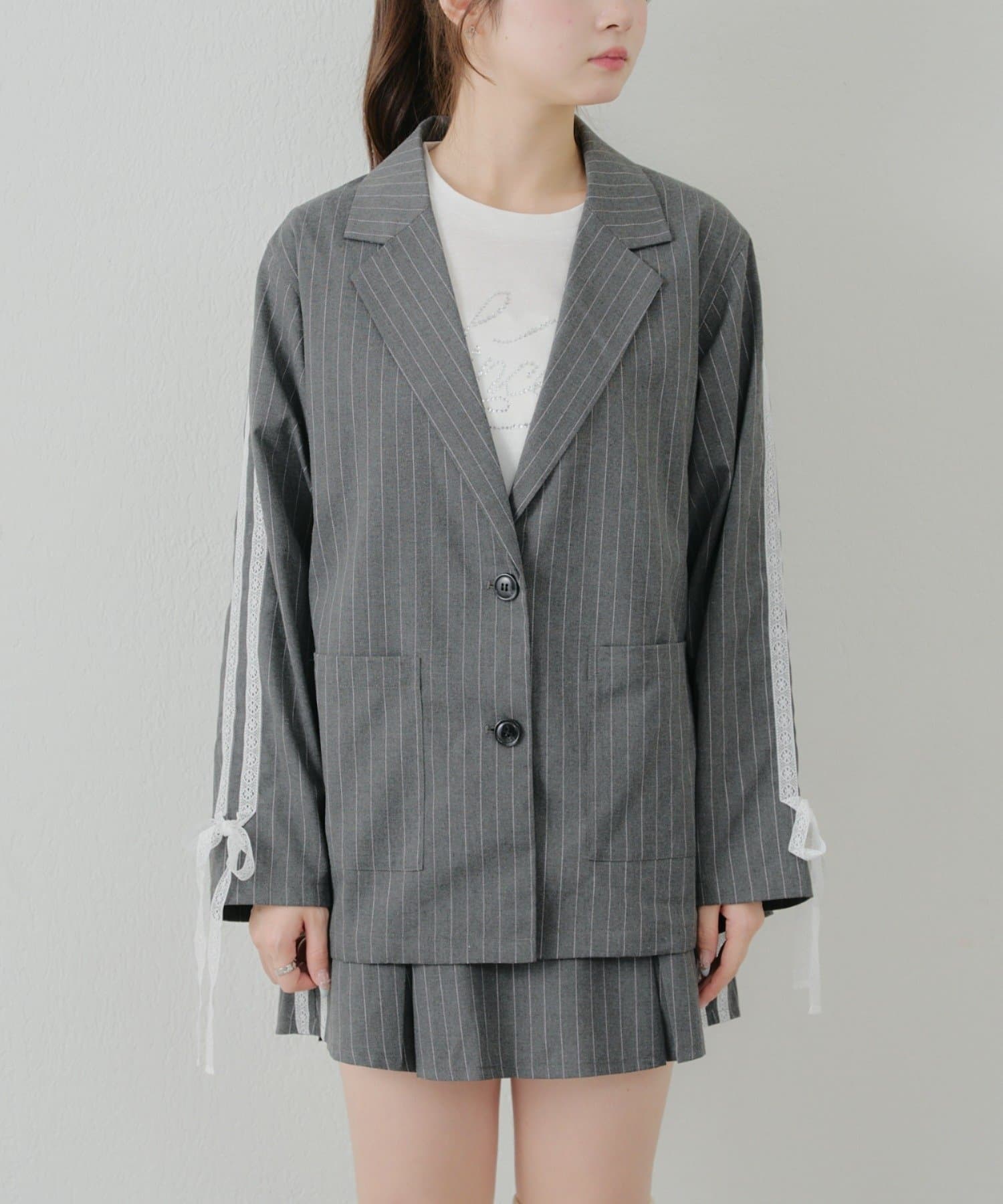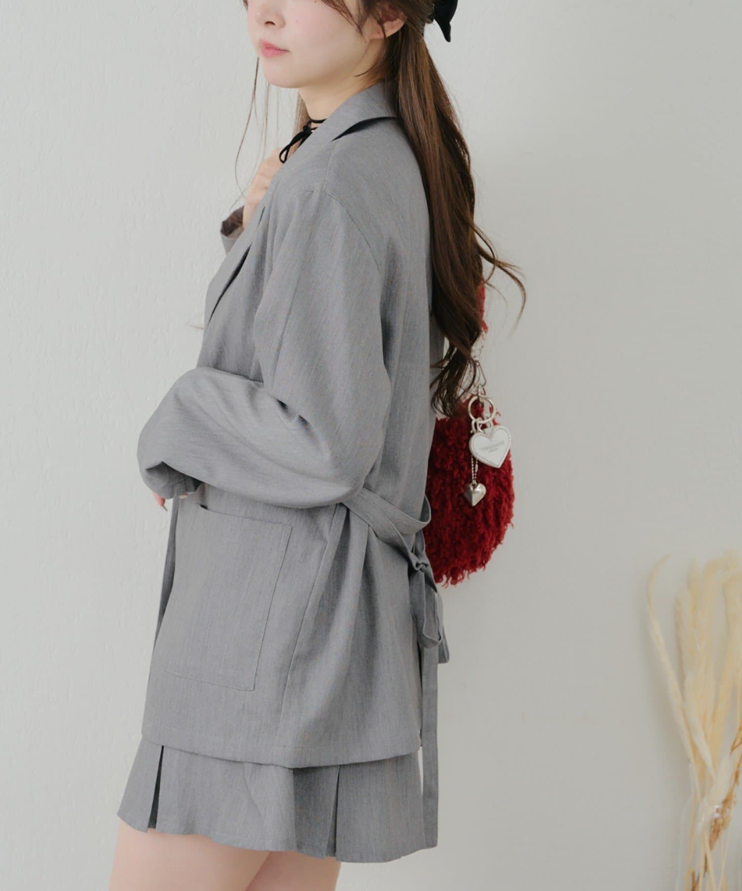 リボンを後ろで結び、ひと味違ったジャケットコーデができます