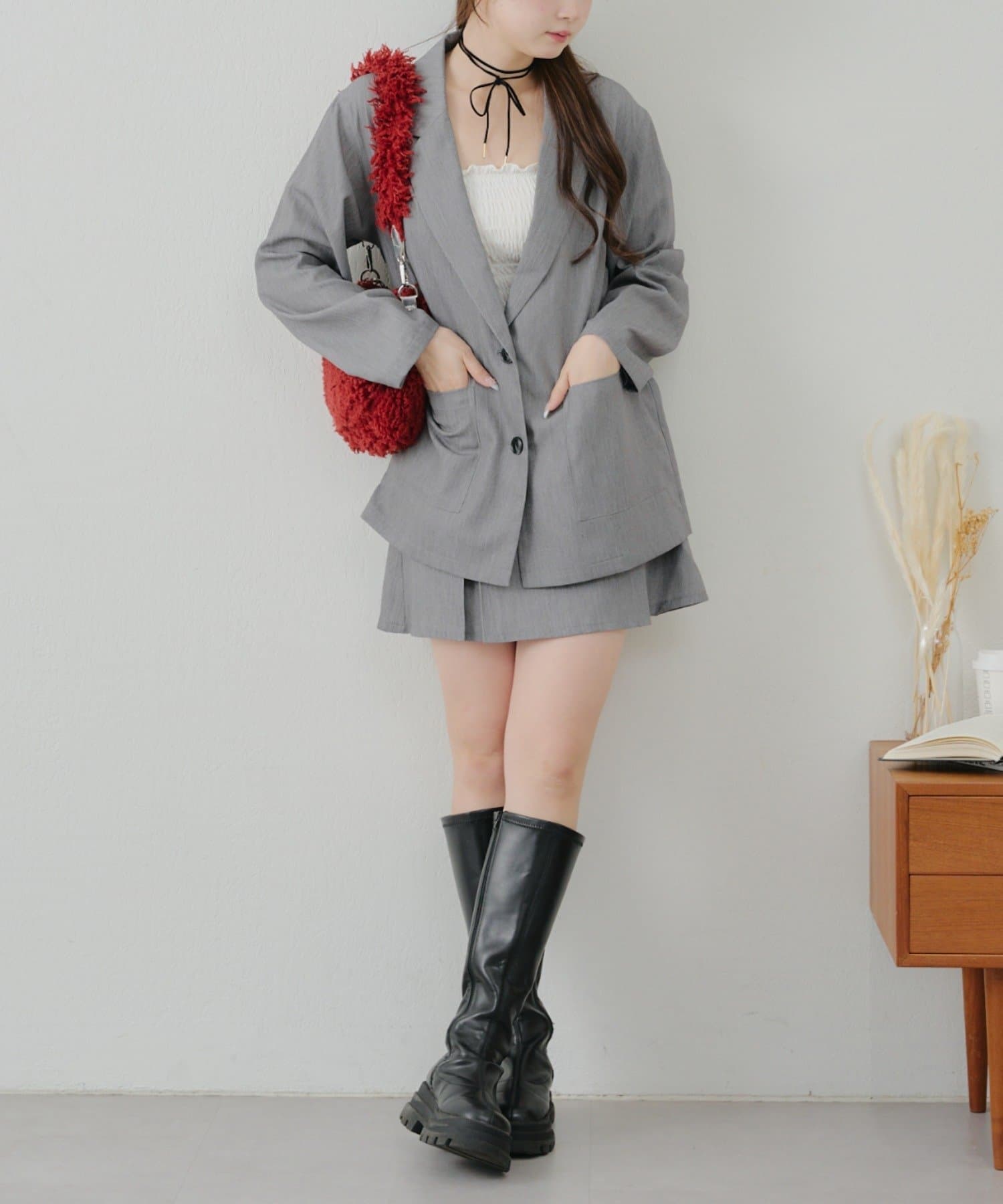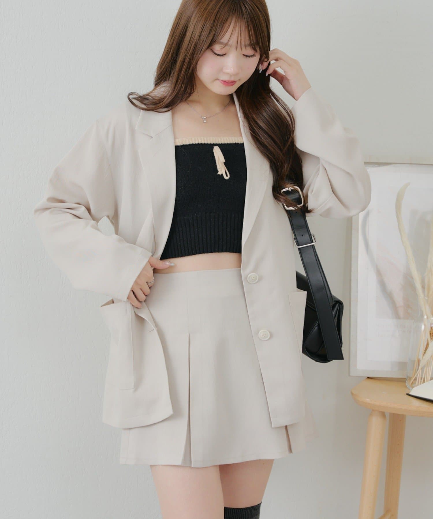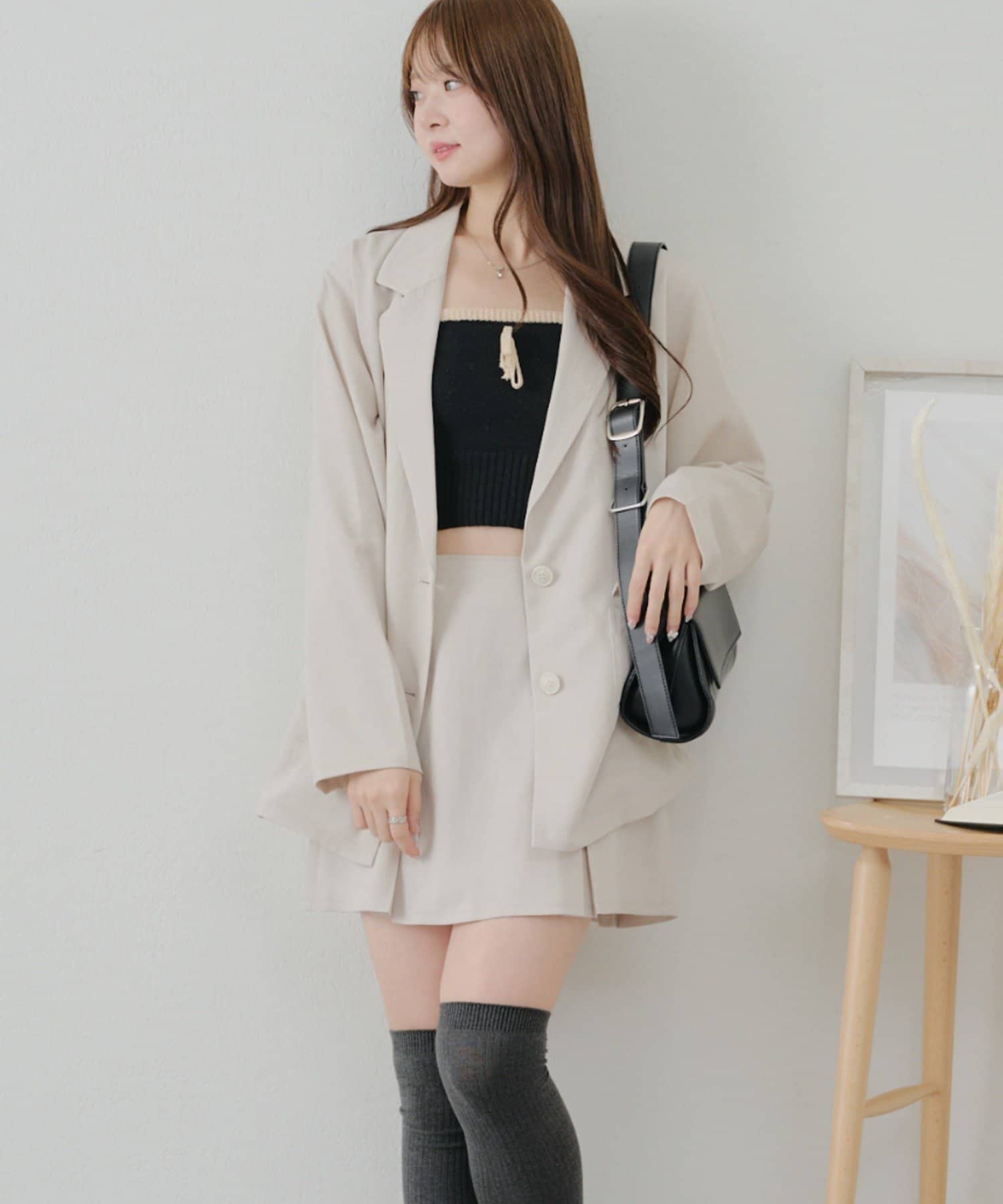 ・セットアップで着用が可能なスカート(品番:6051010080)とのコーデが春のトレンドに。