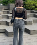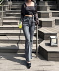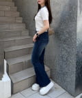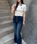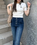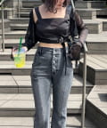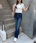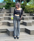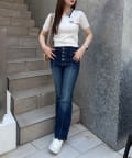 ・ショート丈のトップスを合わせてハイウエストを活かした美脚スタイリング
