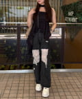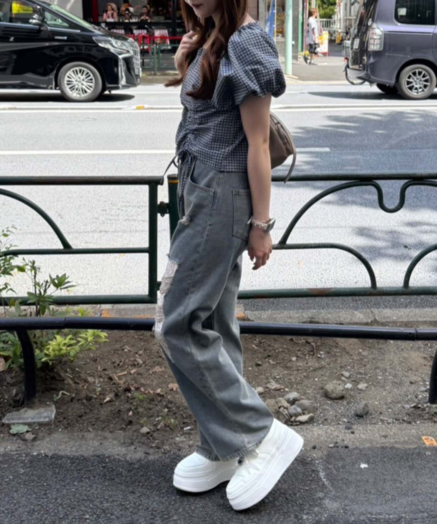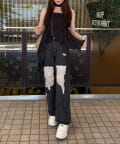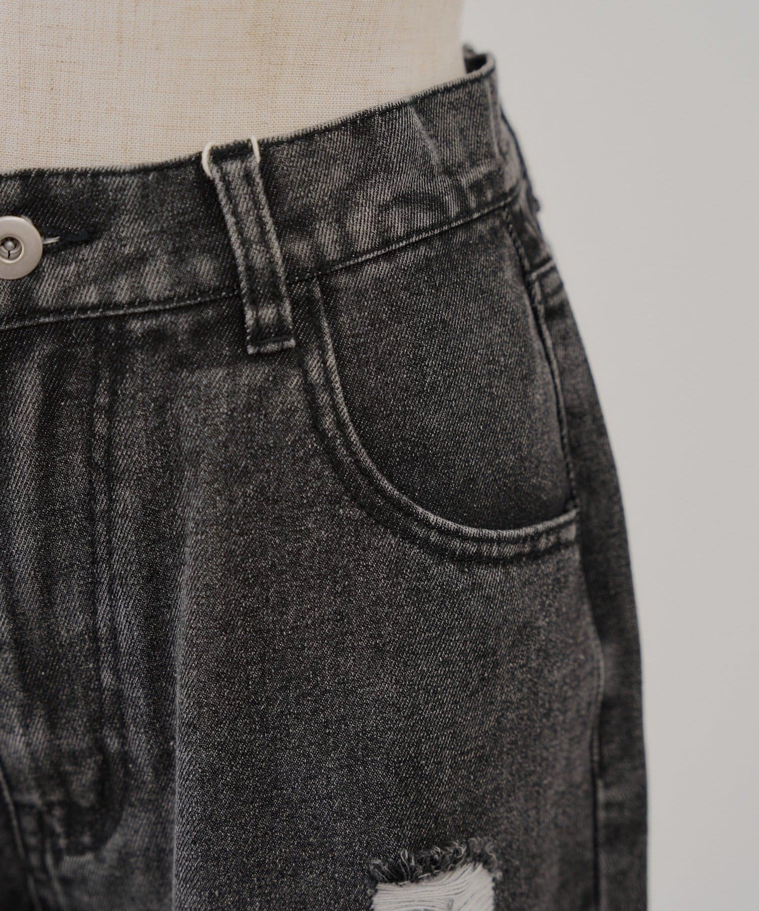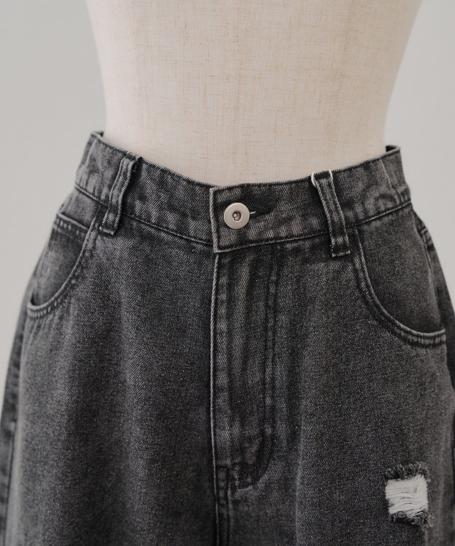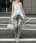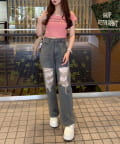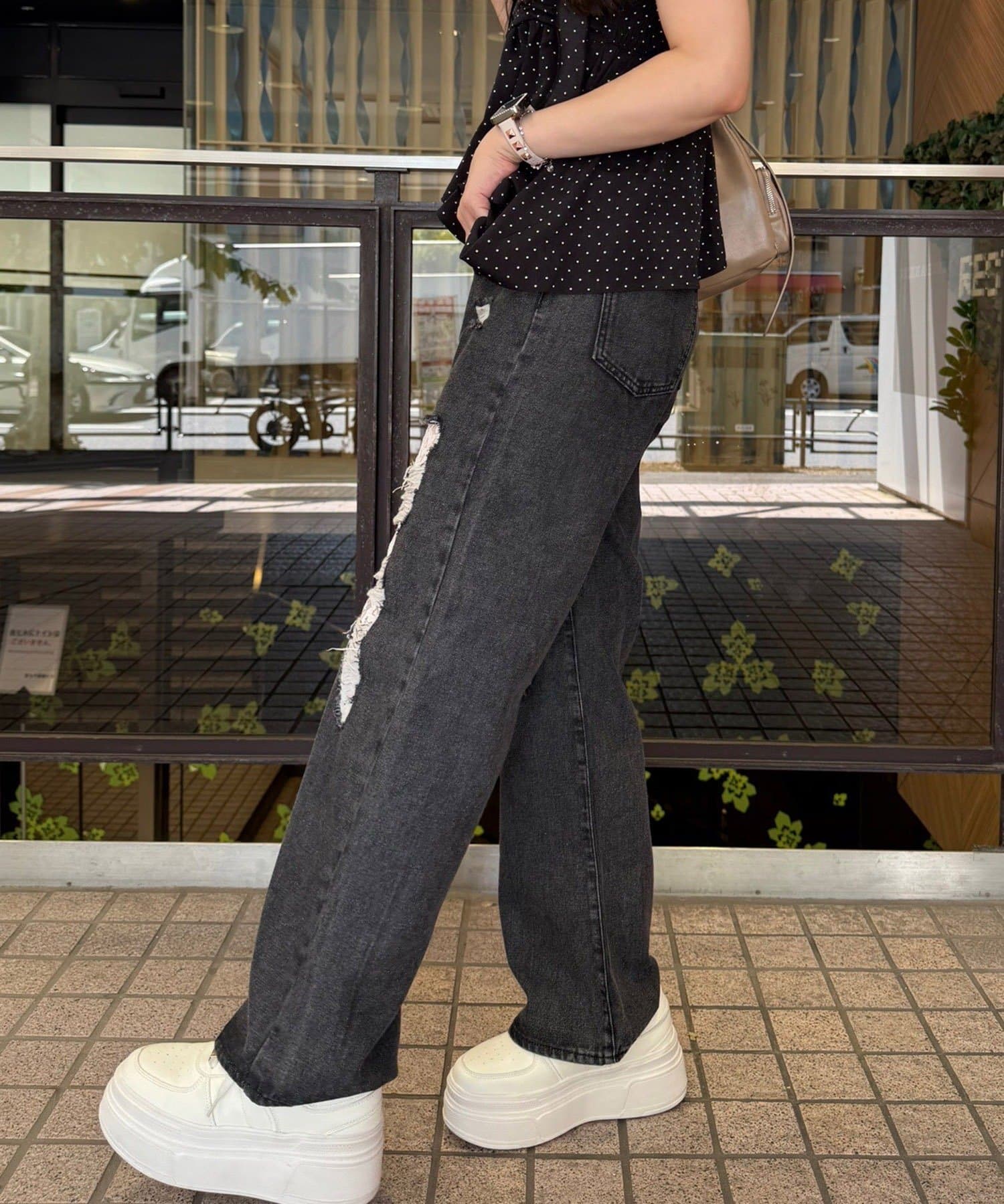 ・大胆なクラッシュ加工に繊細なレースをあしらった、甘辛MIXデニム