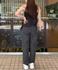 ・ストレートシルエットで脚のラインを拾わず美脚見え