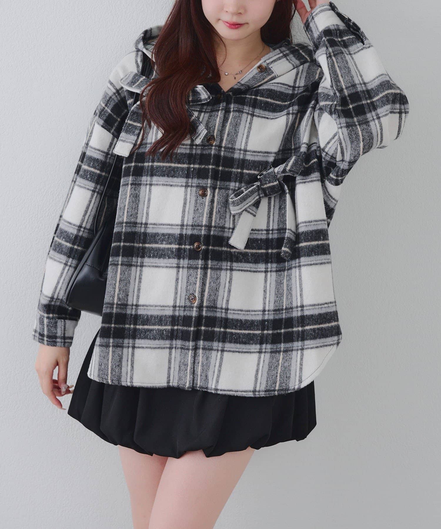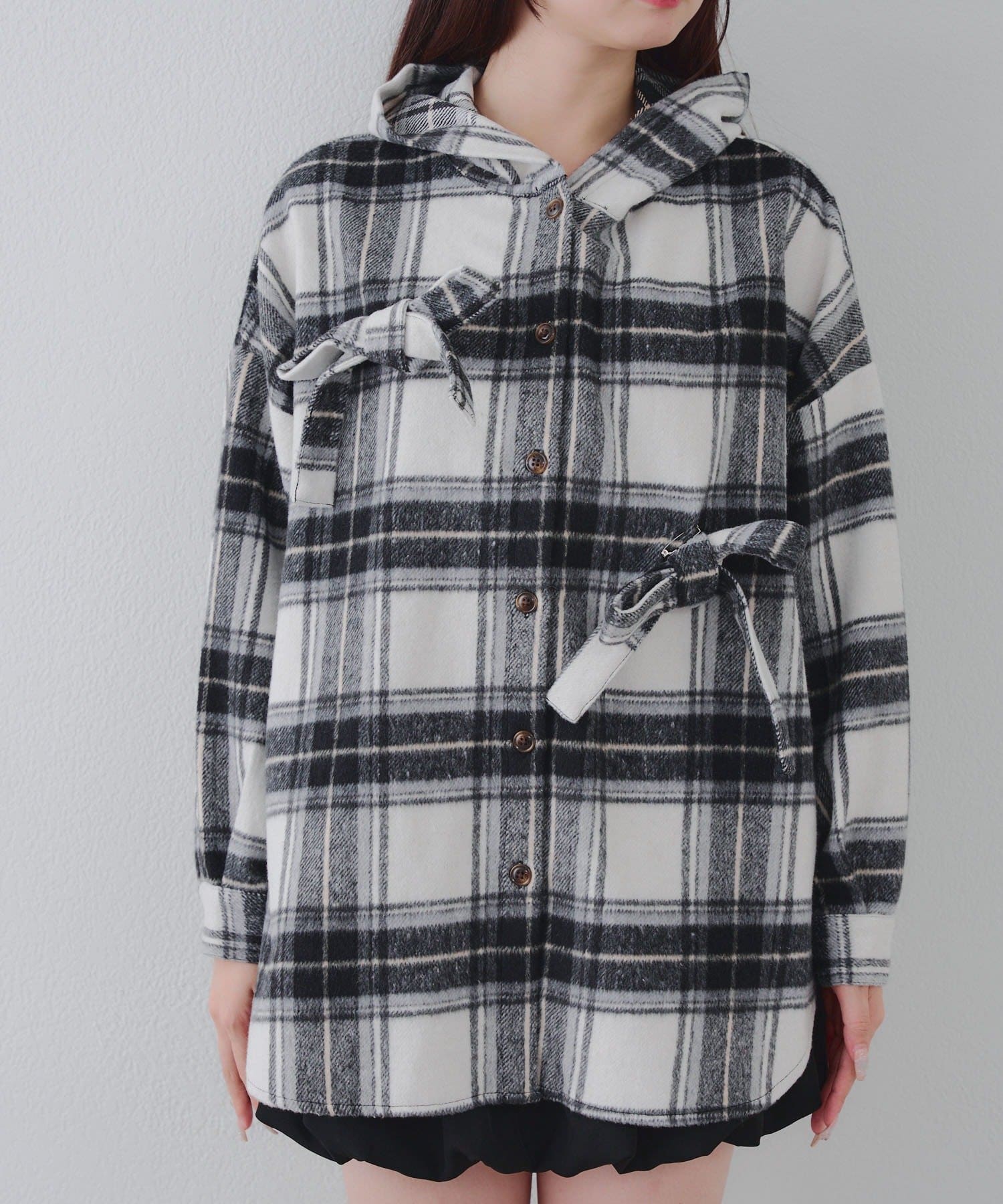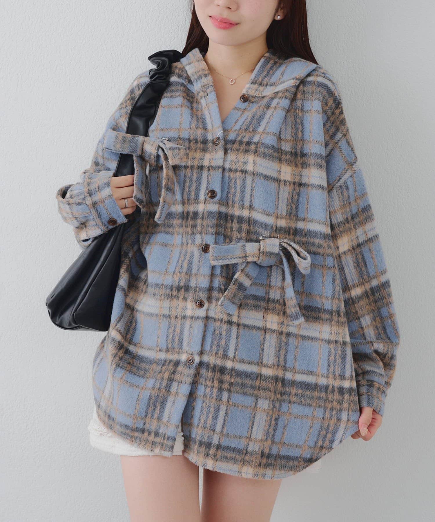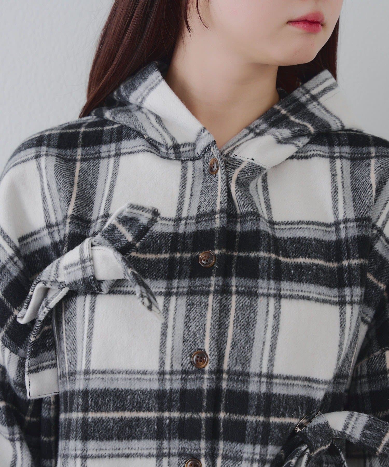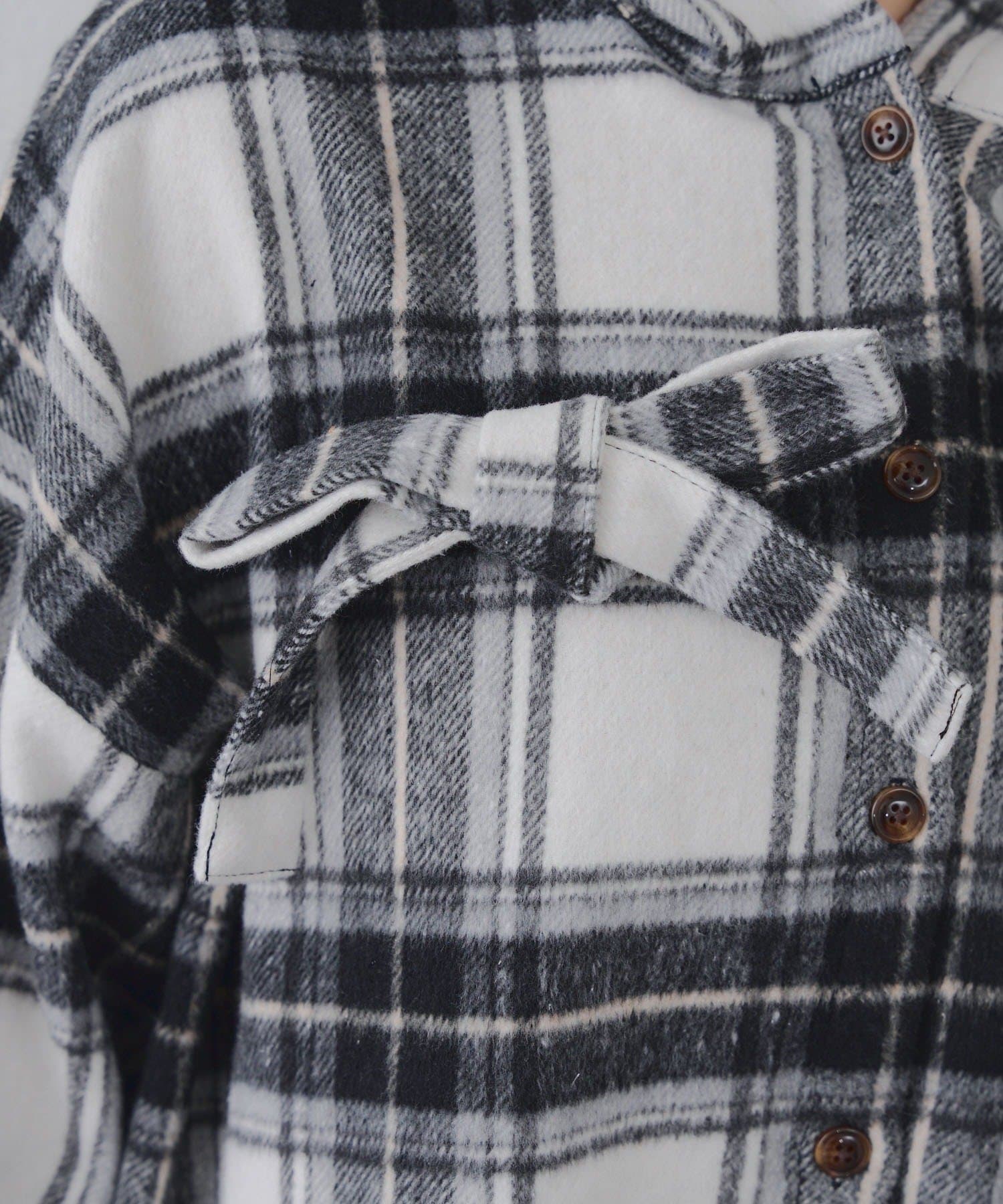 【RMAF】リボン付チェックフードシャツ