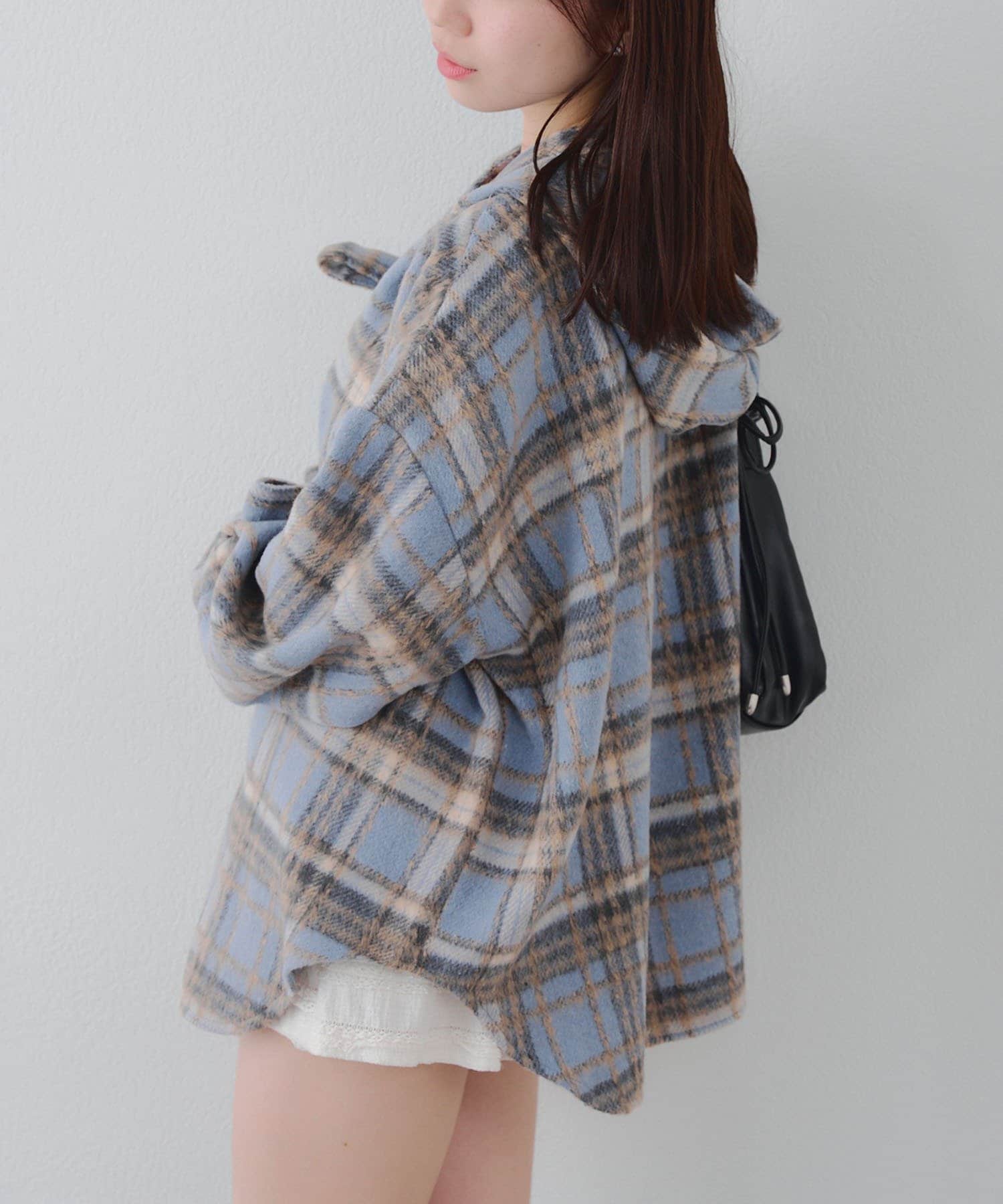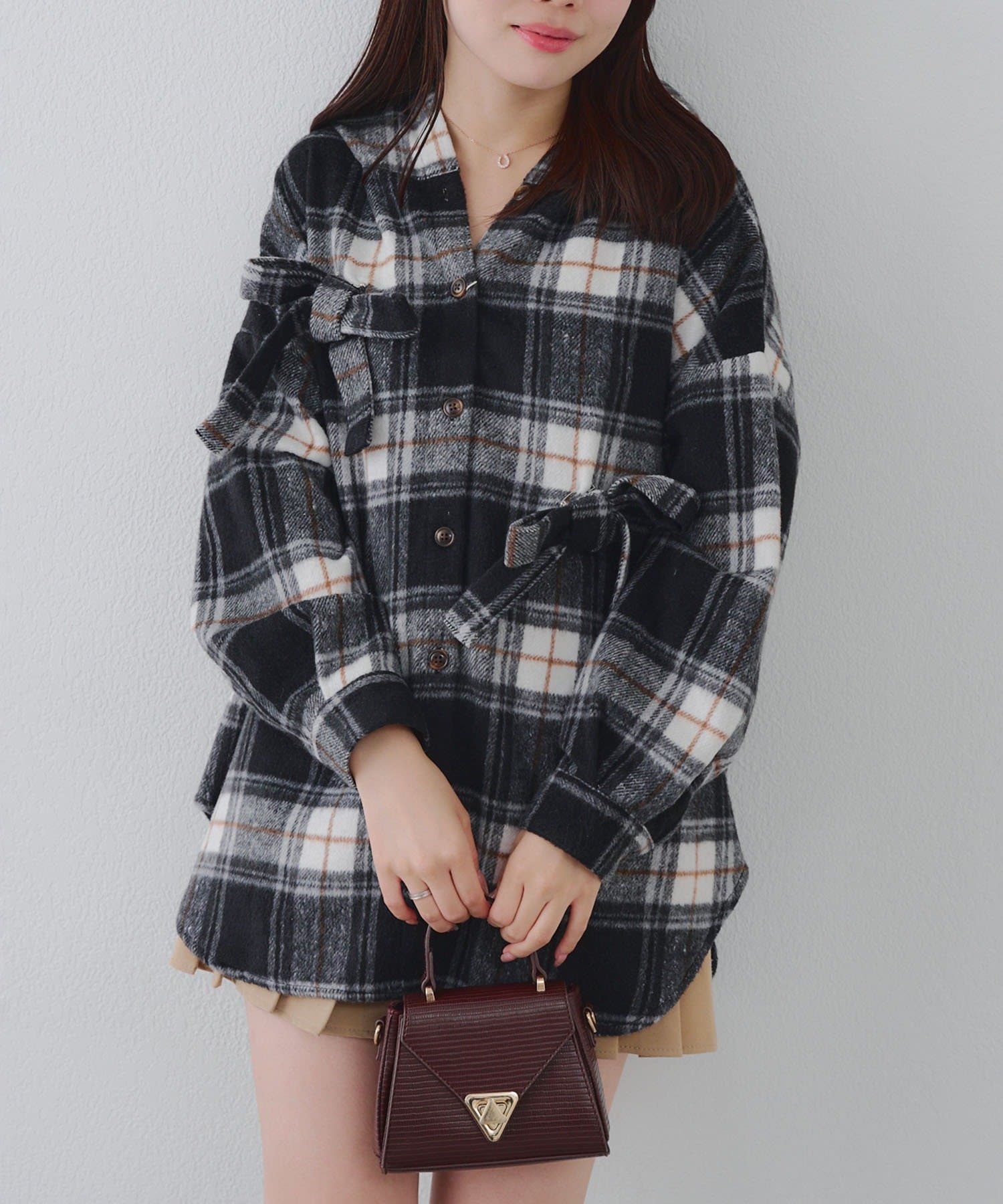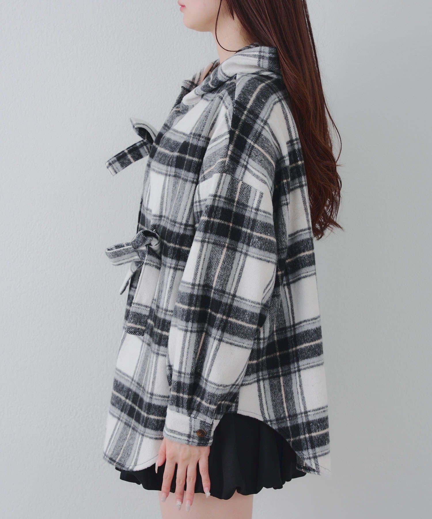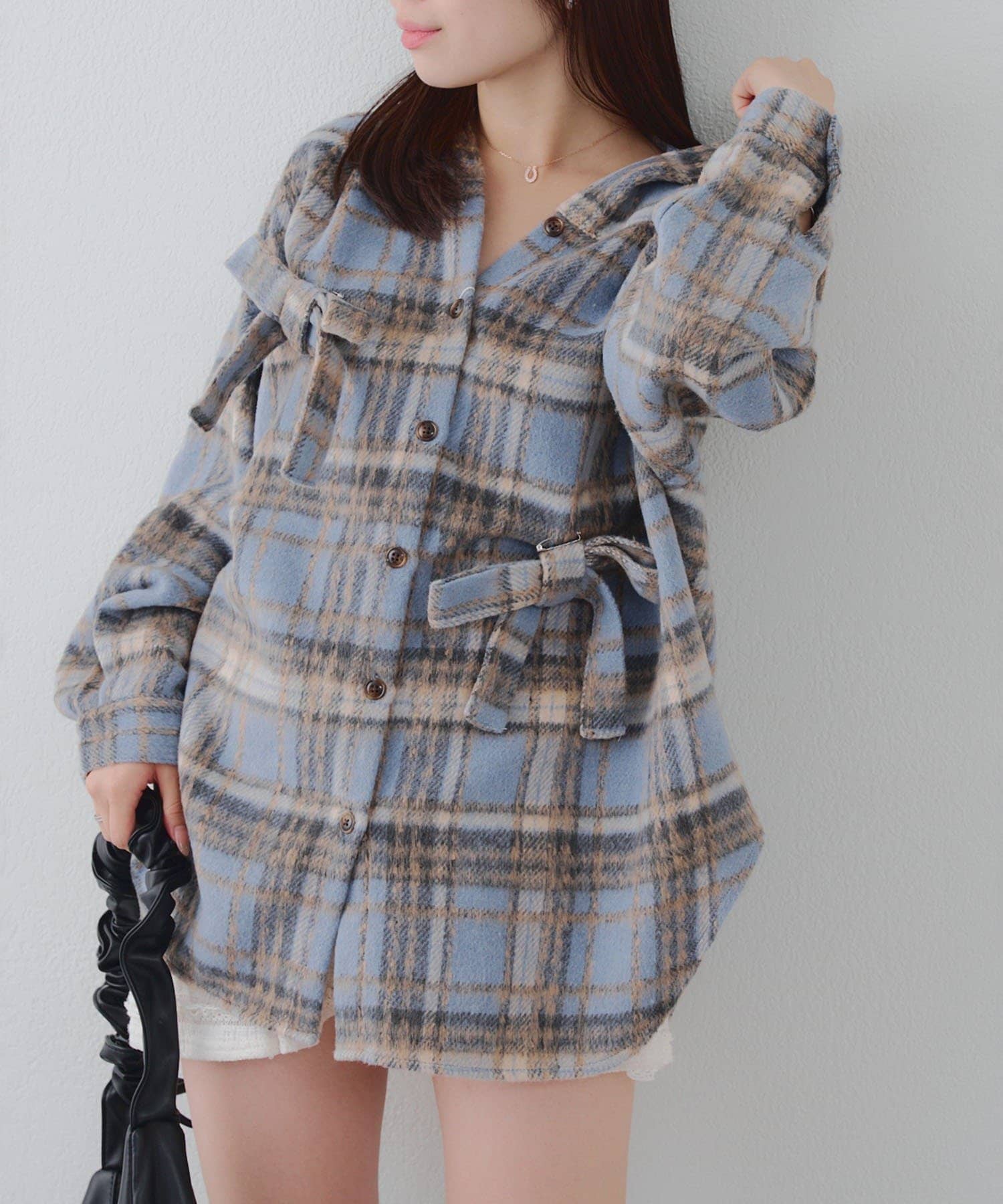 【RMAF】リボン付チェックフードシャツ