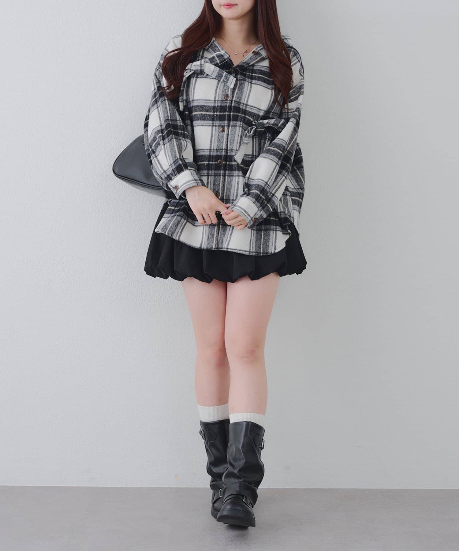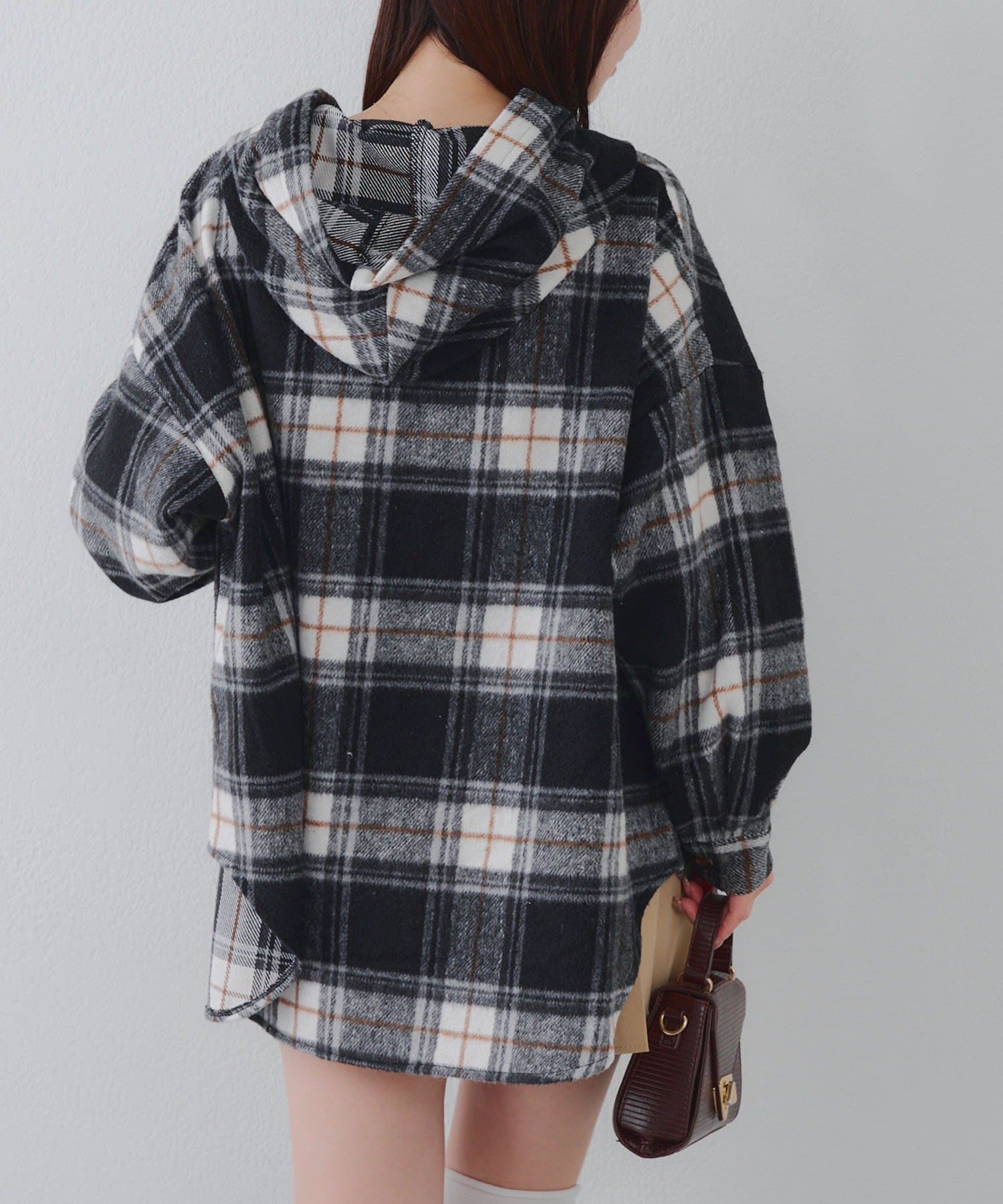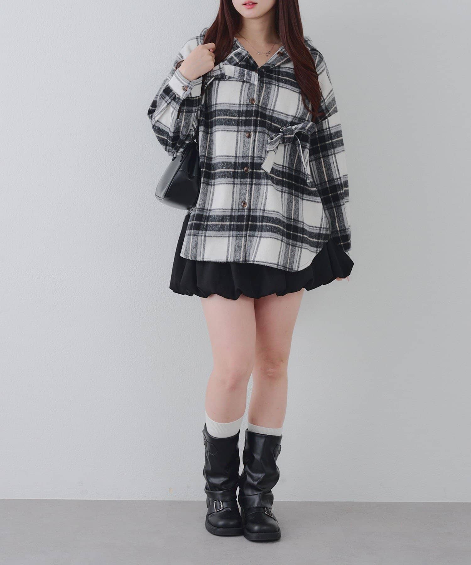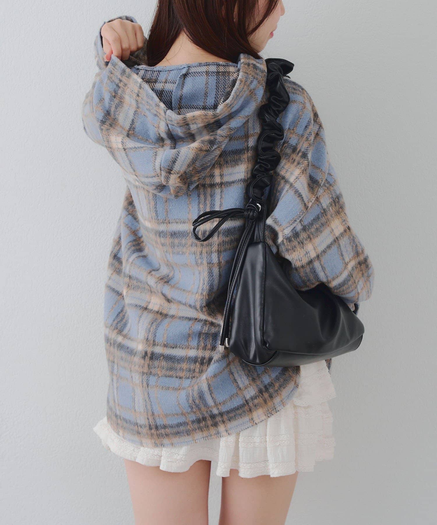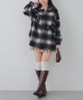 【RMAF】リボン付チェックフードシャツ