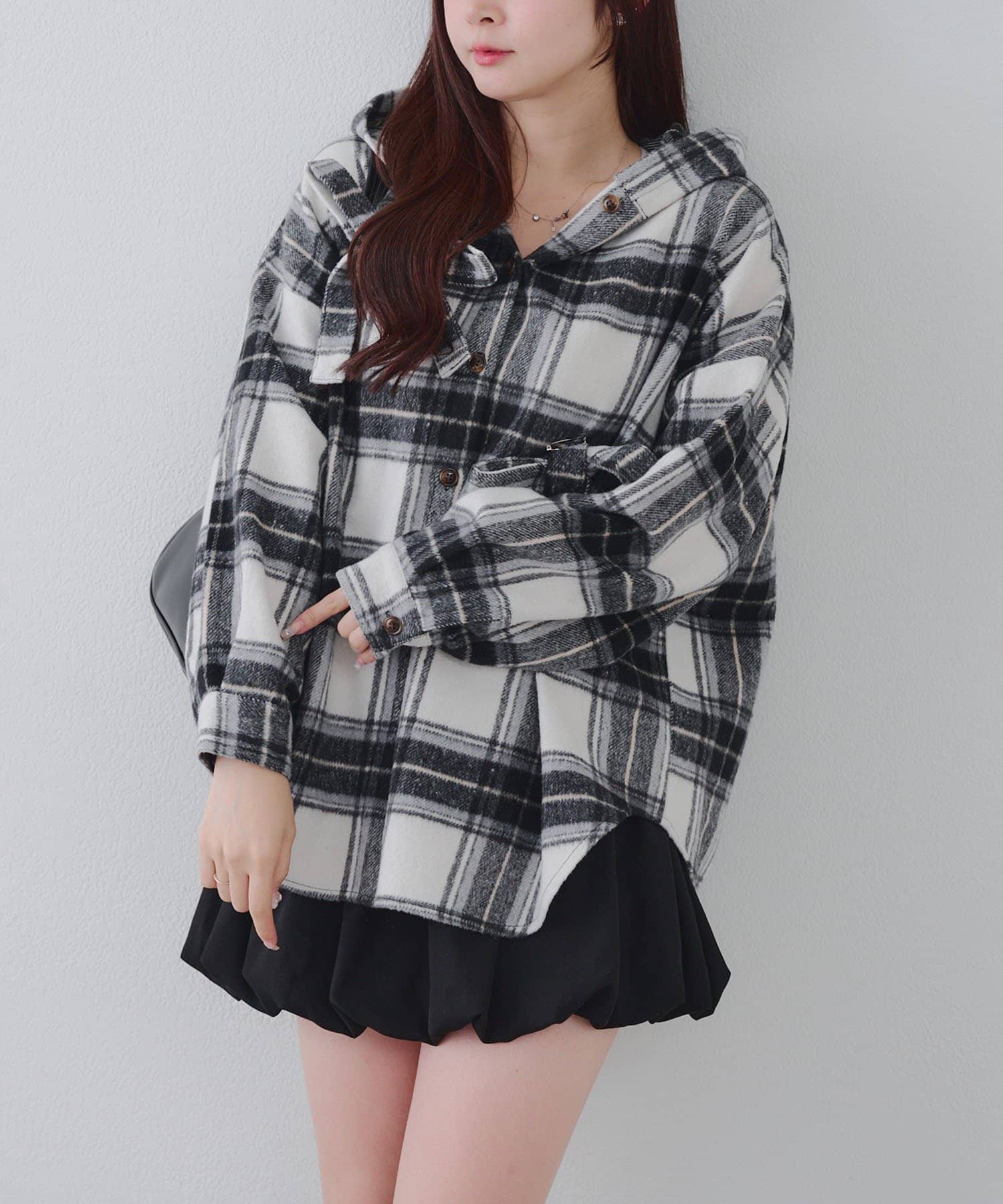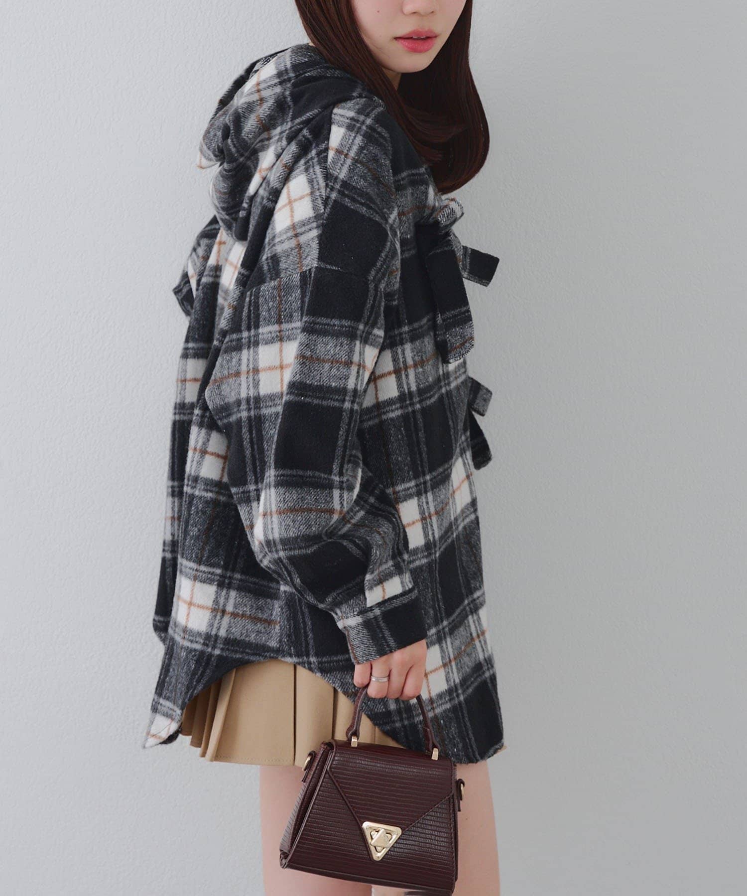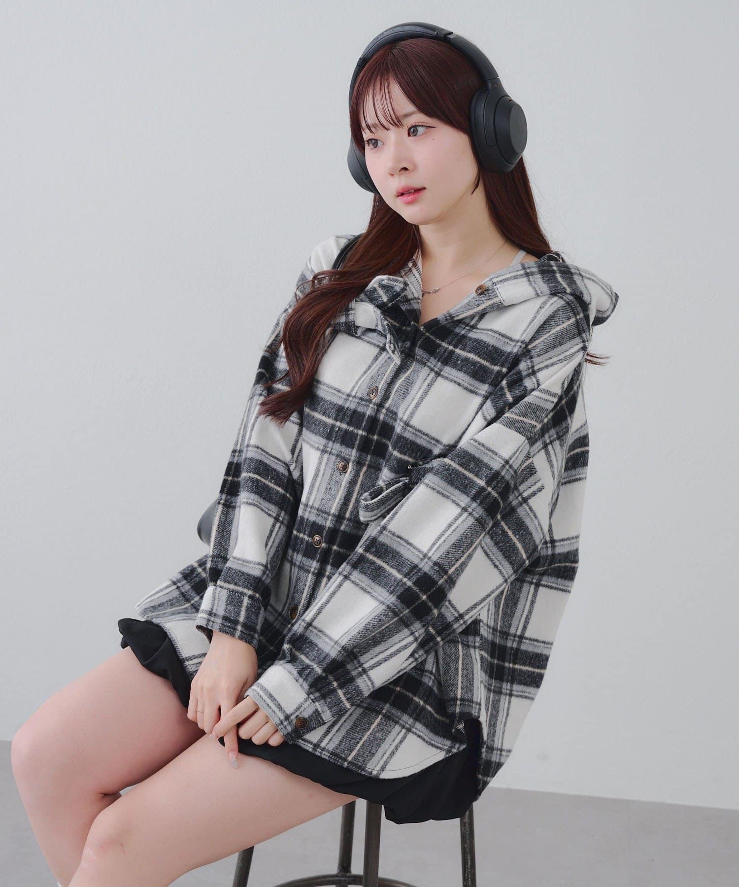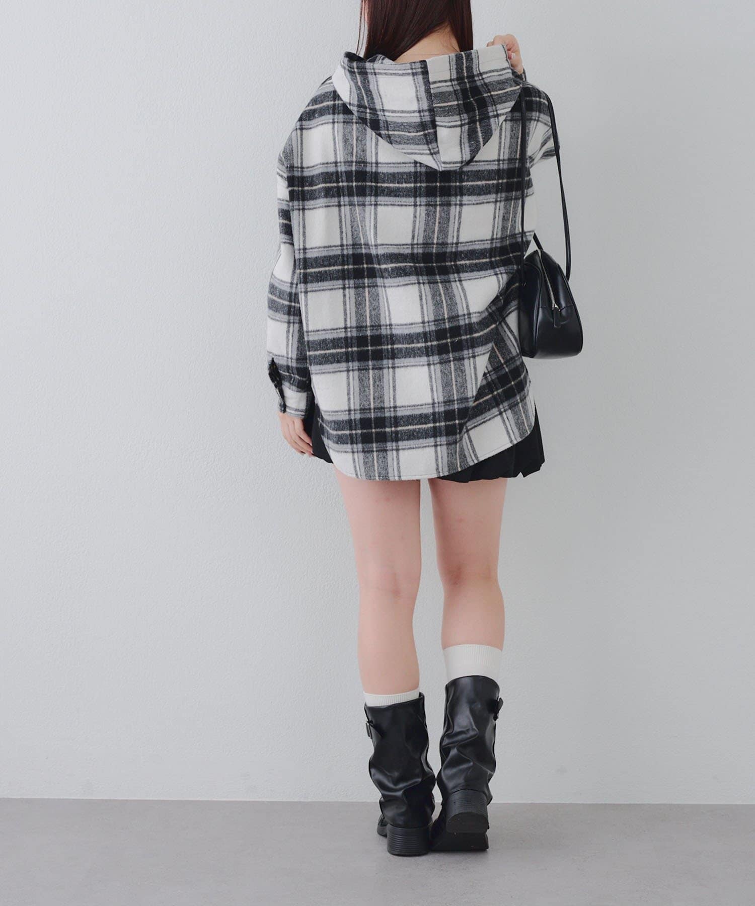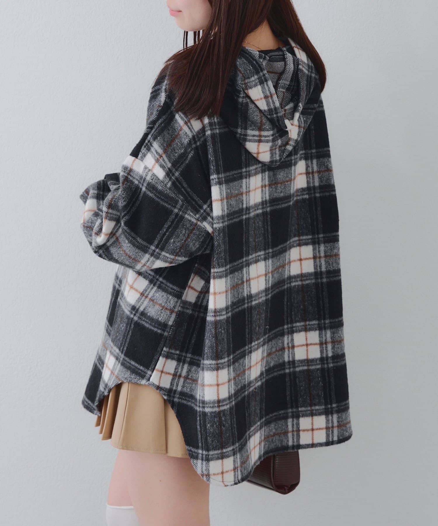 【RMAF】リボン付チェックフードシャツ
