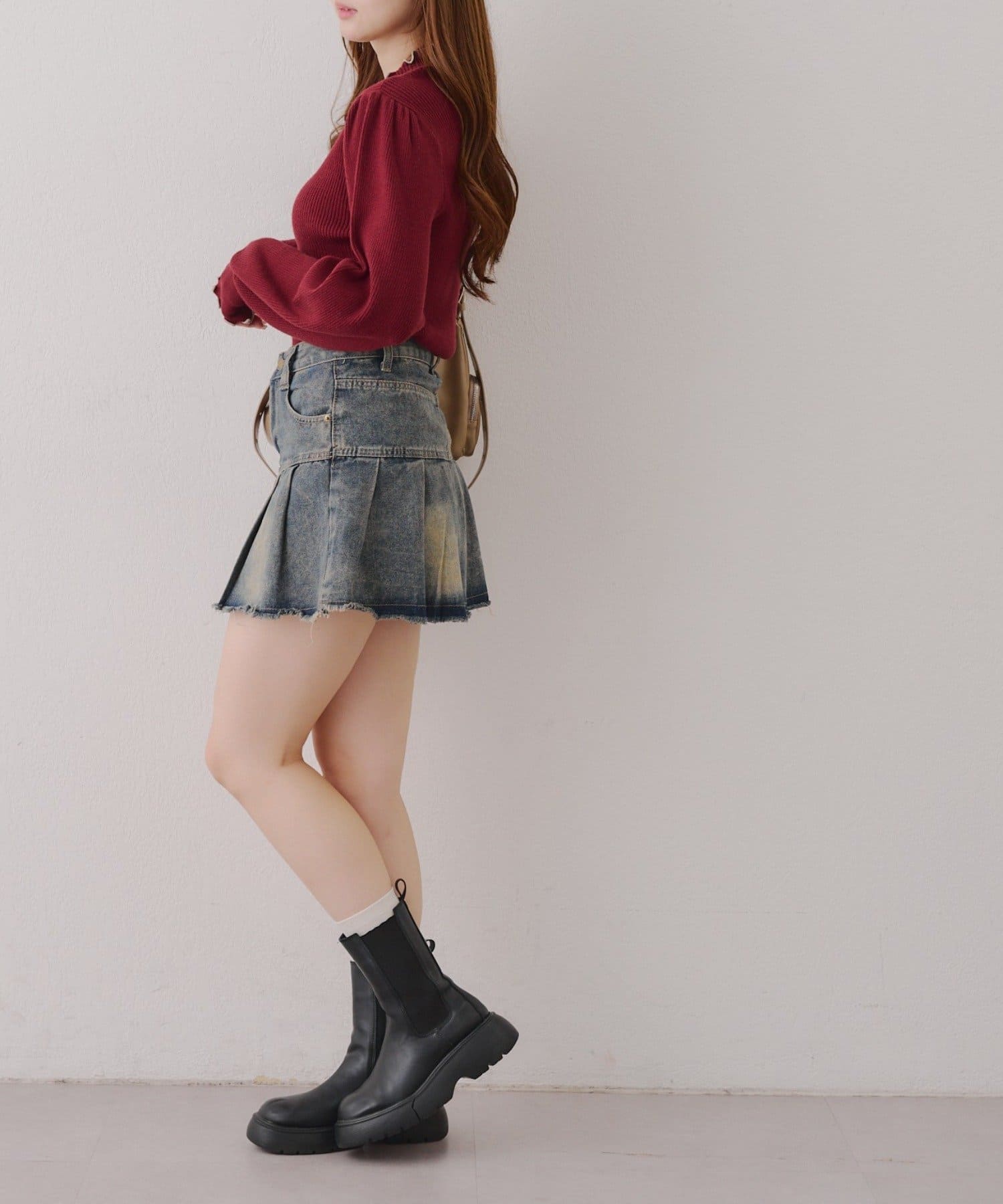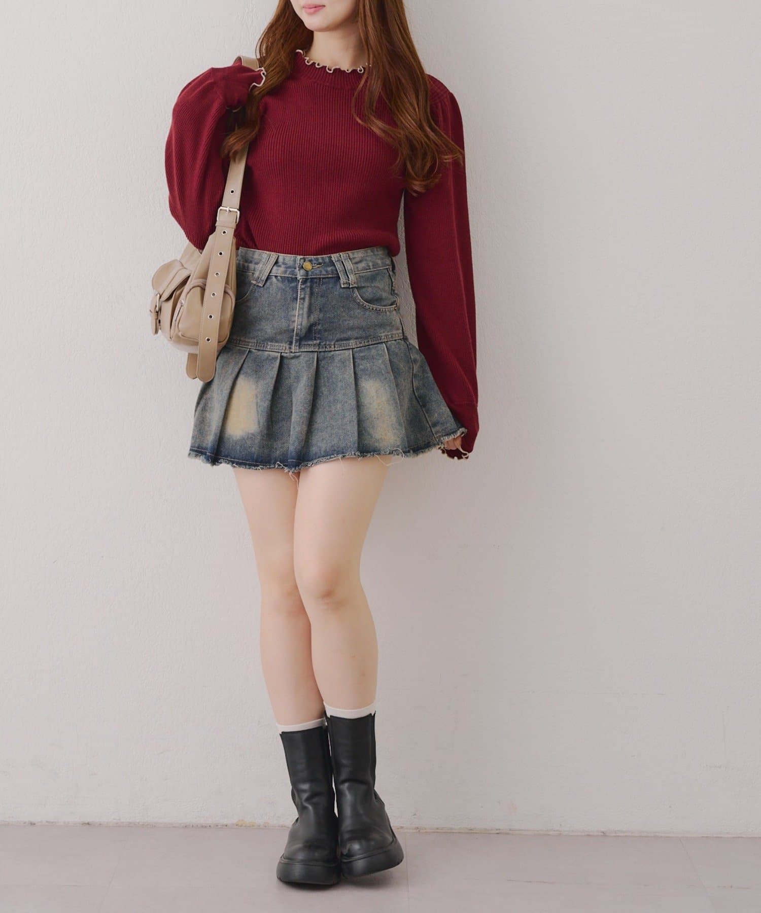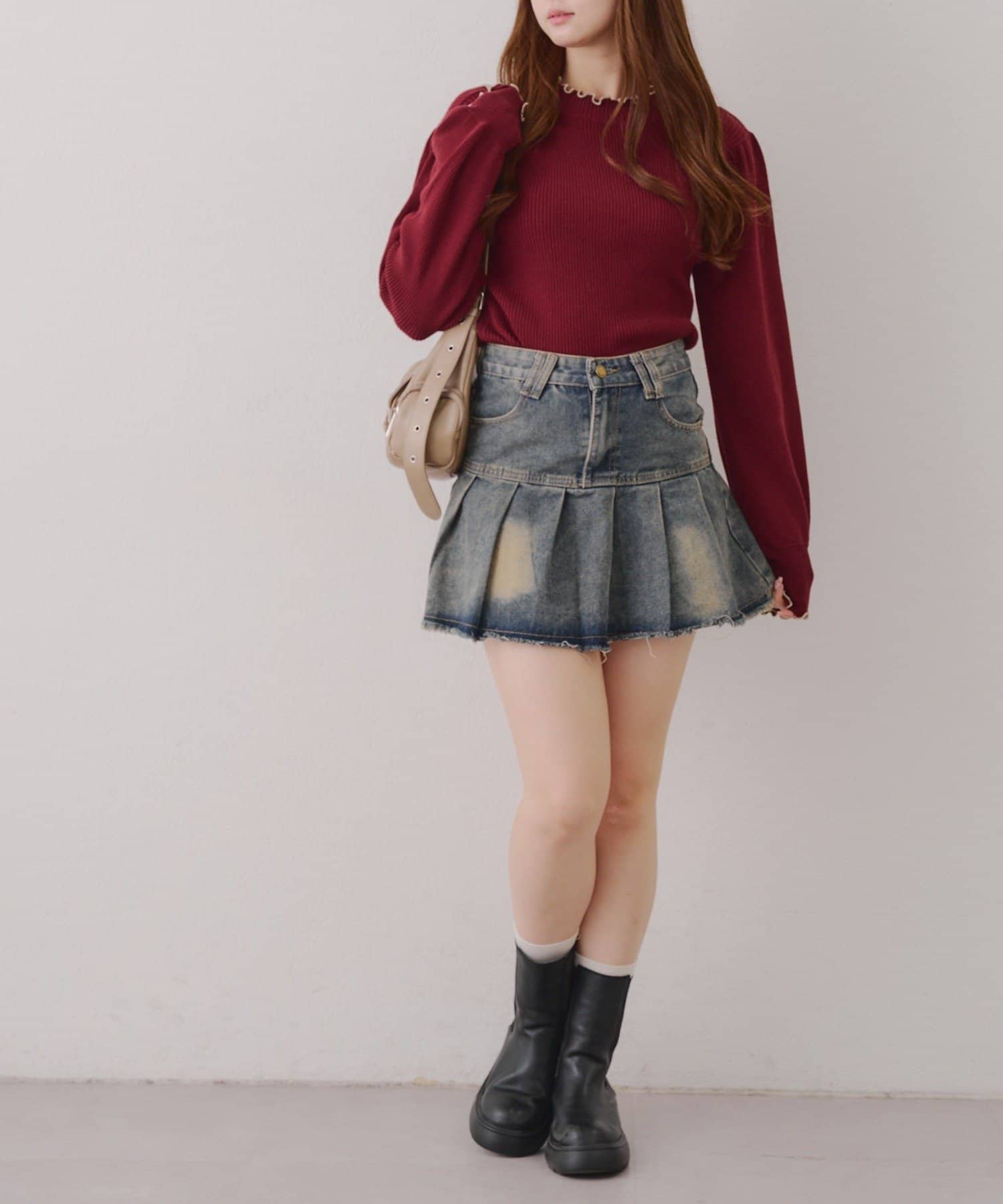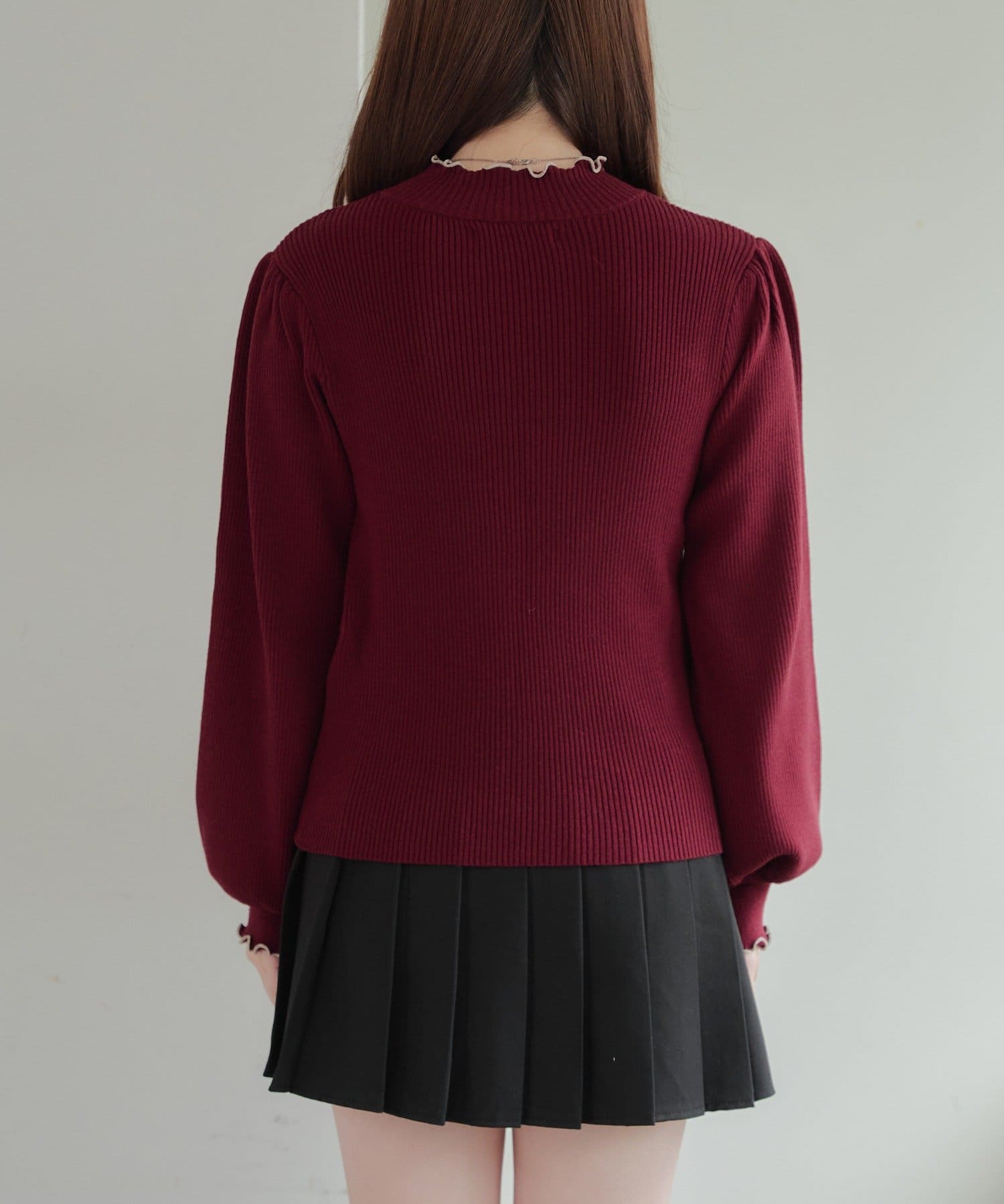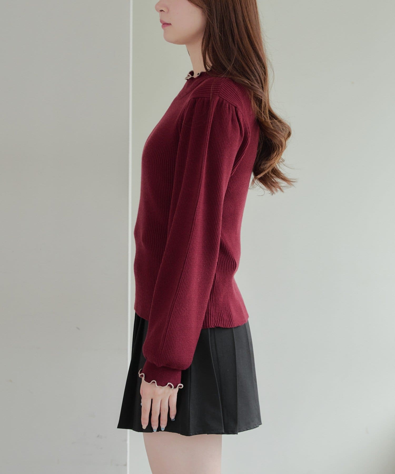 ・毎年人気の首元と袖口にメロウ加工が施された甘さのあるデザインニット。