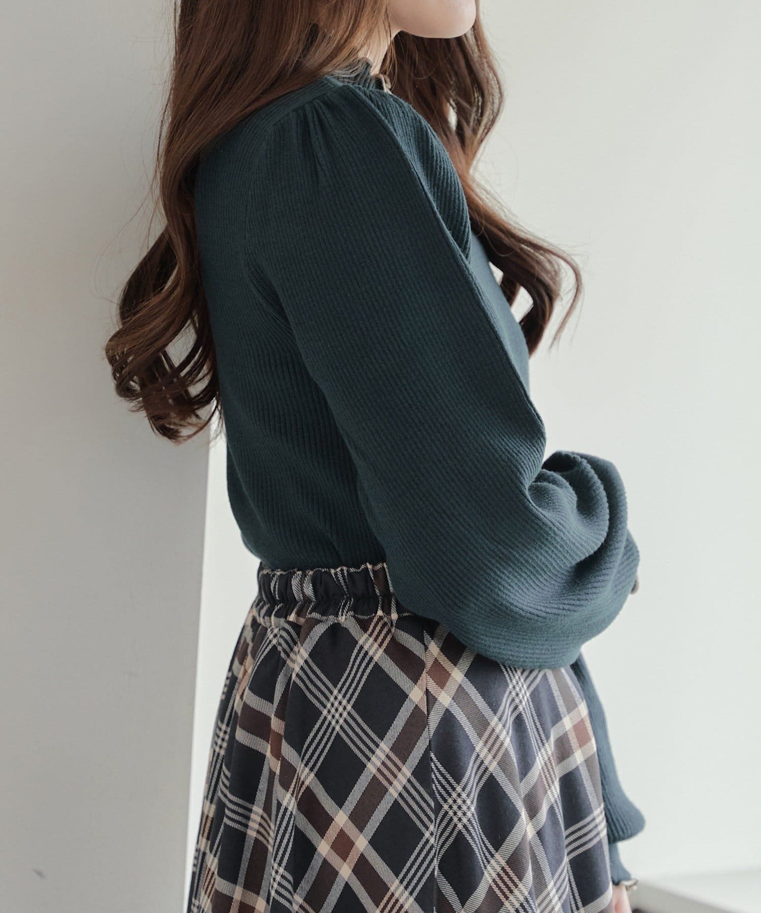 ・お袖のぽわんとしたゆとりのあるパフスリーブが気になる二の腕をカバーしながらも、