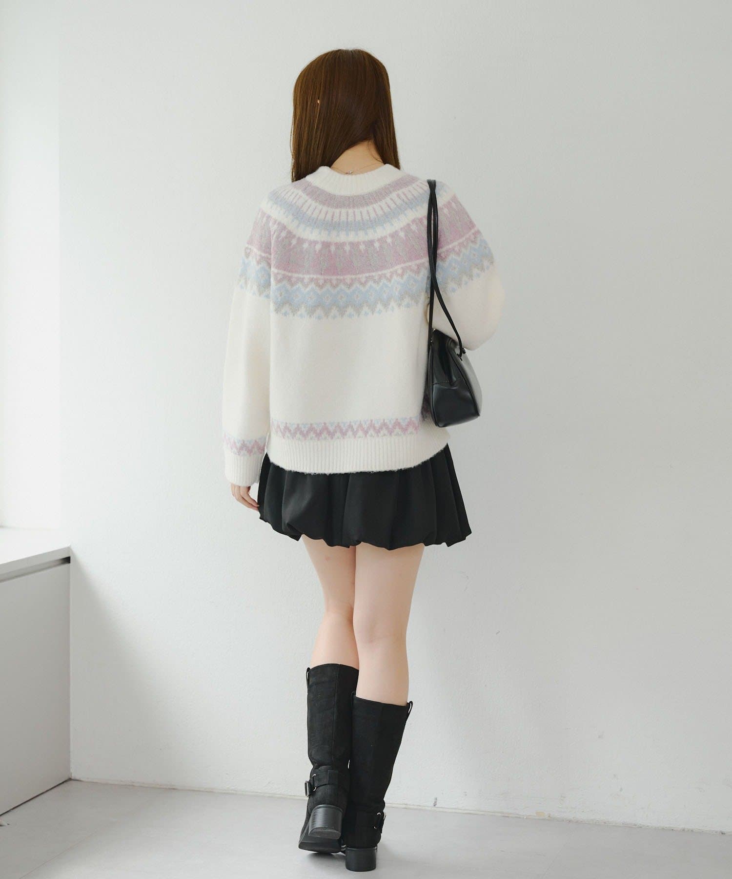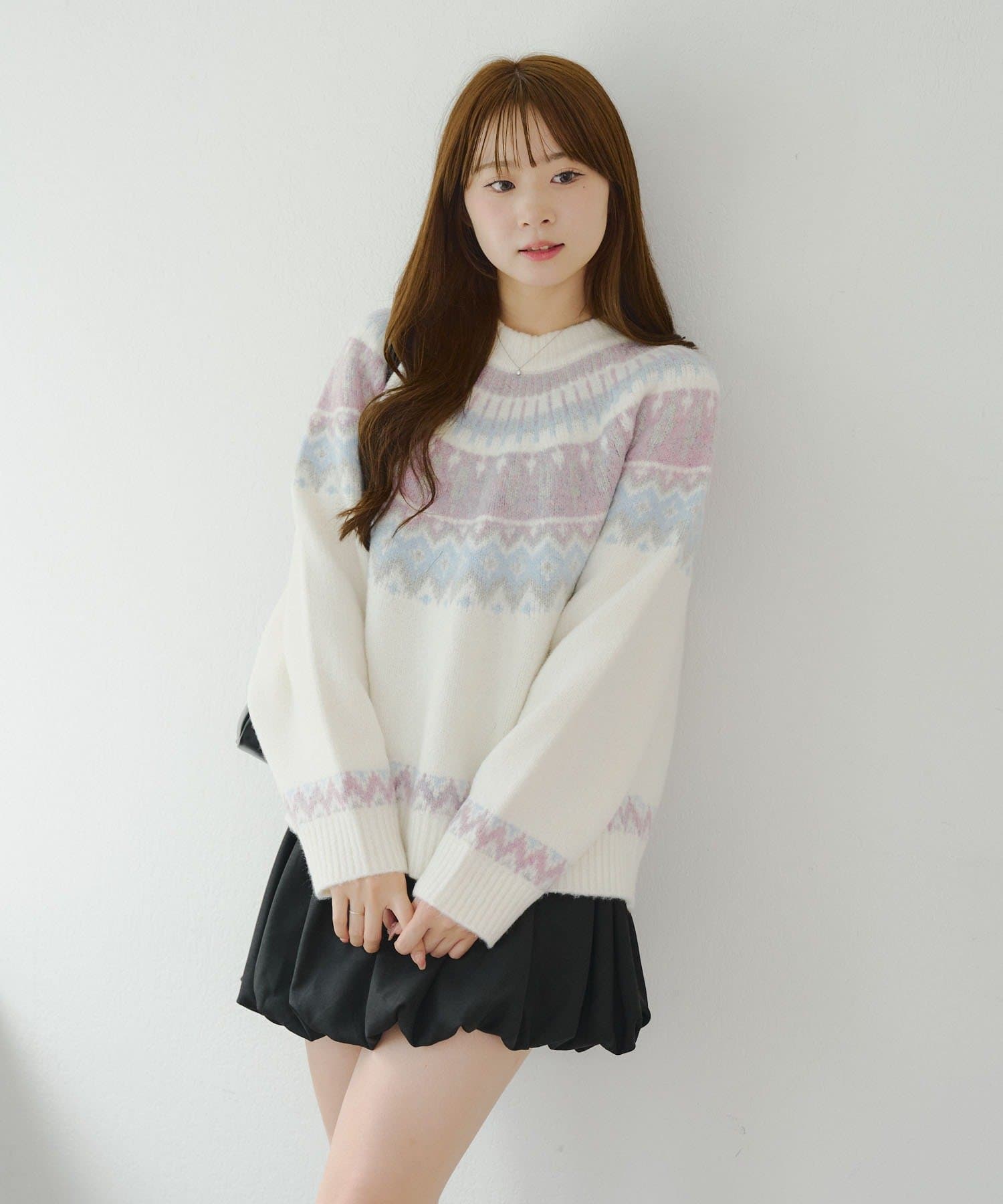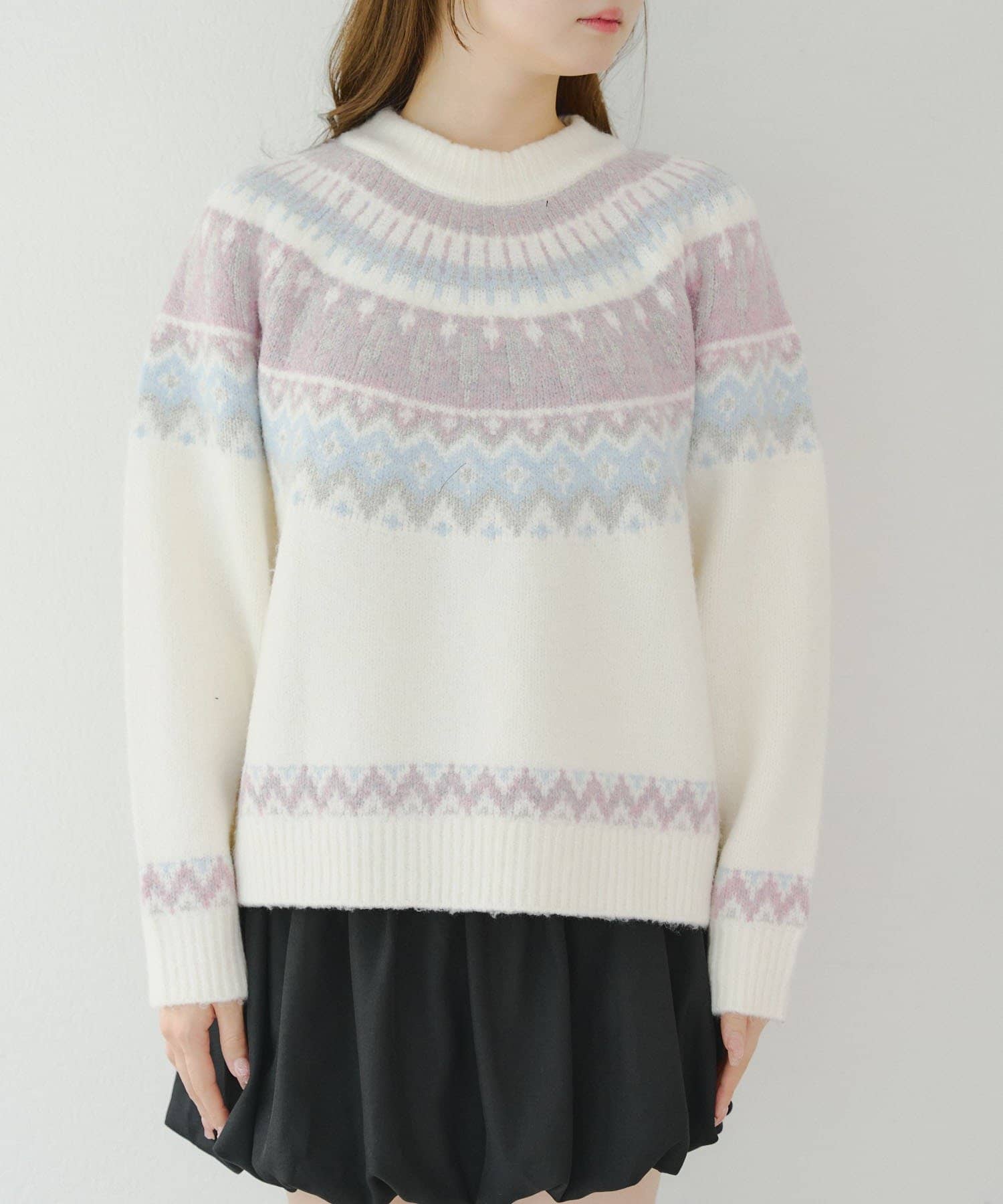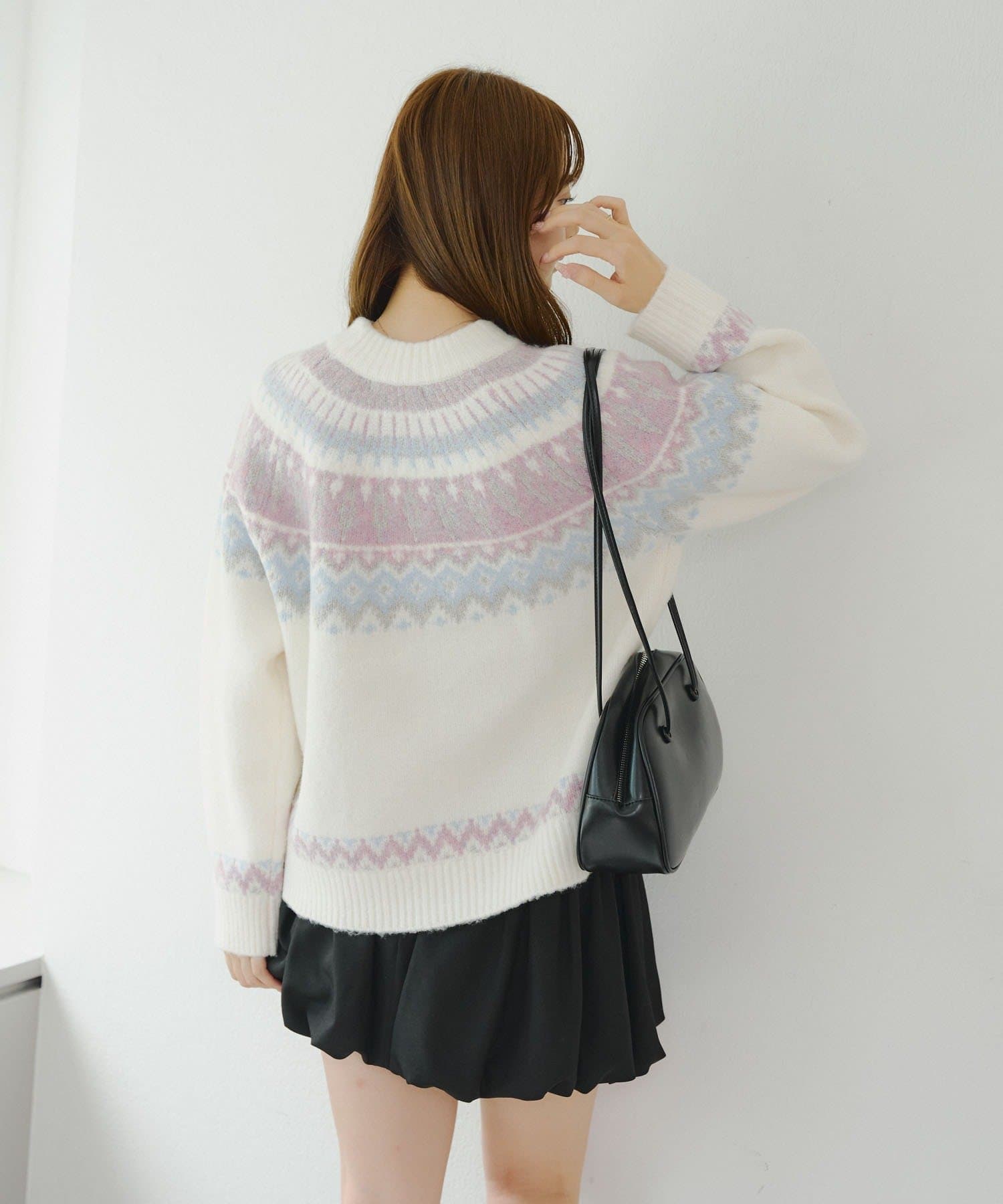 ・もちもちと弾力のある触り心地が魅力の求心柄ニットプルオーバー