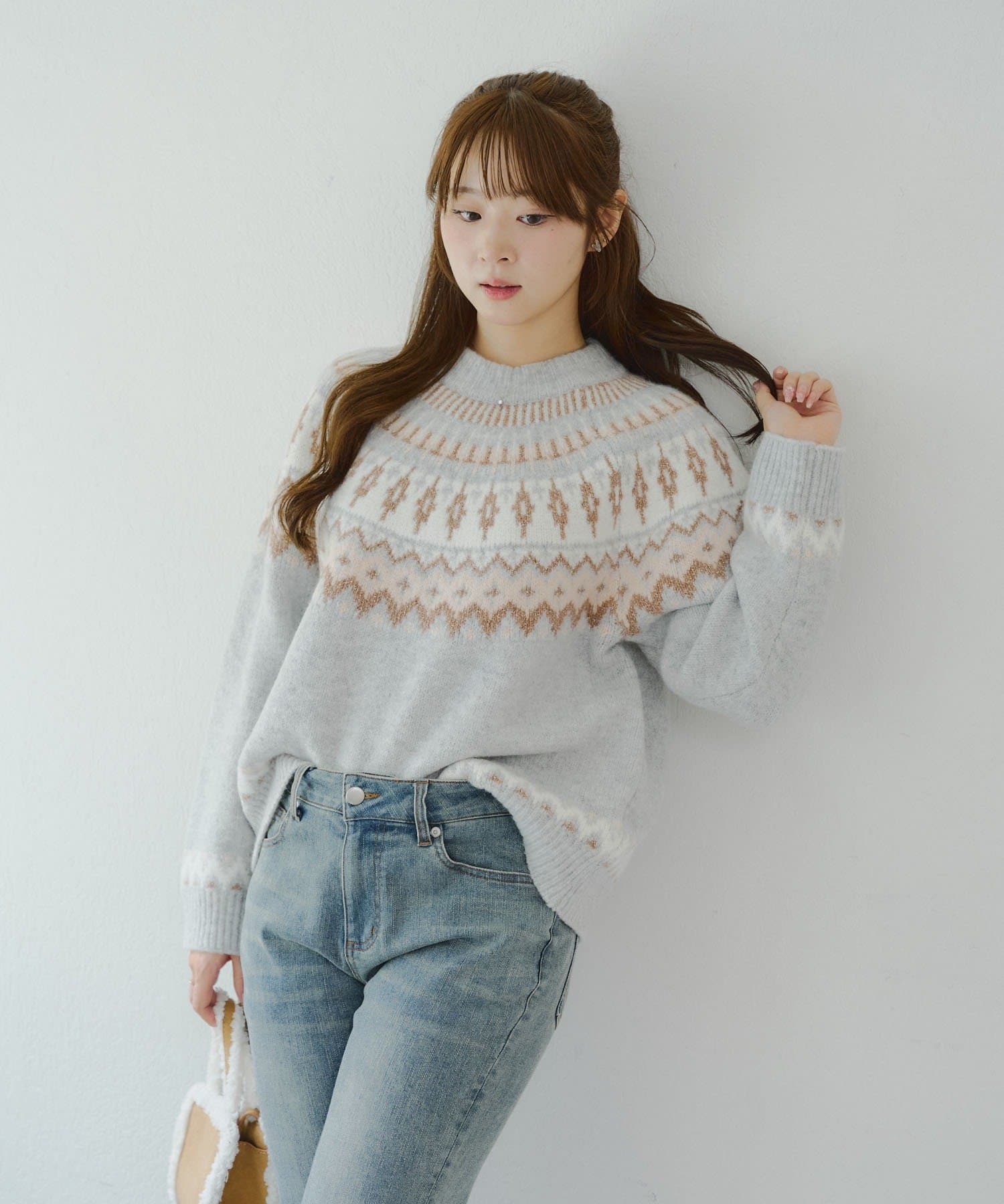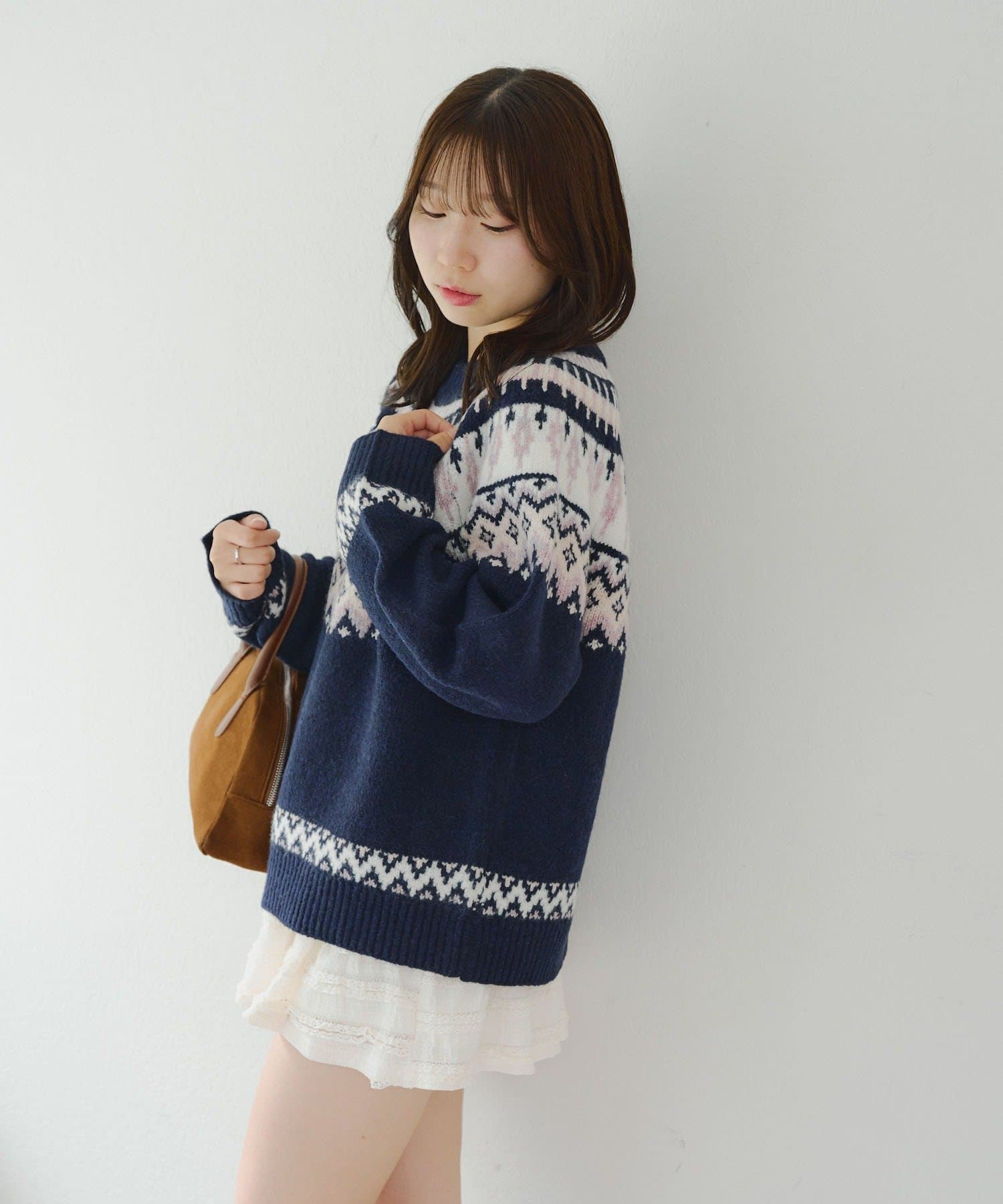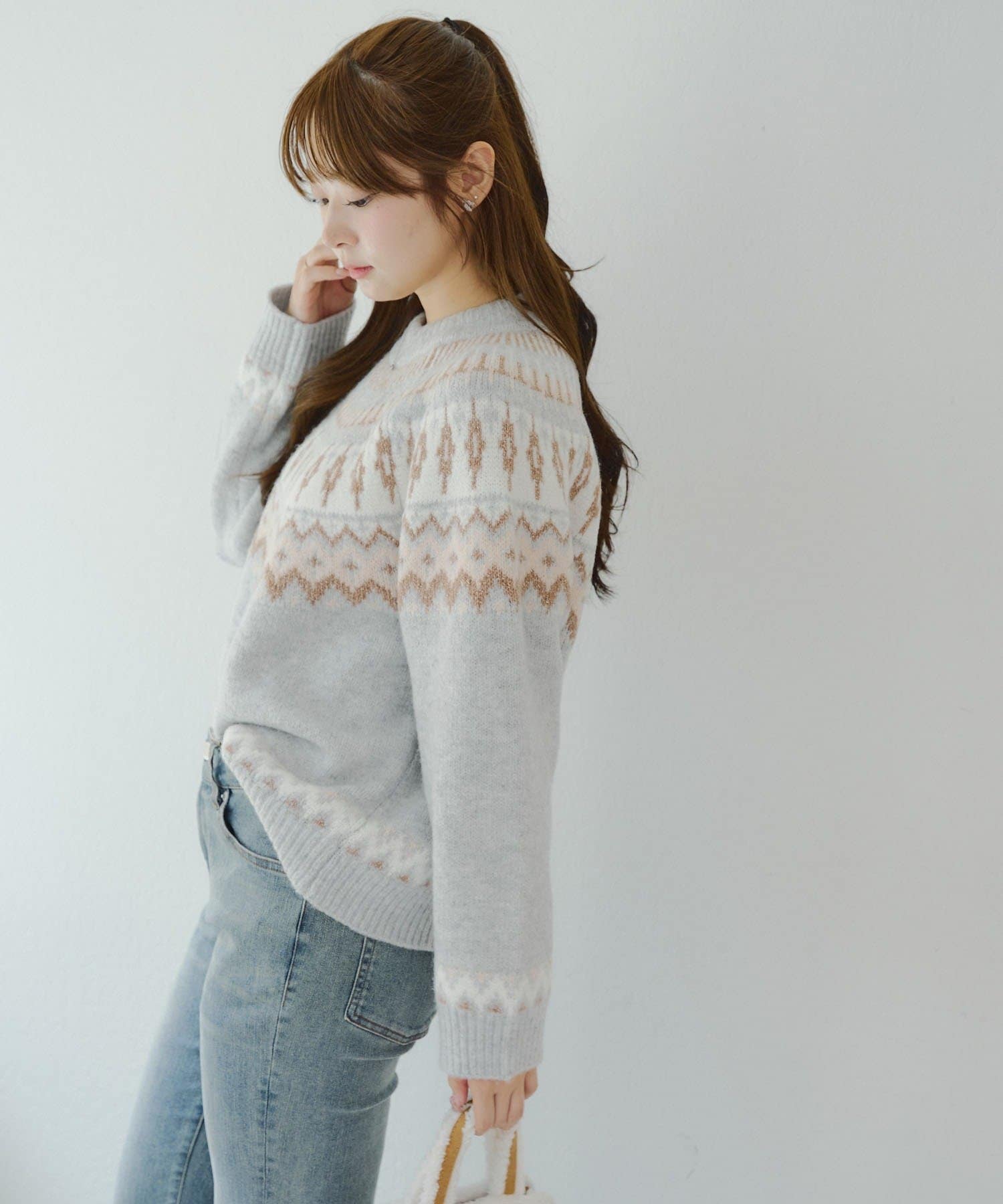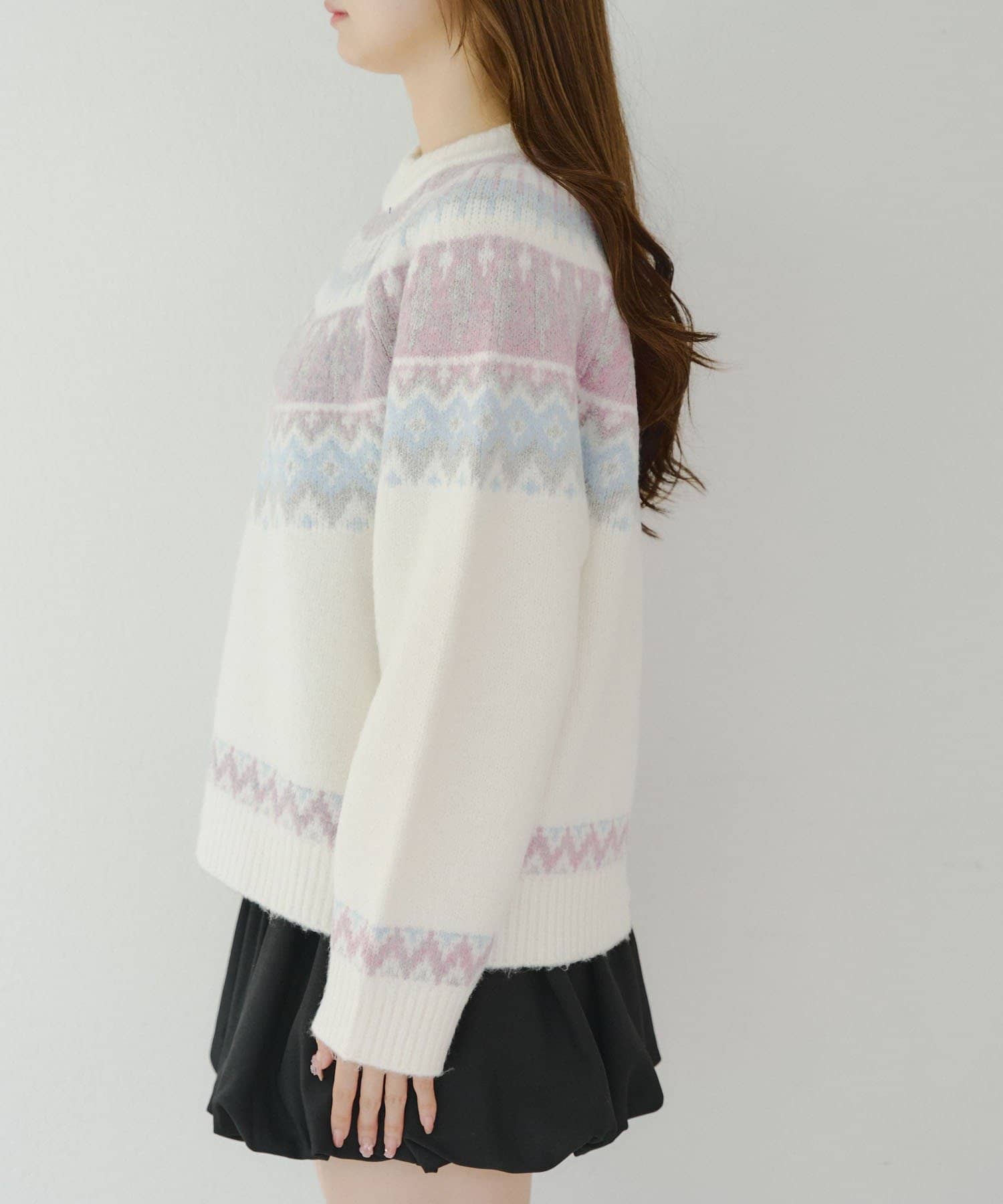 ・もちもちと弾力のある触り心地が魅力の求心柄ニットプルオーバー