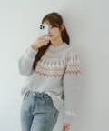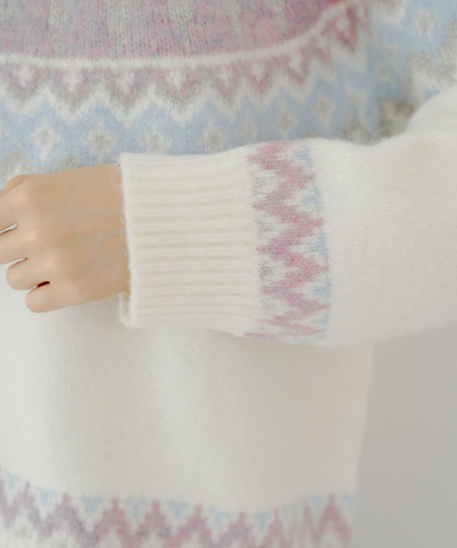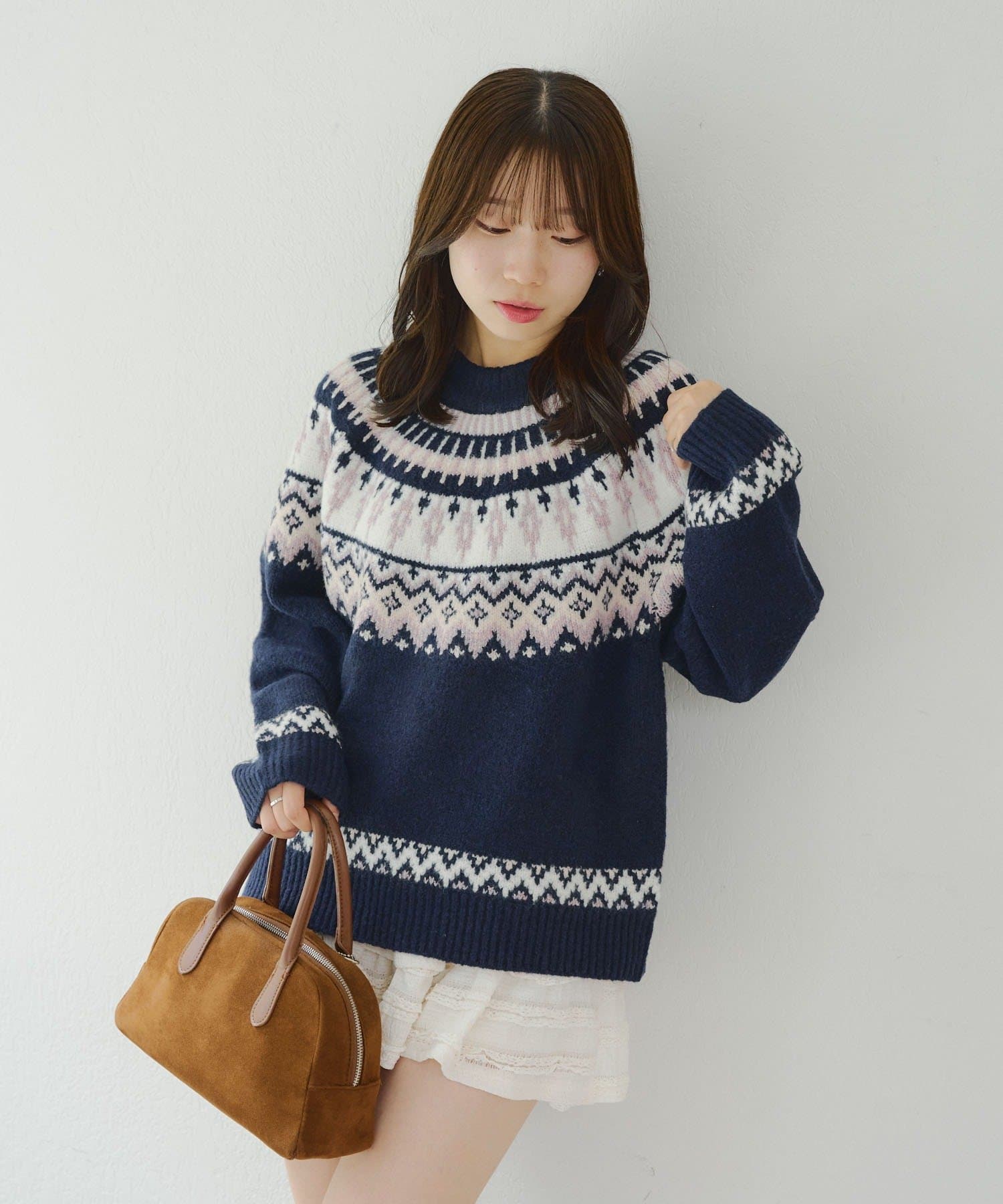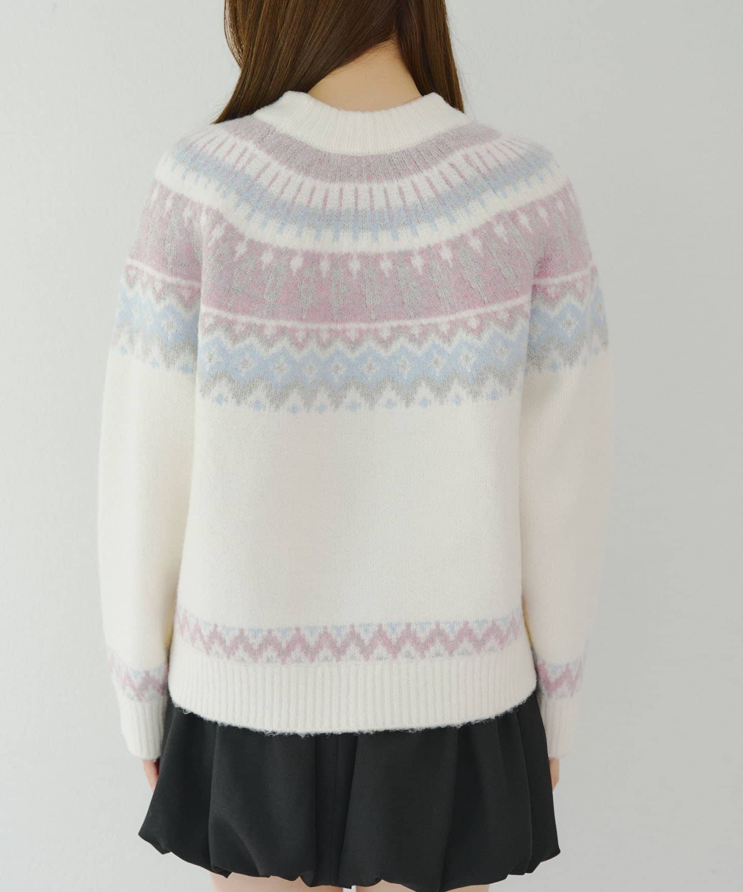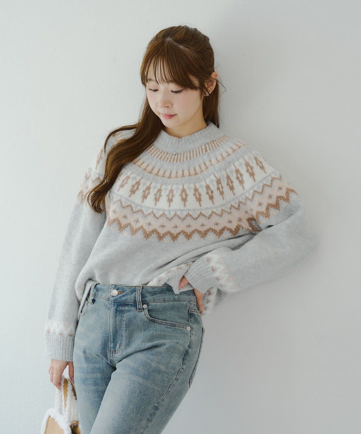 ・もちもちと弾力のある触り心地が魅力の求心柄ニットプルオーバー