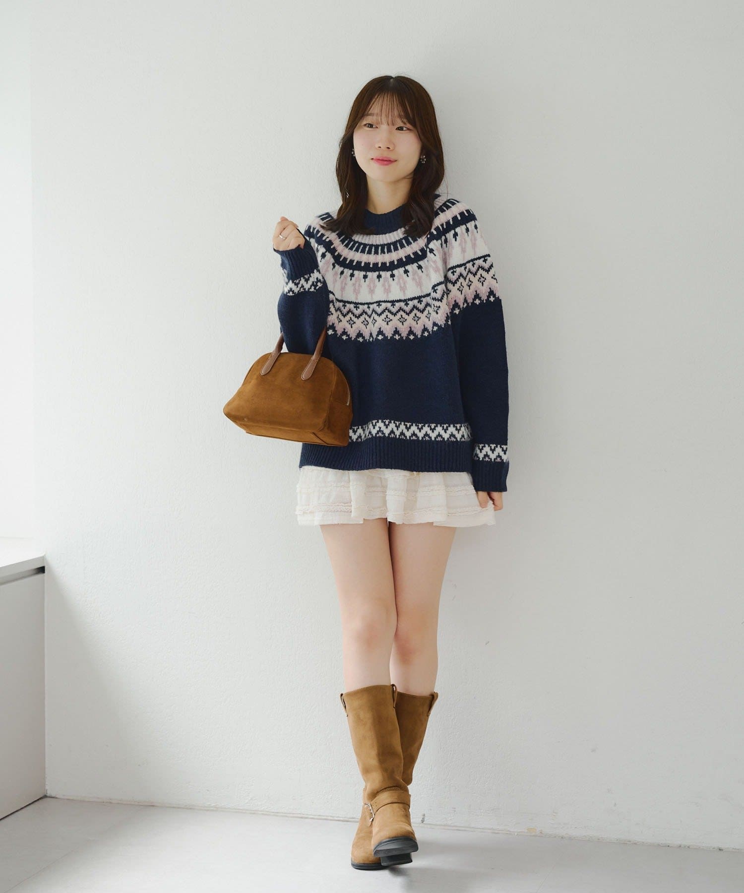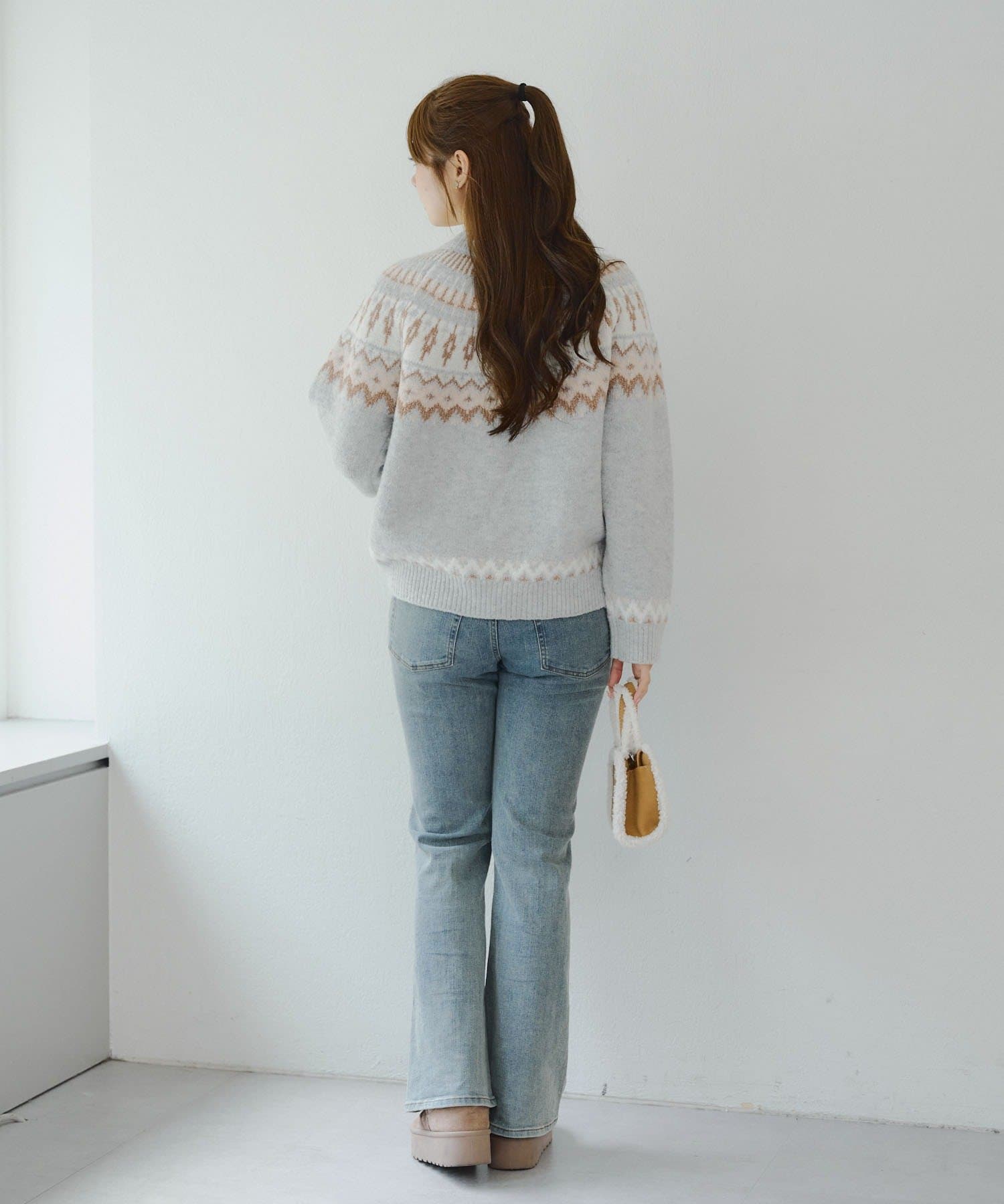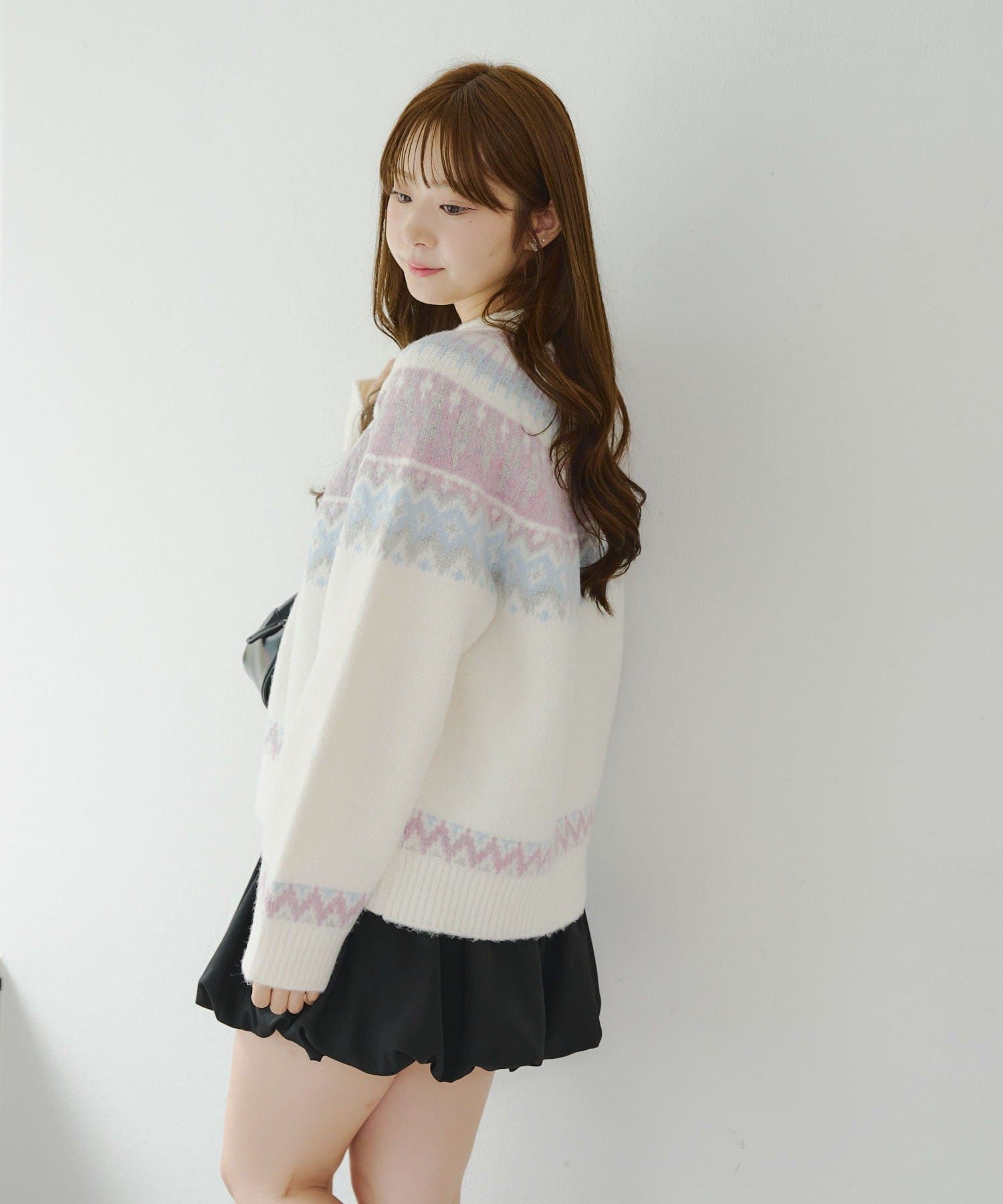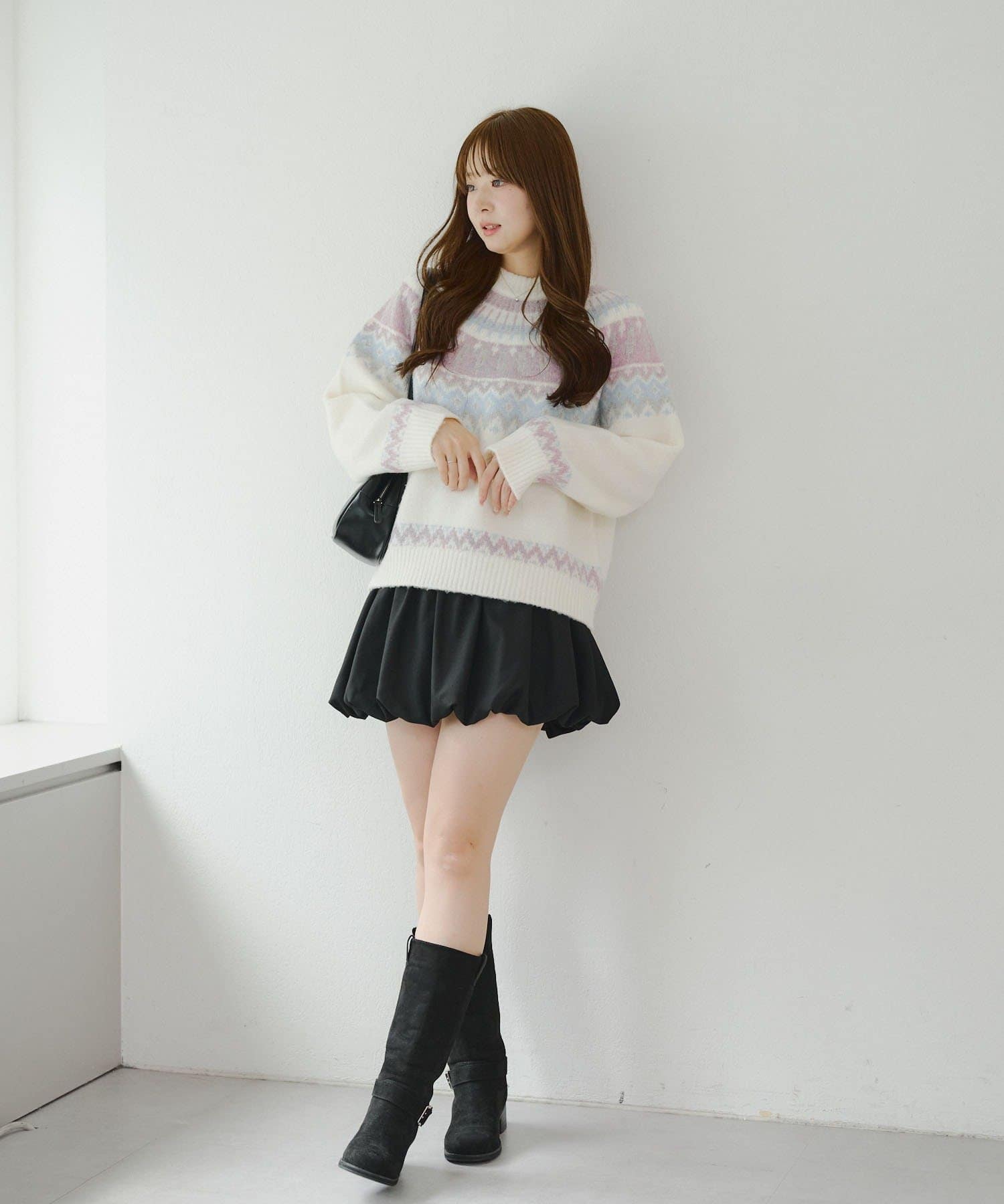 ・もちもちと弾力のある触り心地が魅力の求心柄ニットプルオーバー