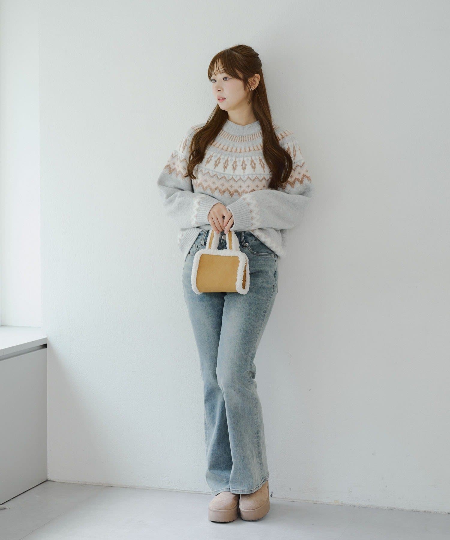 ・ワイドなデニムにムートンサンダルの着こなしもオススメ