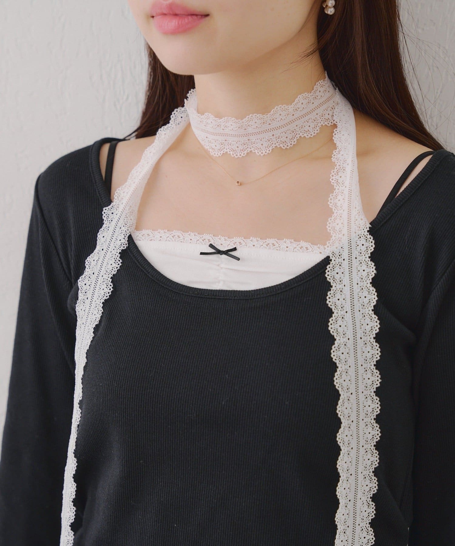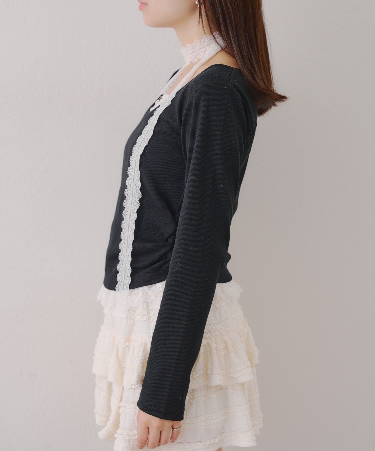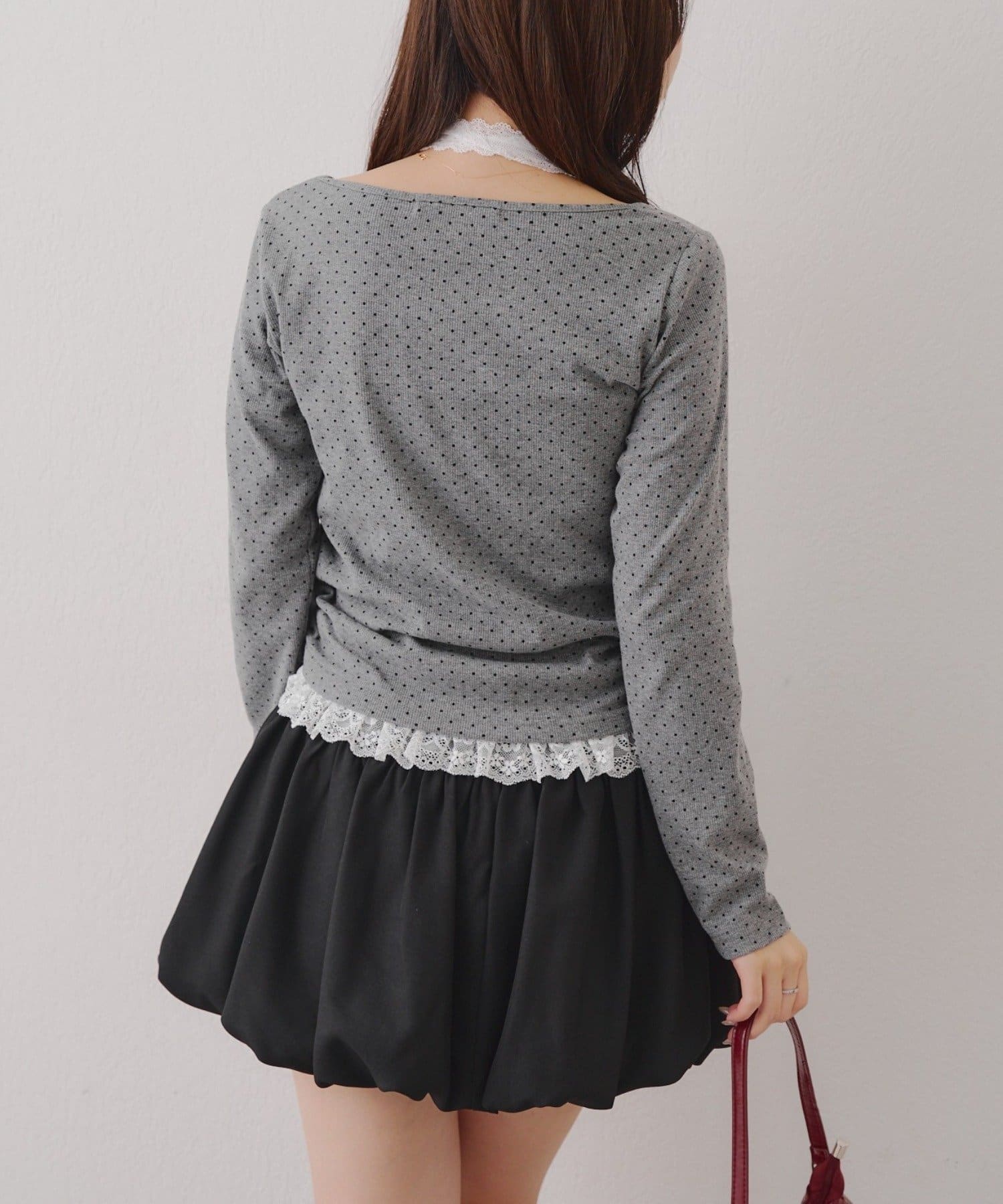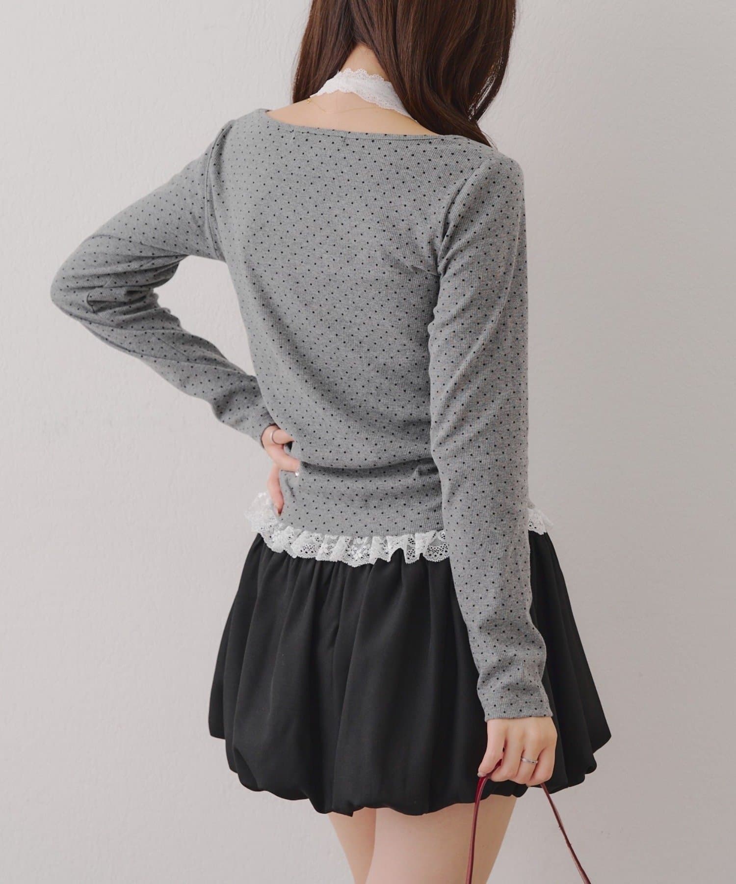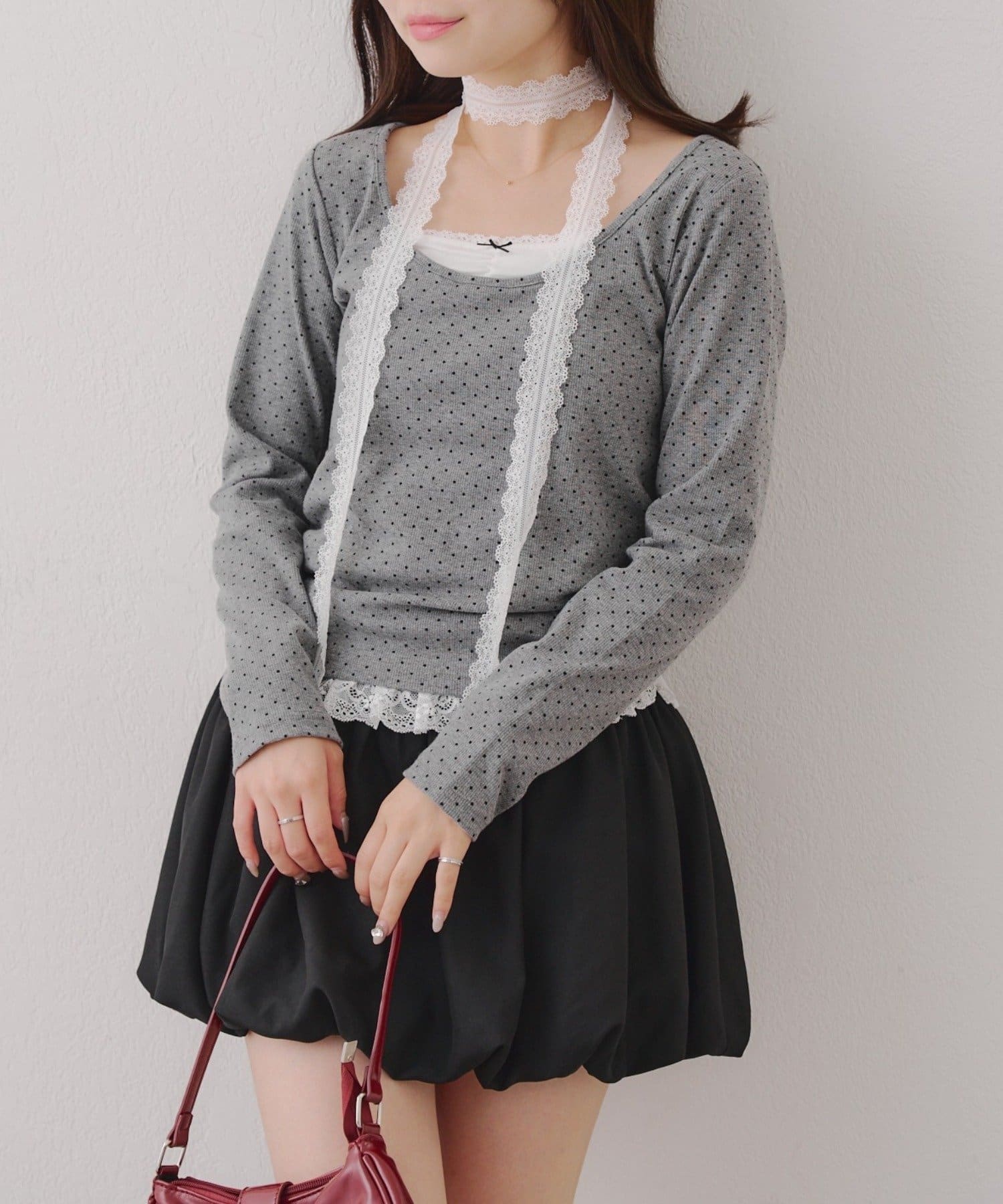 ・胸元のレースドッキングが、よりガーリーな印象に