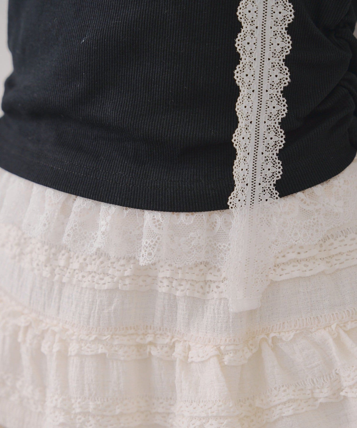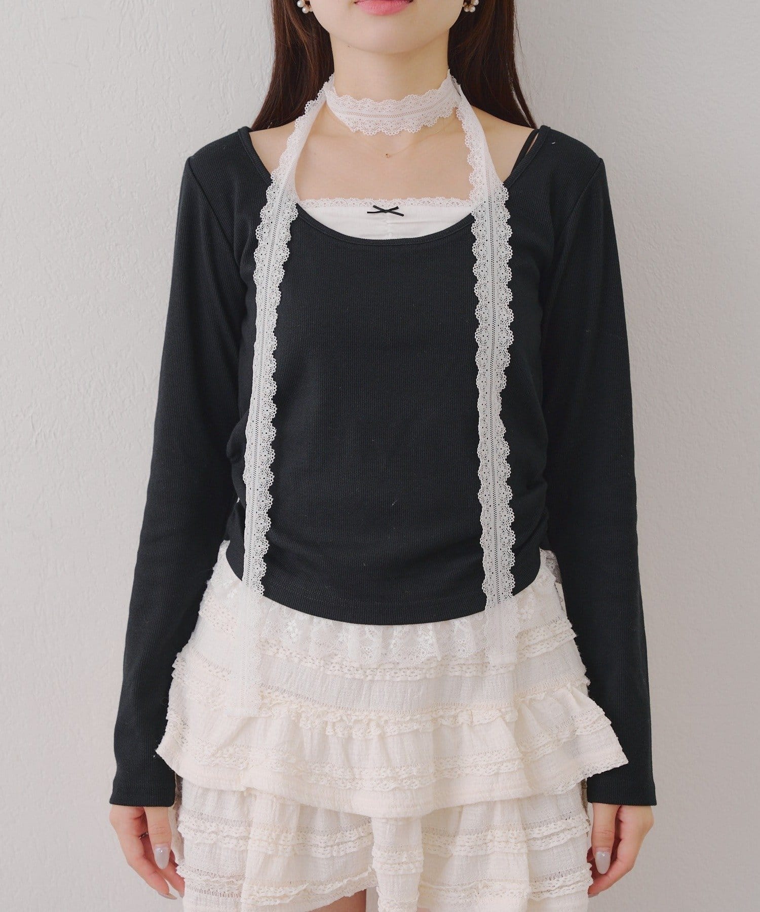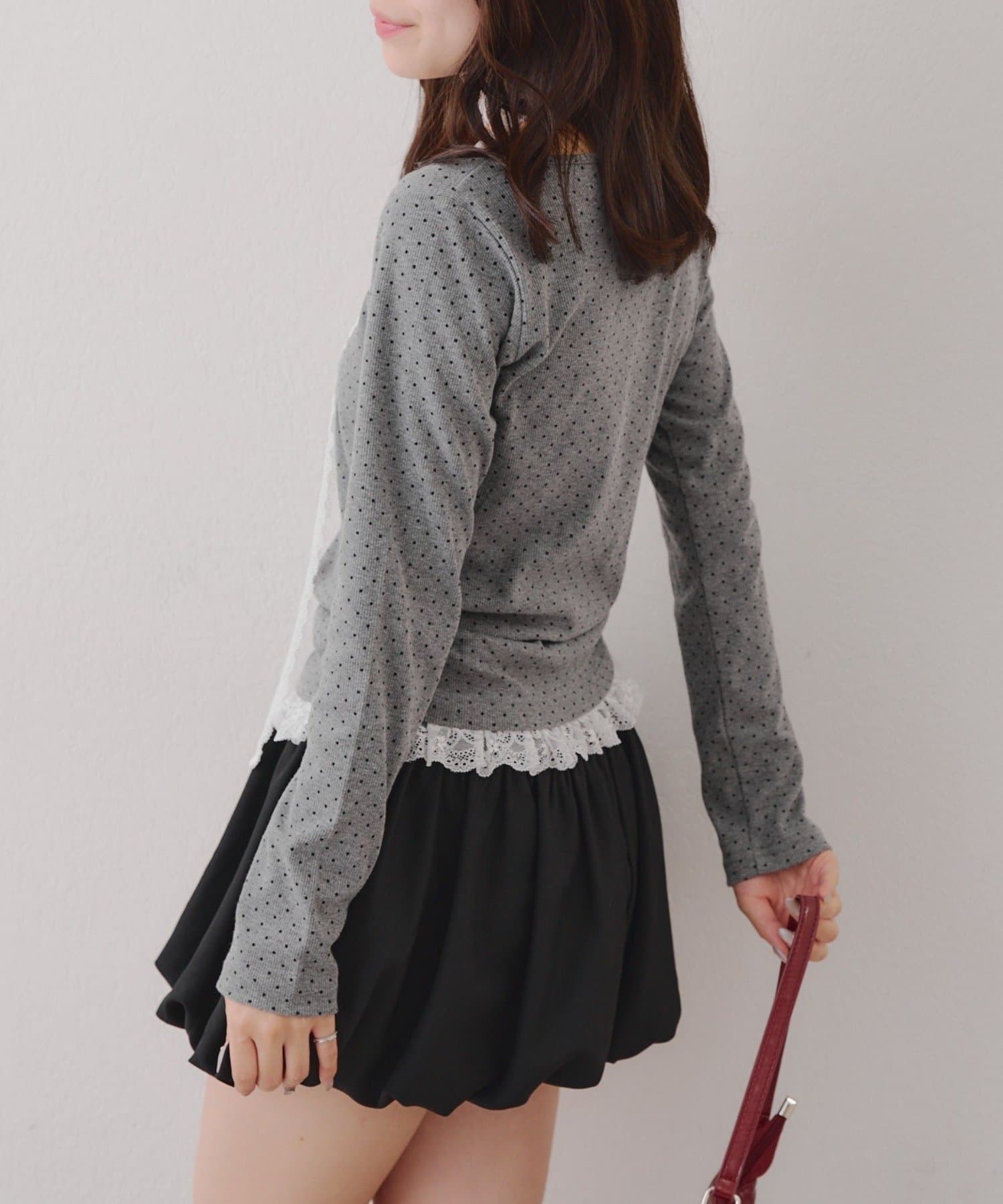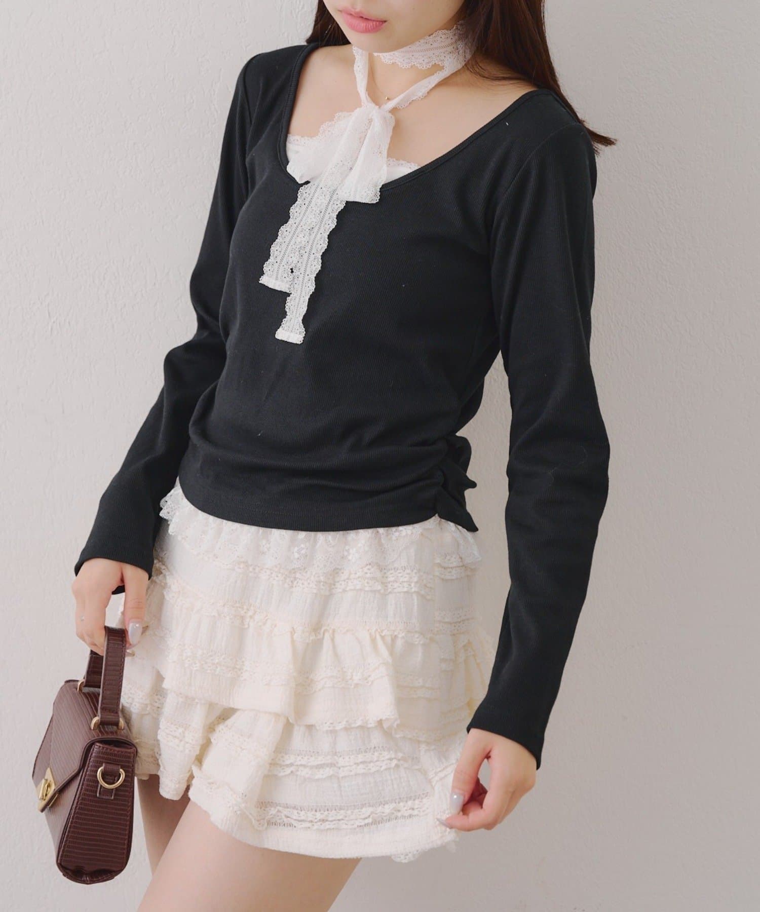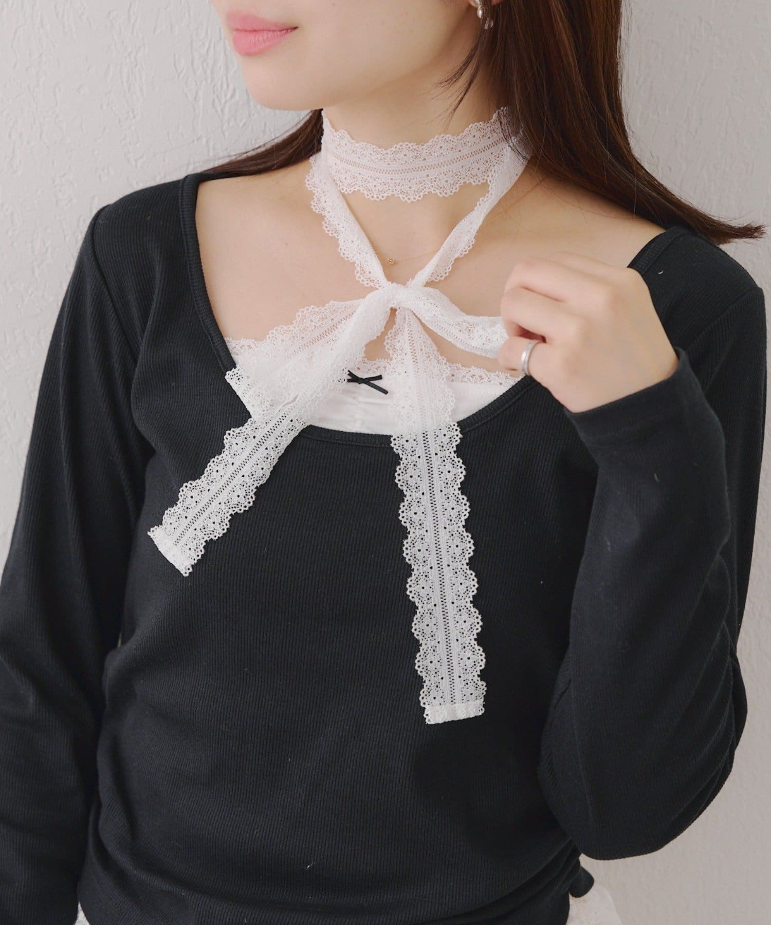 ・胸元のレースドッキングが、よりガーリーな印象に