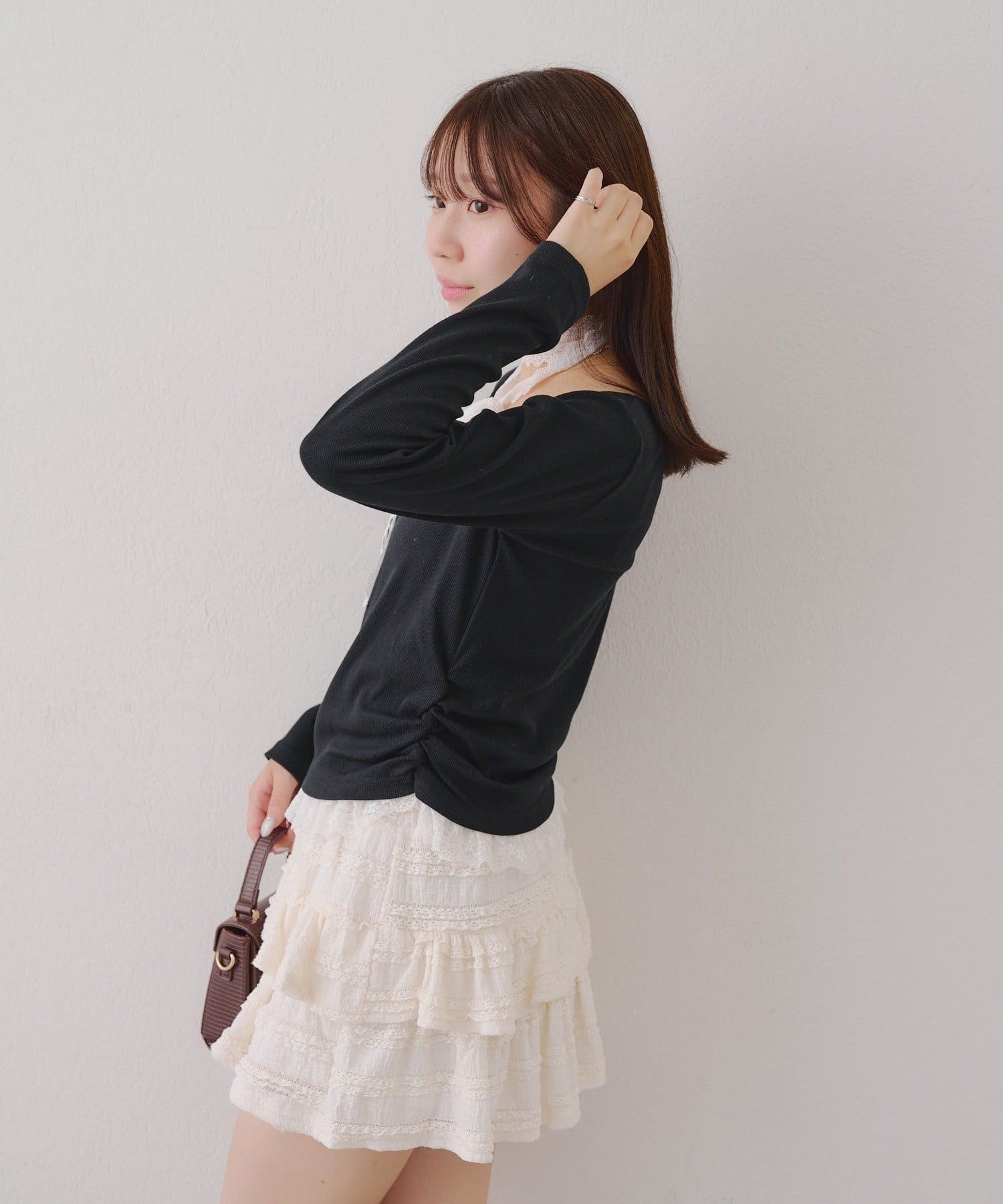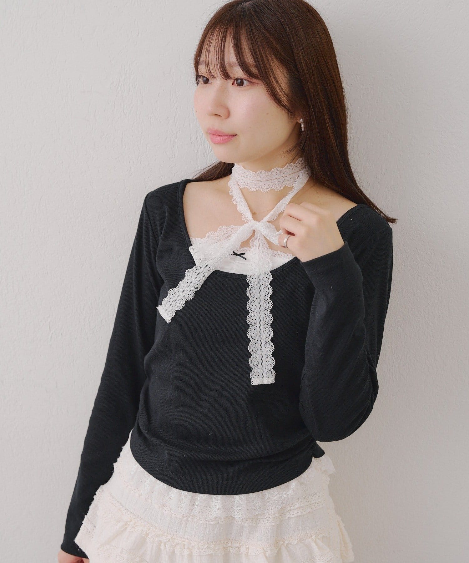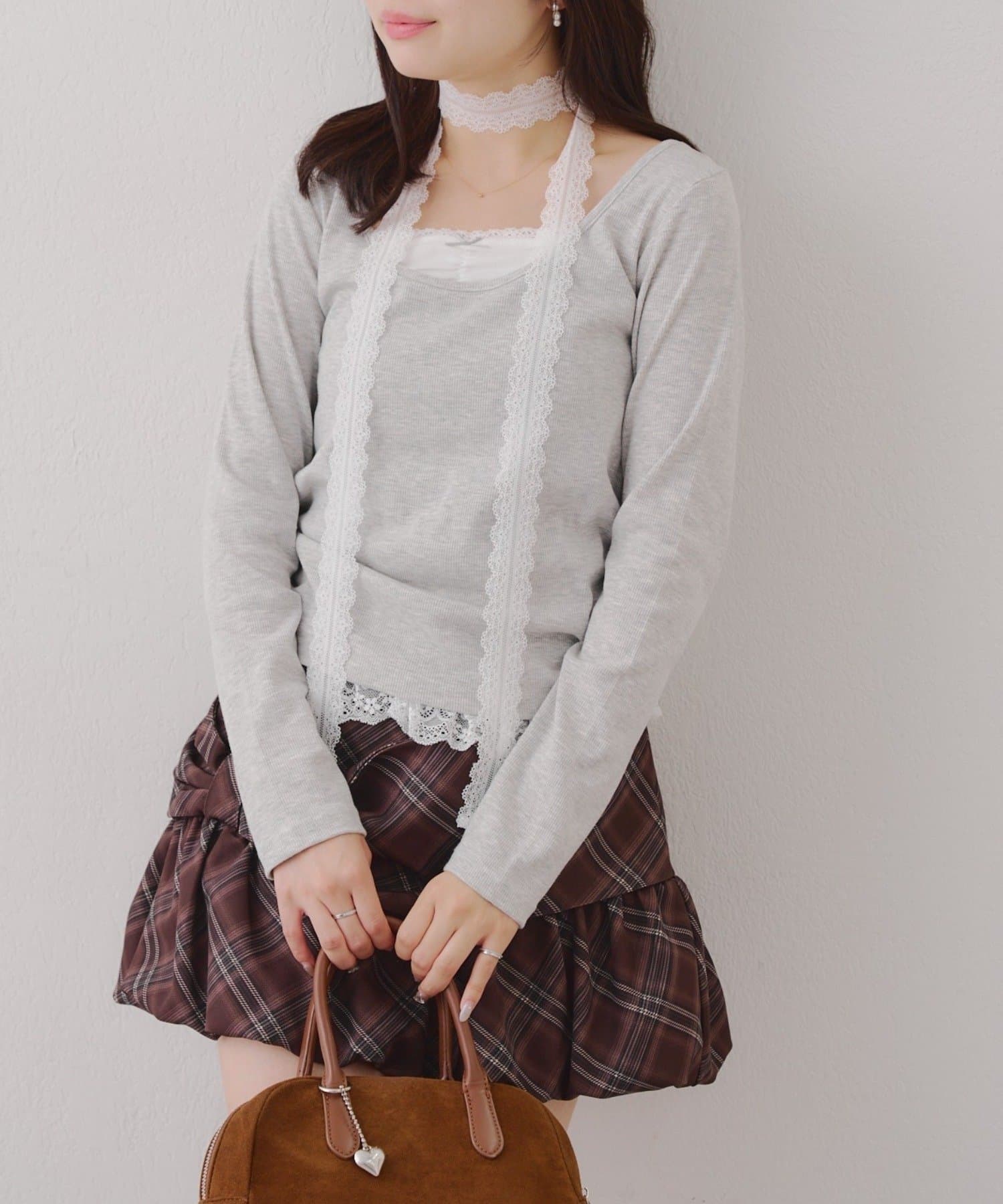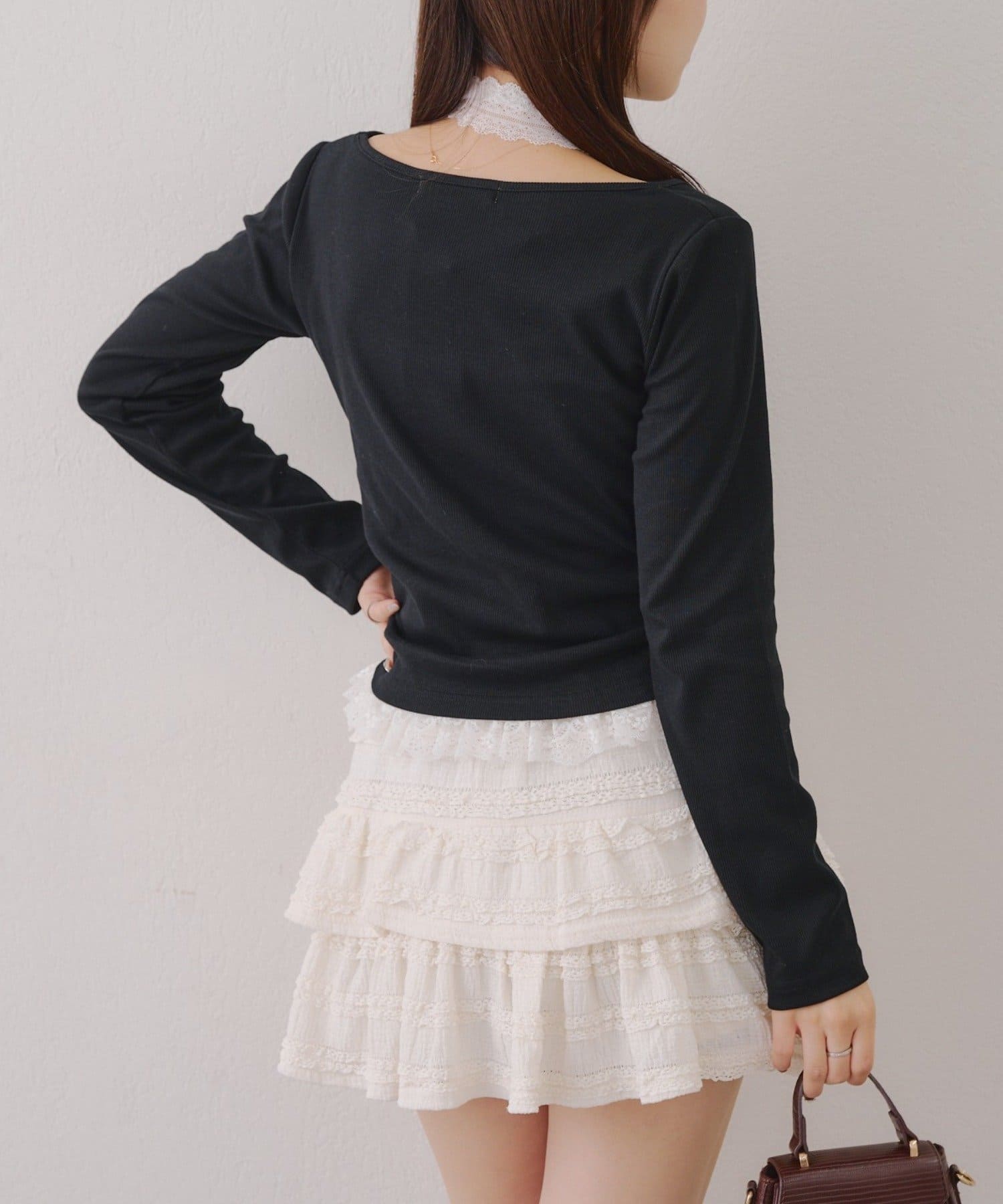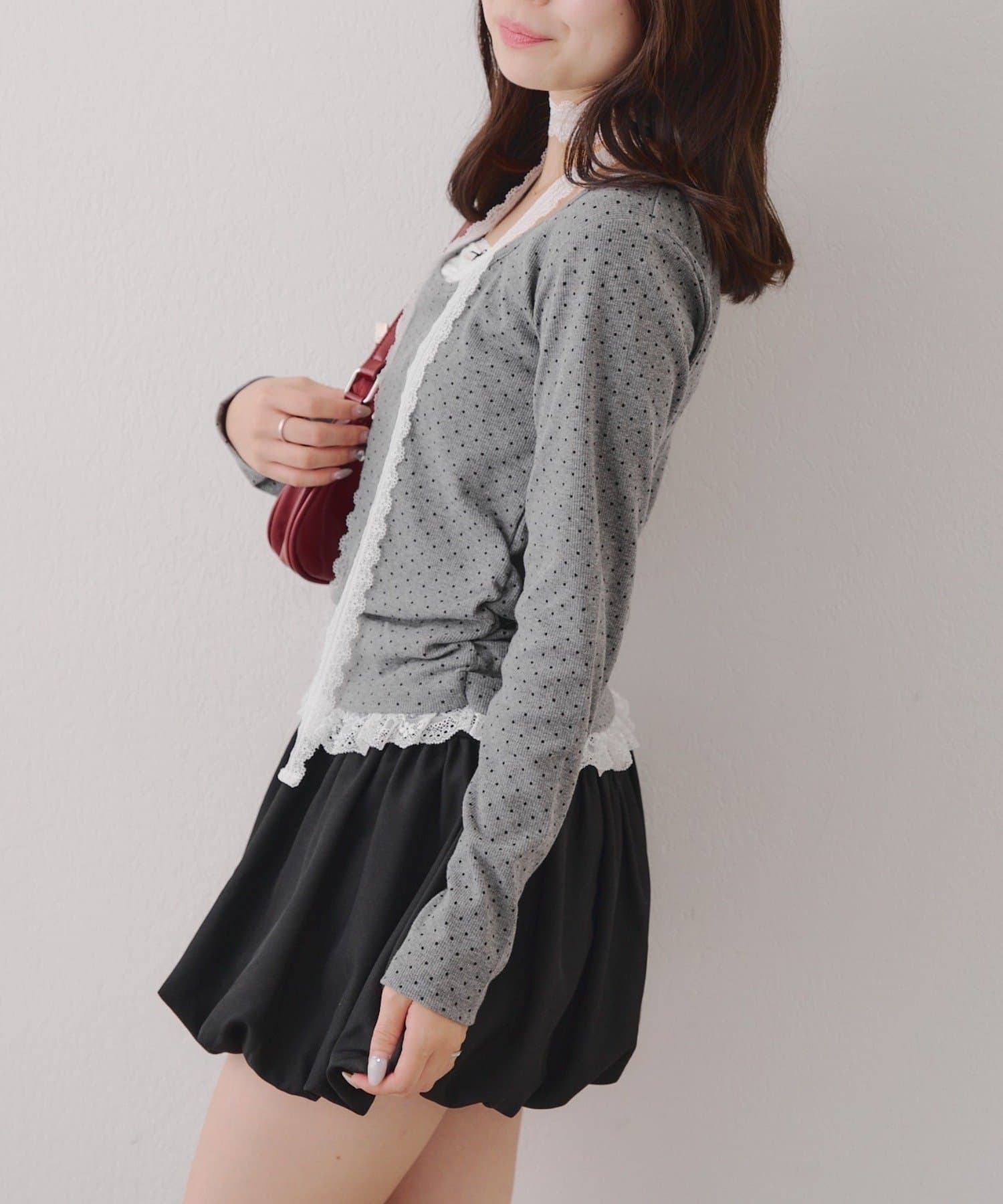 ・胸元のレースドッキングが、よりガーリーな印象に